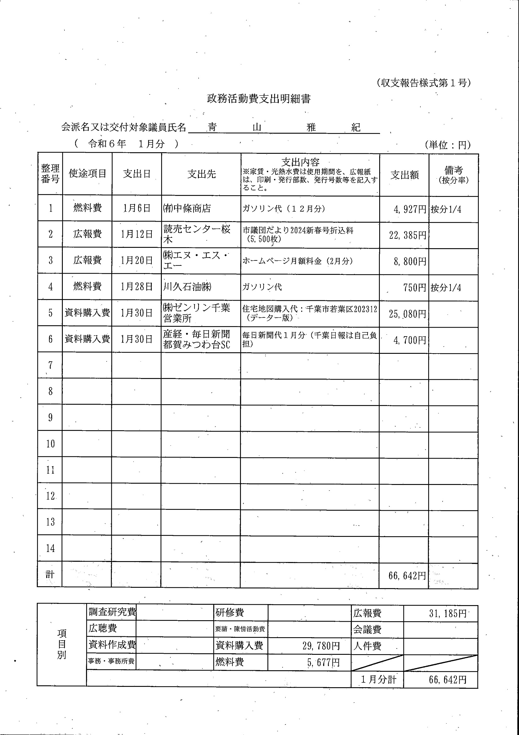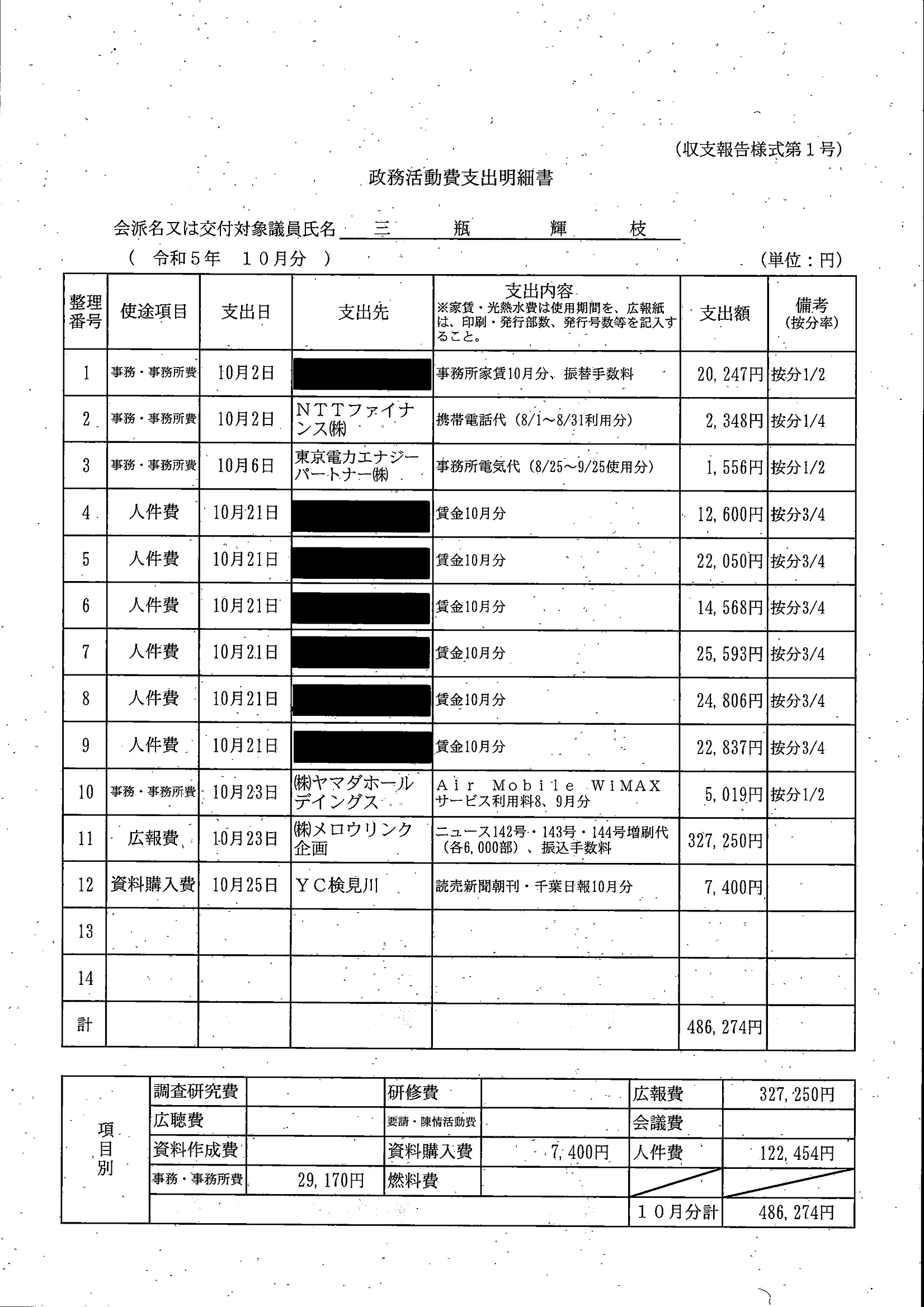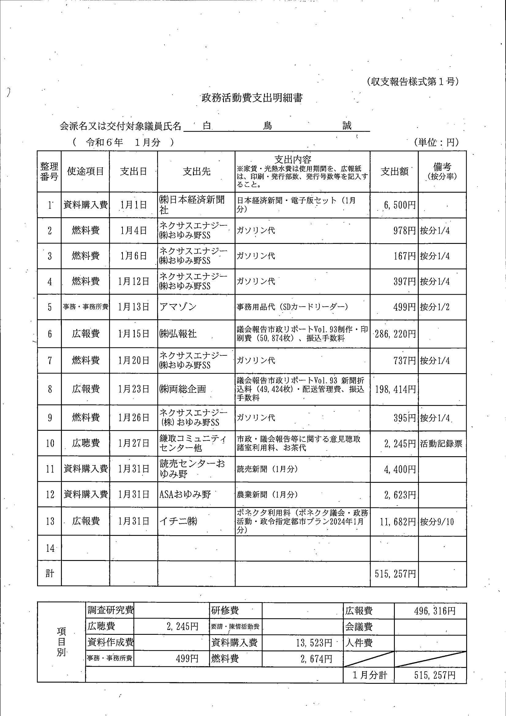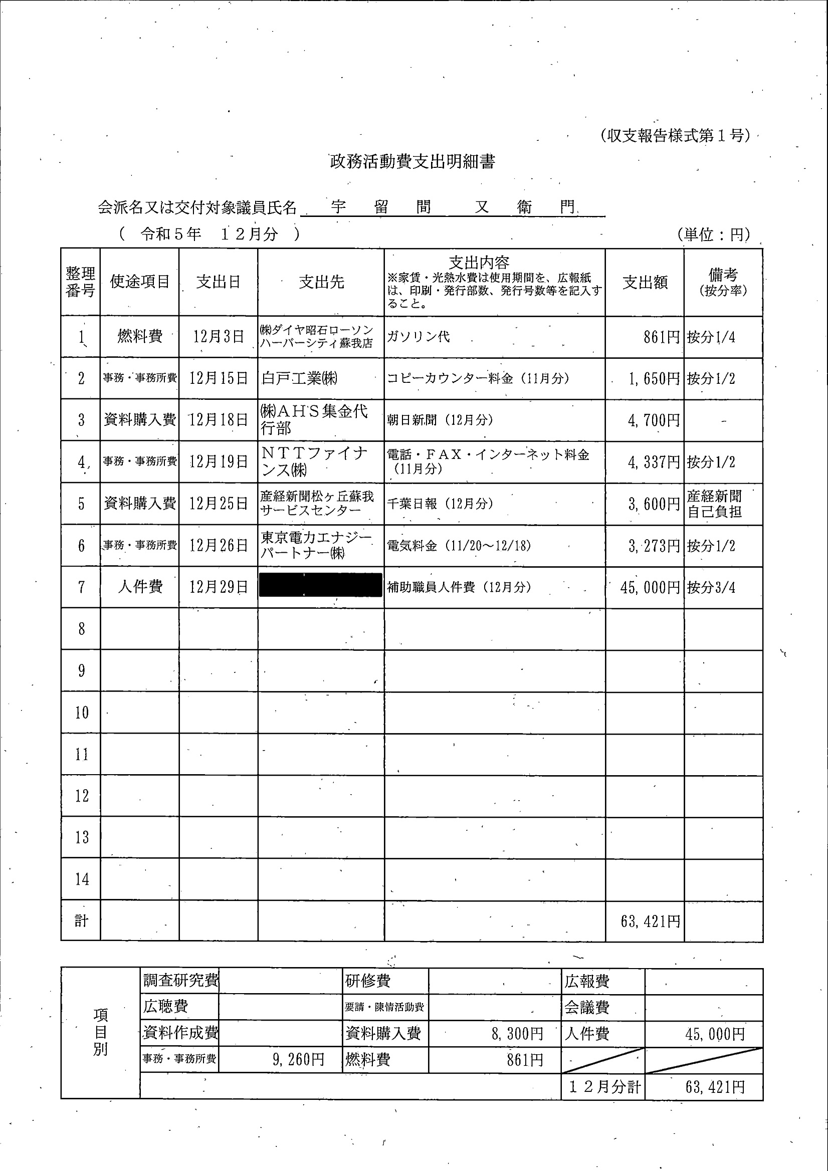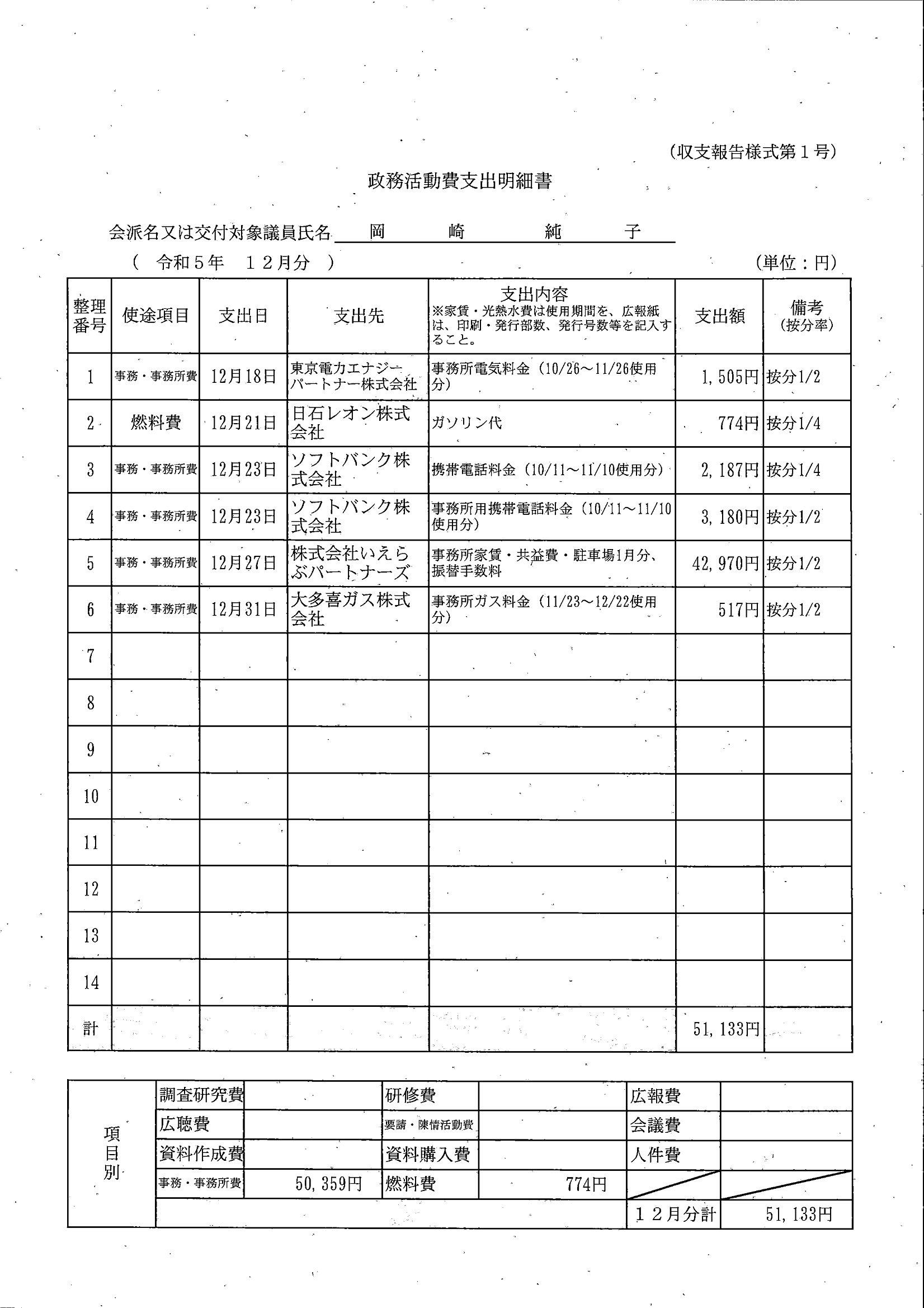 千葉市議会トップページ > 広報・情報公開 > 政務活動費 > 令和5年度交付分(政務活動費収支報告書)