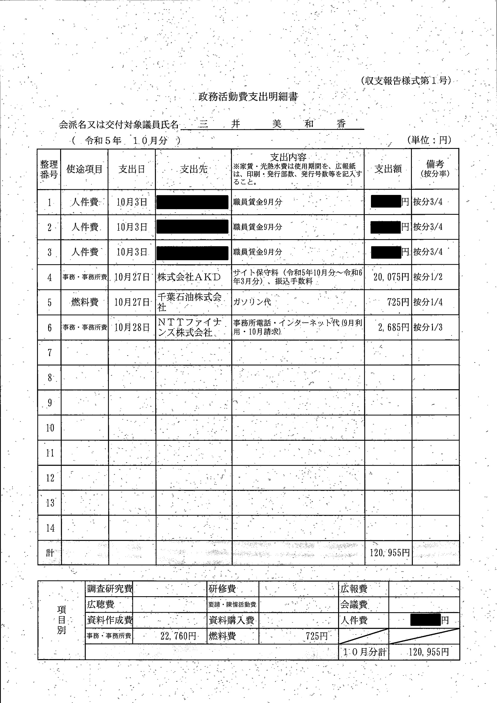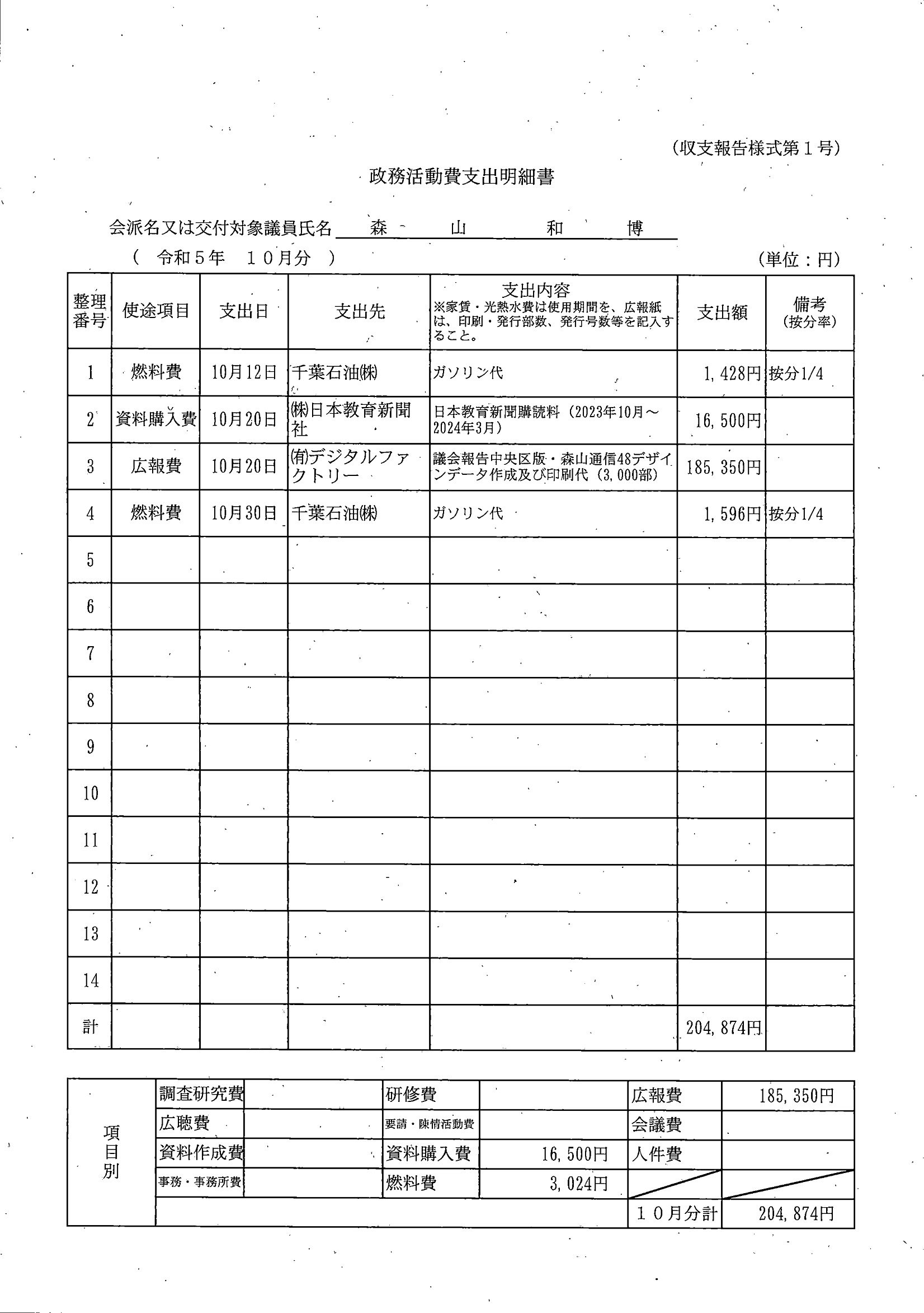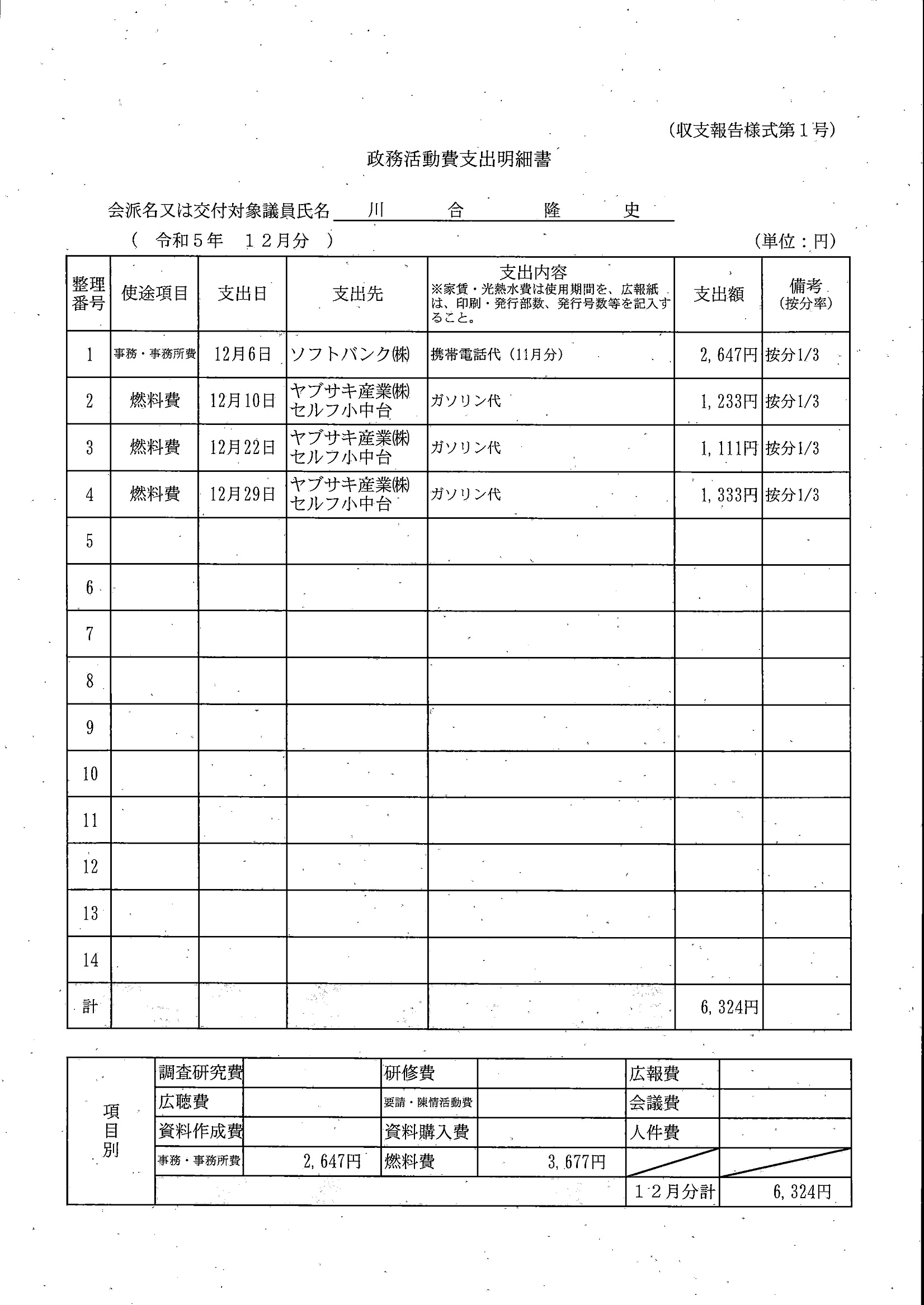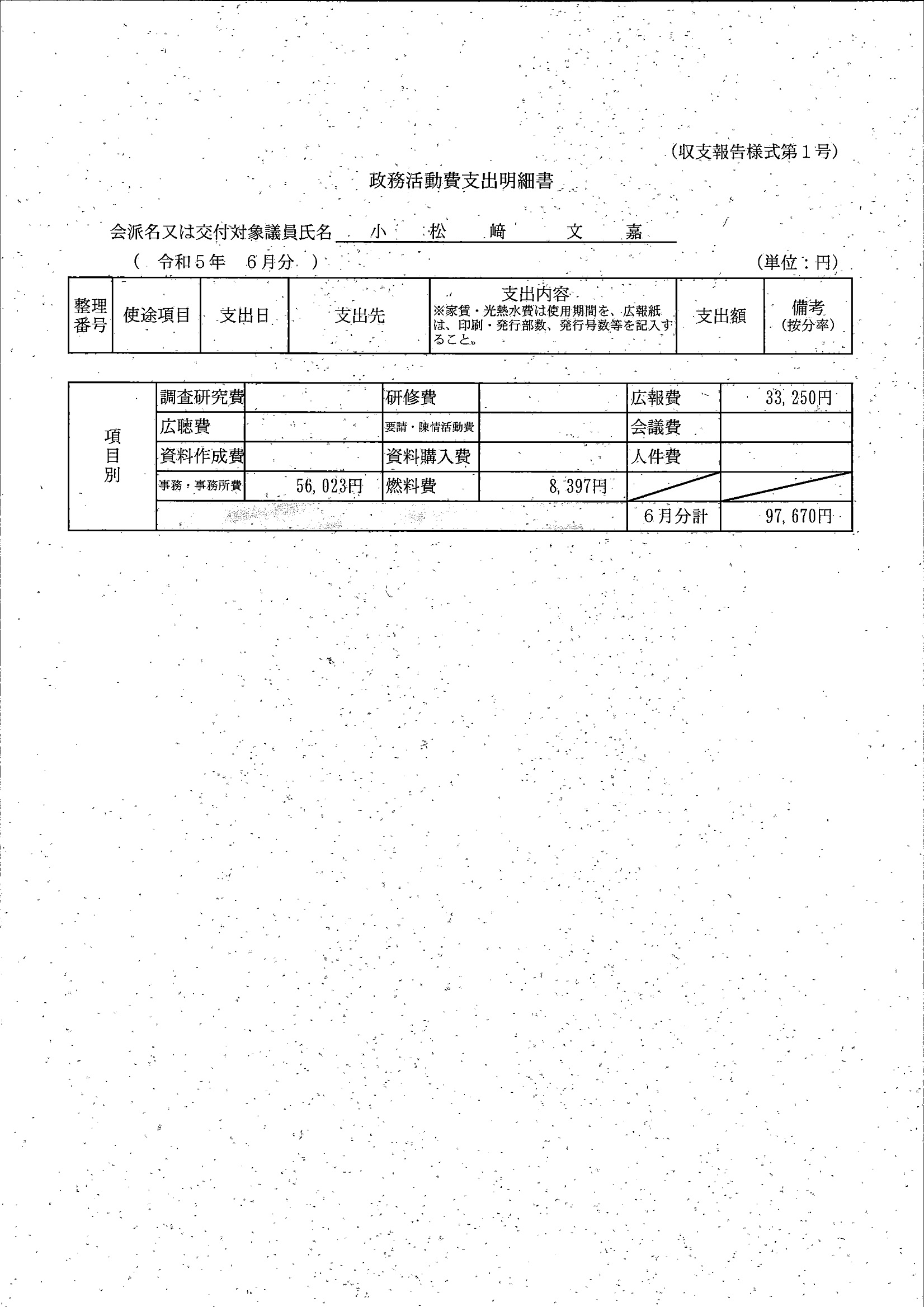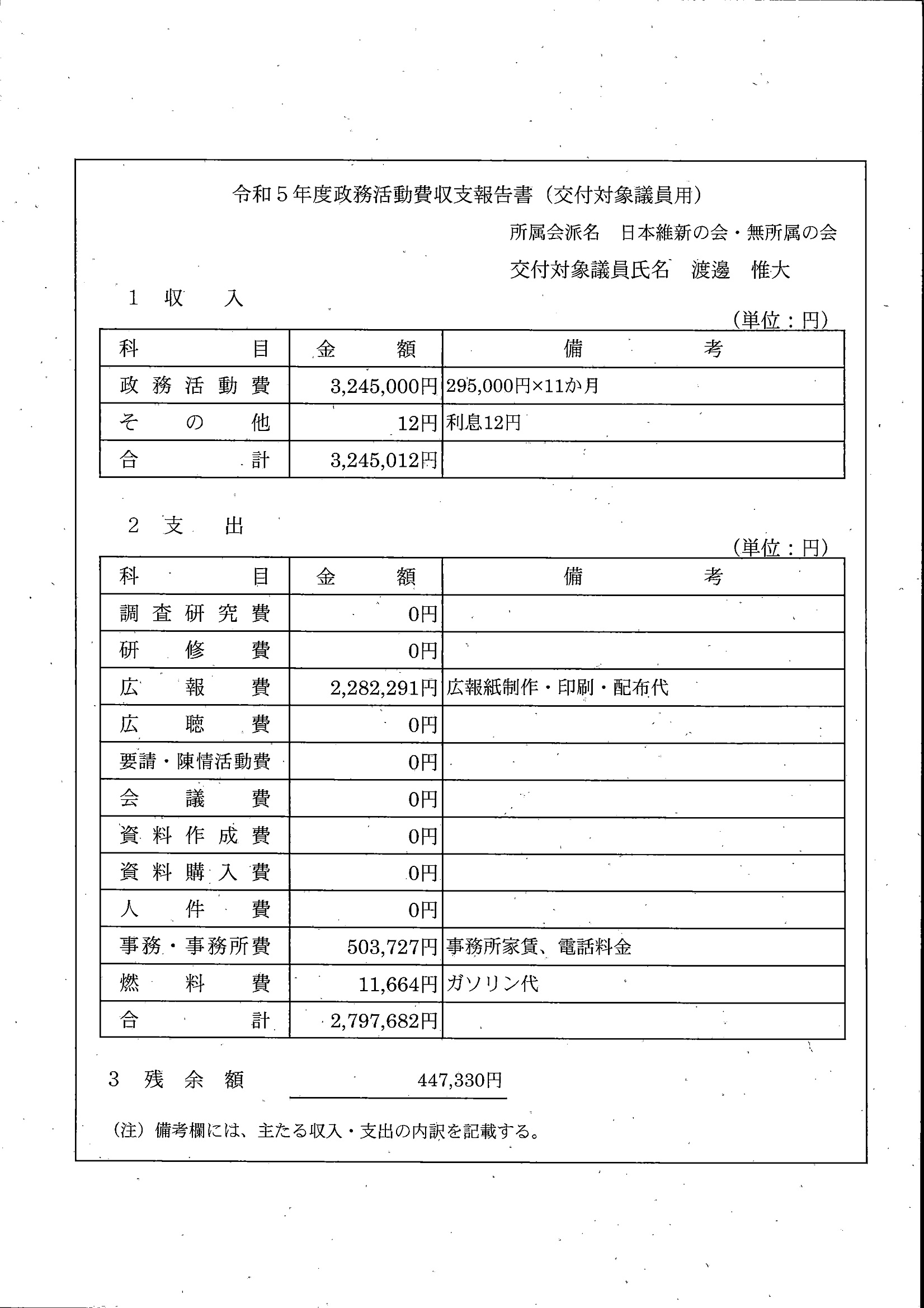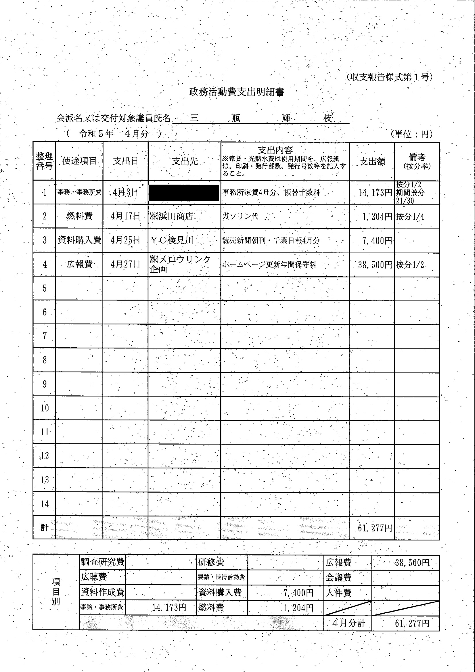 千葉市議会トップページ > 広報・情報公開 > 政務活動費 > 令和5年度交付分(政務活動費収支報告書)