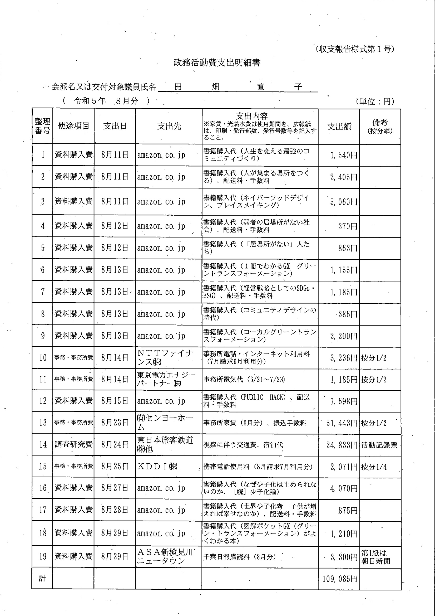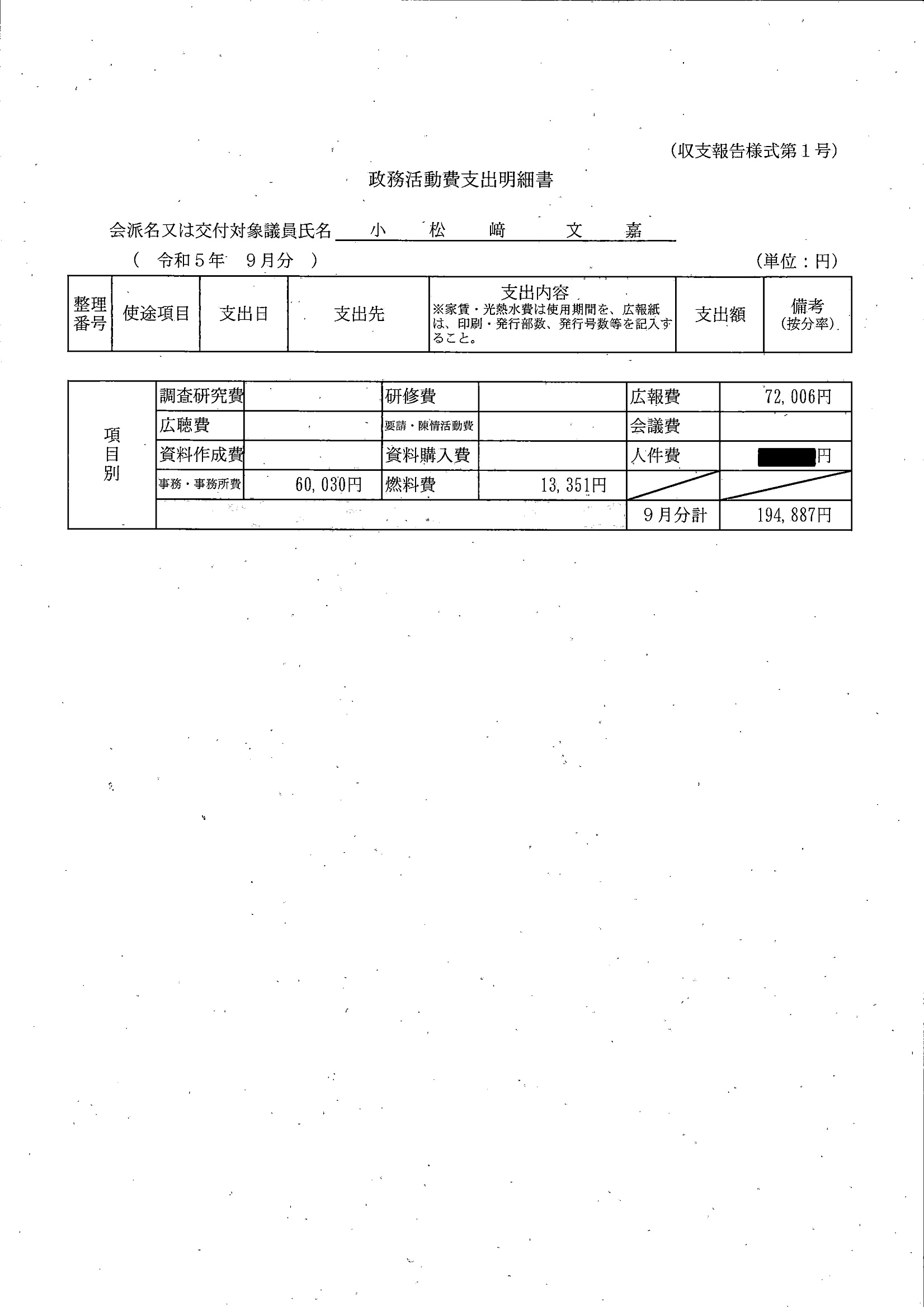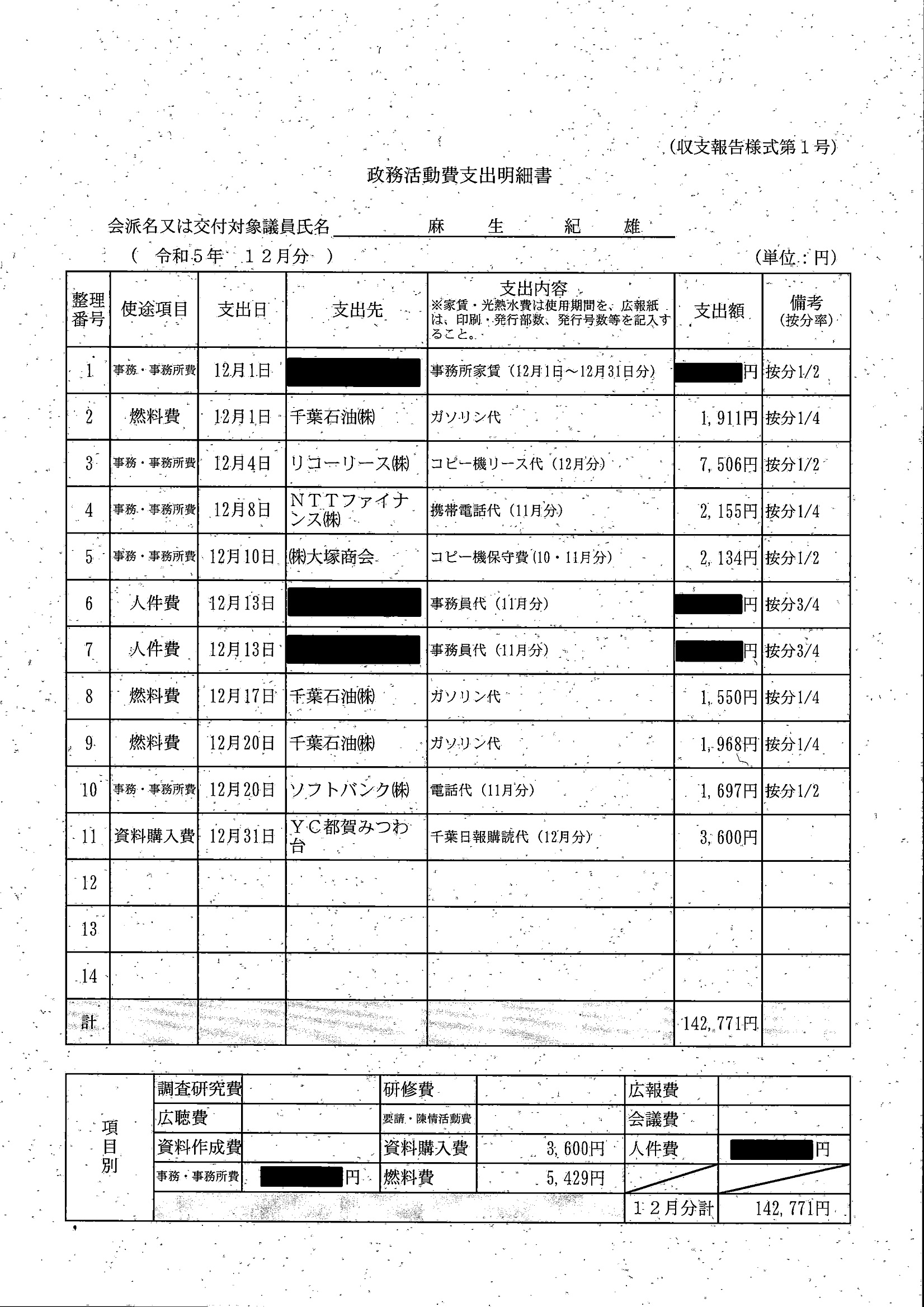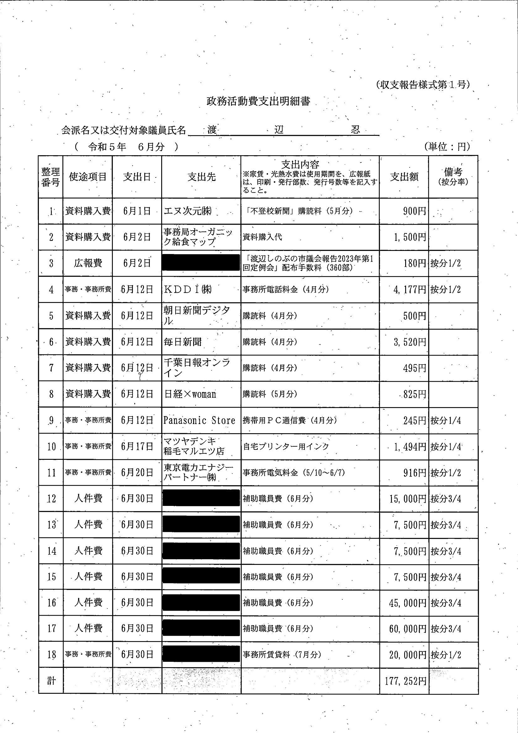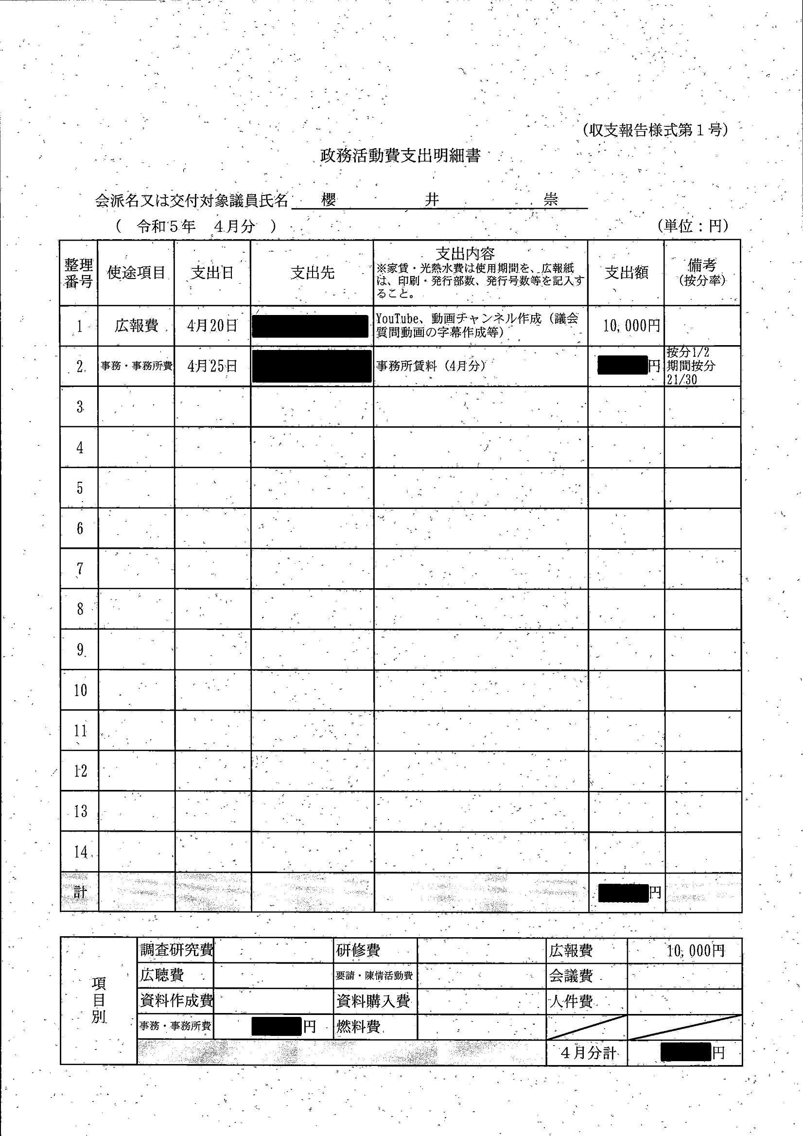 千葉市議会トップページ > 広報・情報公開 > 政務活動費 > 令和5年度交付分(政務活動費収支報告書)