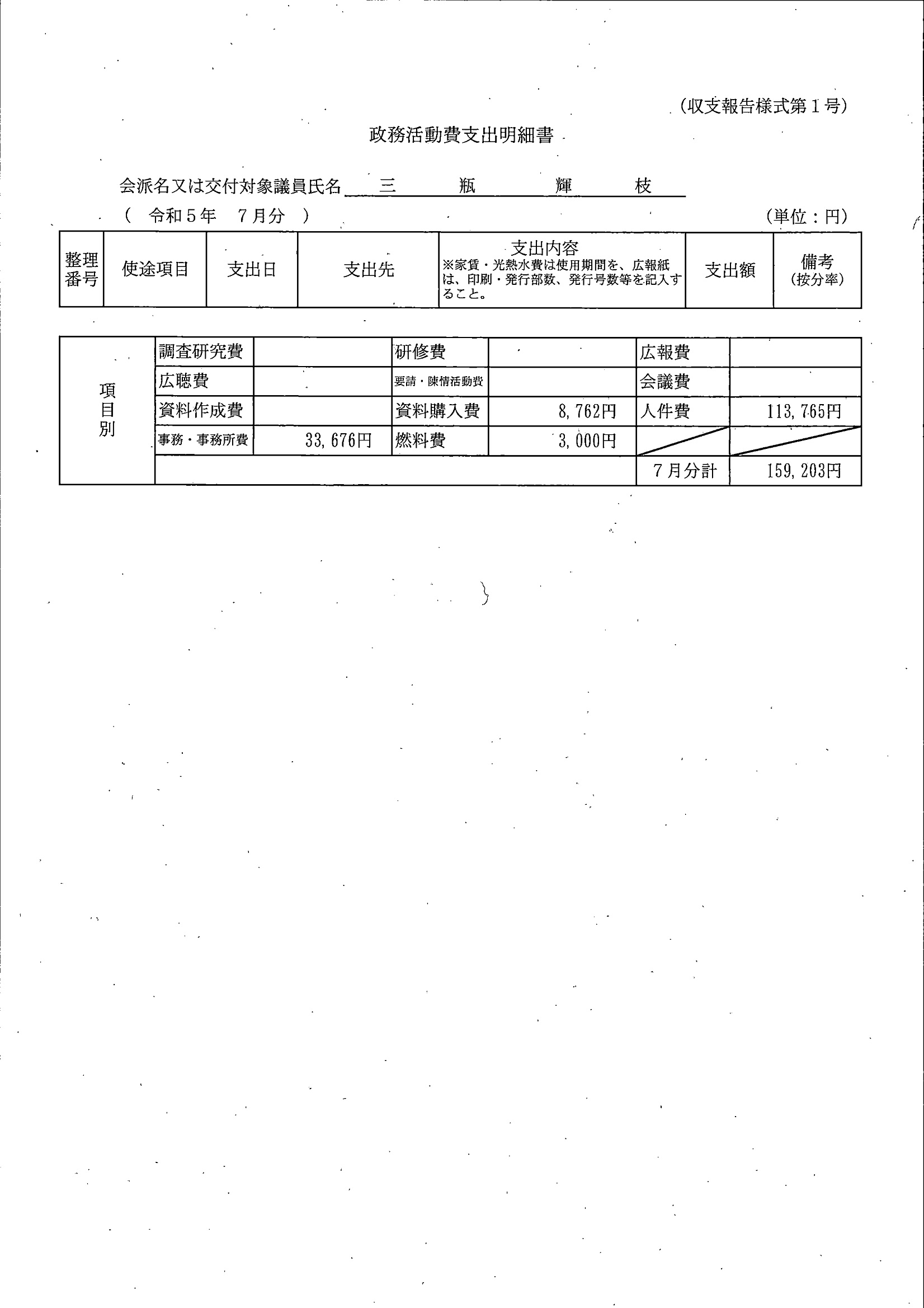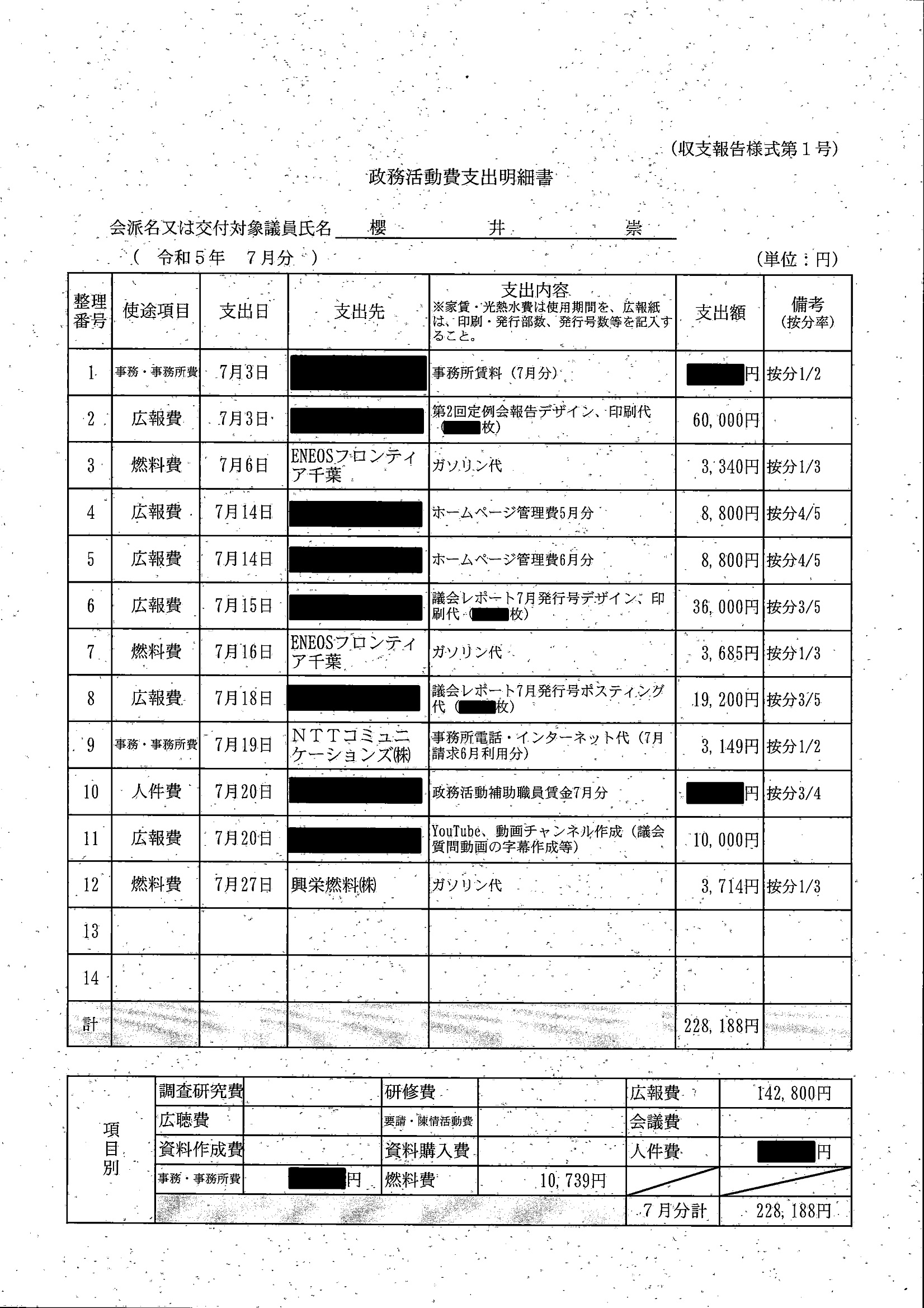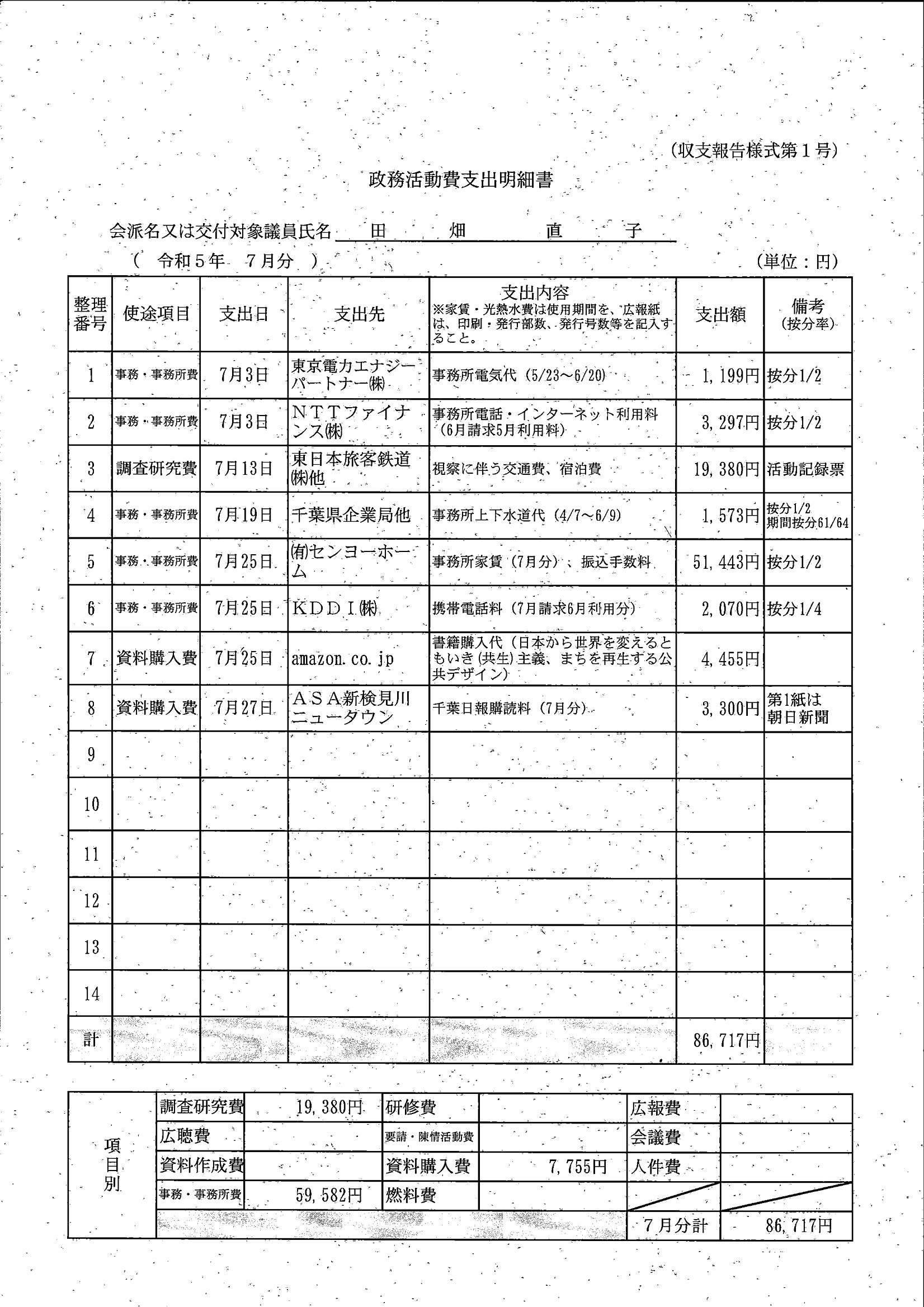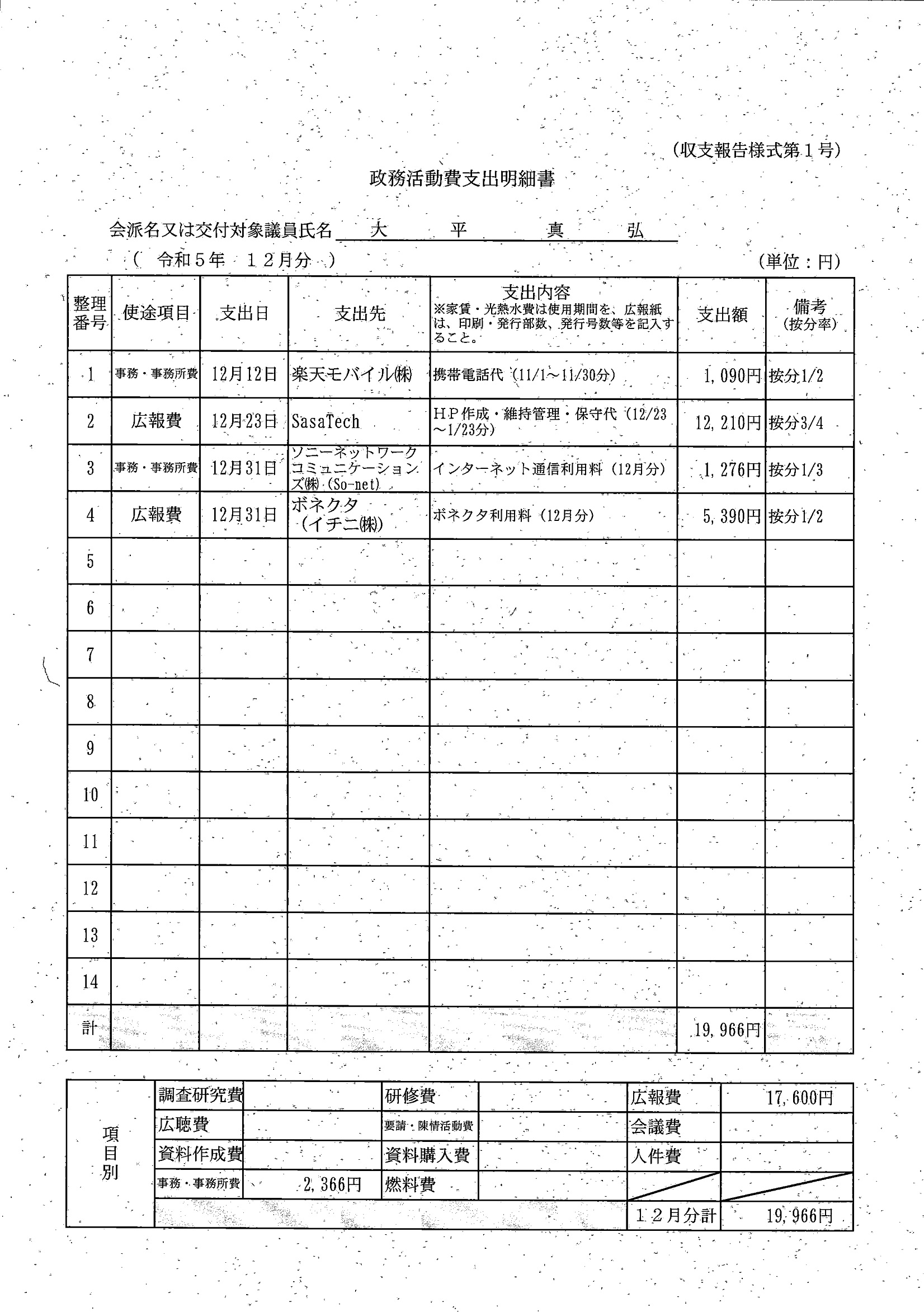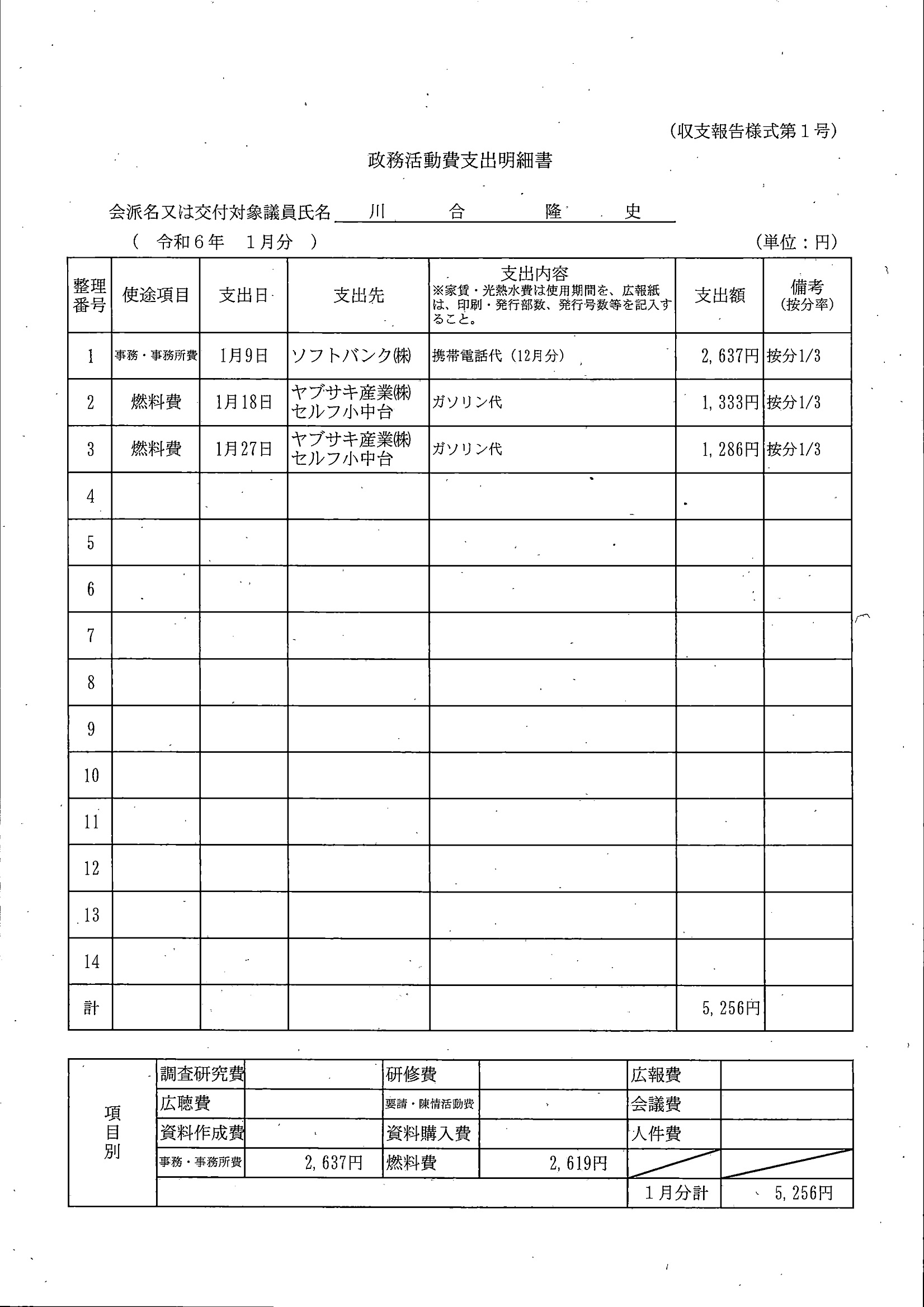 千葉市議会トップページ > 広報・情報公開 > 政務活動費 > 令和5年度交付分(政務活動費収支報告書)