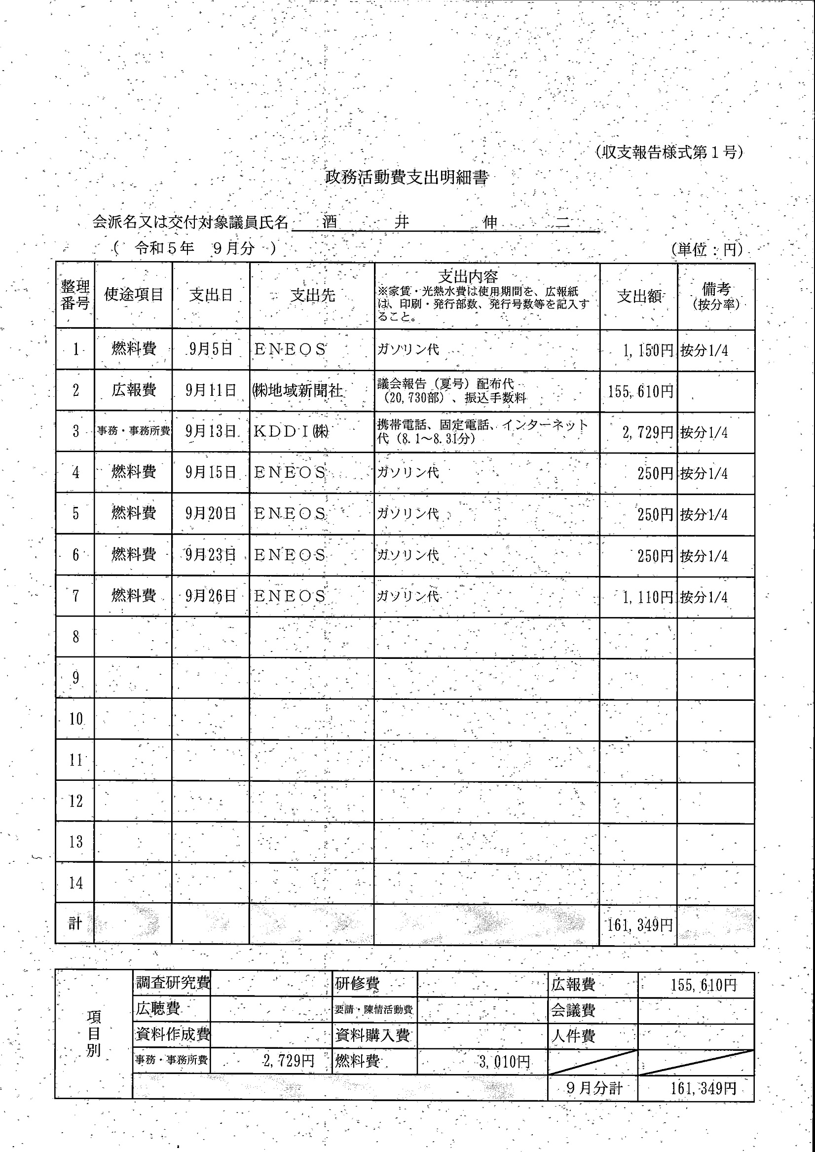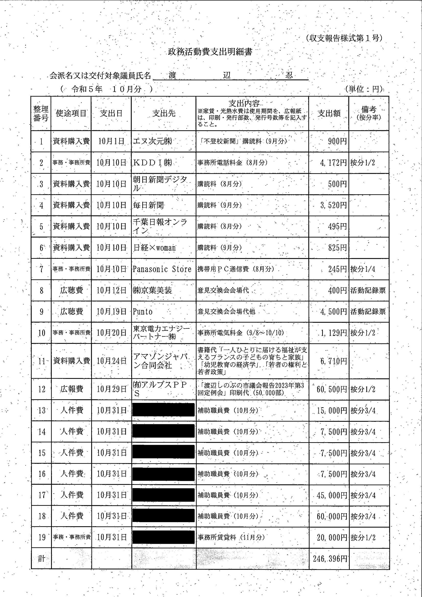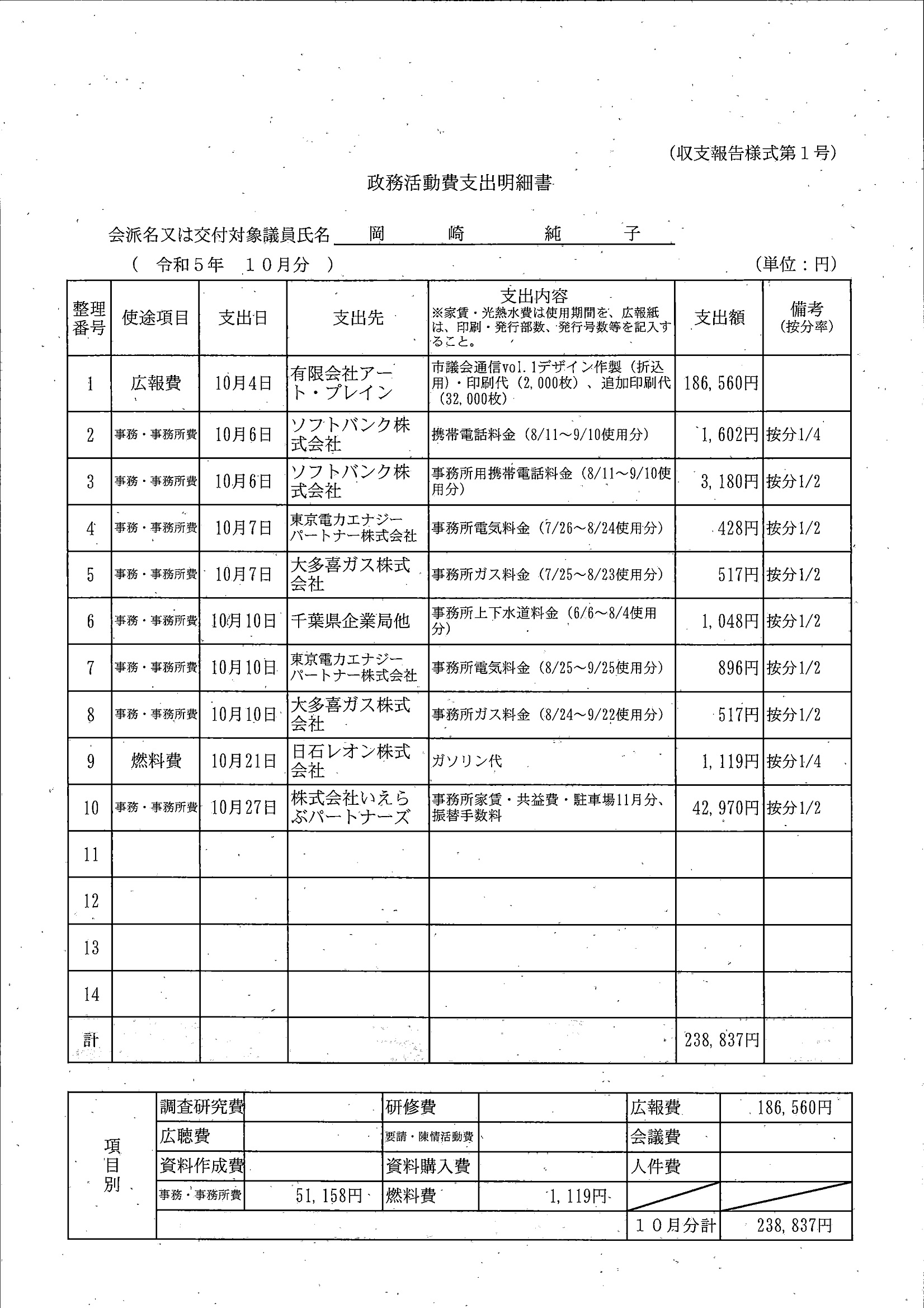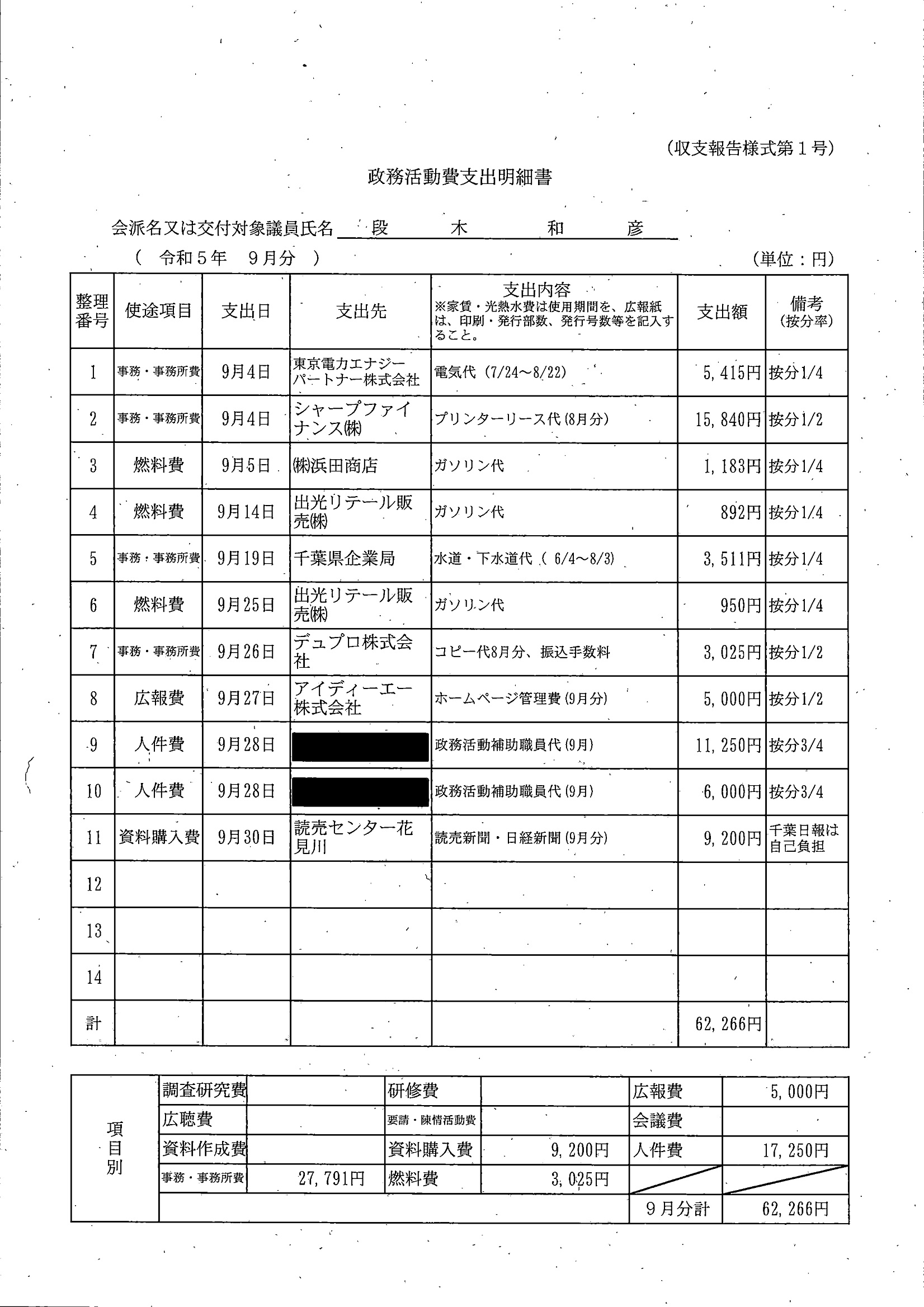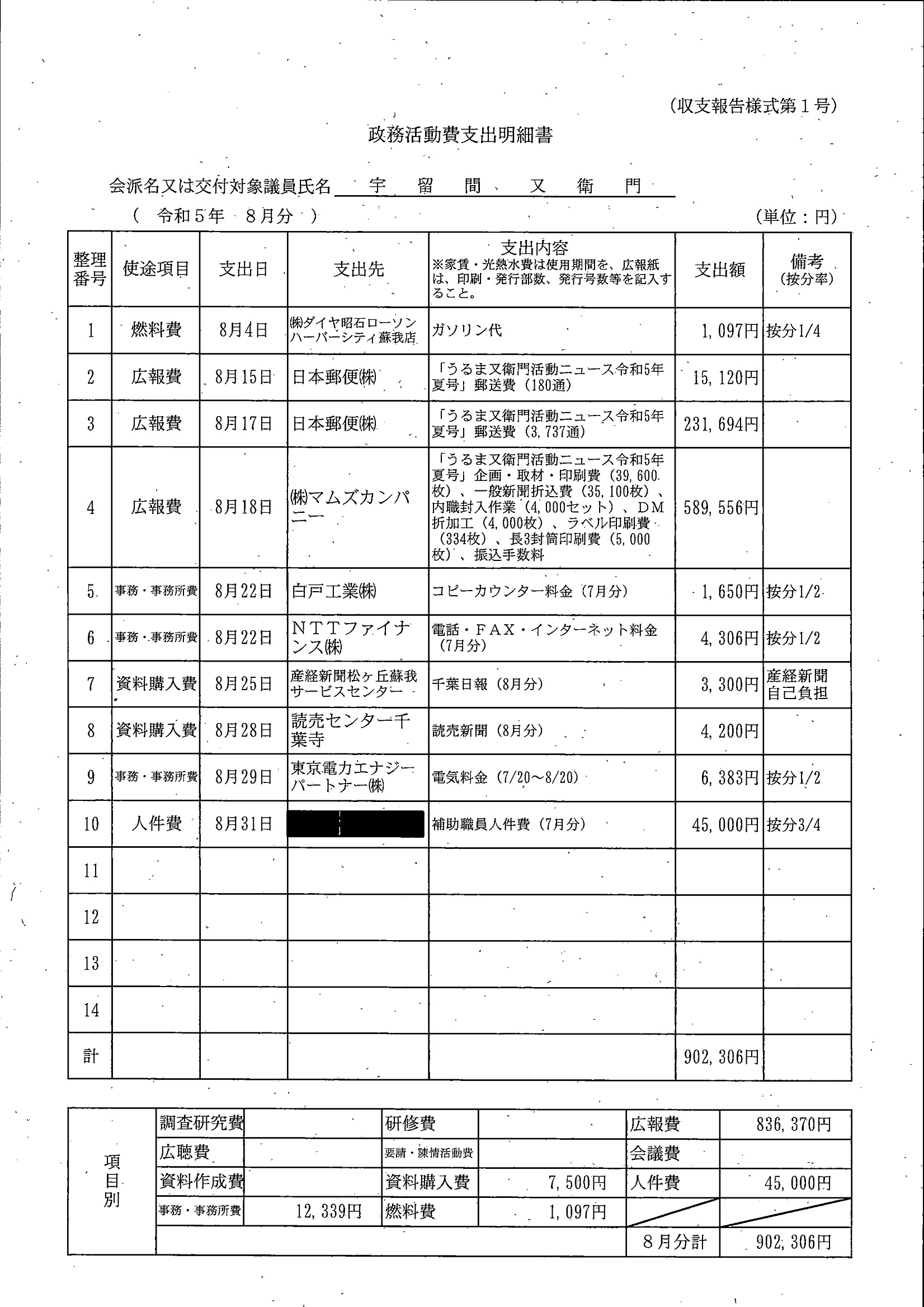 千葉市議会トップページ > 広報・情報公開 > 政務活動費 > 令和5年度交付分(政務活動費収支報告書)