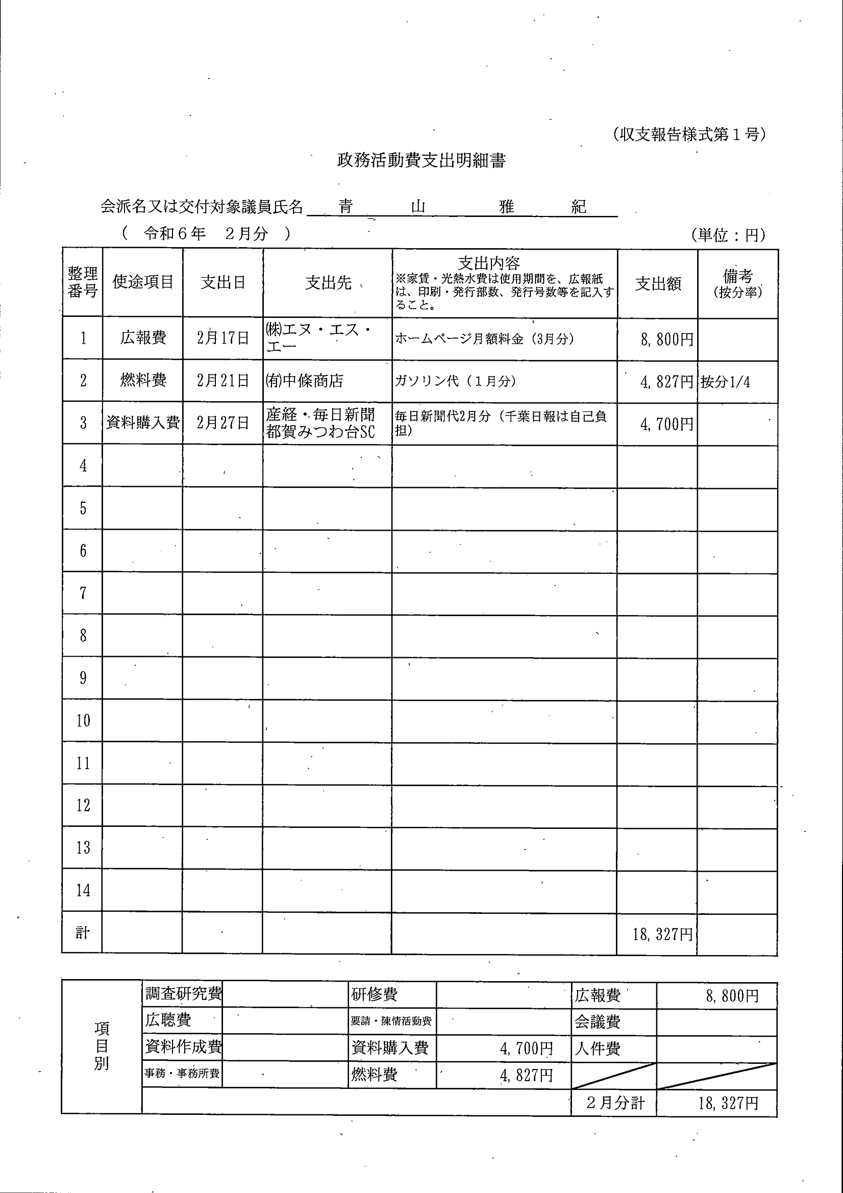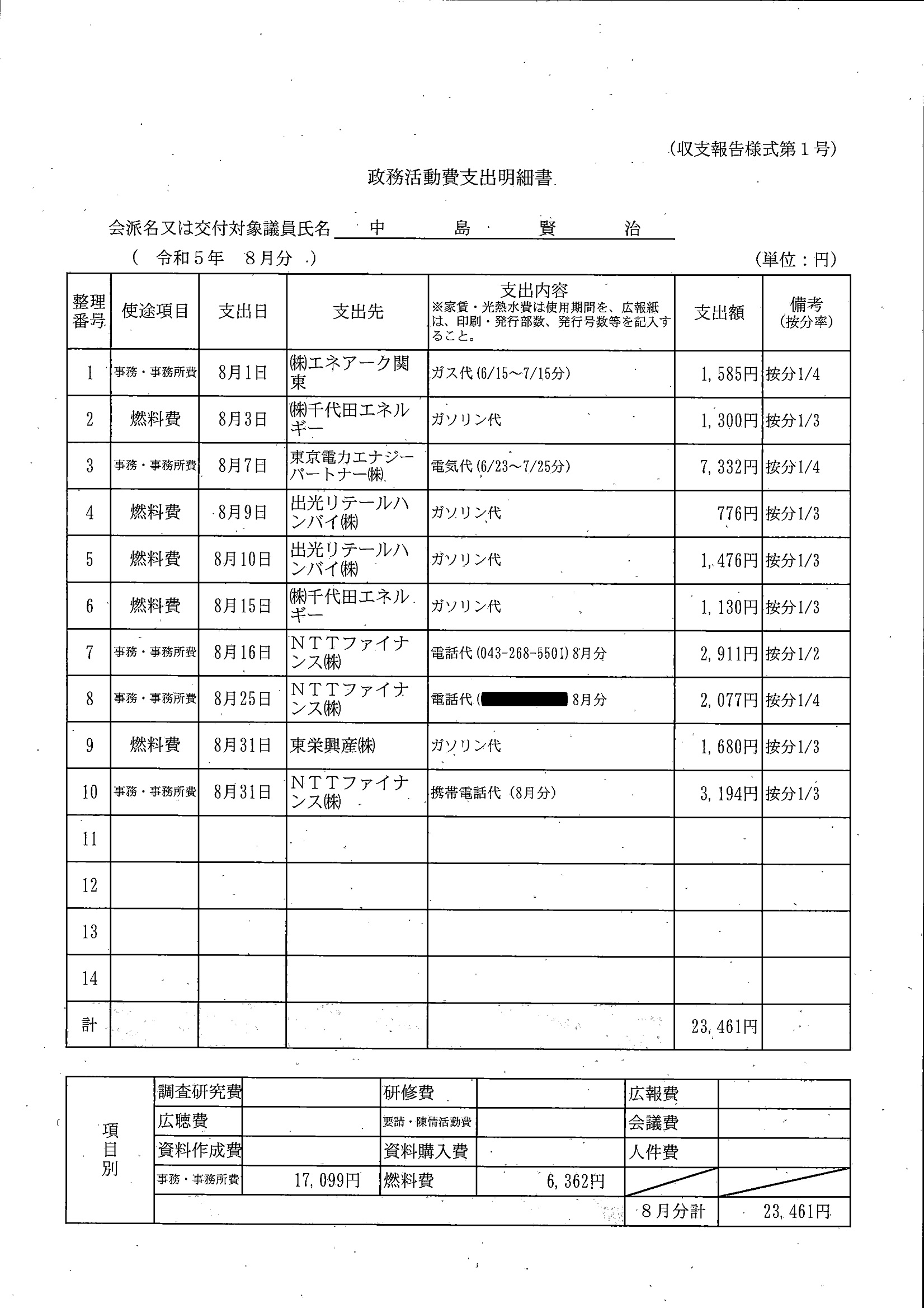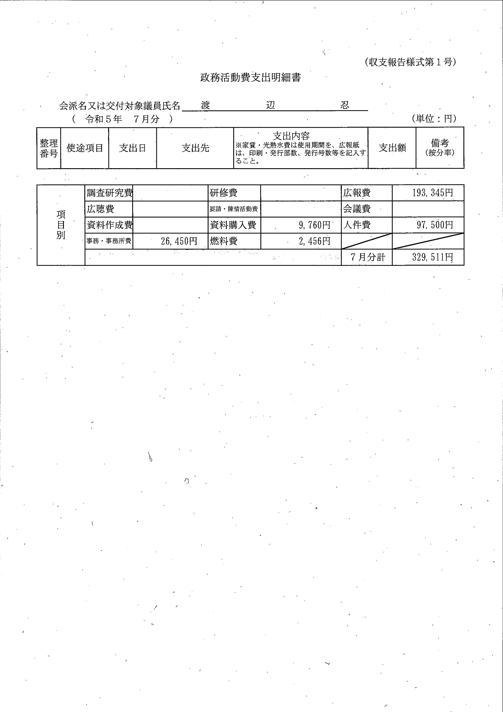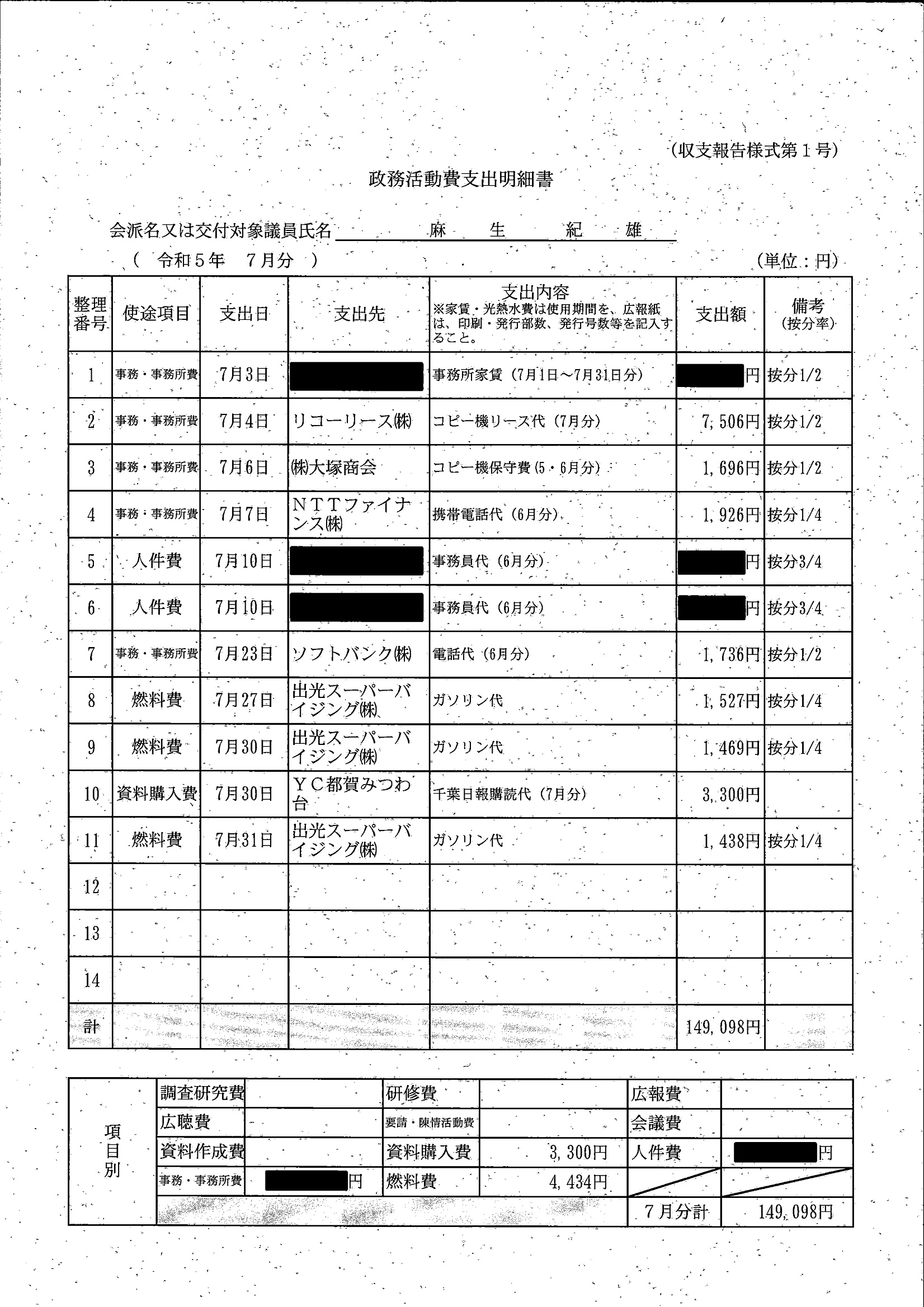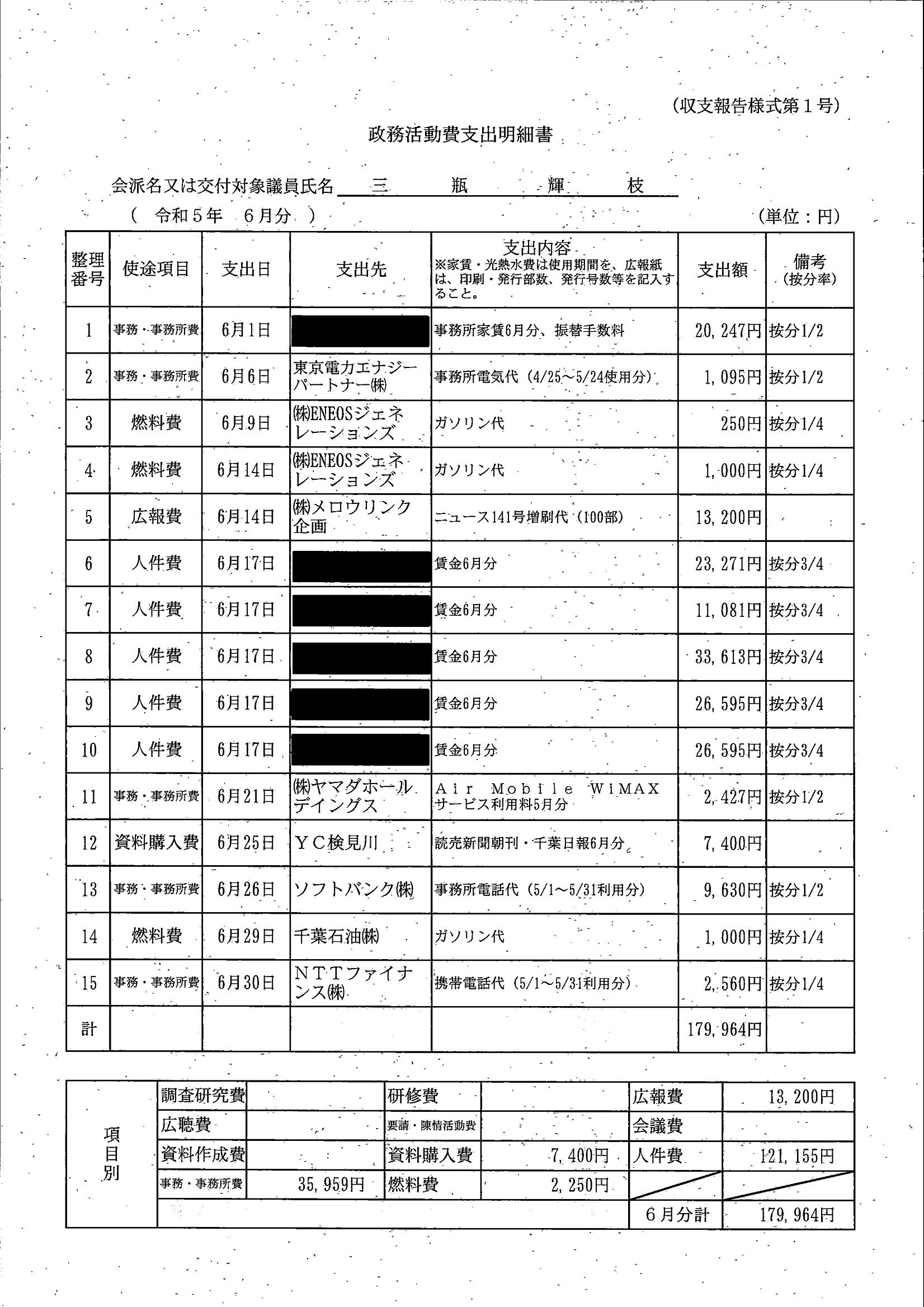 千葉市議会トップページ > 広報・情報公開 > 政務活動費 > 令和5年度交付分(政務活動費収支報告書)