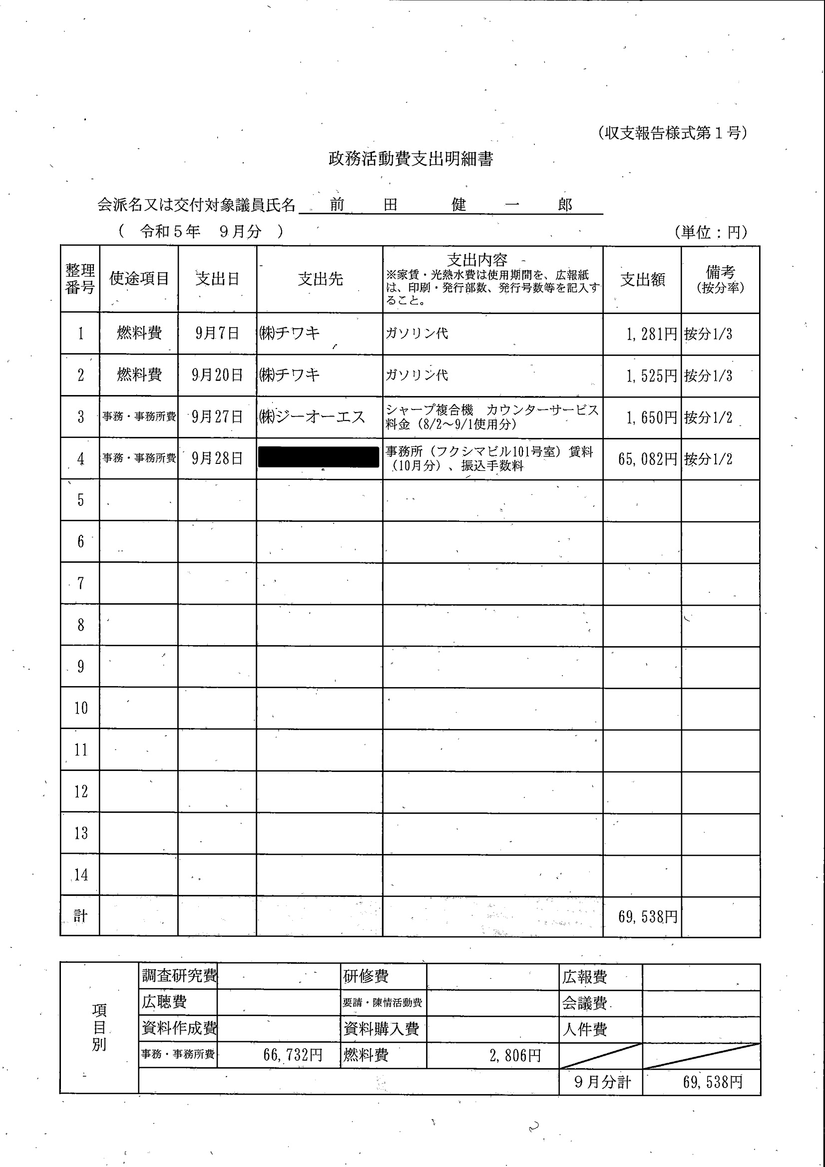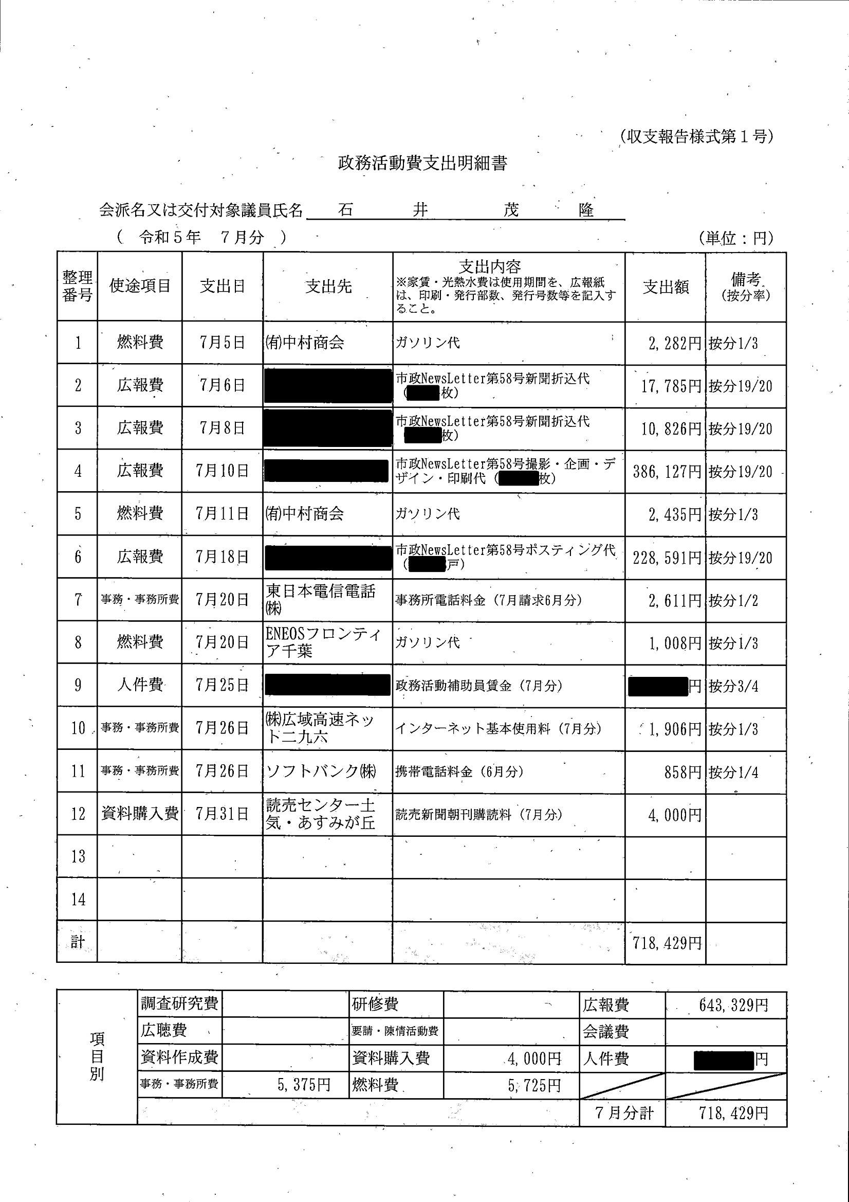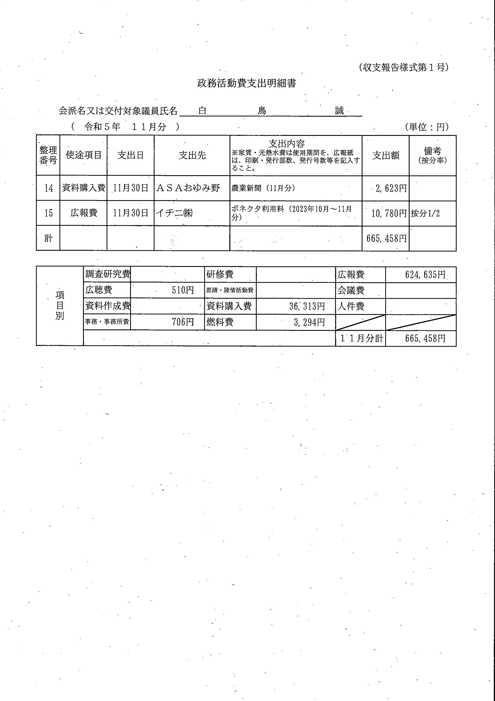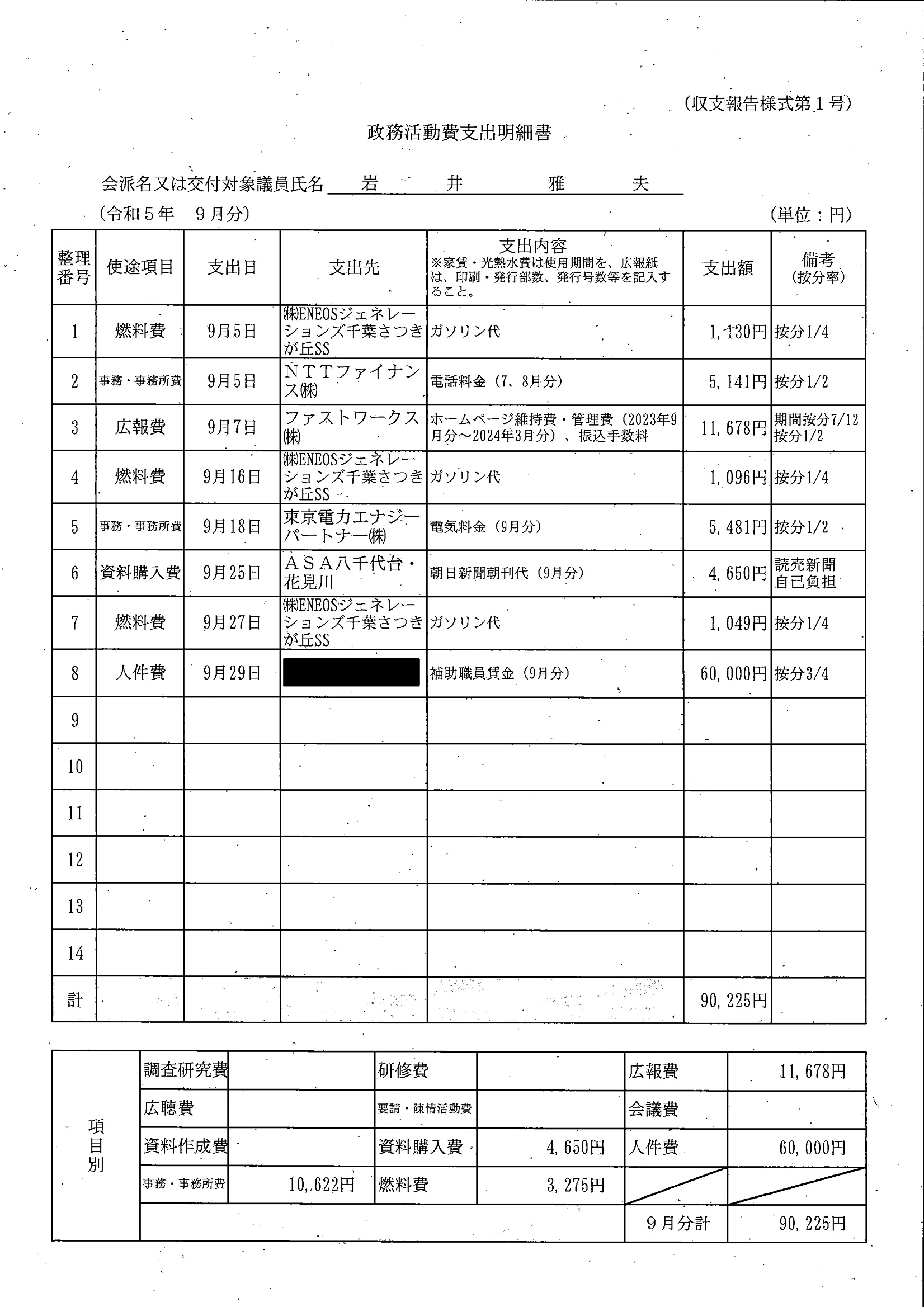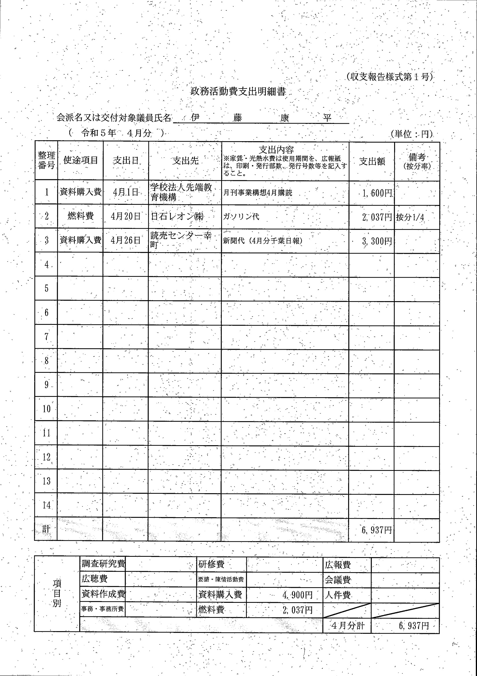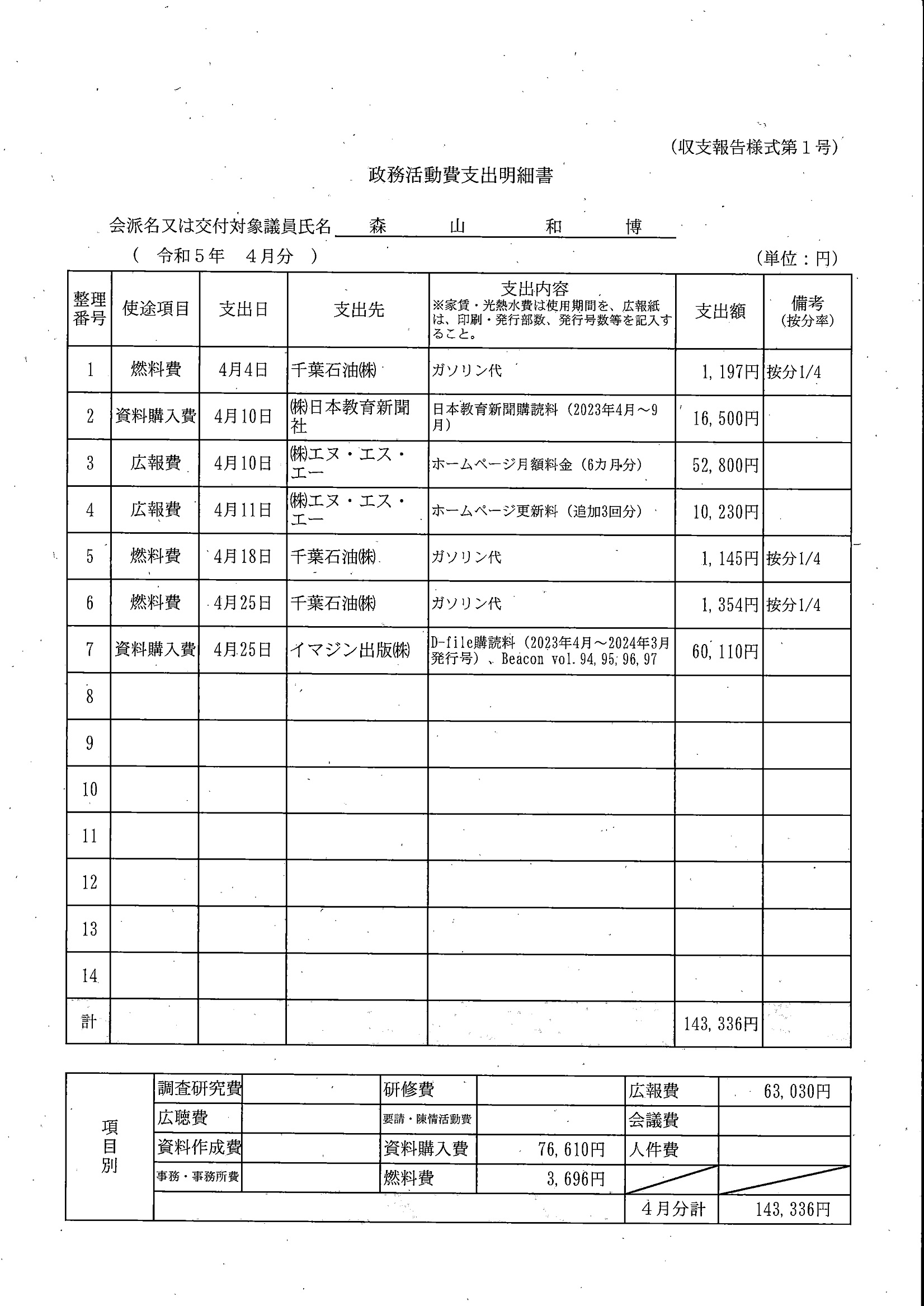 千葉市議会トップページ > 広報・情報公開 > 政務活動費 > 令和5年度交付分(政務活動費収支報告書)