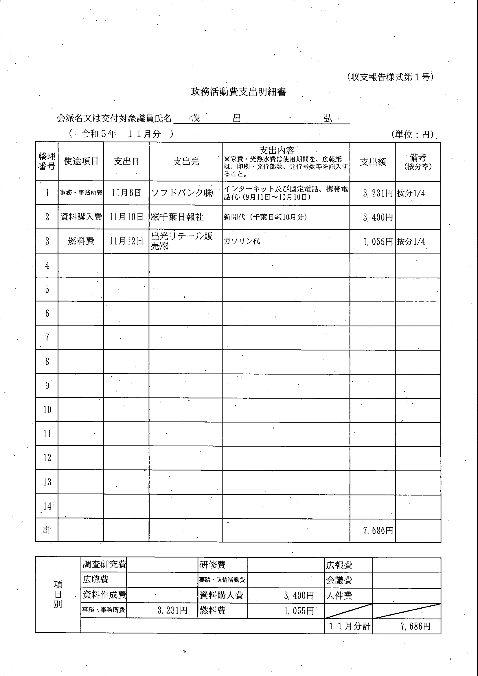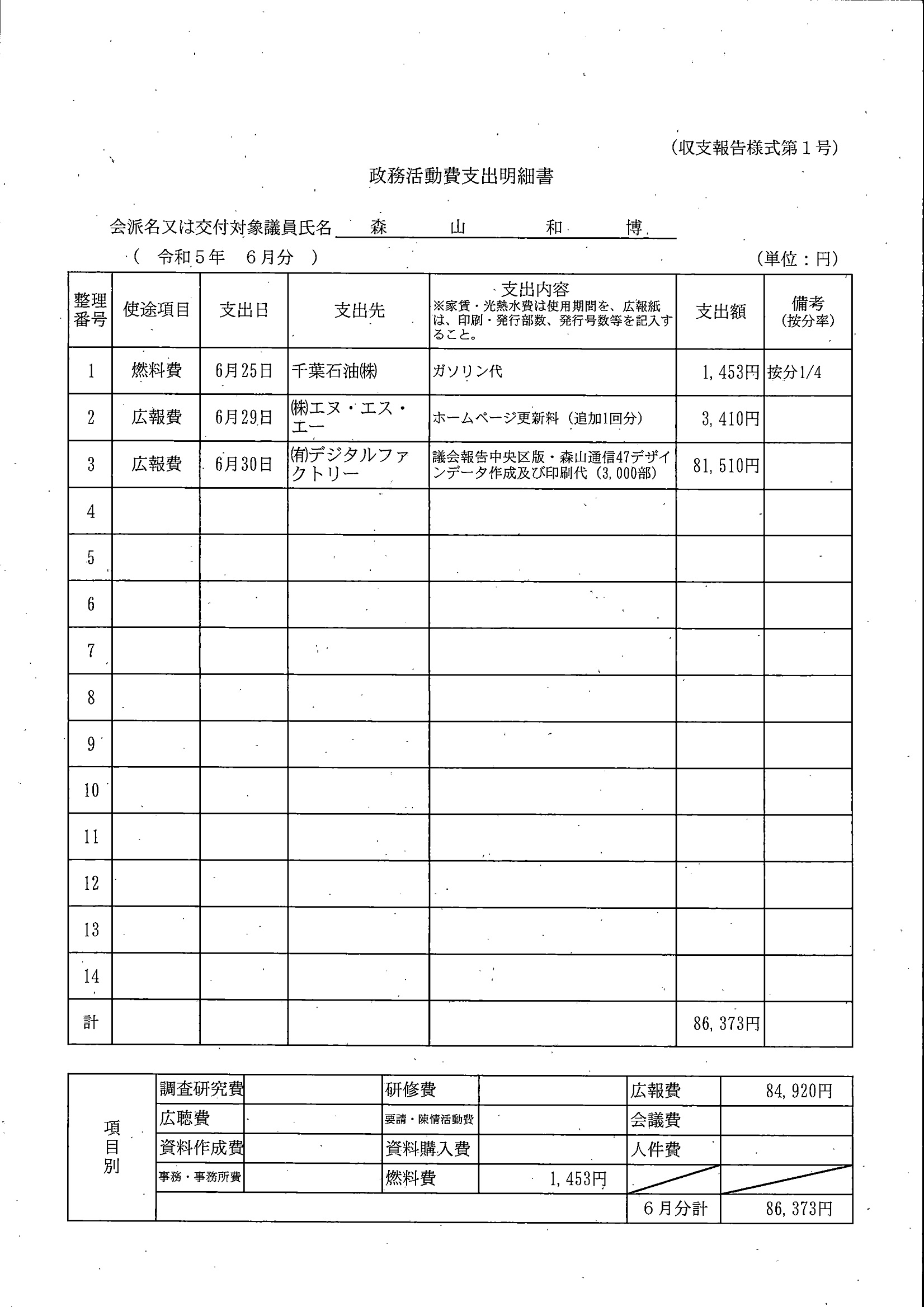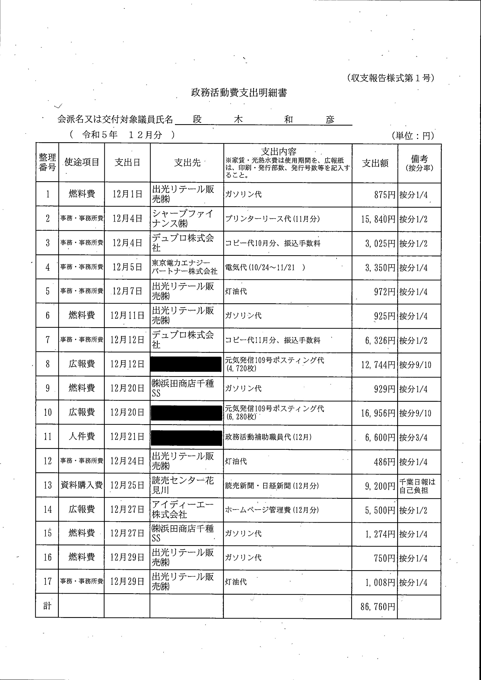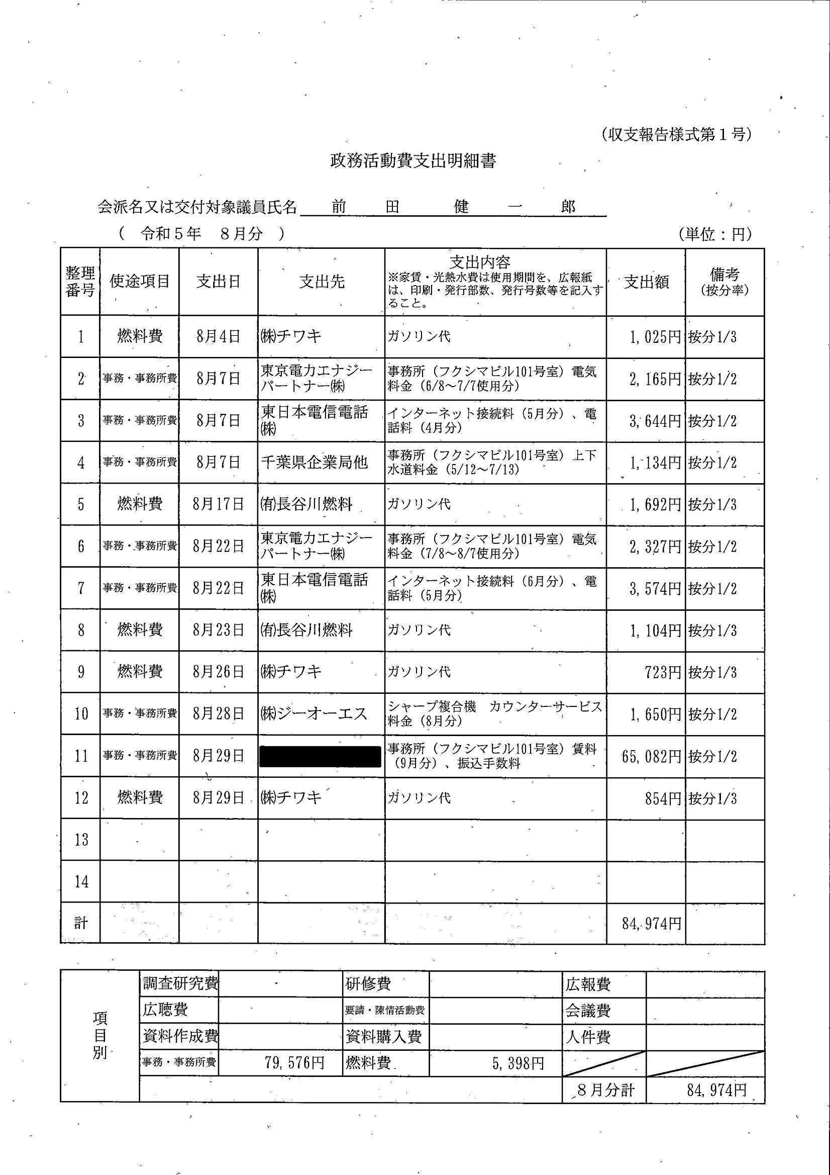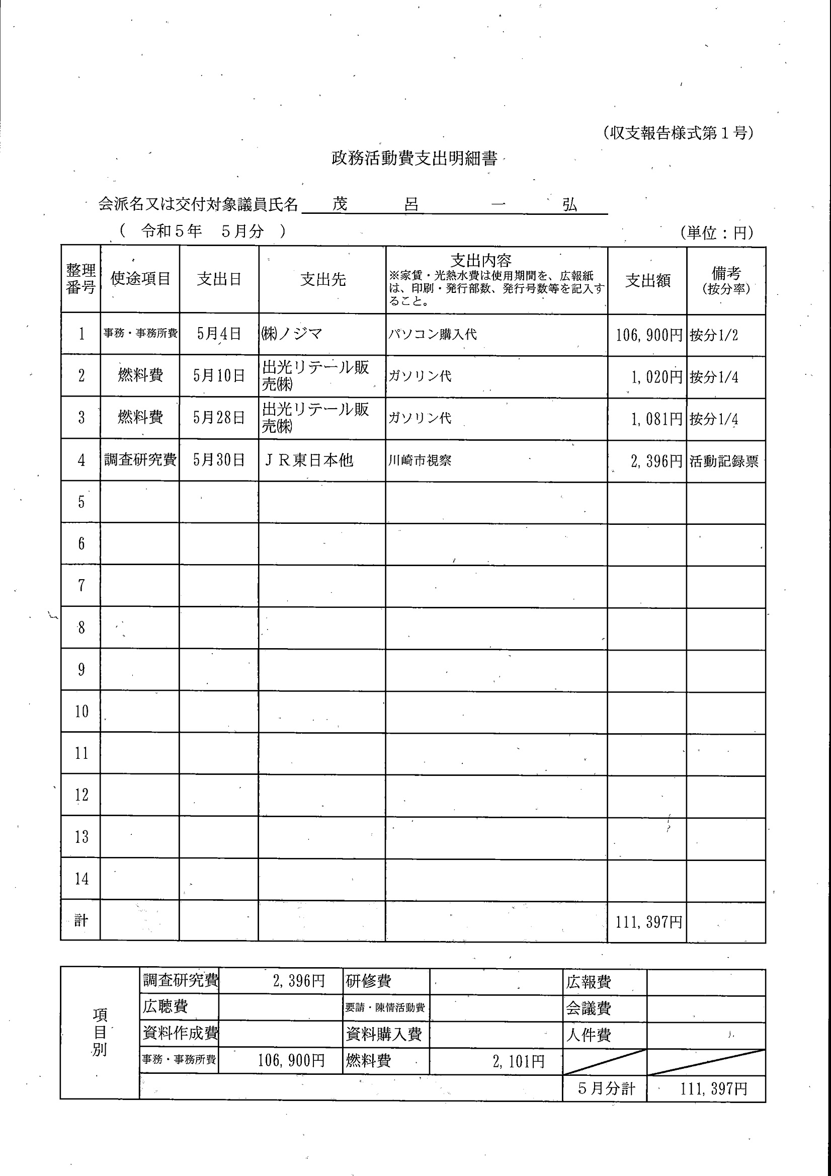 千葉市議会トップページ > 広報・情報公開 > 政務活動費 > 令和5年度交付分(政務活動費収支報告書)