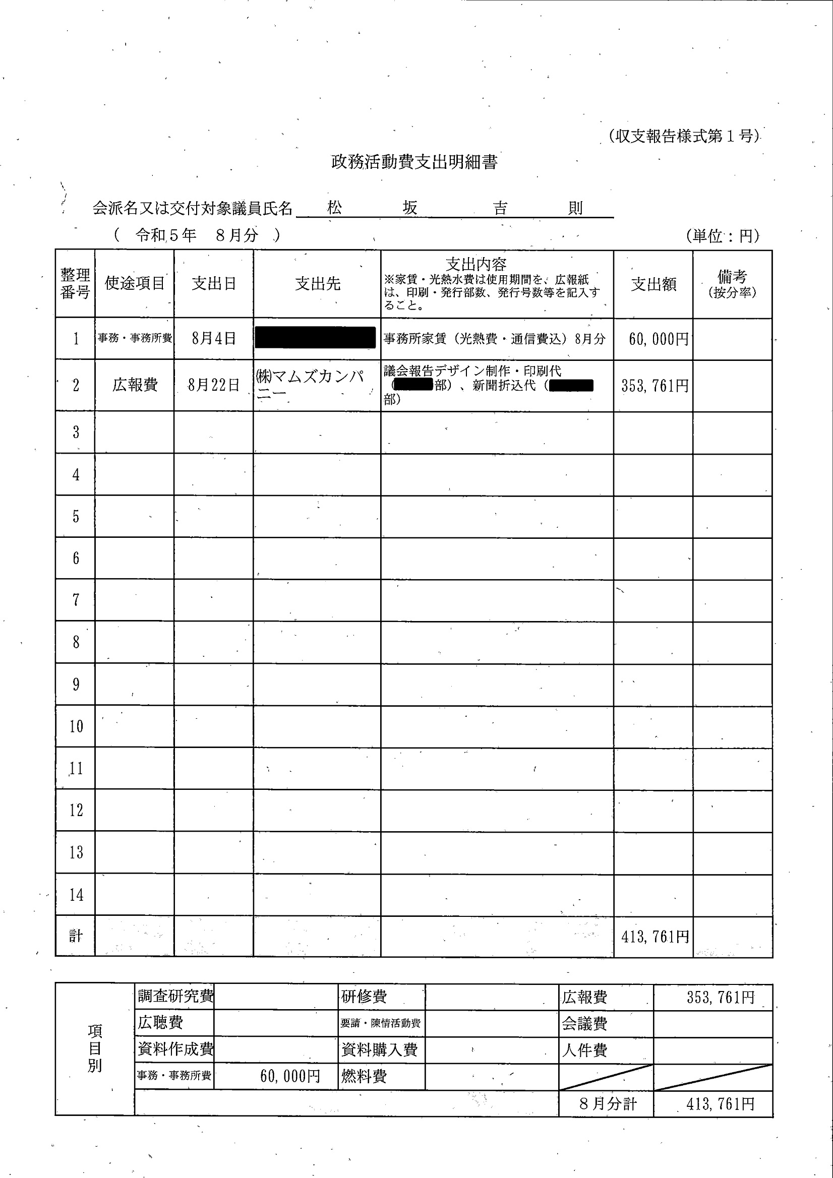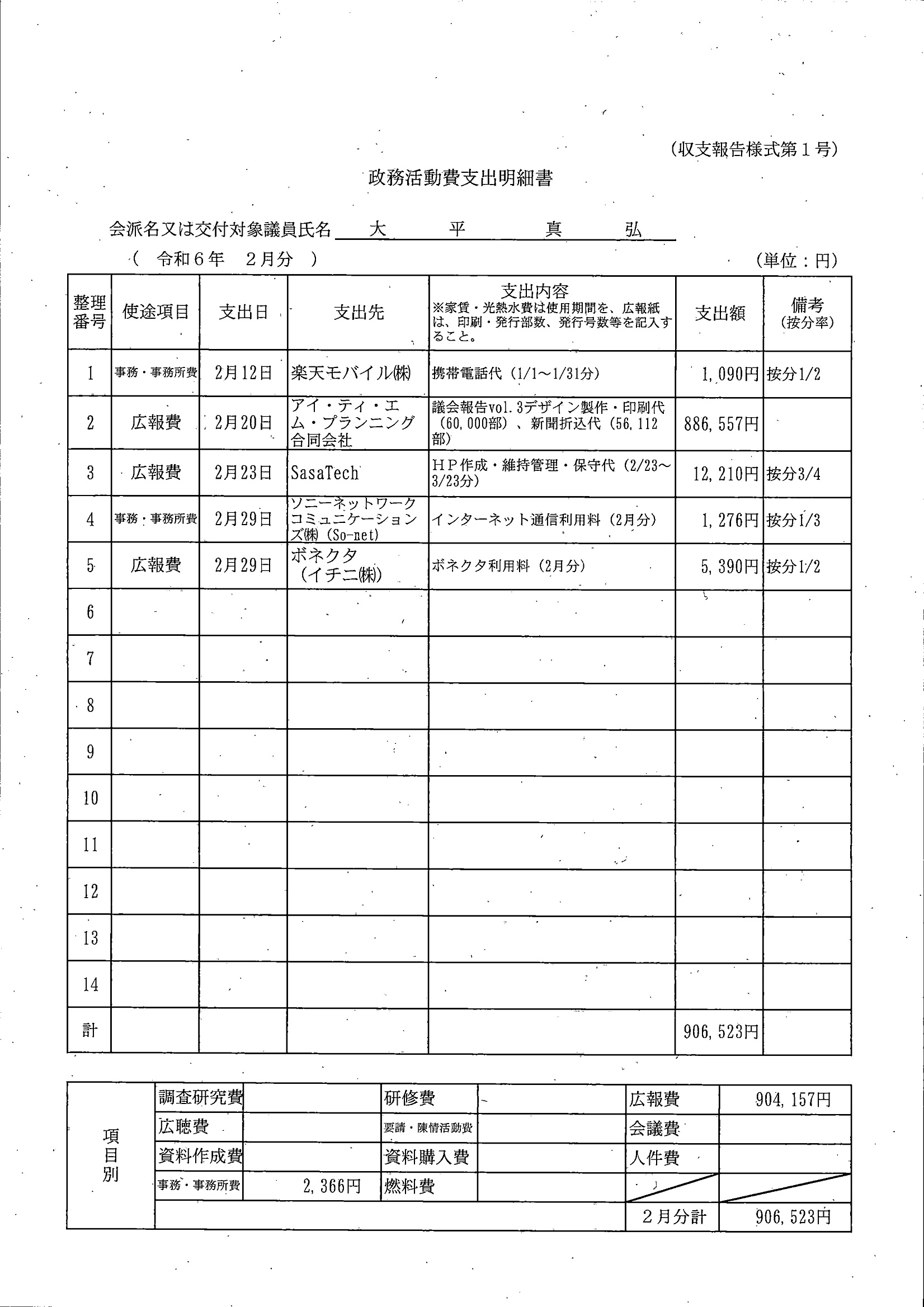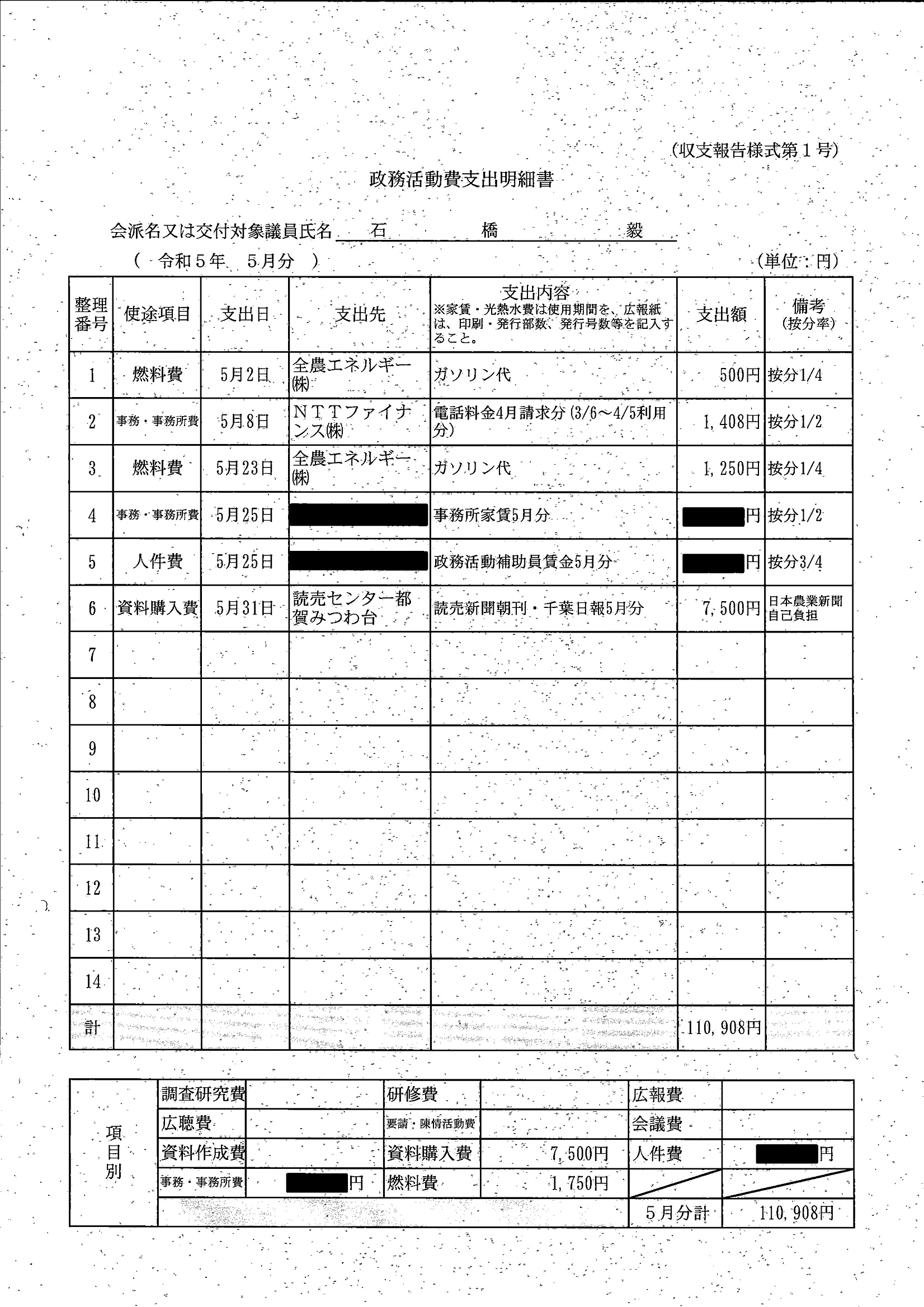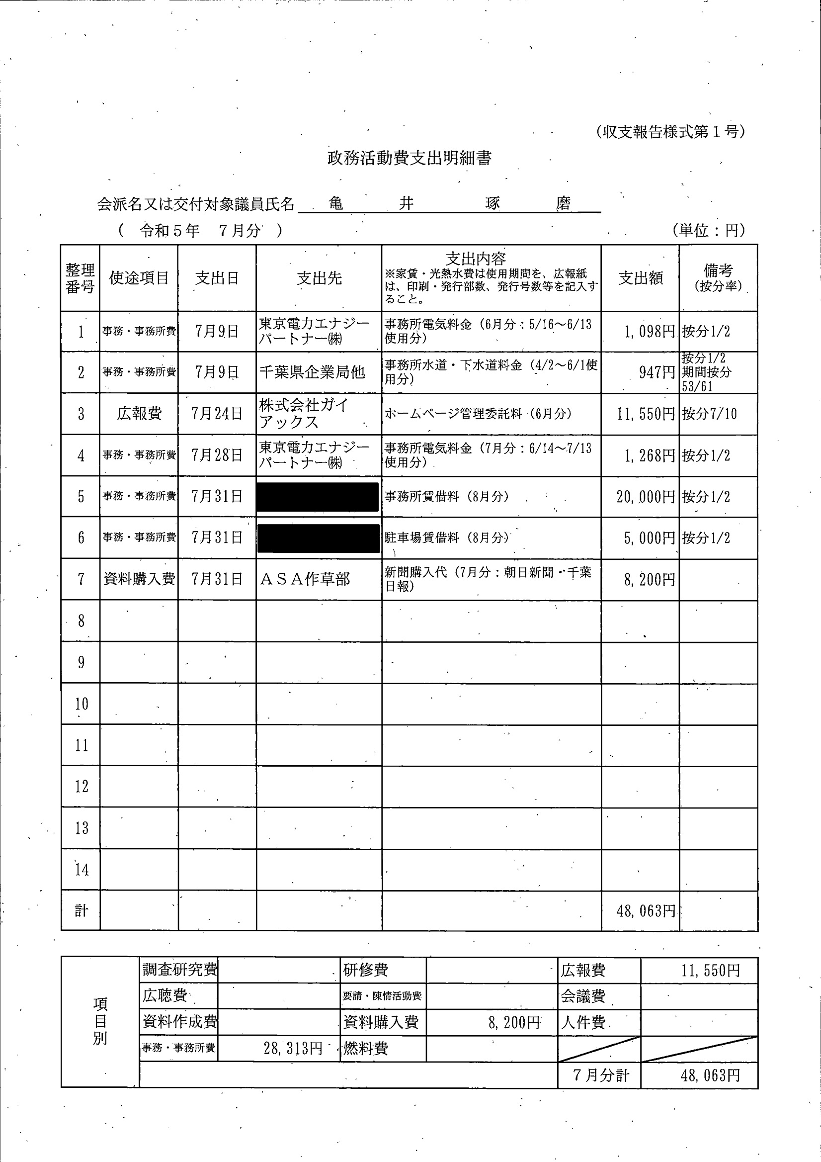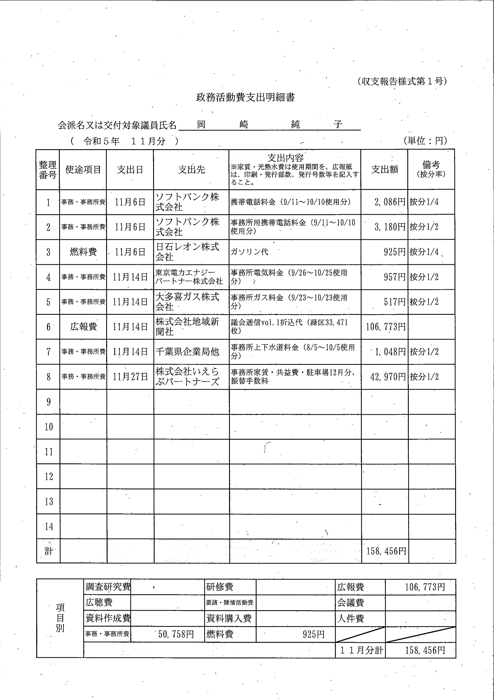 千葉市議会トップページ > 広報・情報公開 > 政務活動費 > 令和5年度交付分(政務活動費収支報告書)