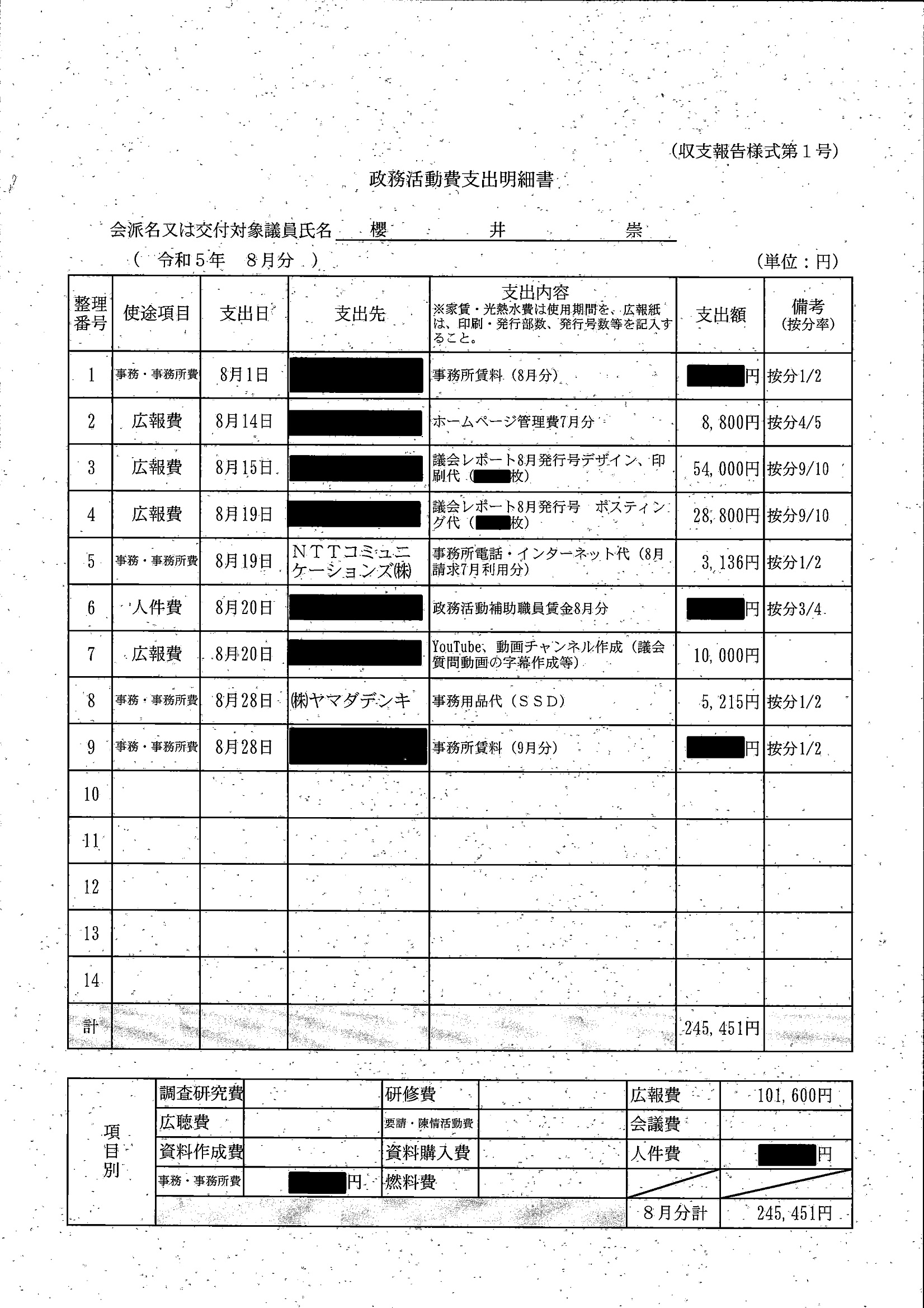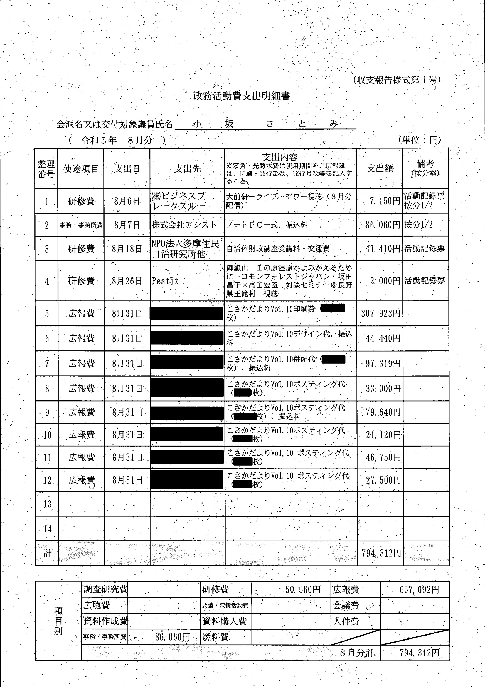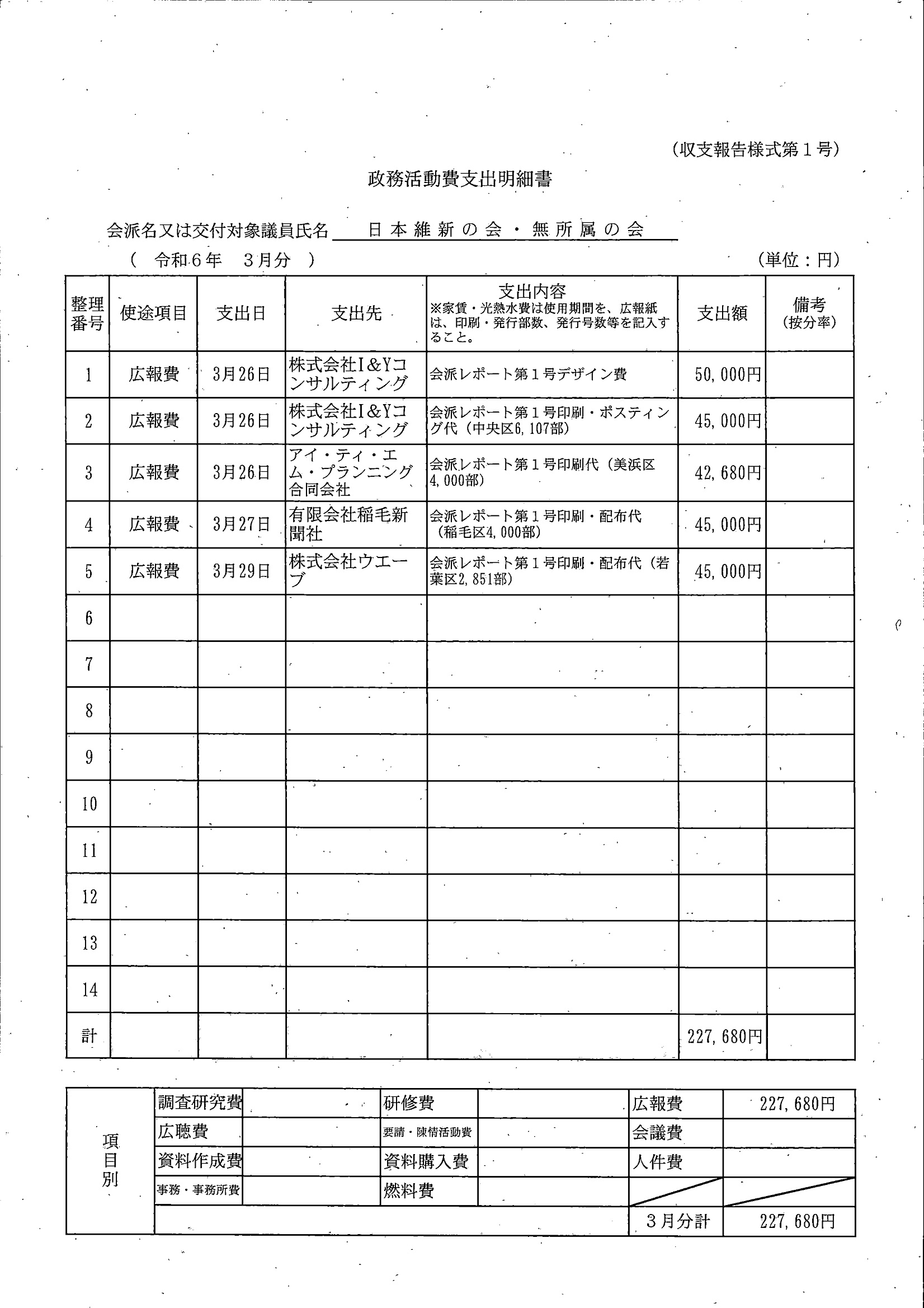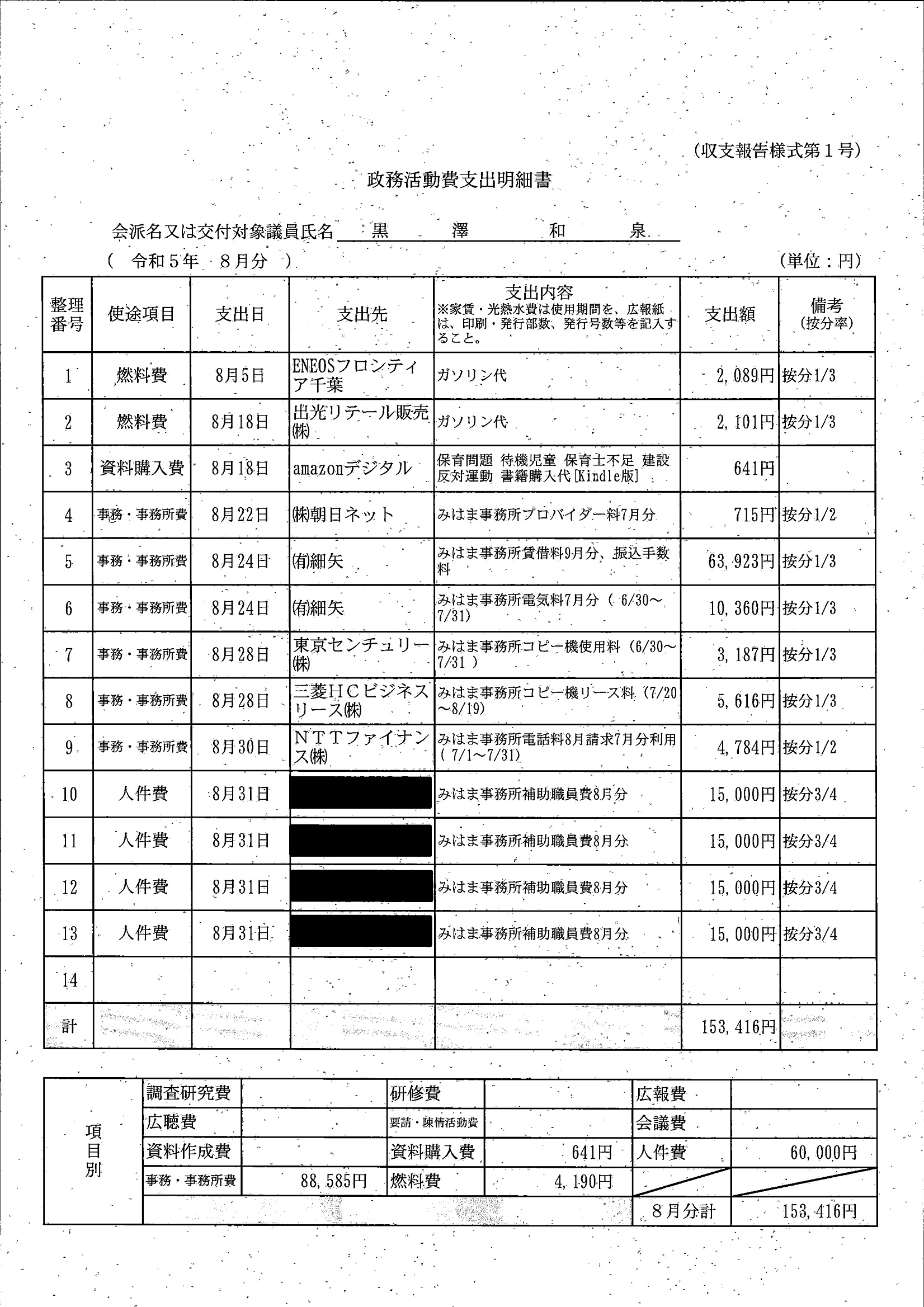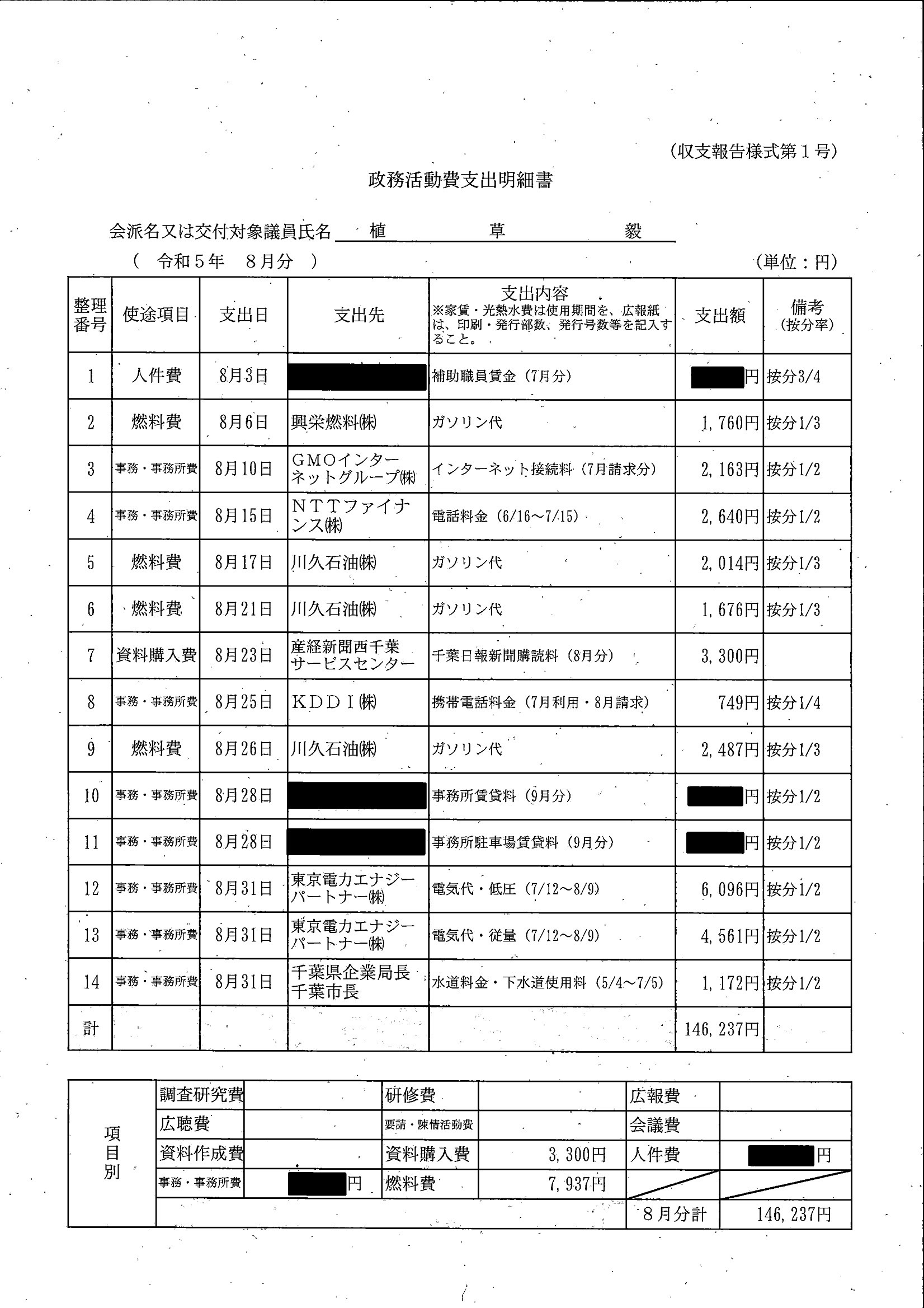 千葉市議会トップページ > 広報・情報公開 > 政務活動費 > 令和5年度交付分(政務活動費収支報告書)