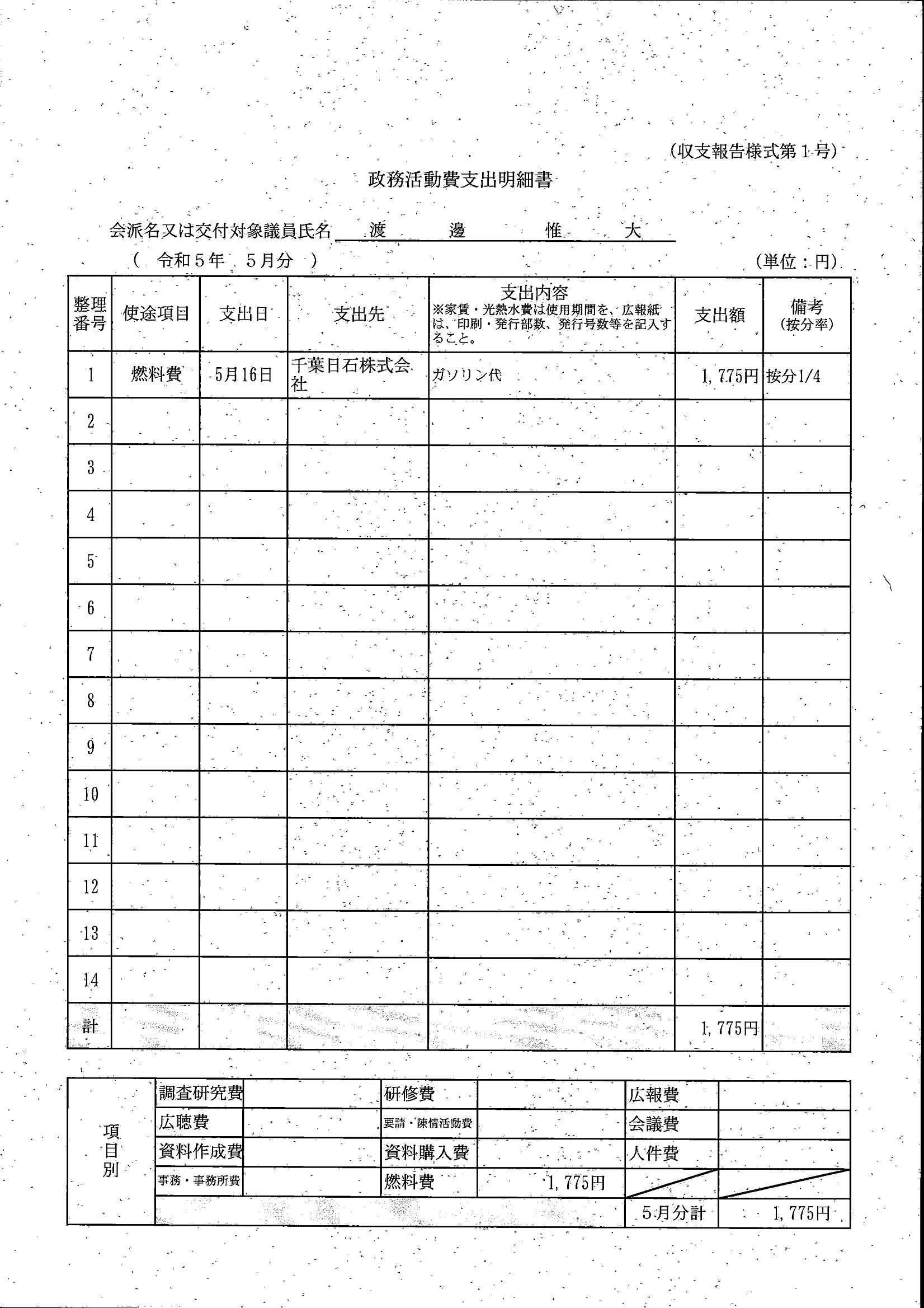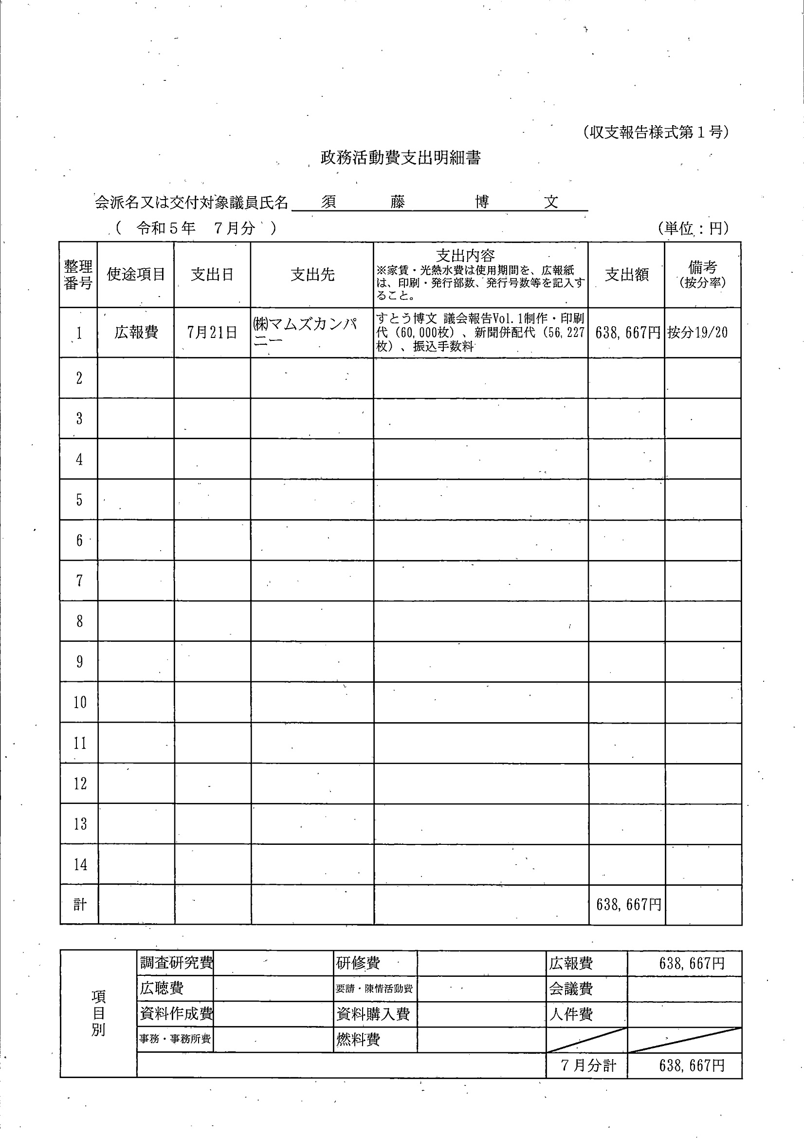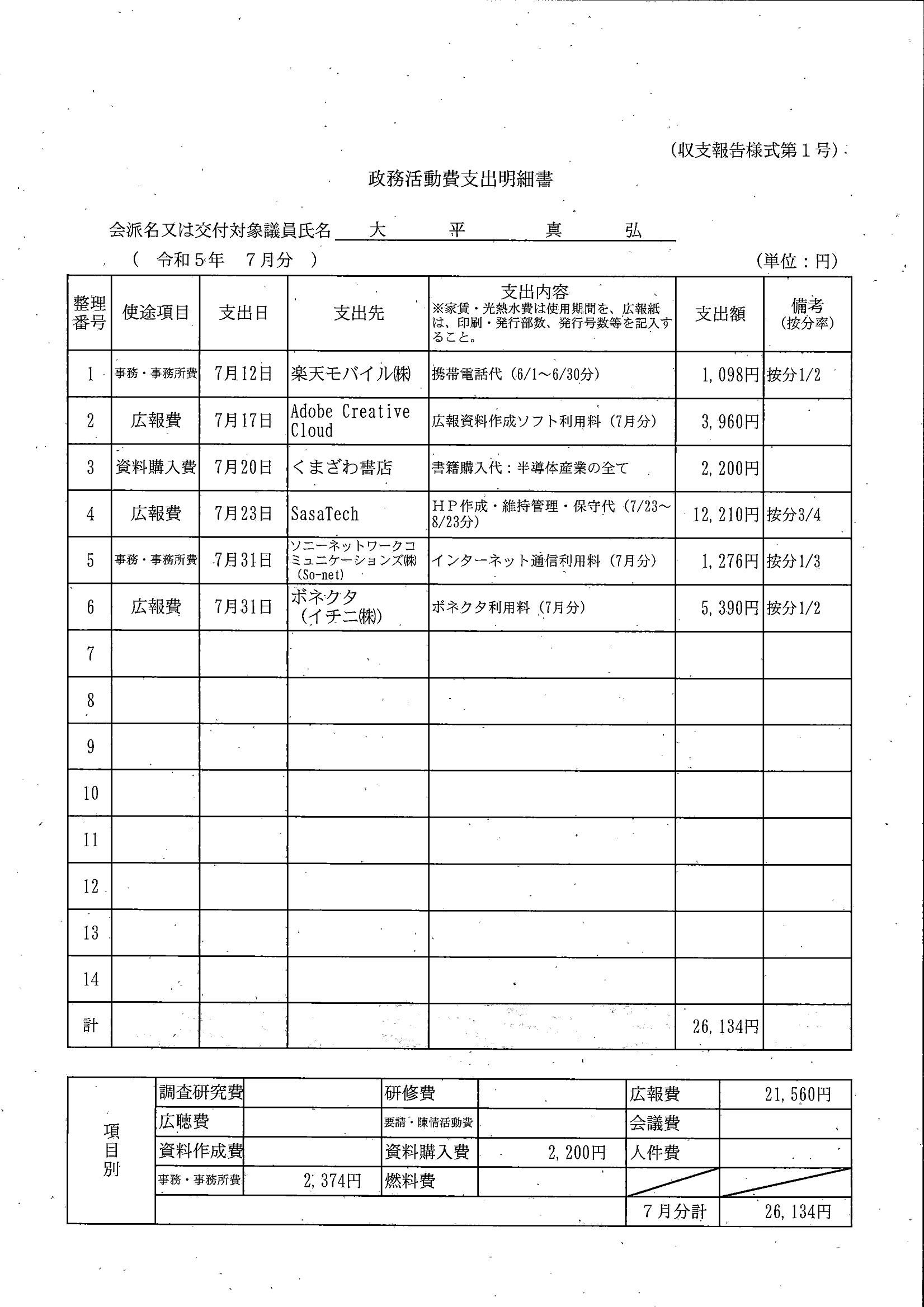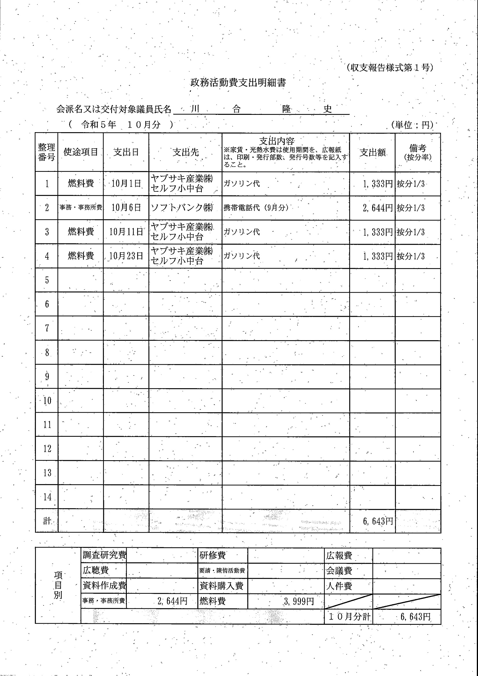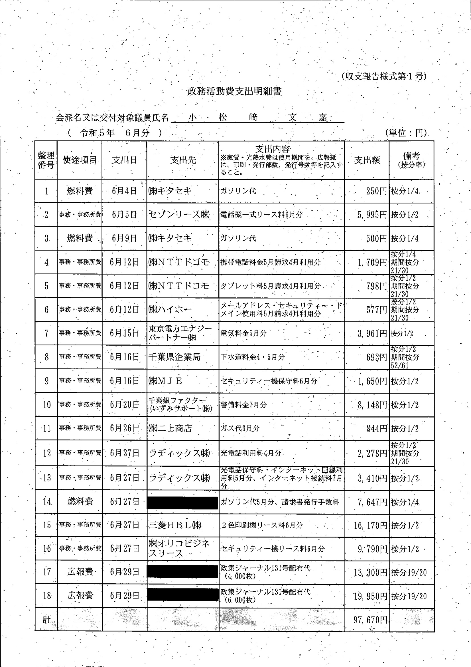 千葉市議会トップページ > 広報・情報公開 > 政務活動費 > 令和5年度交付分(政務活動費収支報告書)