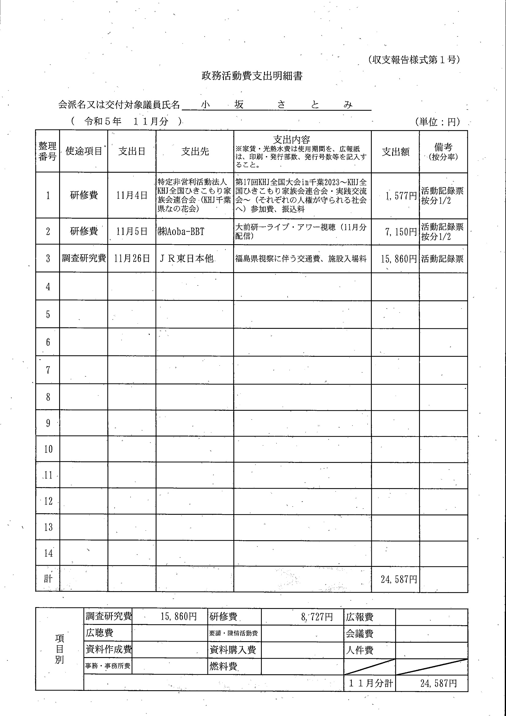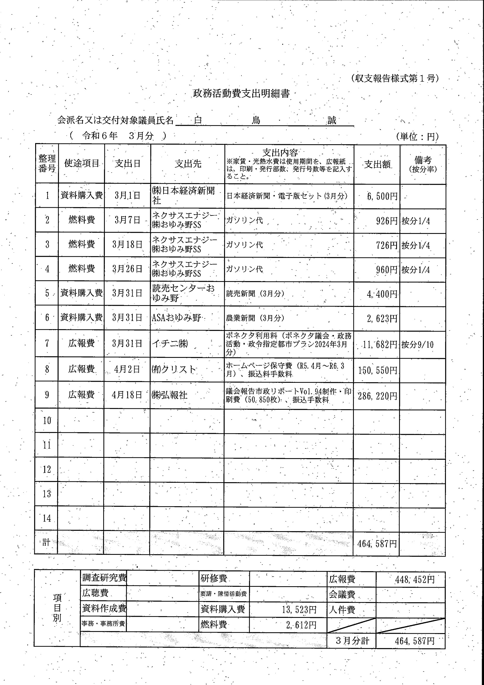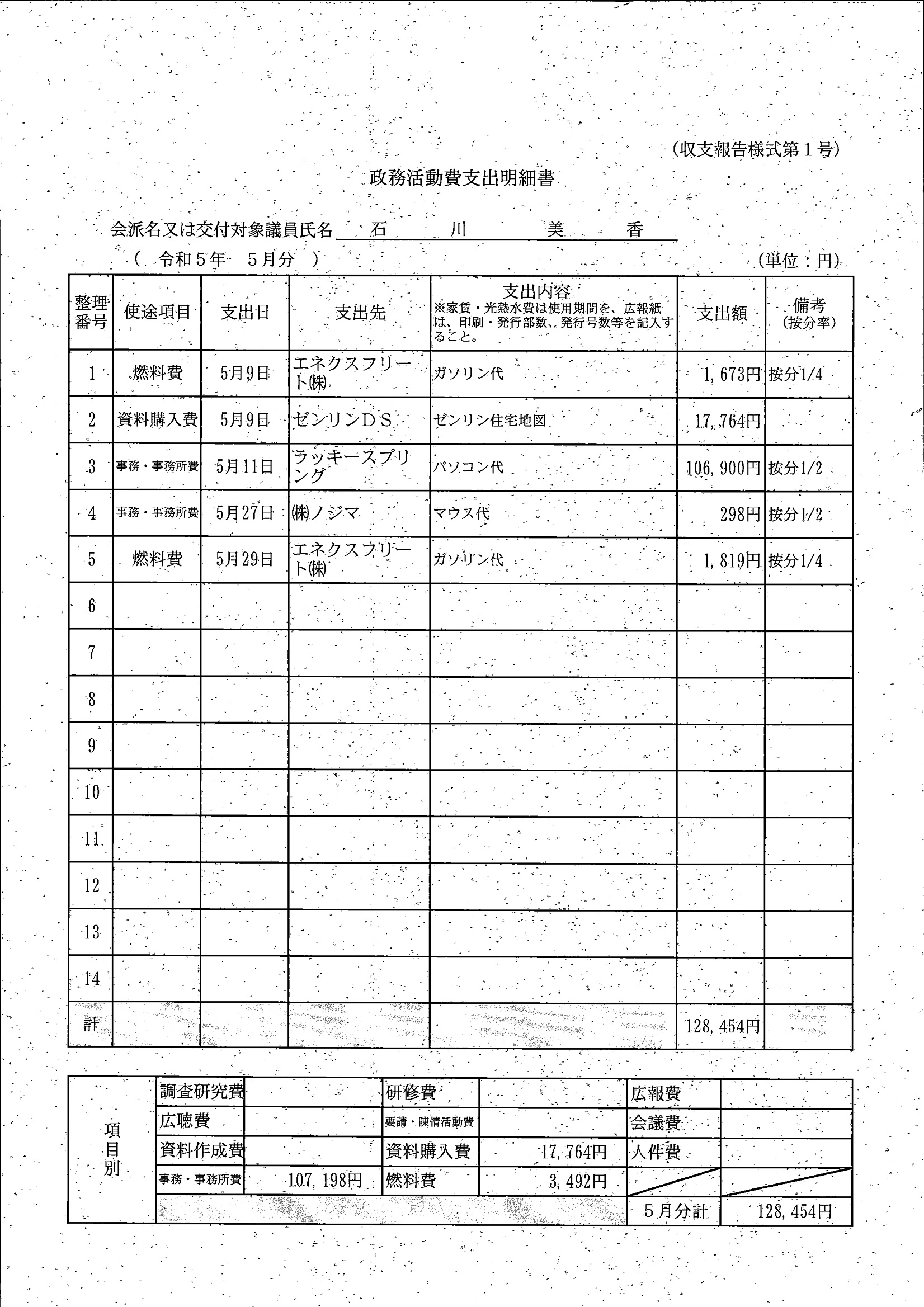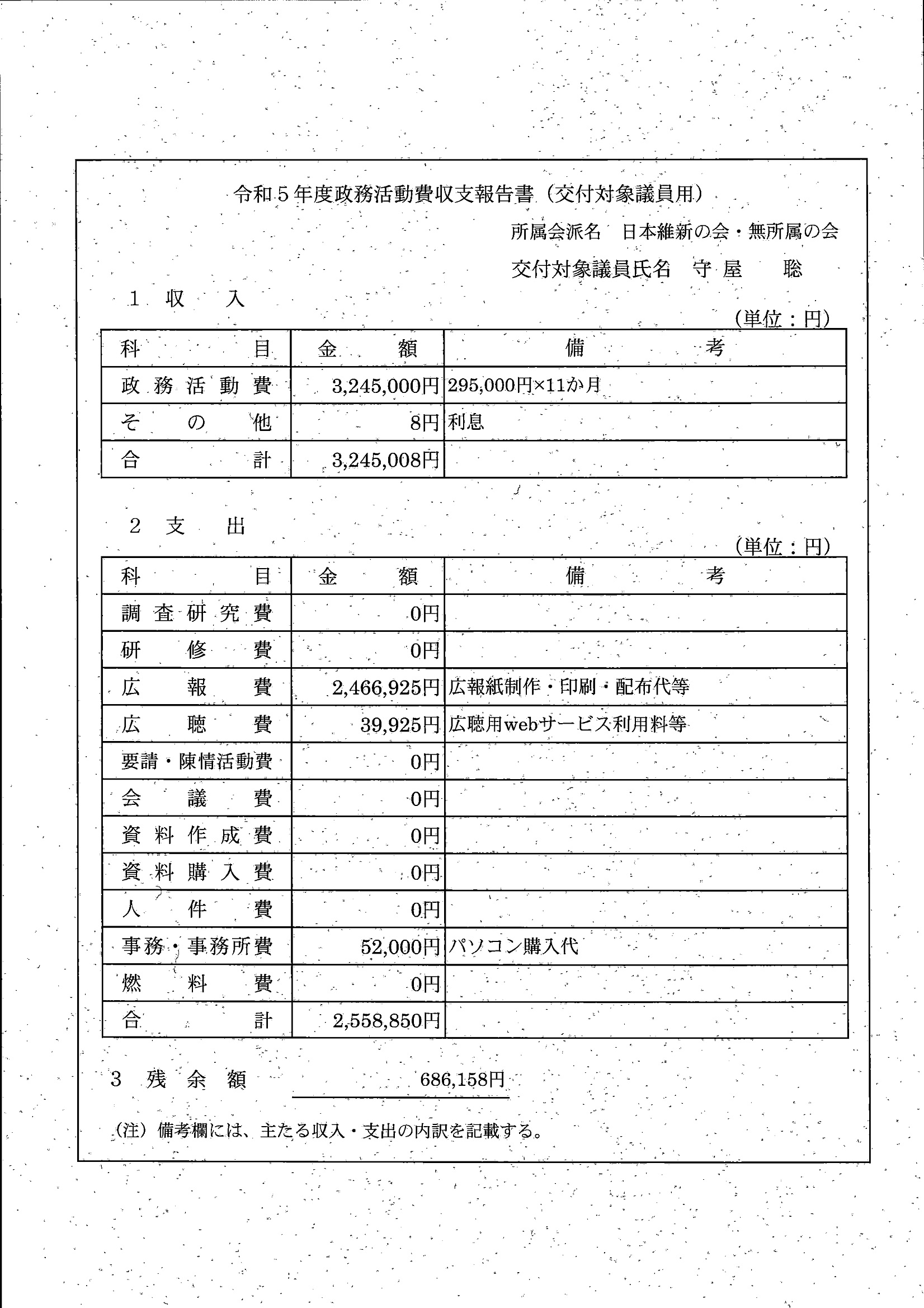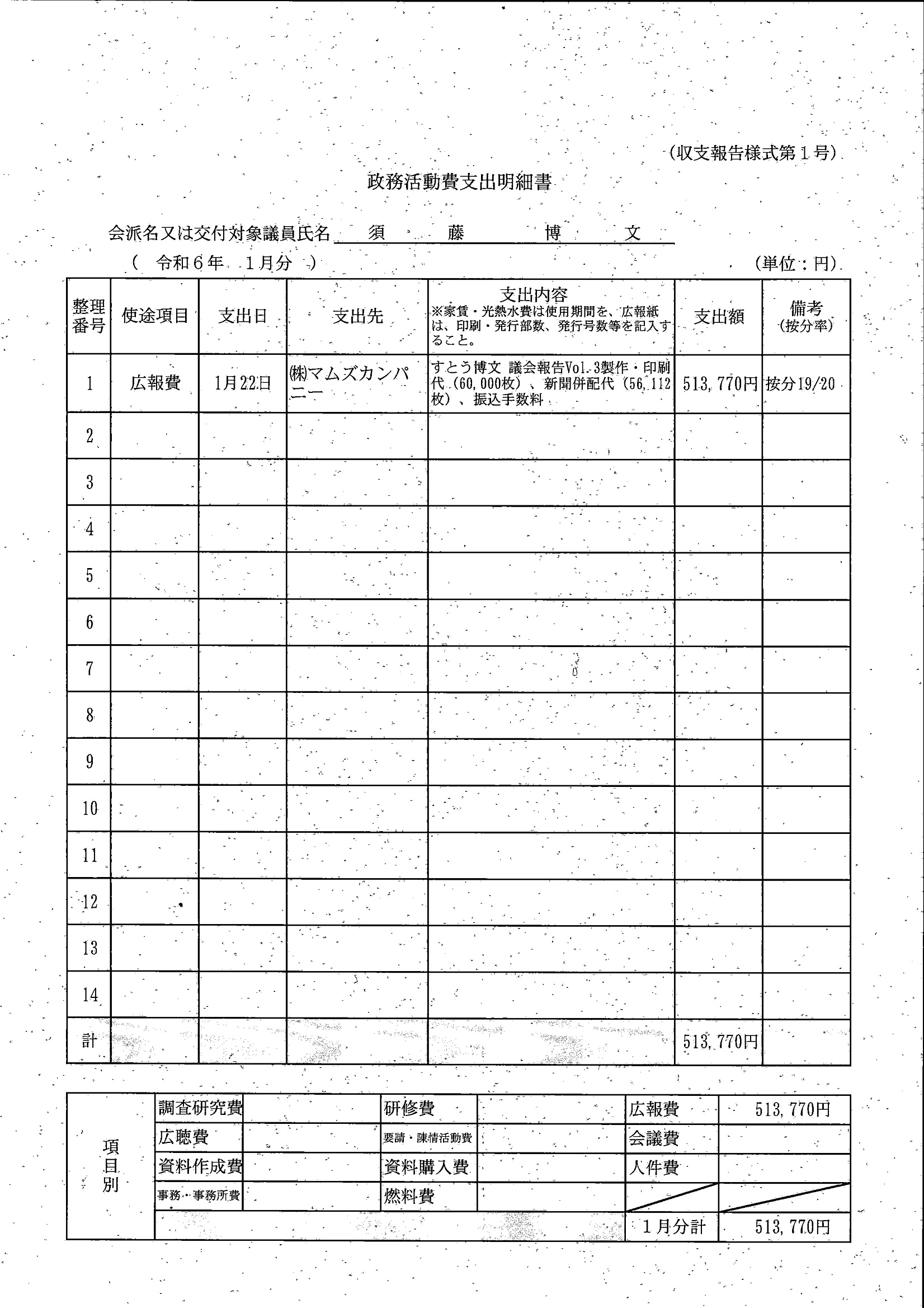 千葉市議会トップページ > 広報・情報公開 > 政務活動費 > 令和5年度交付分(政務活動費収支報告書)