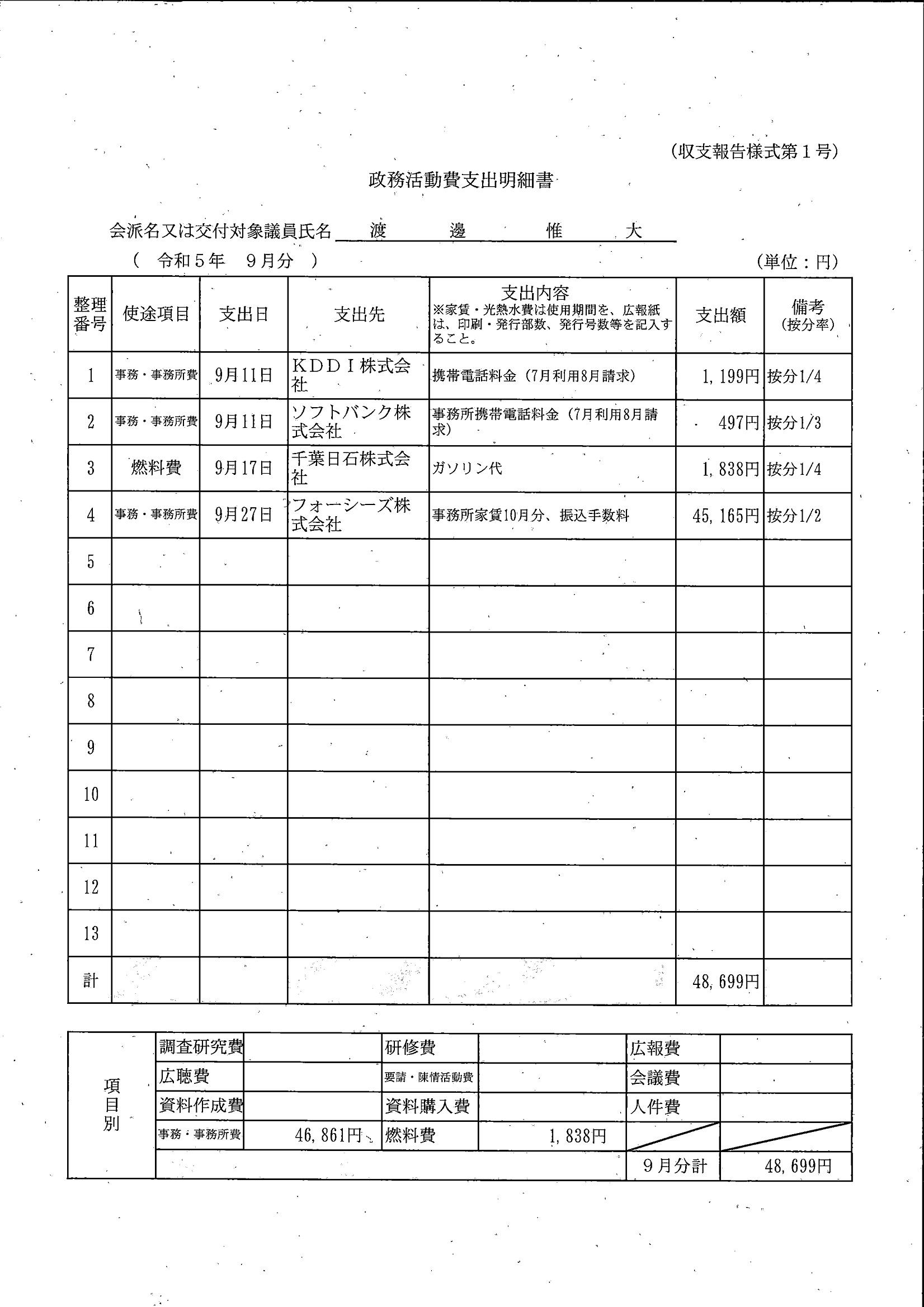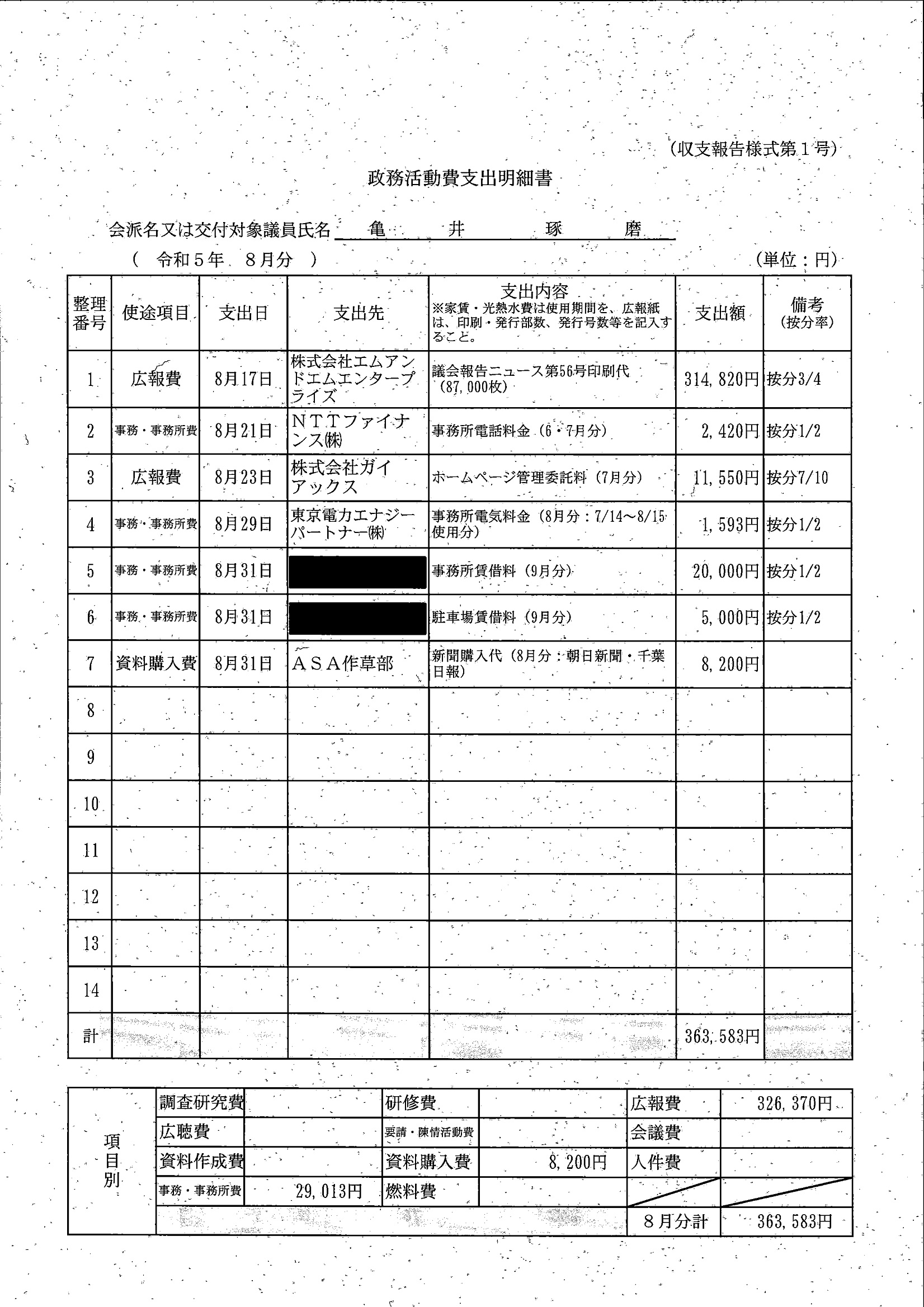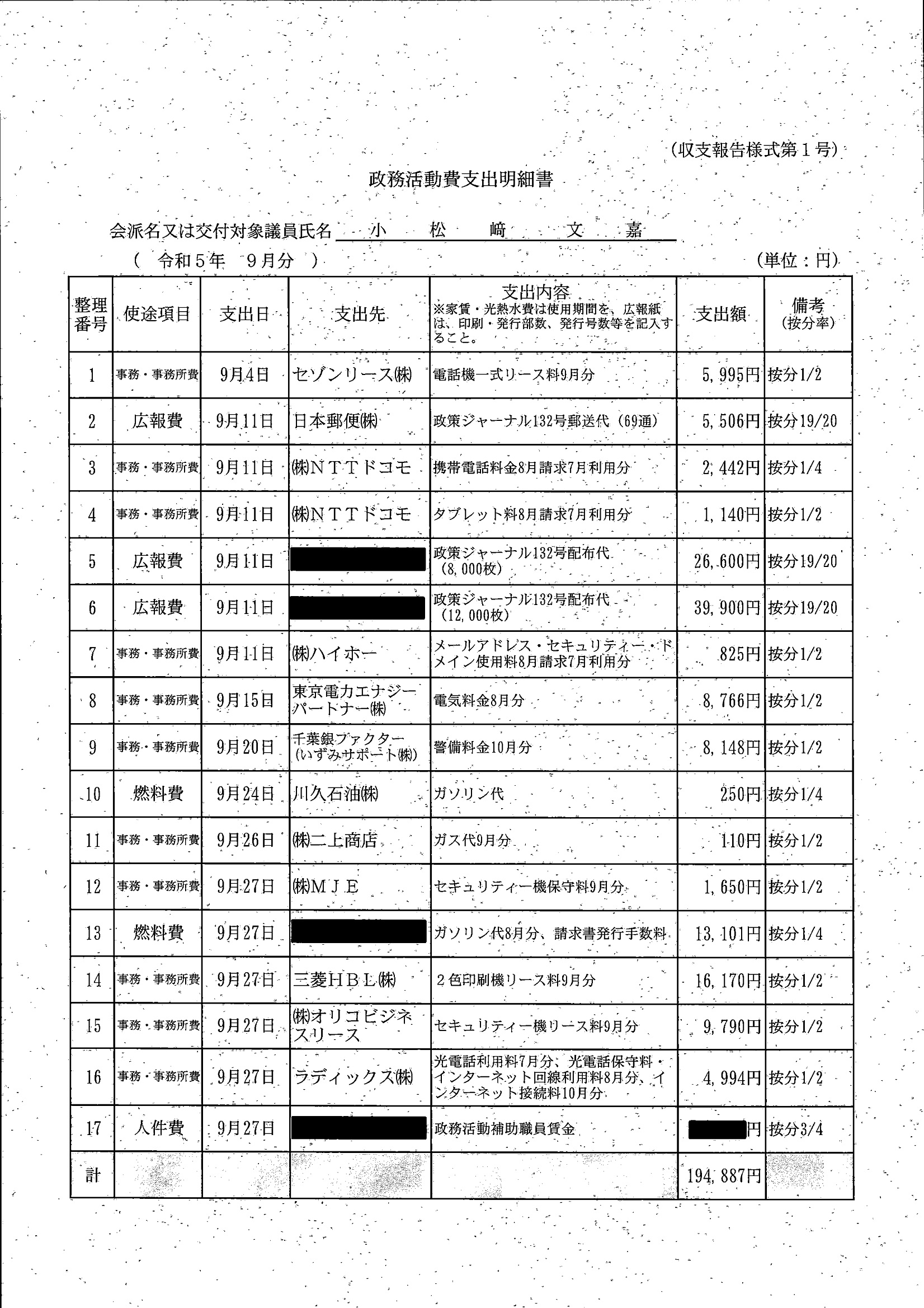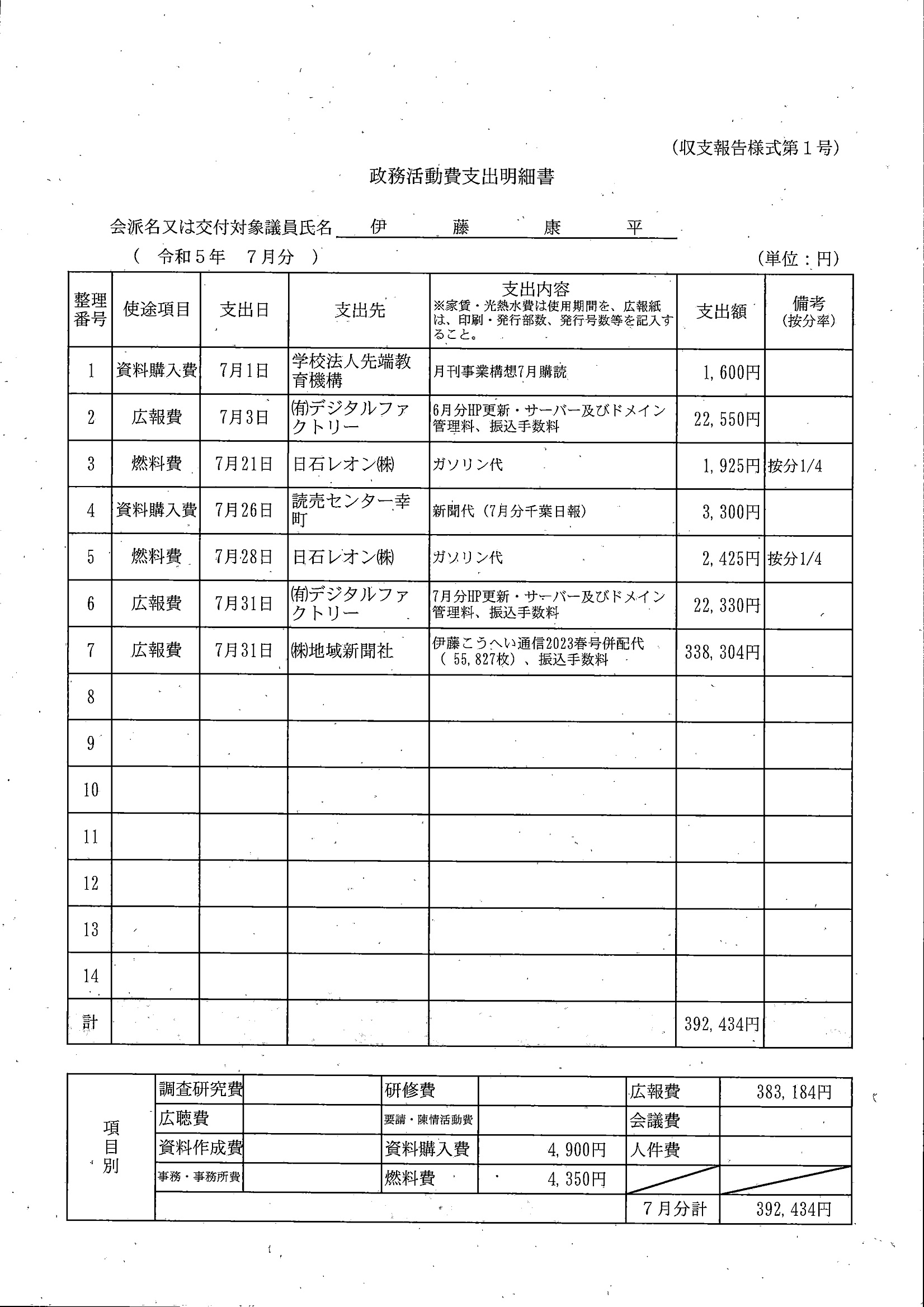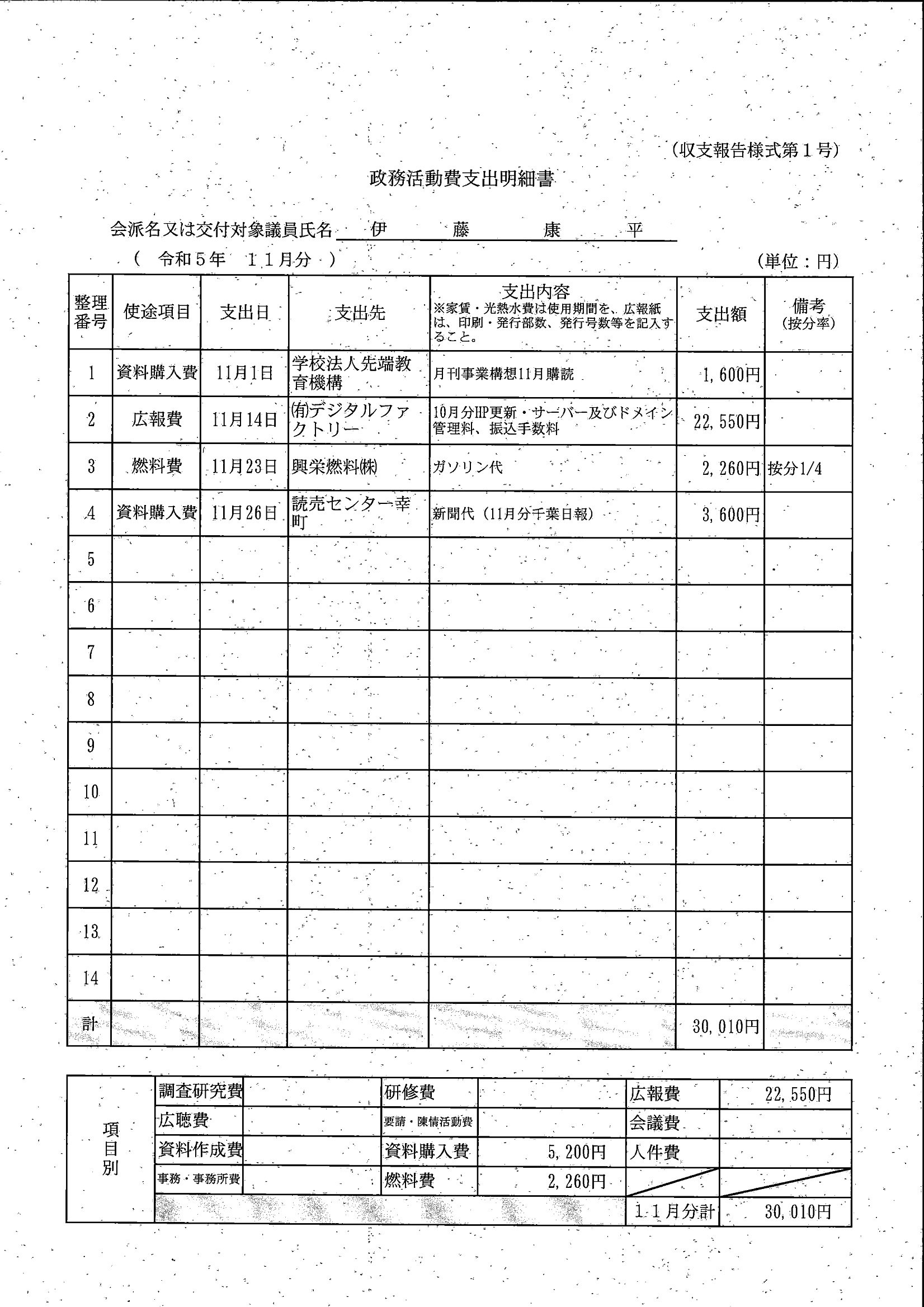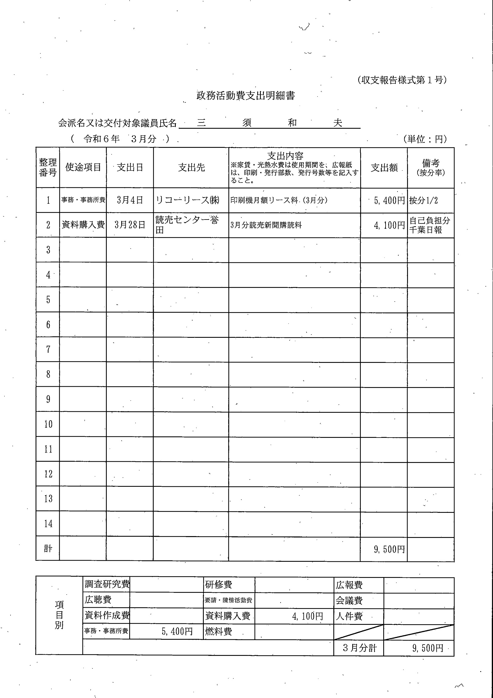 千葉市議会トップページ > 広報・情報公開 > 政務活動費 > 令和5年度交付分(政務活動費収支報告書)