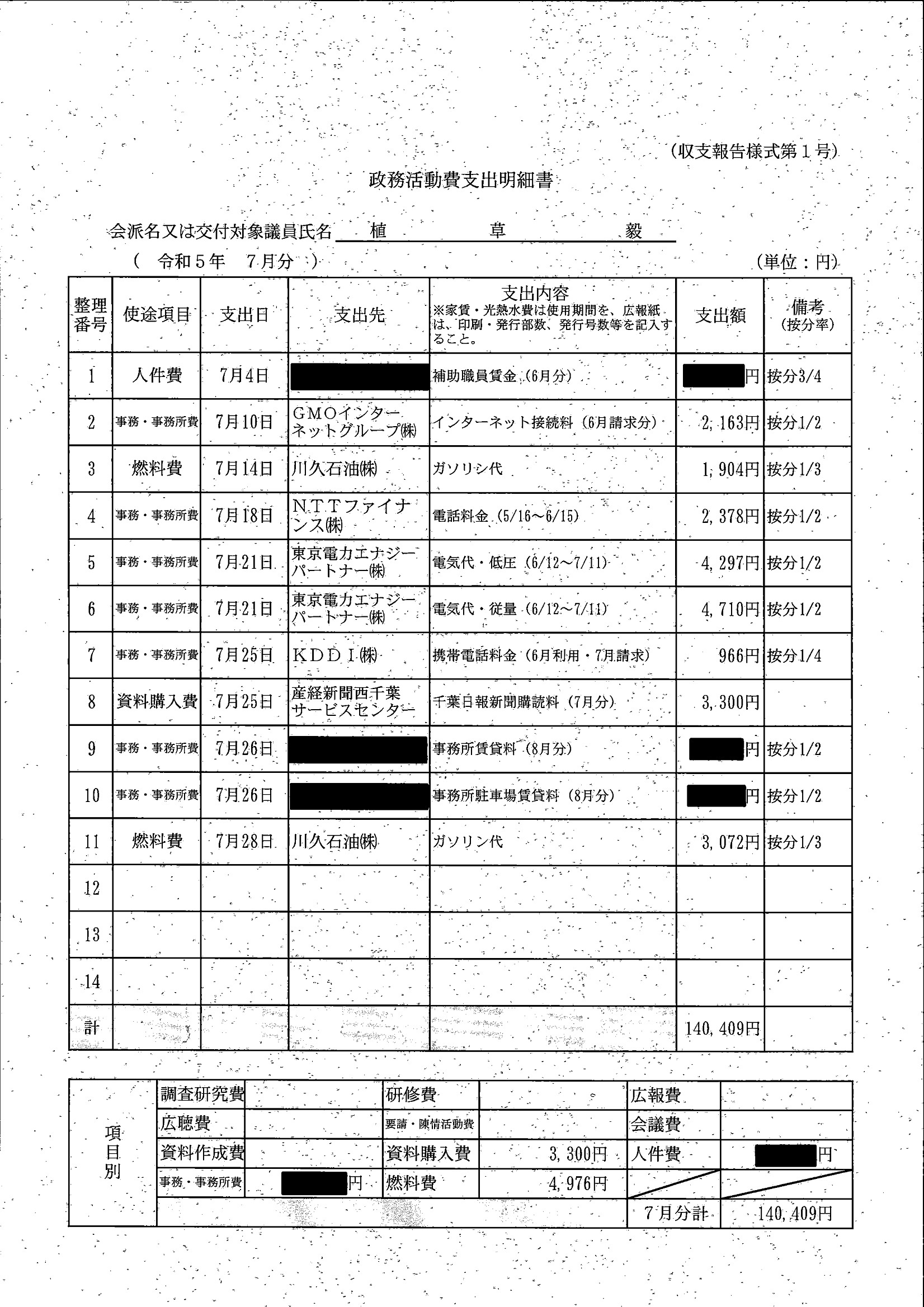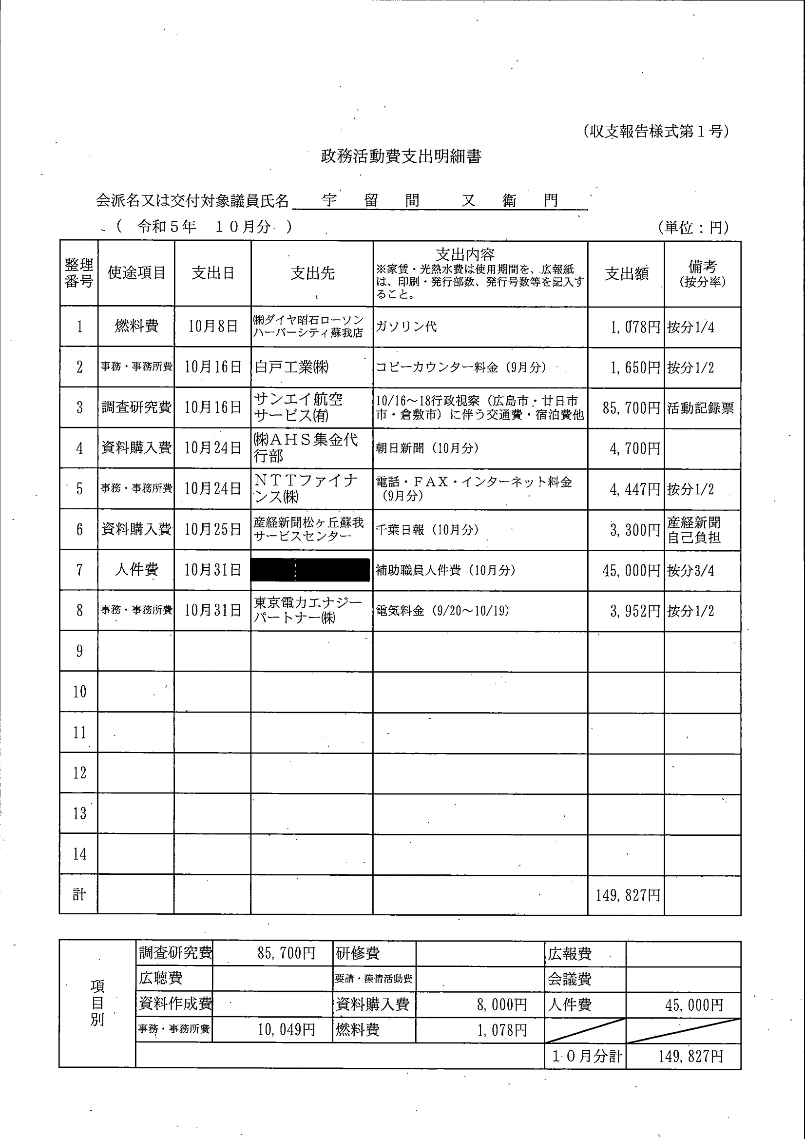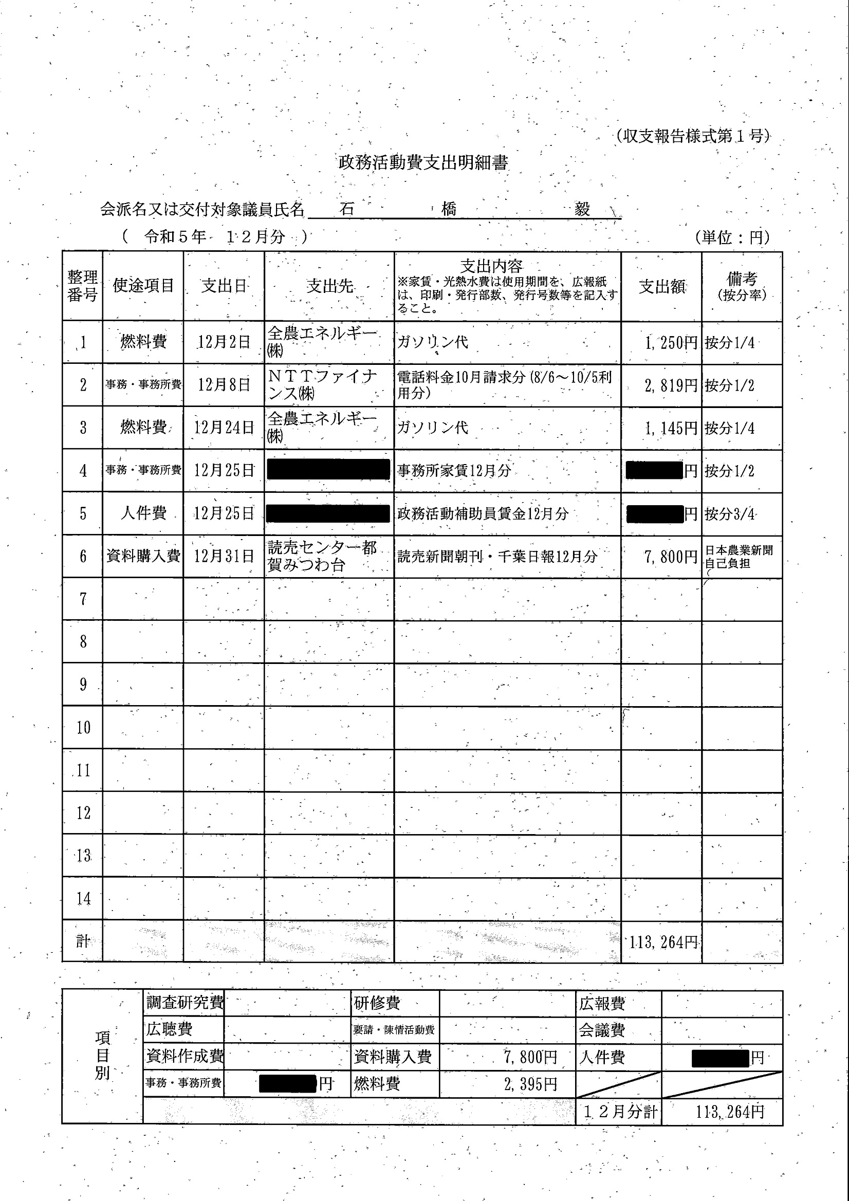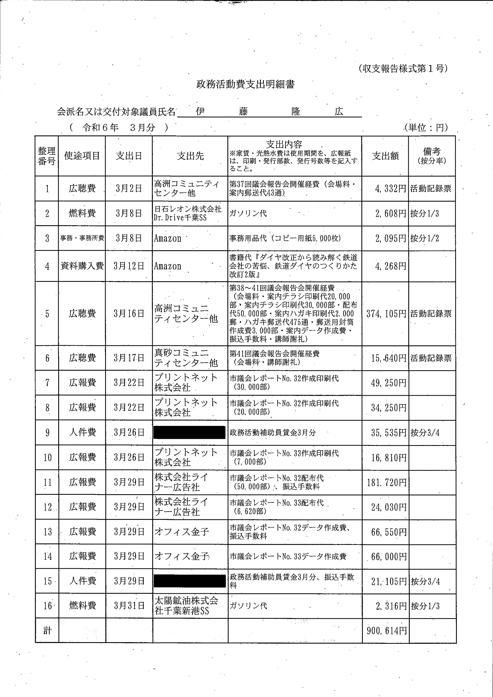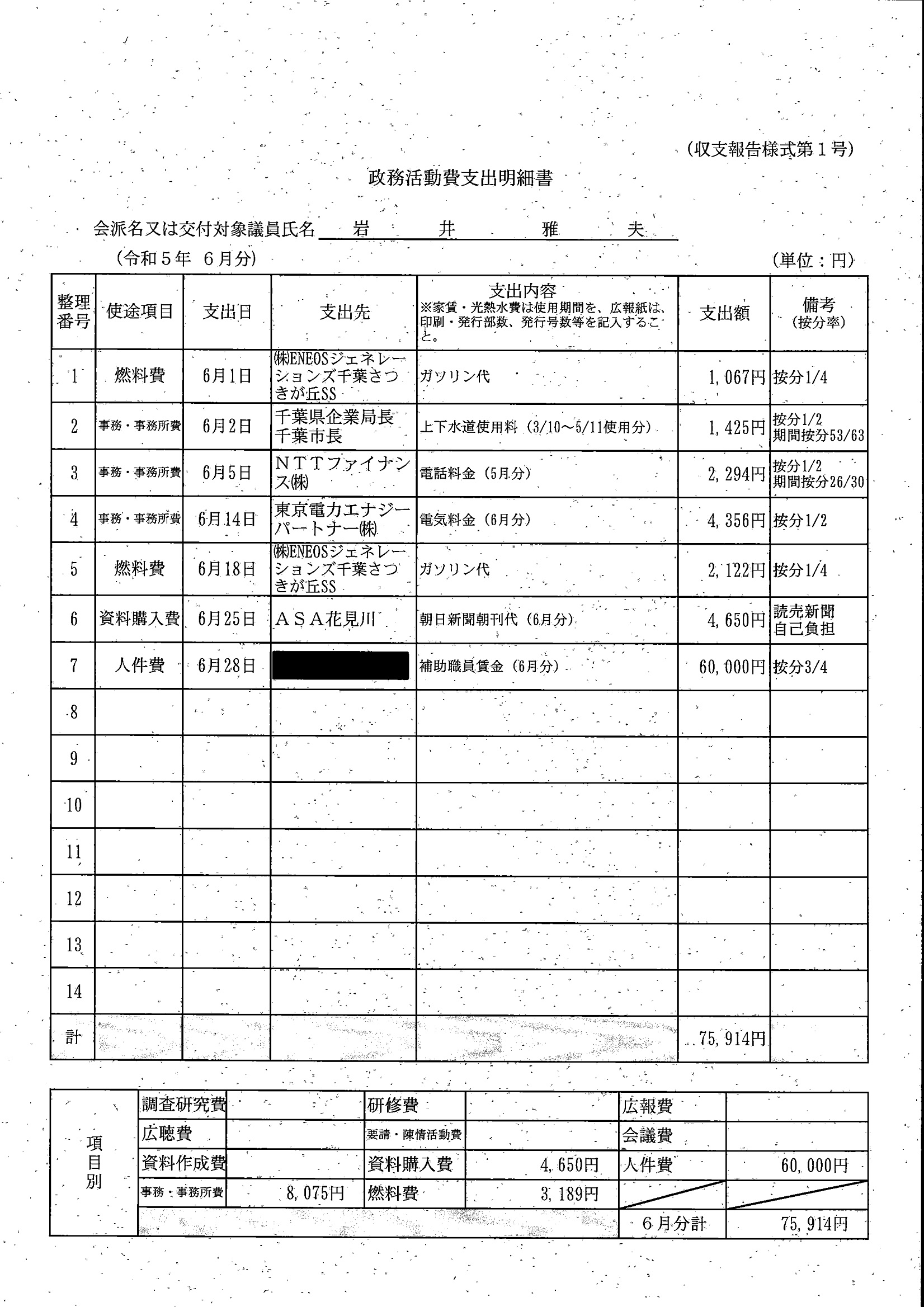千葉市議会トップページ > 広報・情報公開 > 政務活動費 > 令和5年度交付分(政務活動費収支報告書)