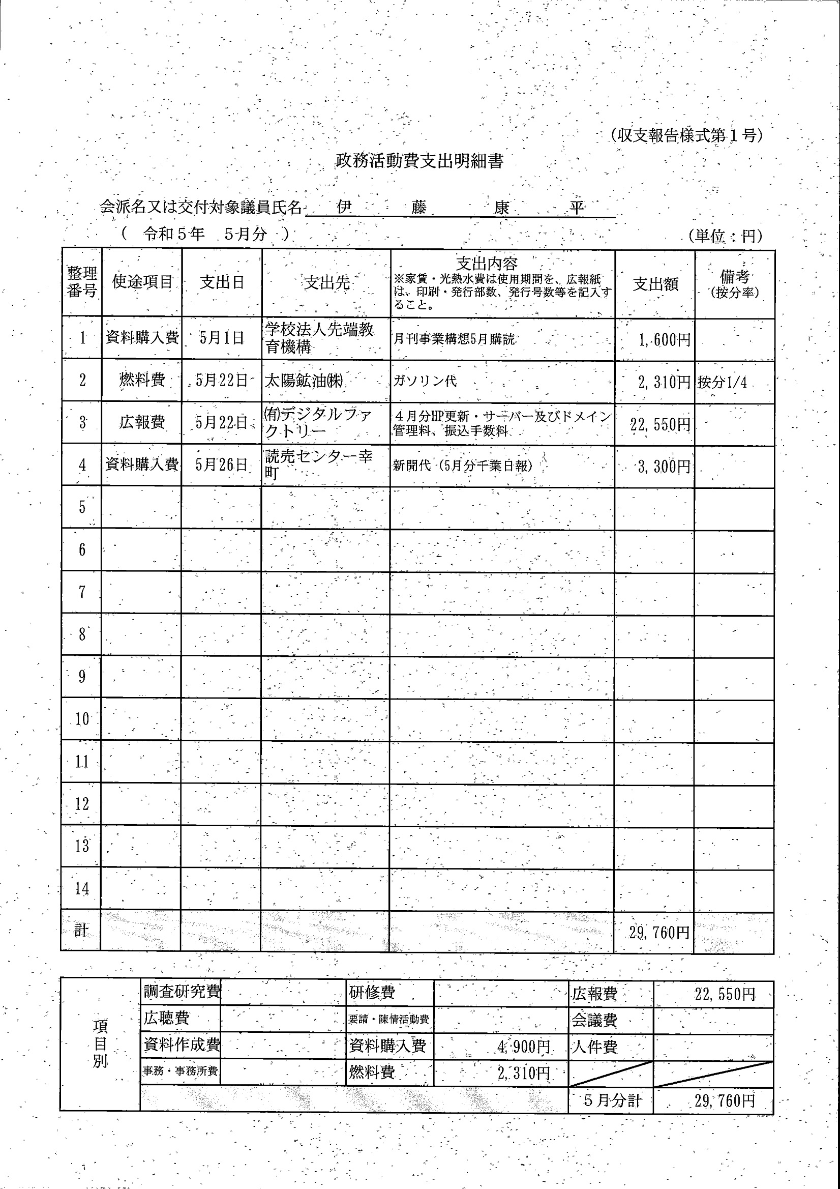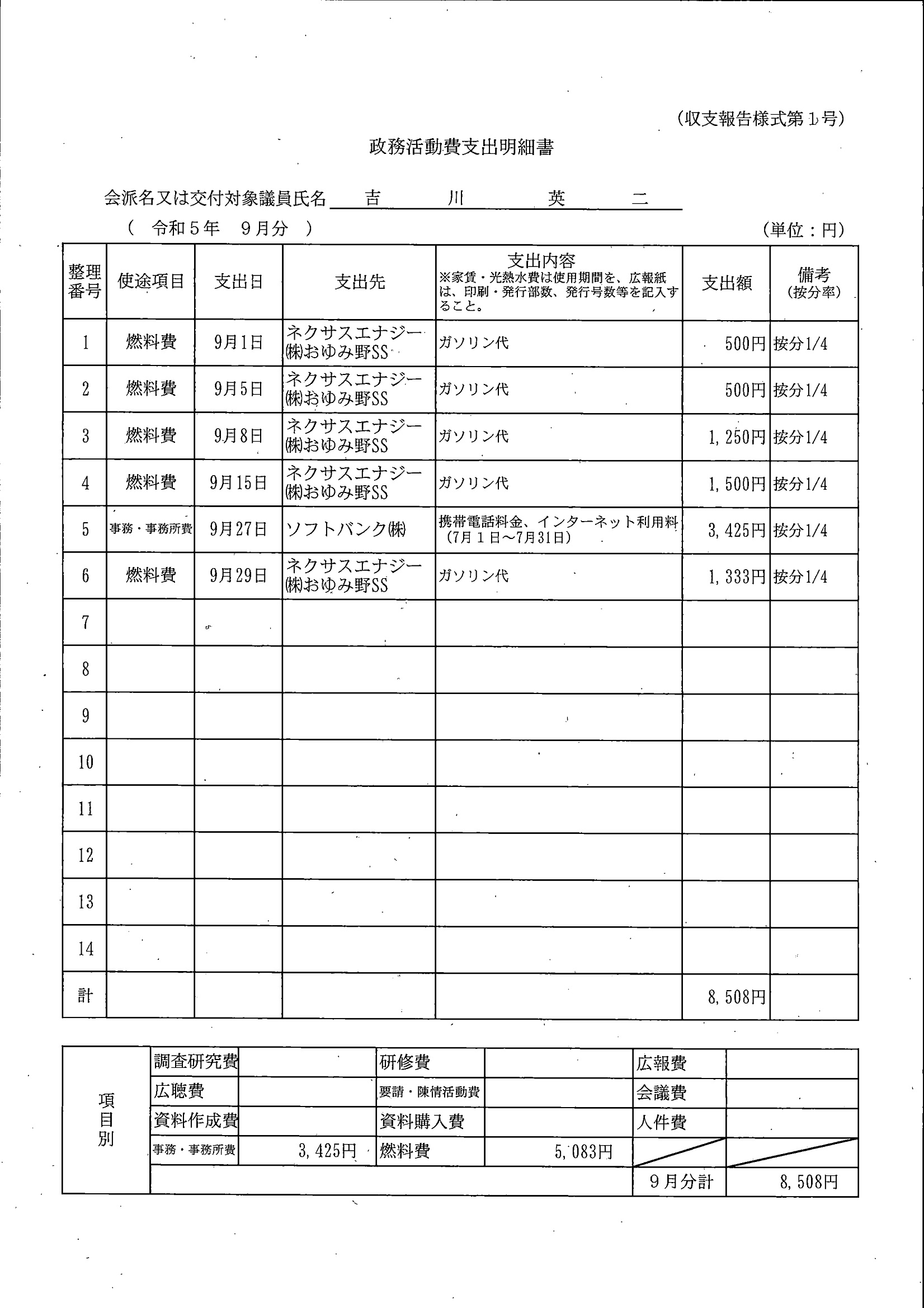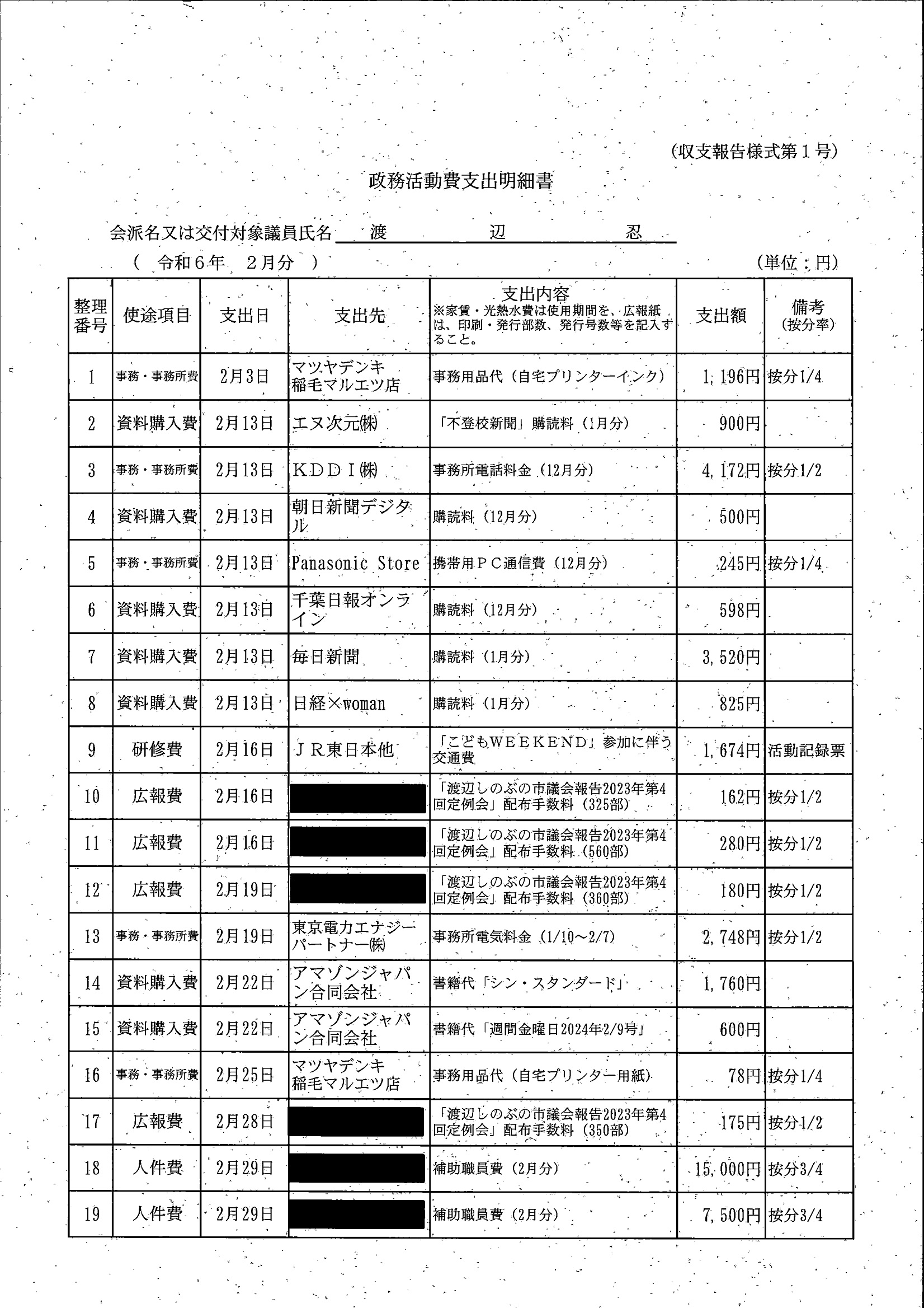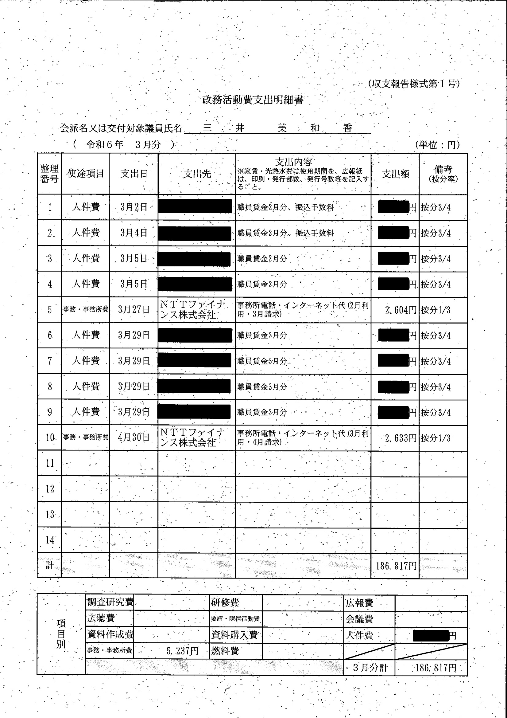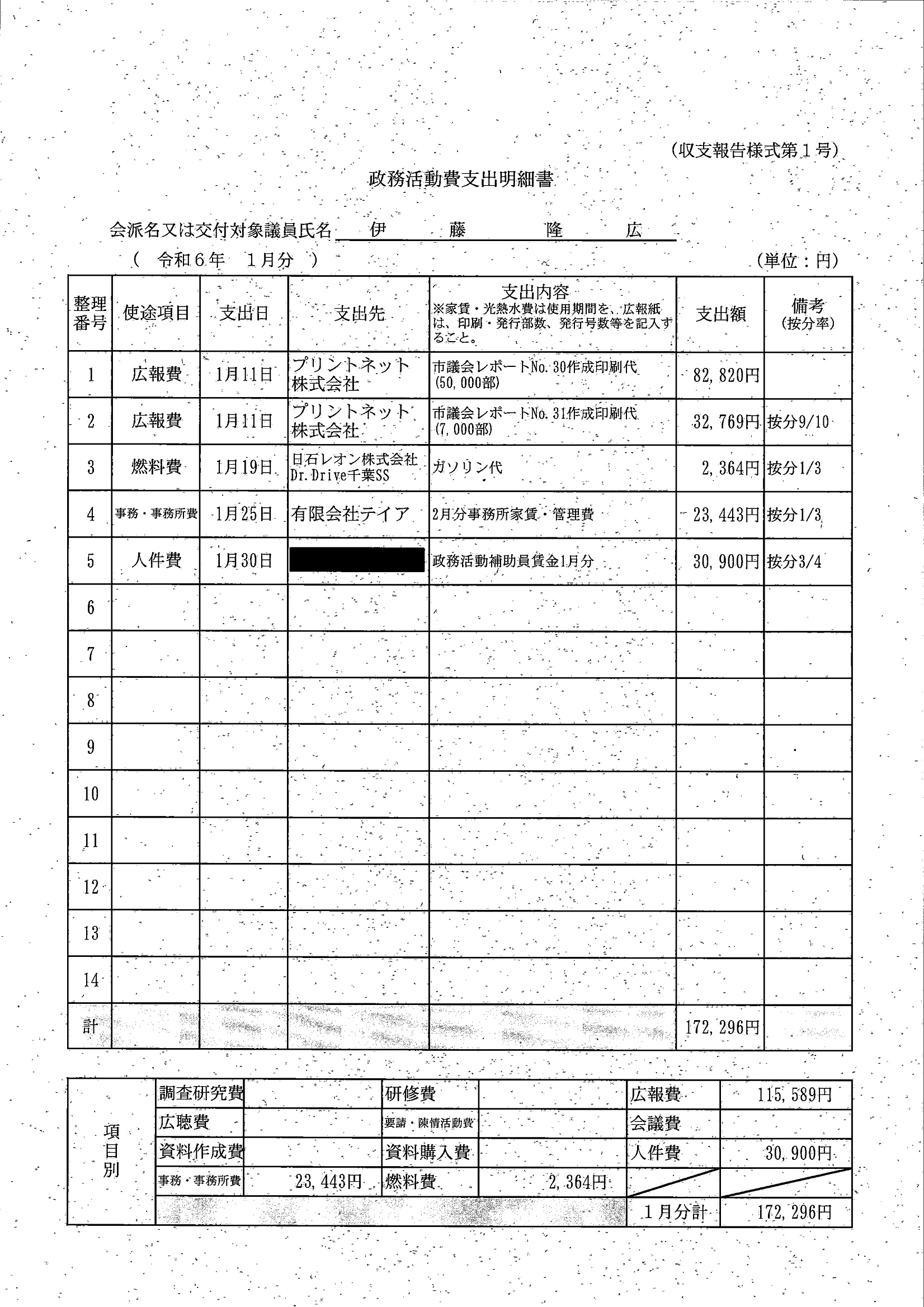 千葉市議会トップページ > 広報・情報公開 > 政務活動費 > 令和5年度交付分(政務活動費収支報告書)