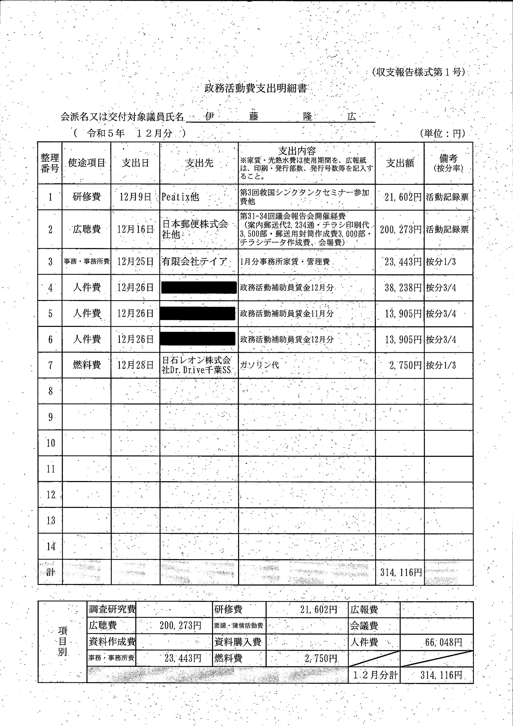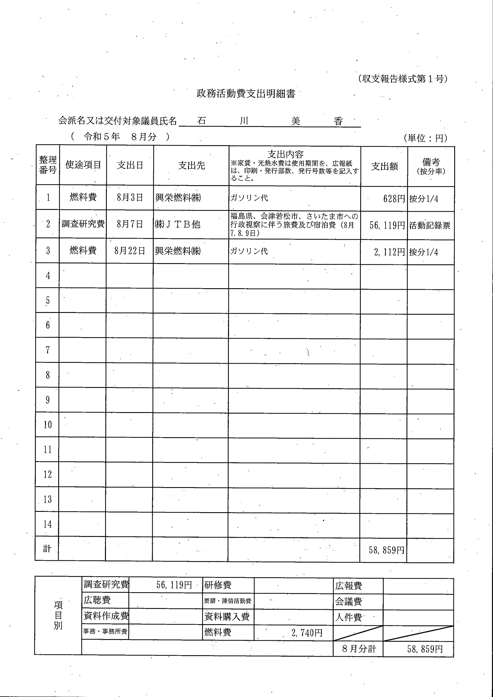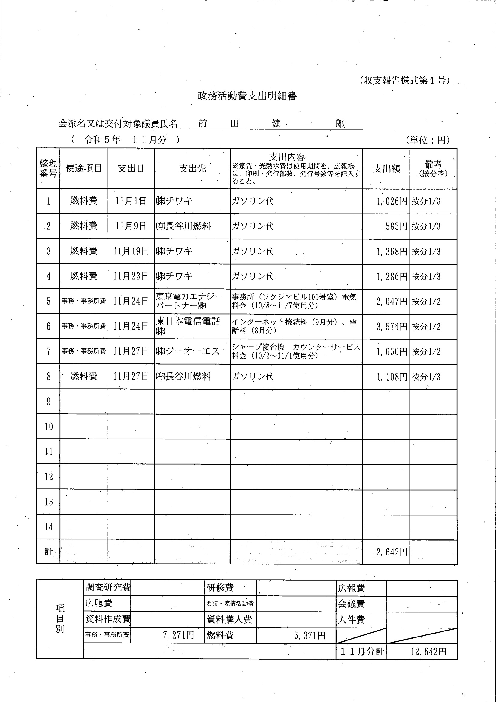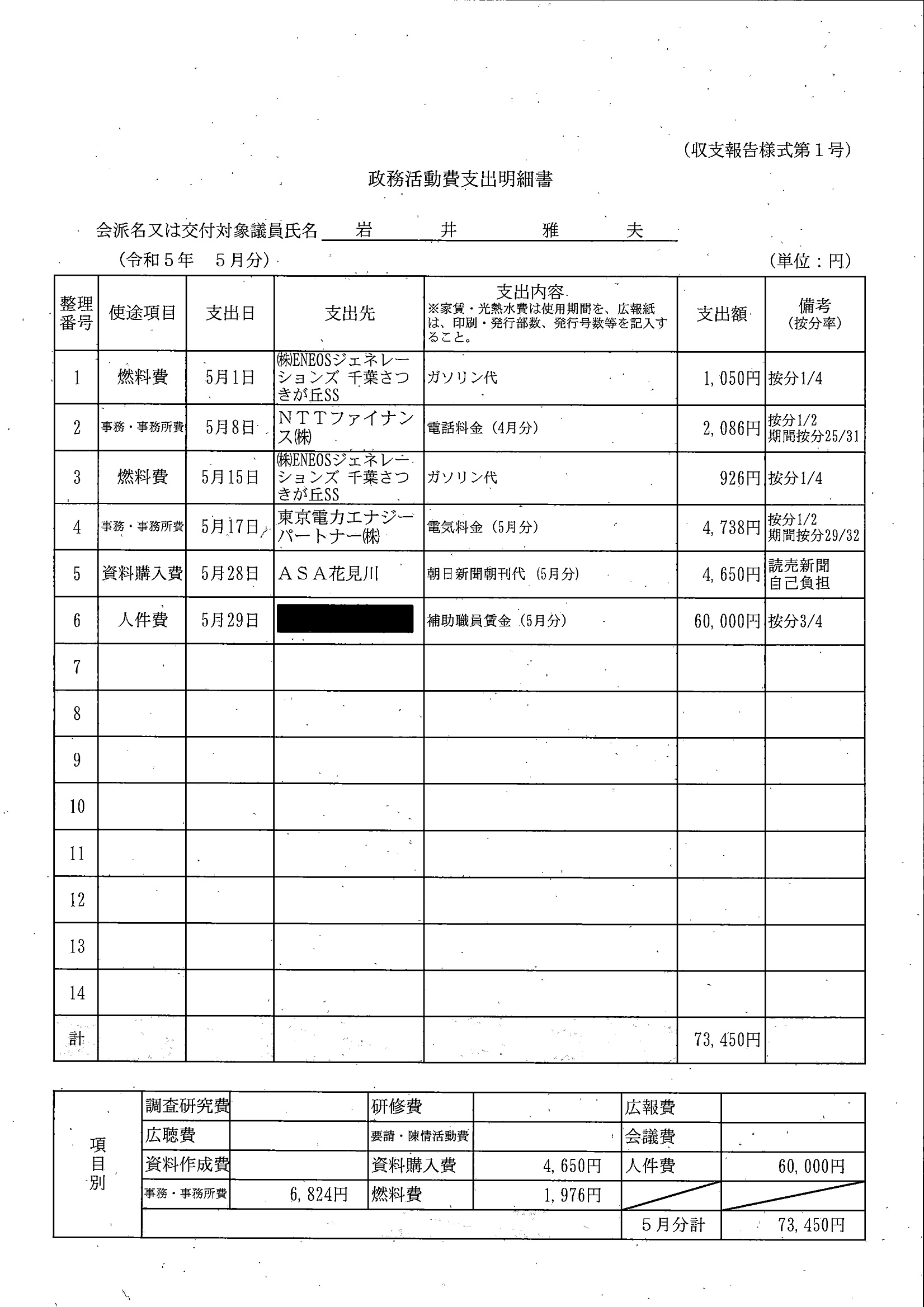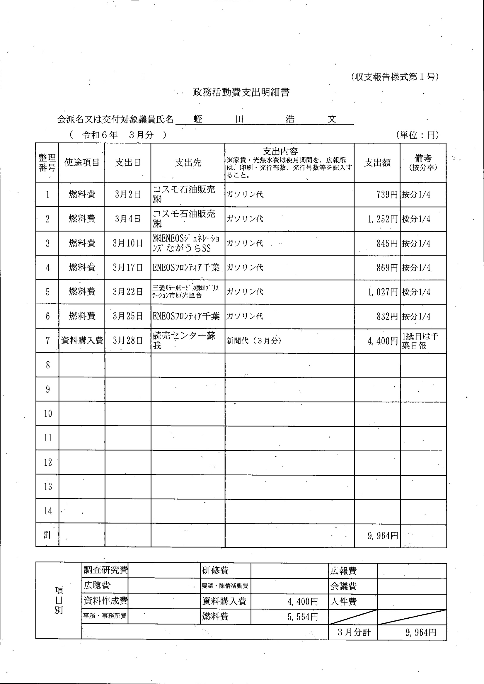 千葉市議会トップページ > 広報・情報公開 > 政務活動費 > 令和5年度交付分(政務活動費収支報告書)