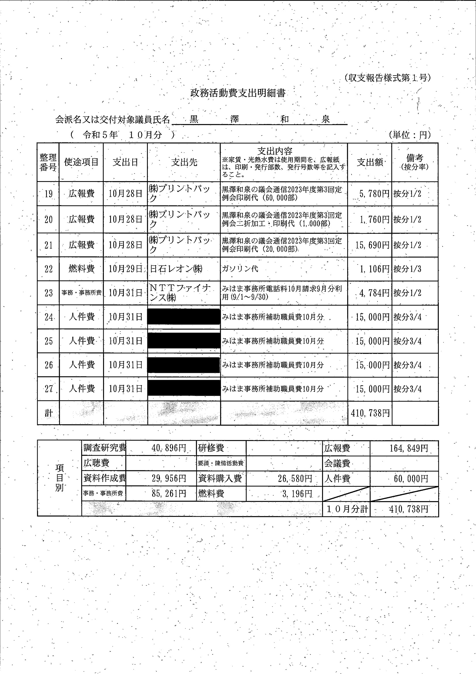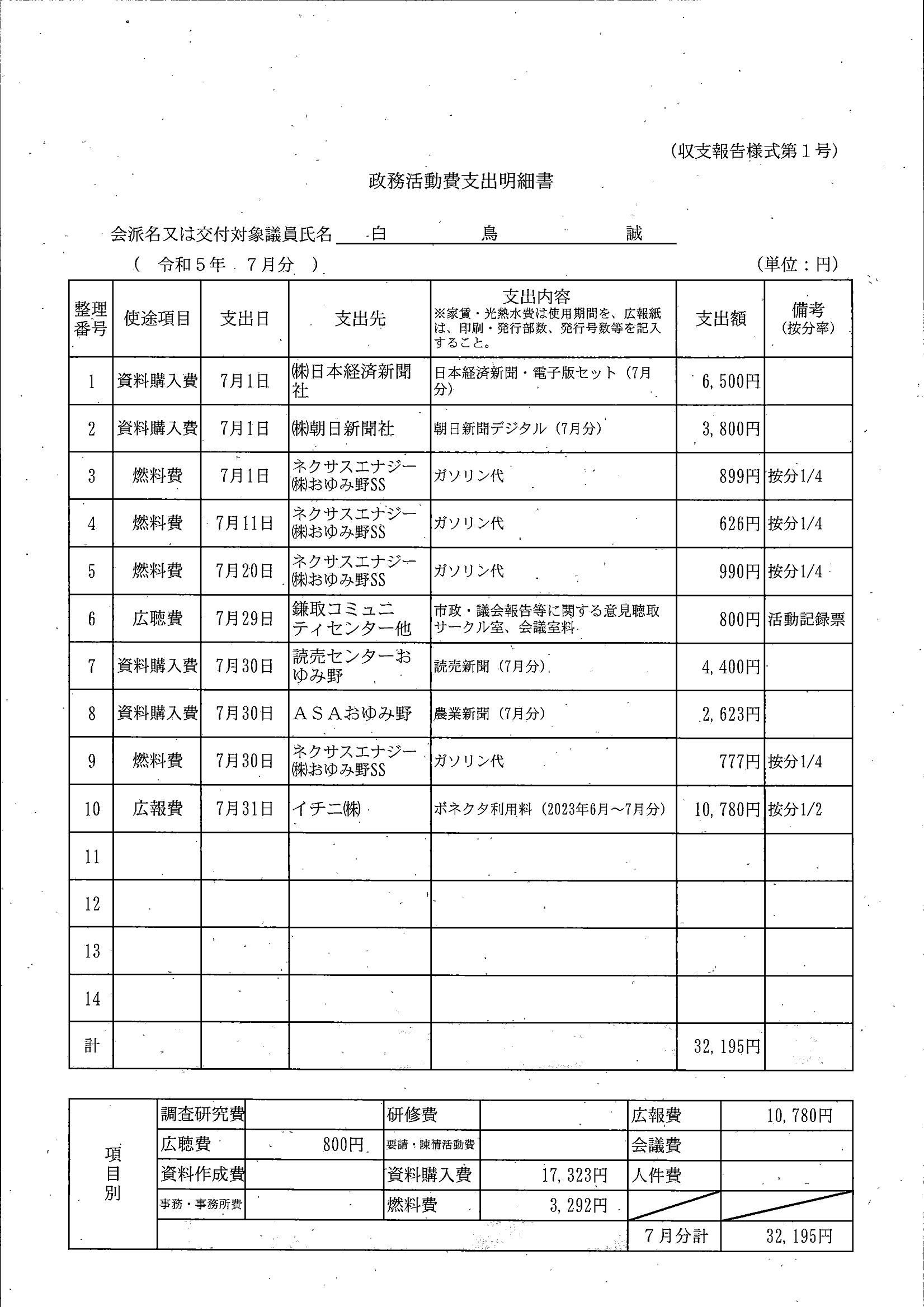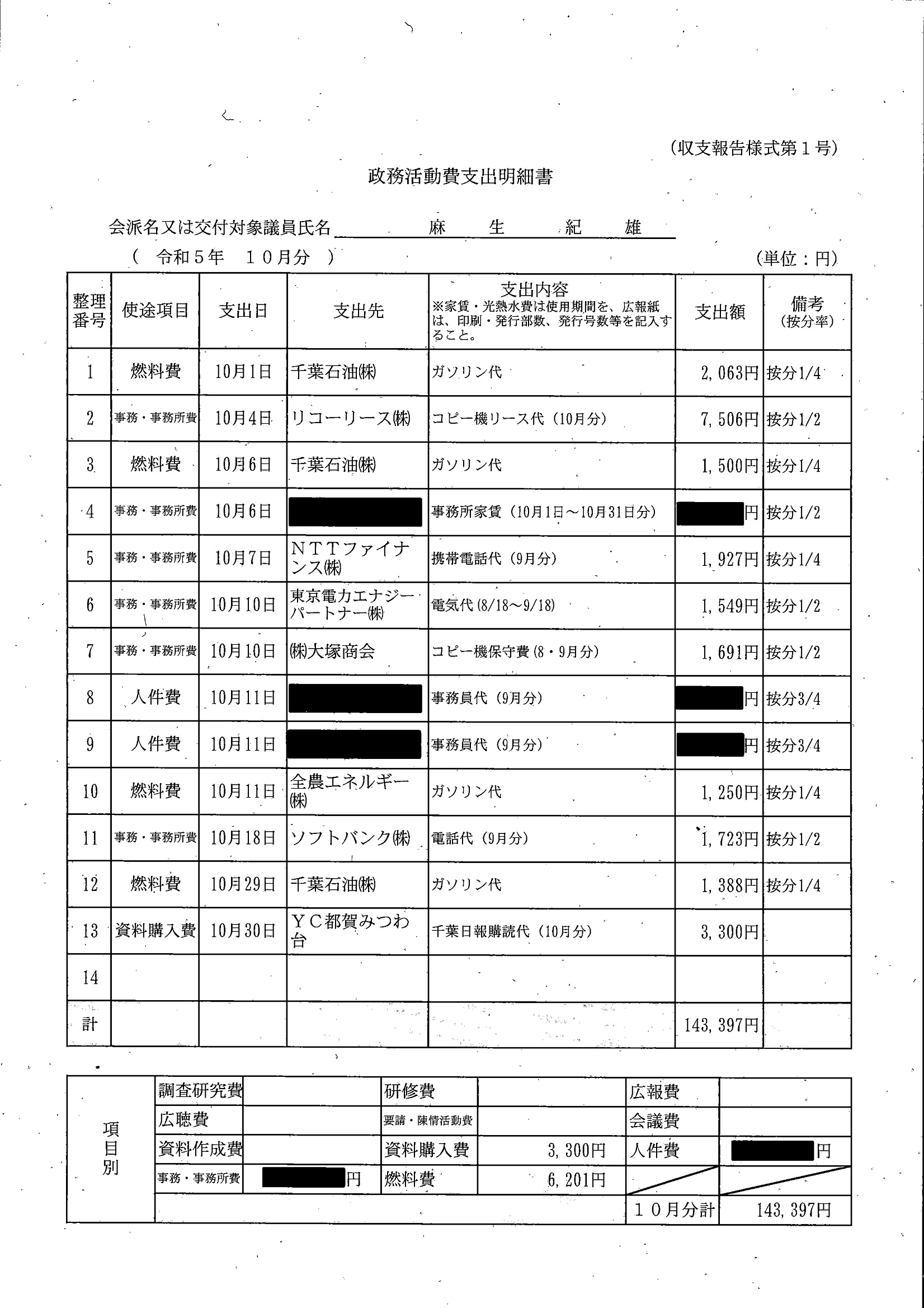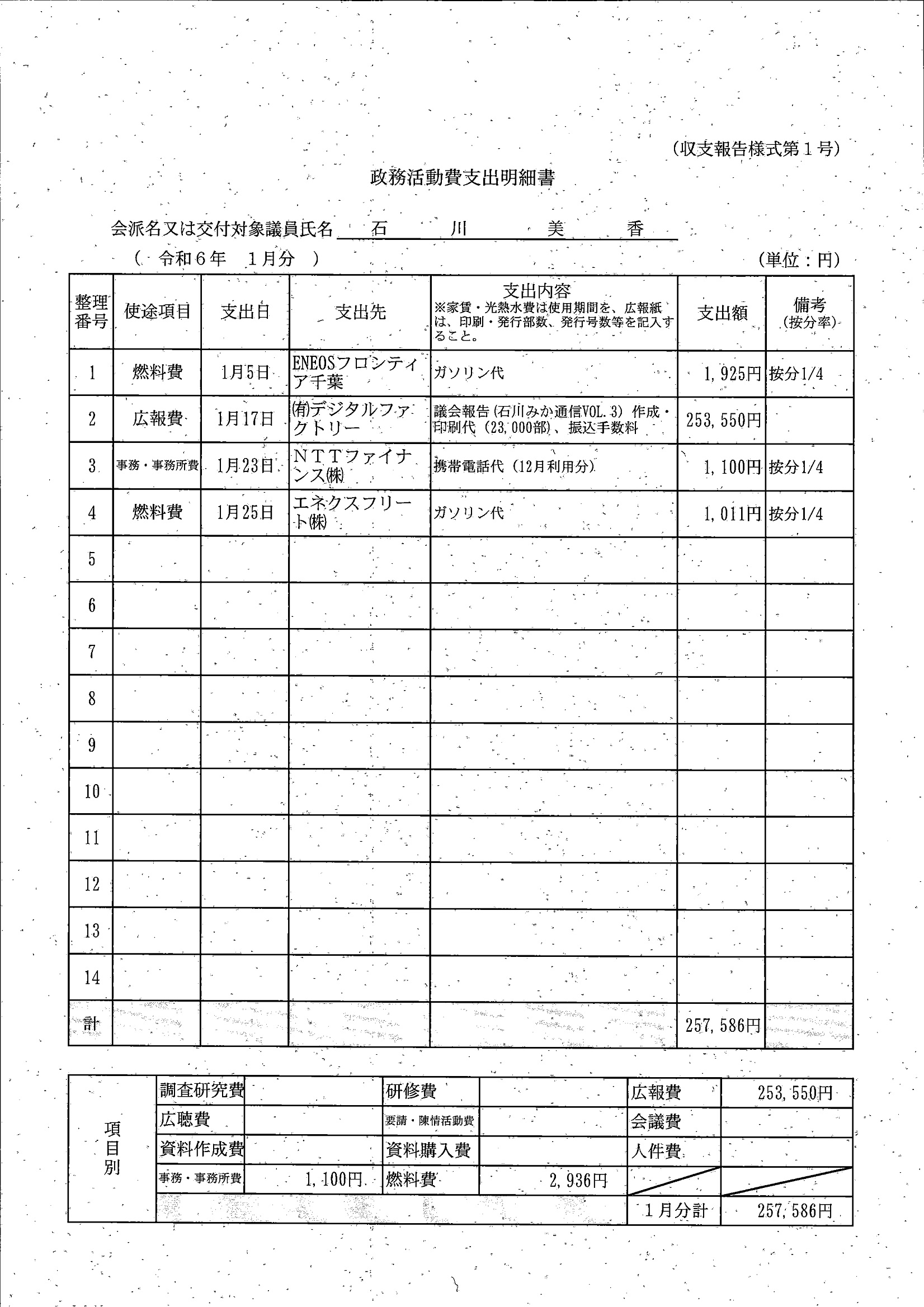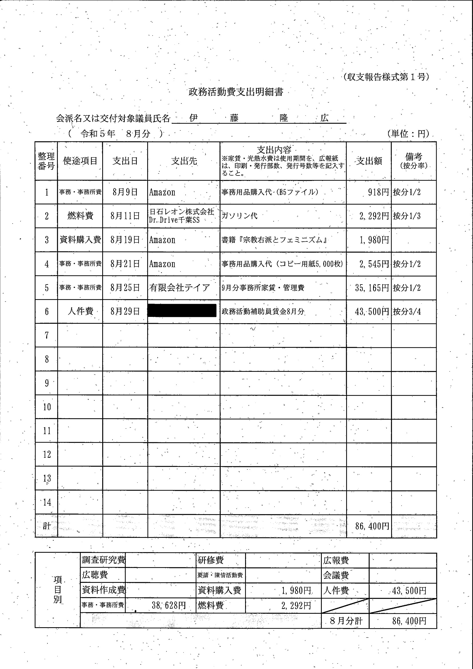 千葉市議会トップページ > 広報・情報公開 > 政務活動費 > 令和5年度交付分(政務活動費収支報告書)