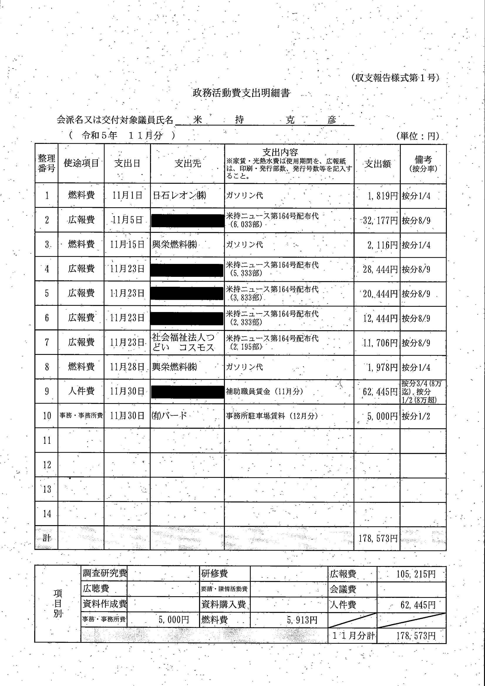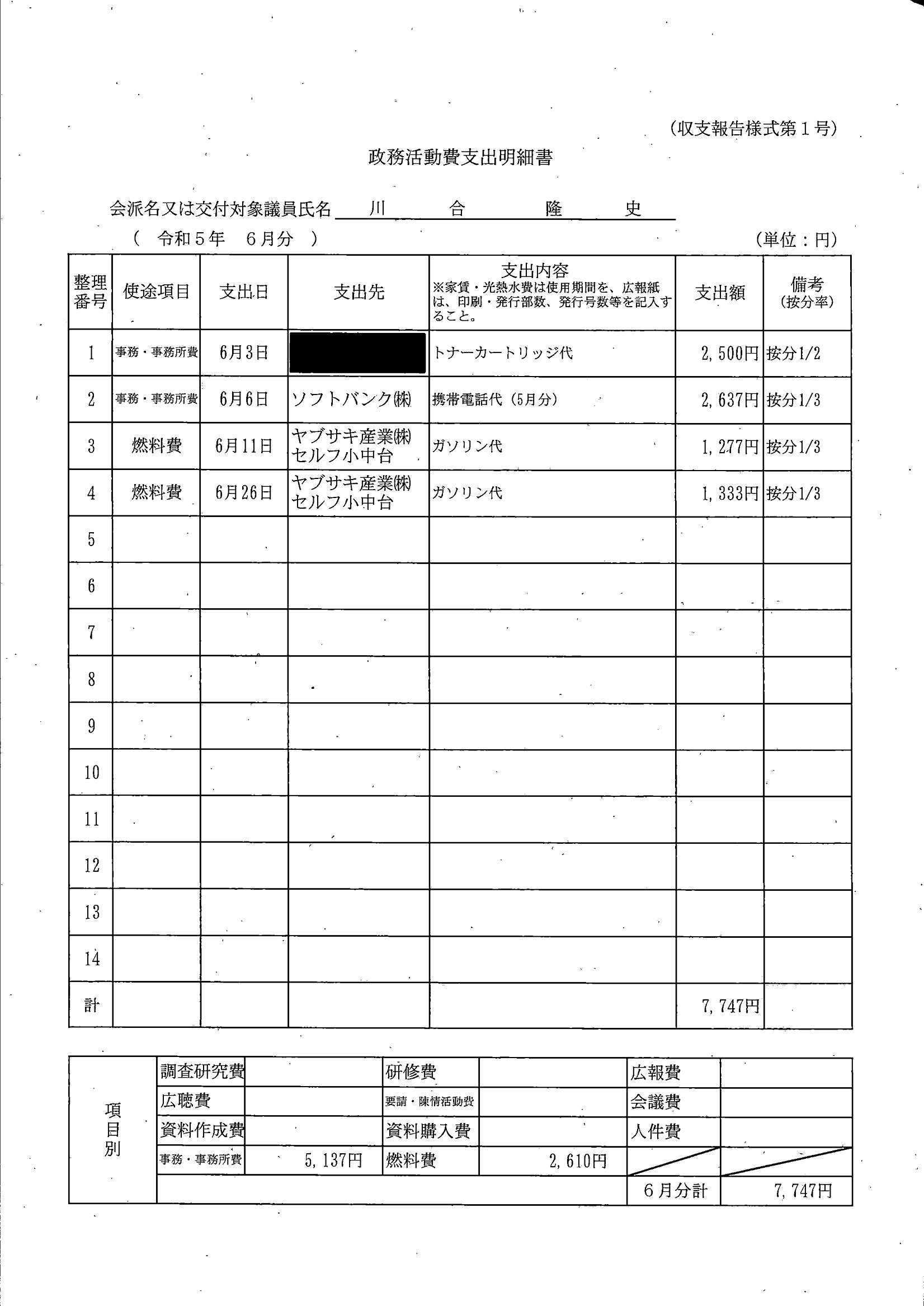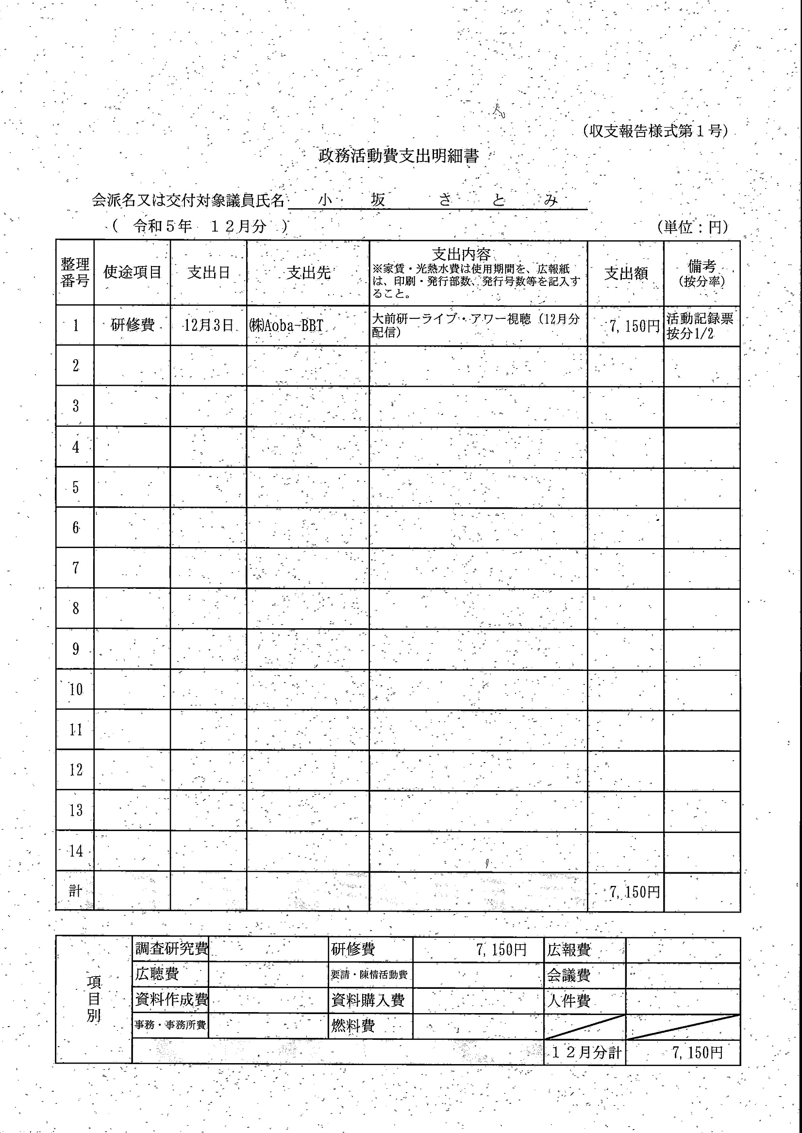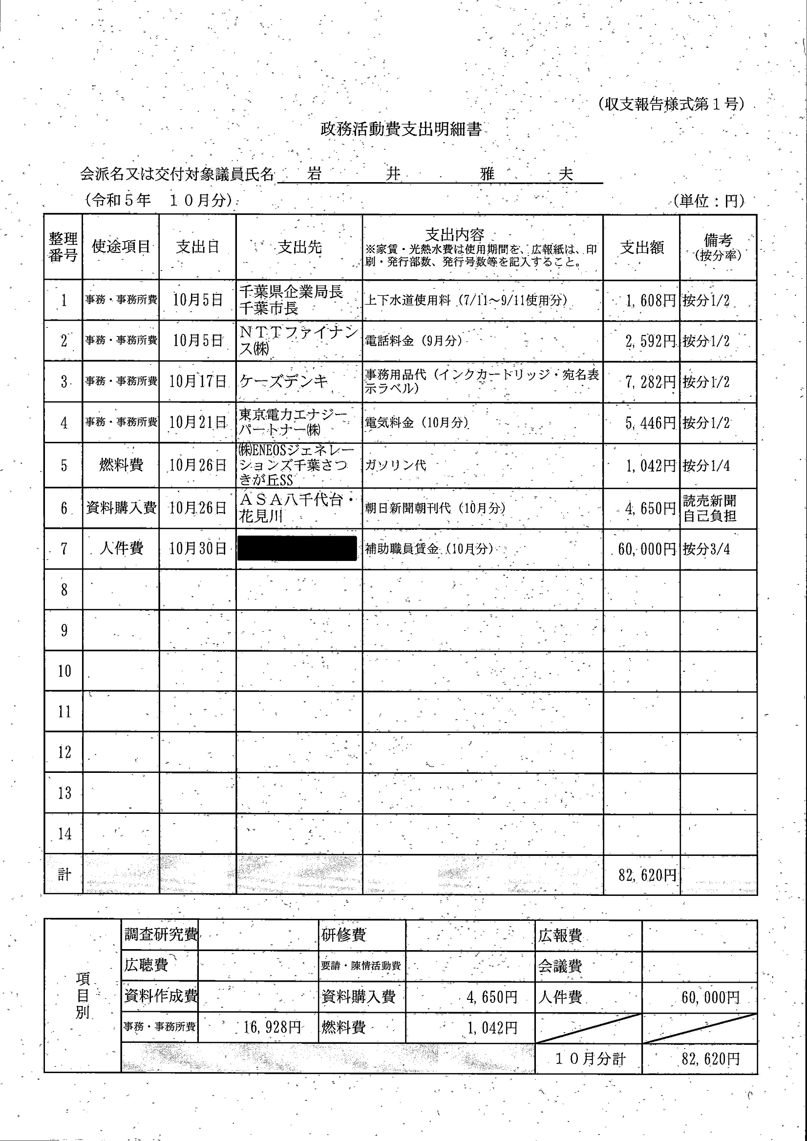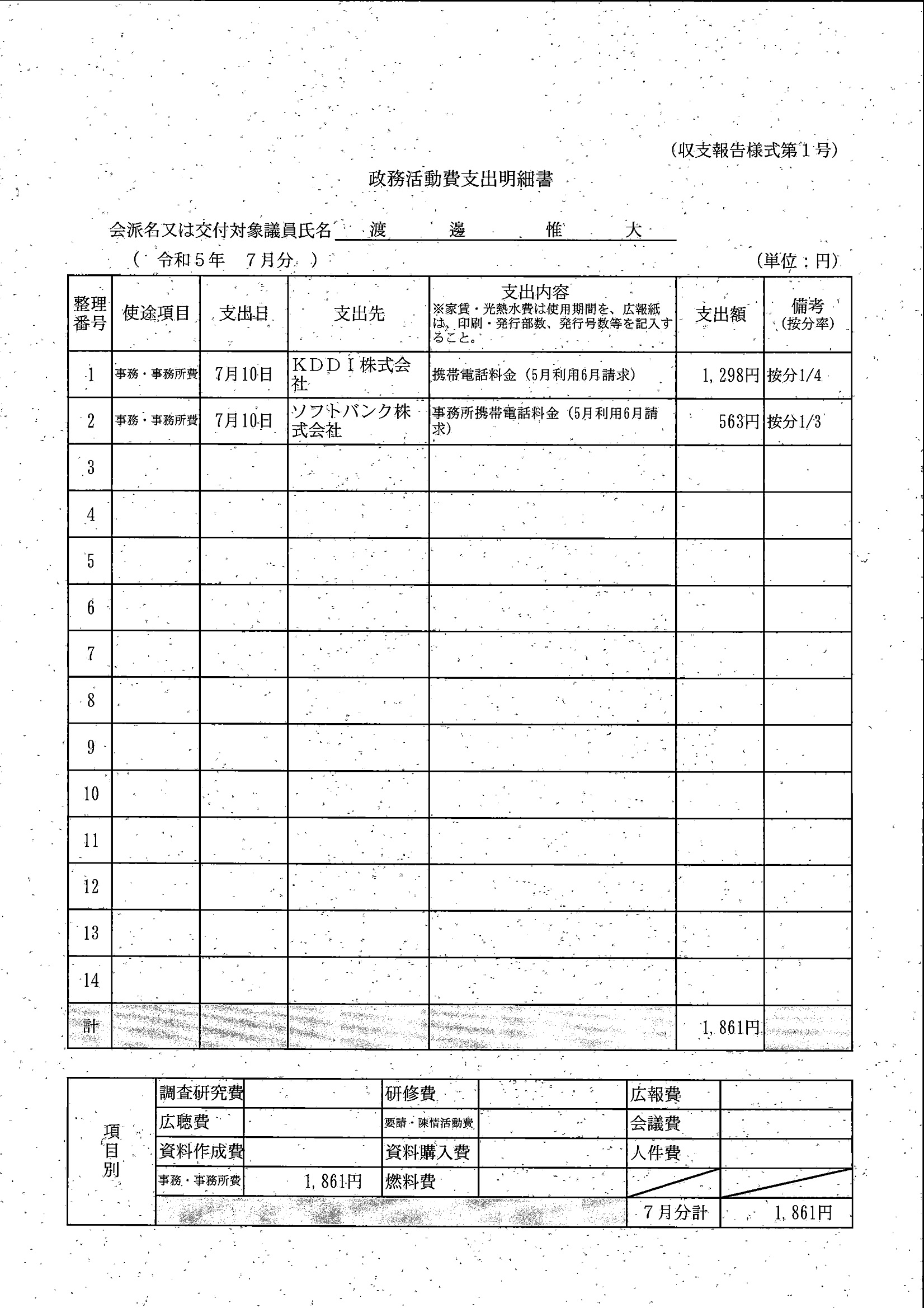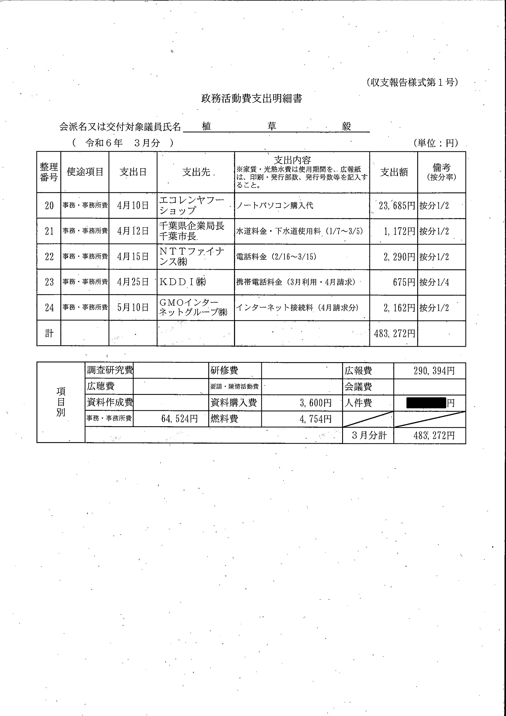 千葉市議会トップページ > 広報・情報公開 > 政務活動費 > 令和5年度交付分(政務活動費収支報告書)