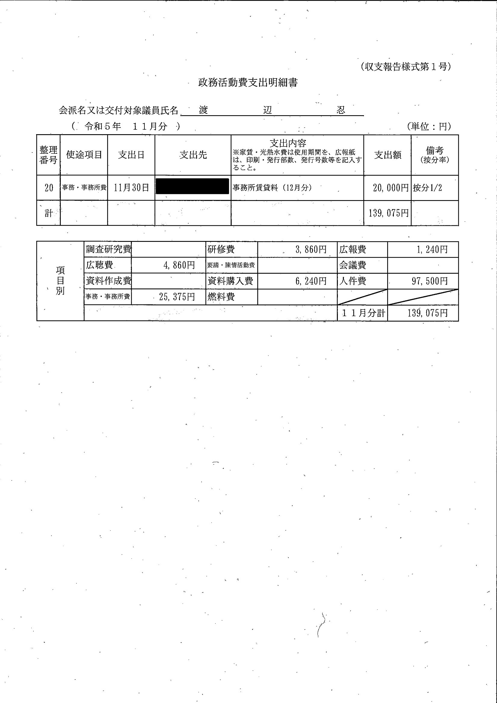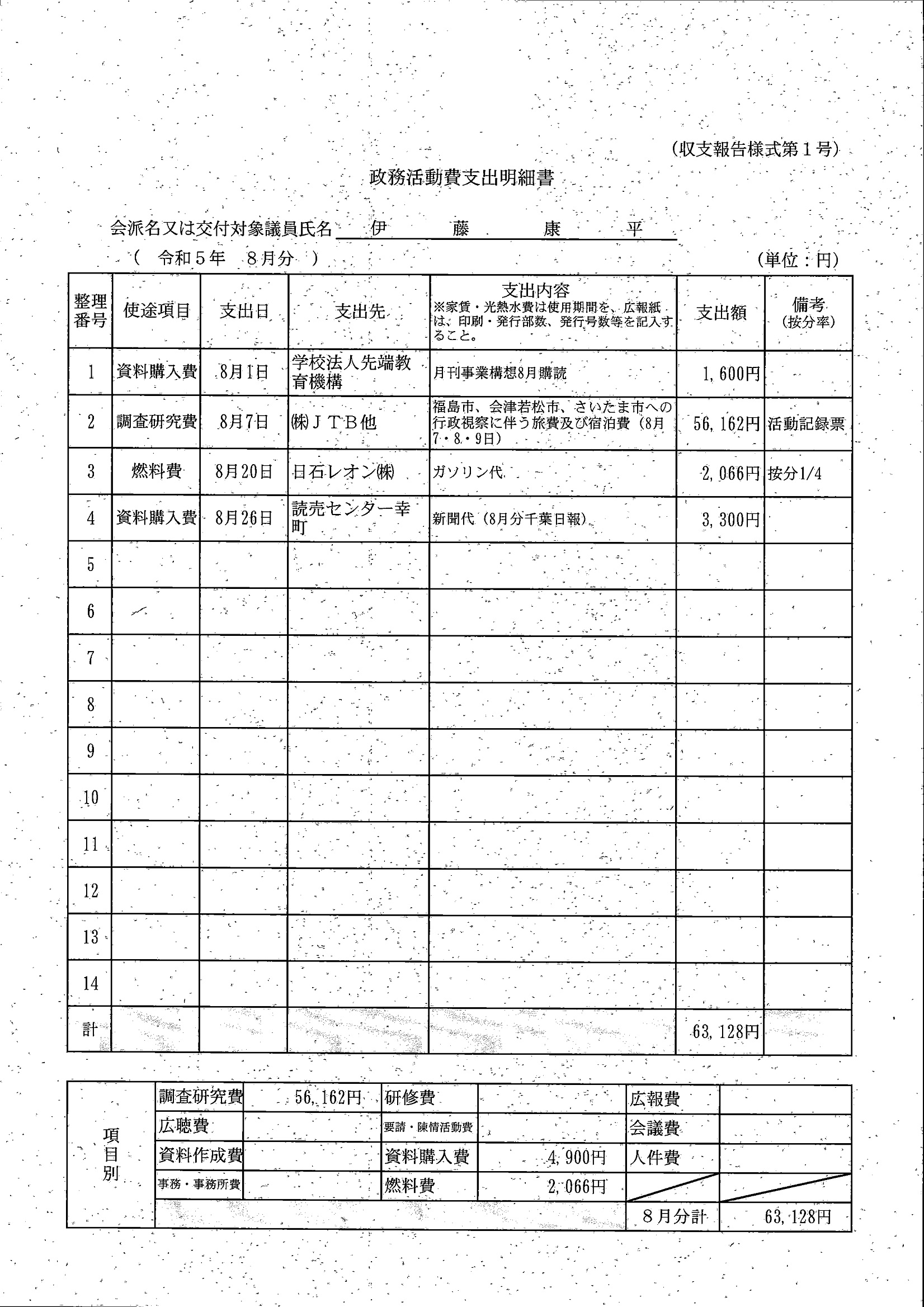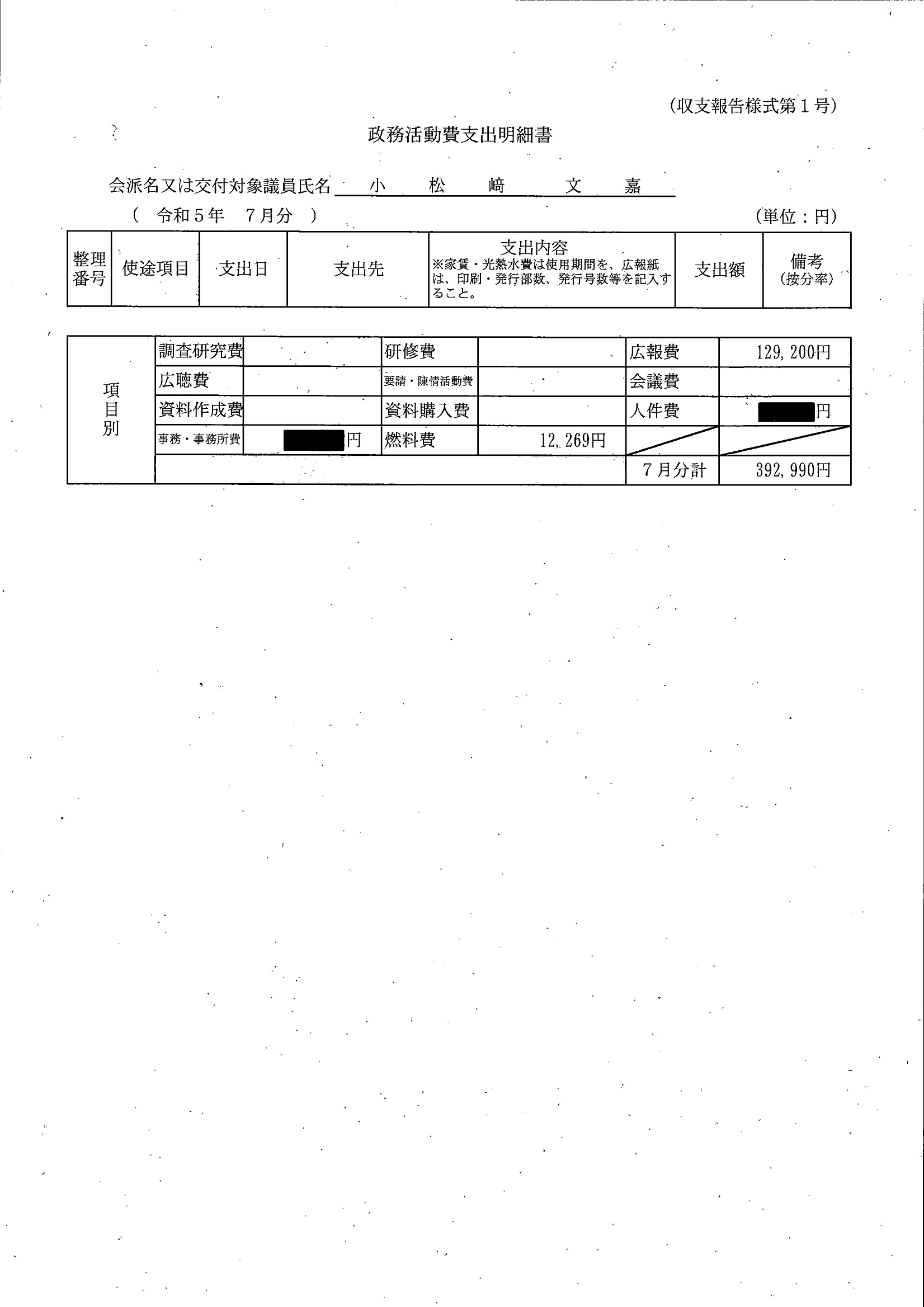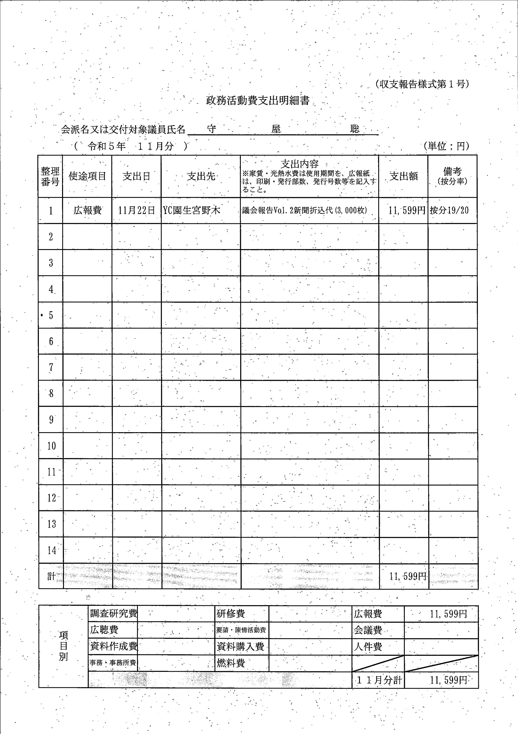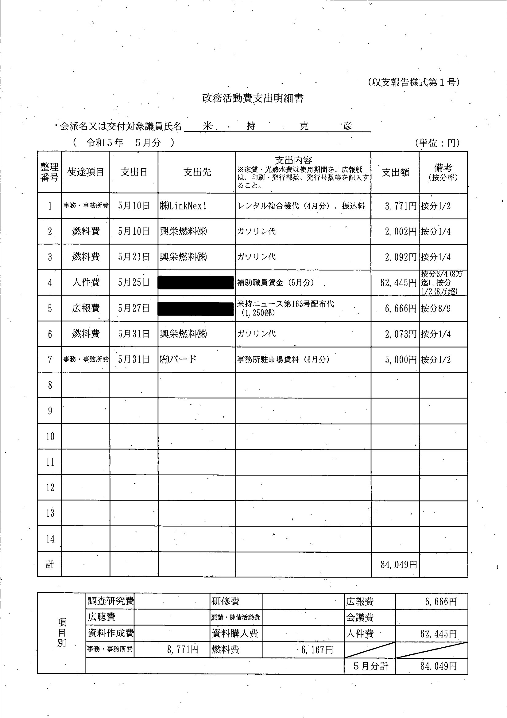 千葉市議会トップページ > 広報・情報公開 > 政務活動費 > 令和5年度交付分(政務活動費収支報告書)