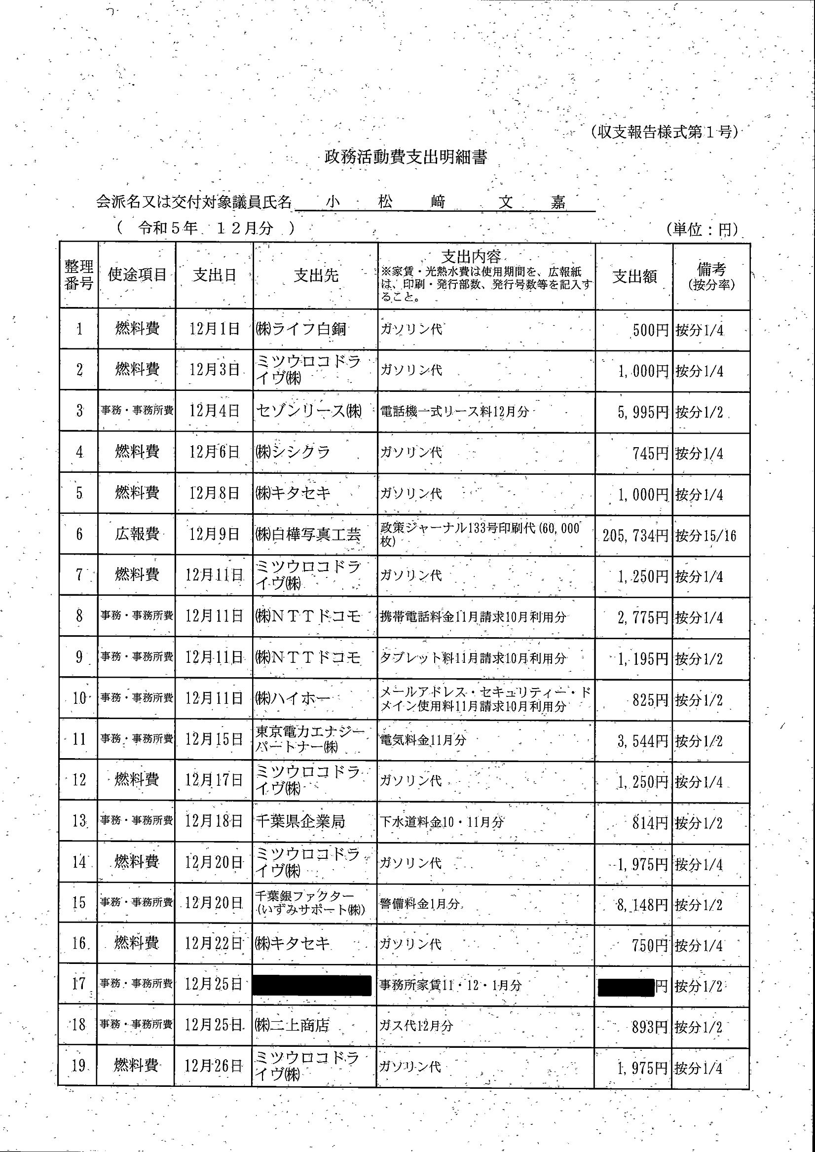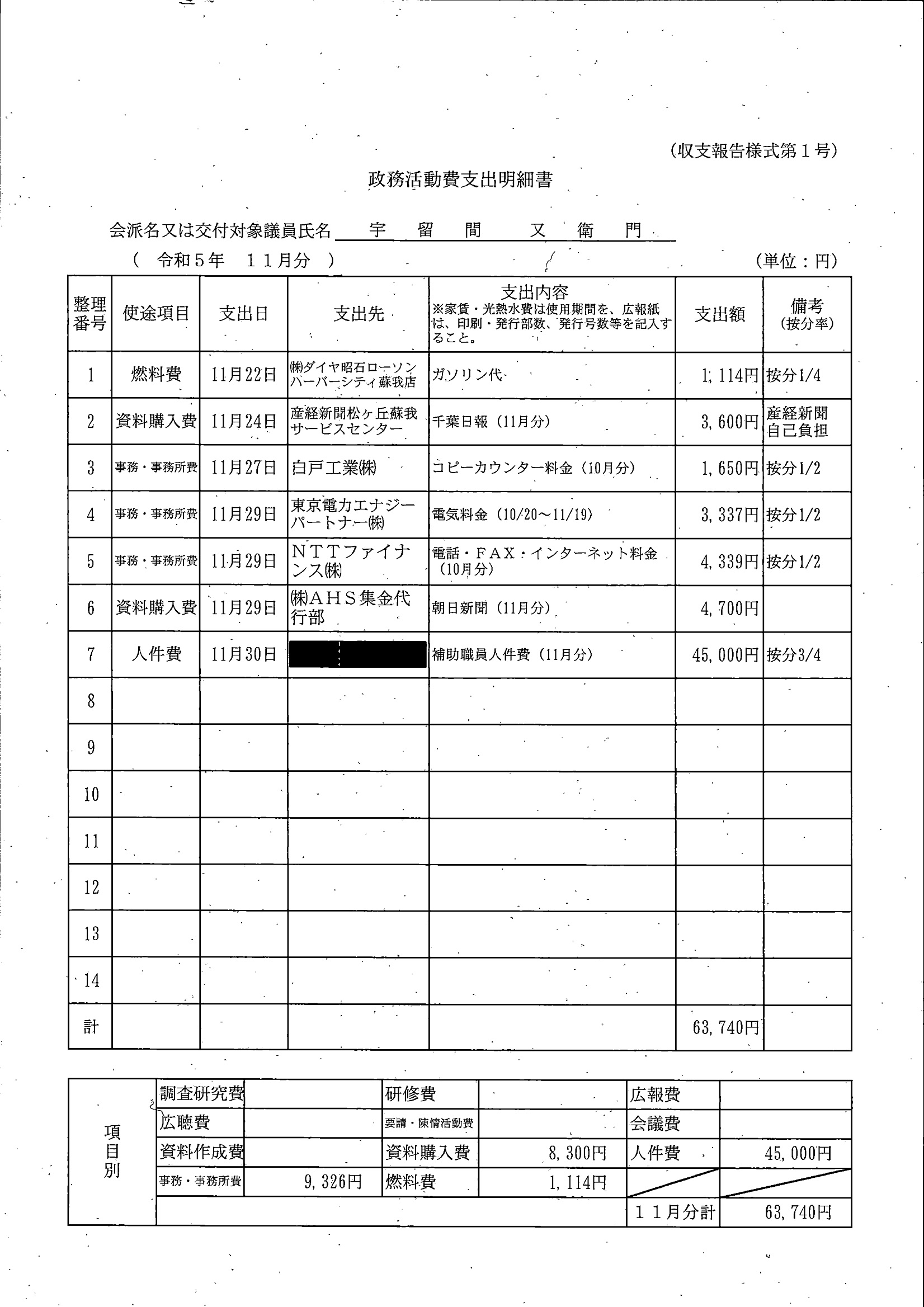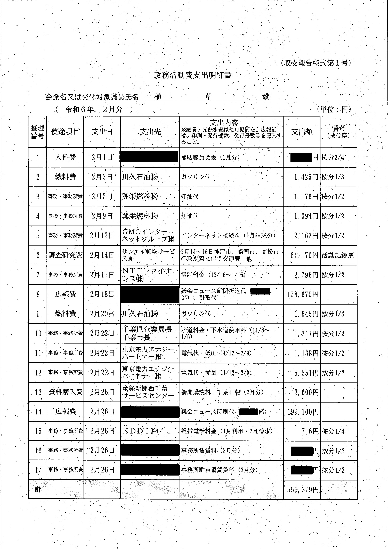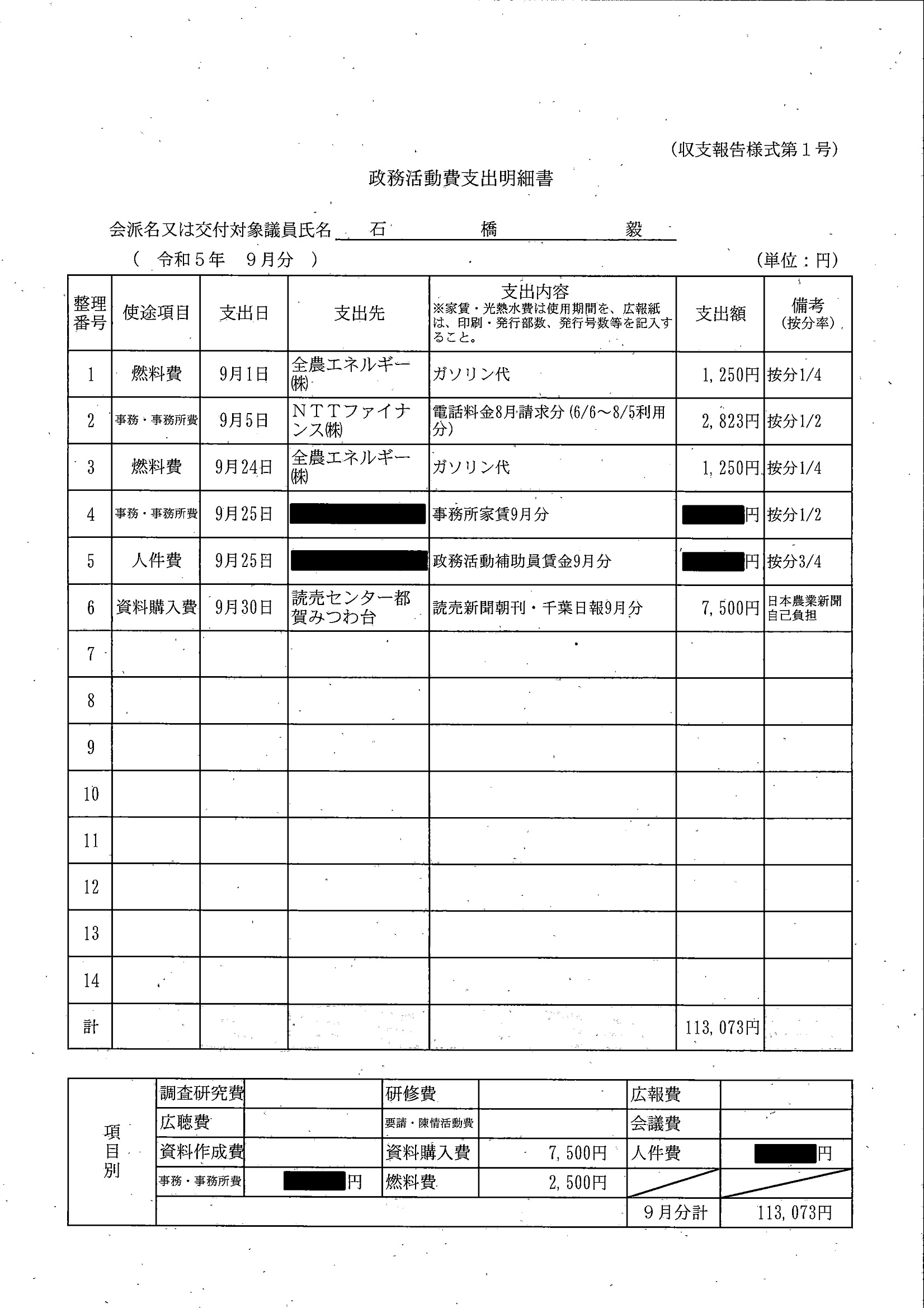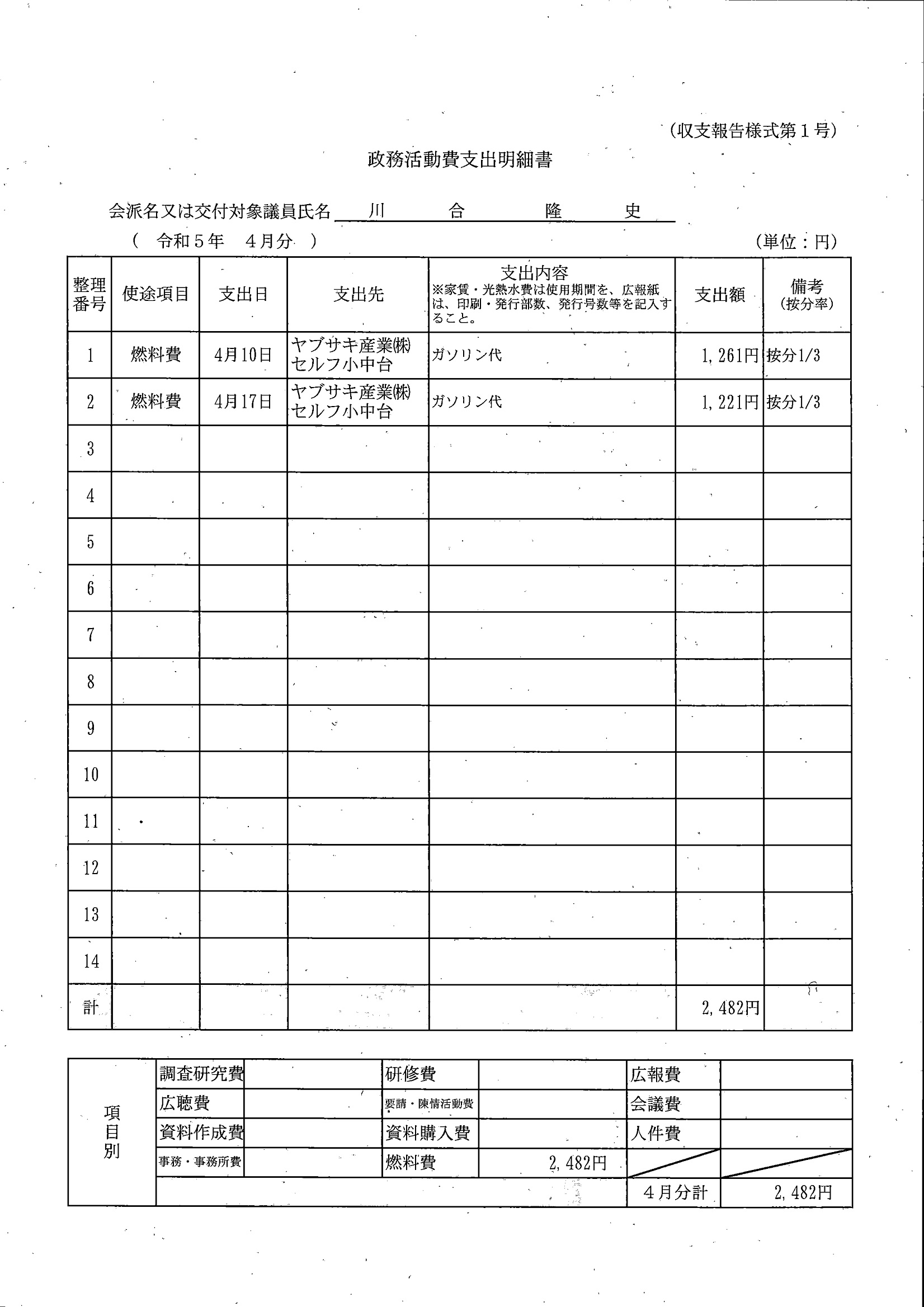千葉市議会トップページ > 広報・情報公開 > 政務活動費 > 令和5年度交付分(政務活動費収支報告書)