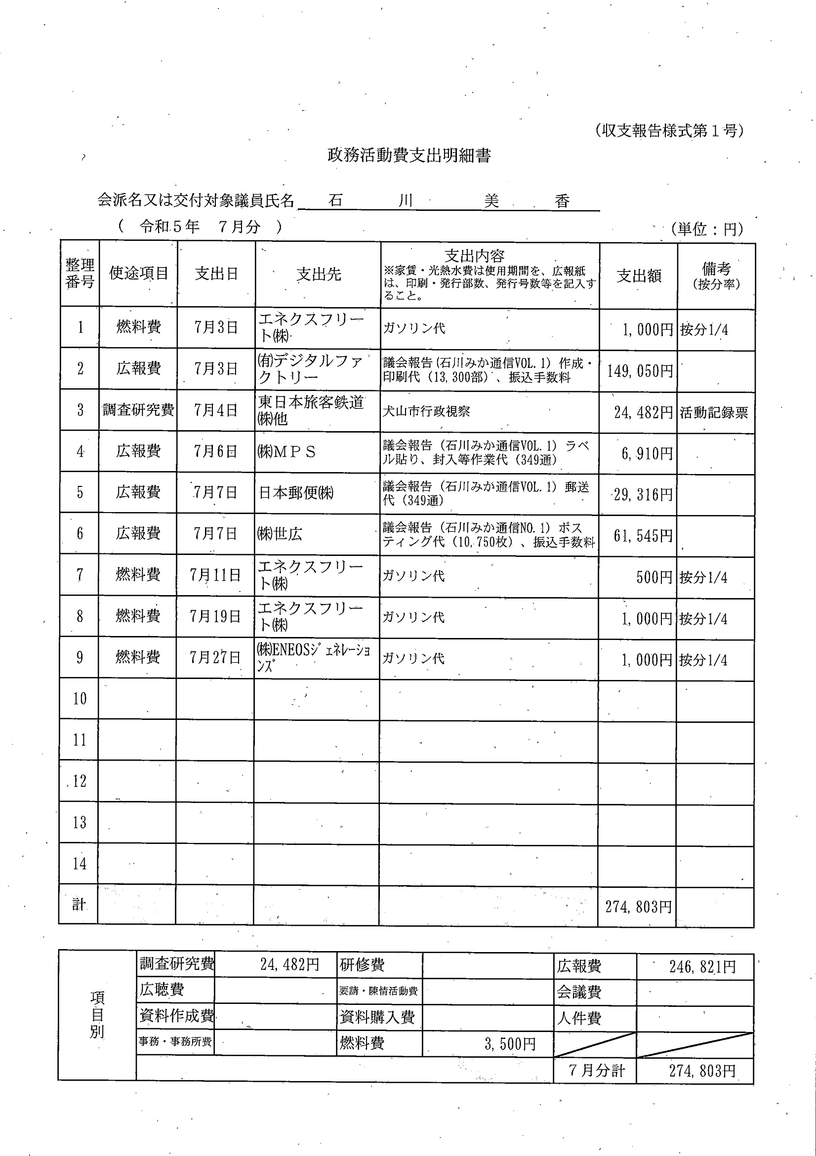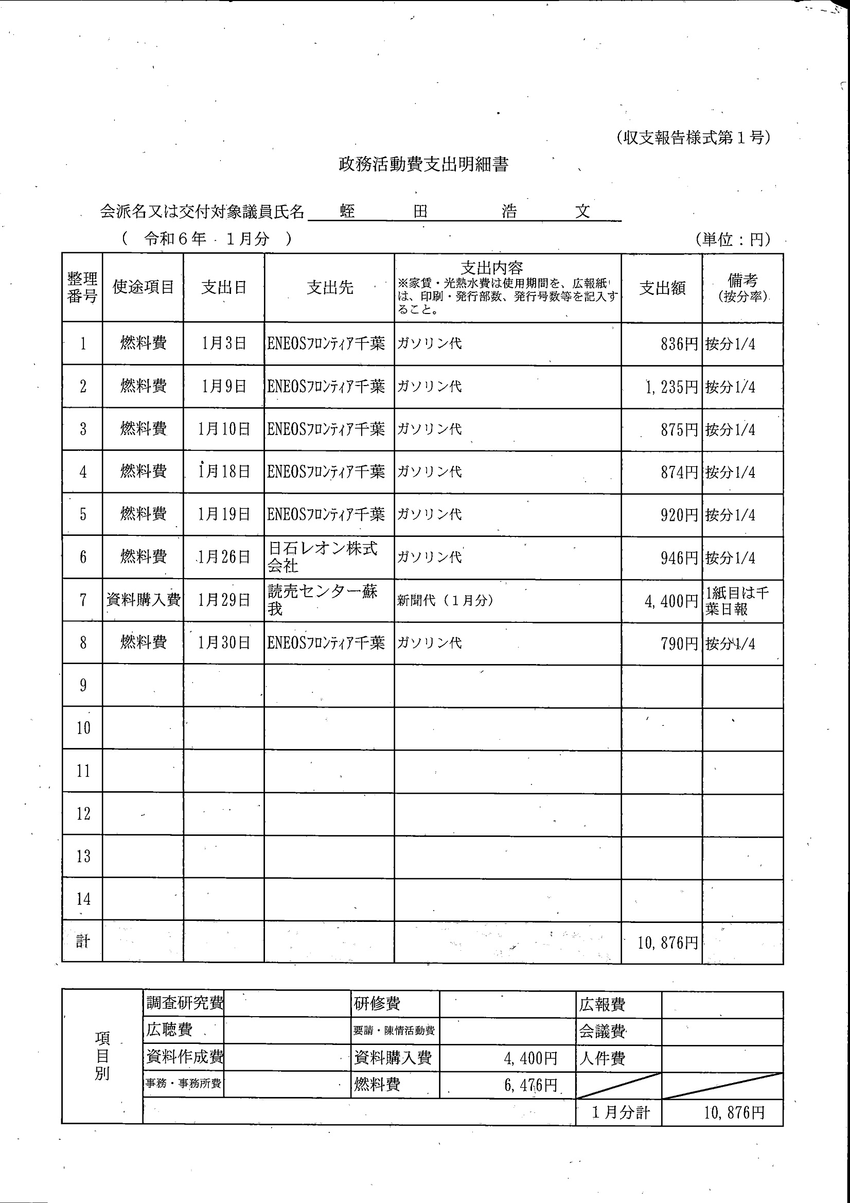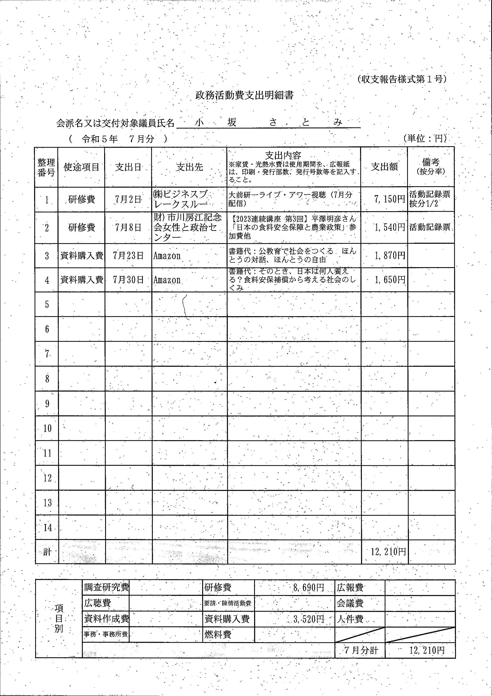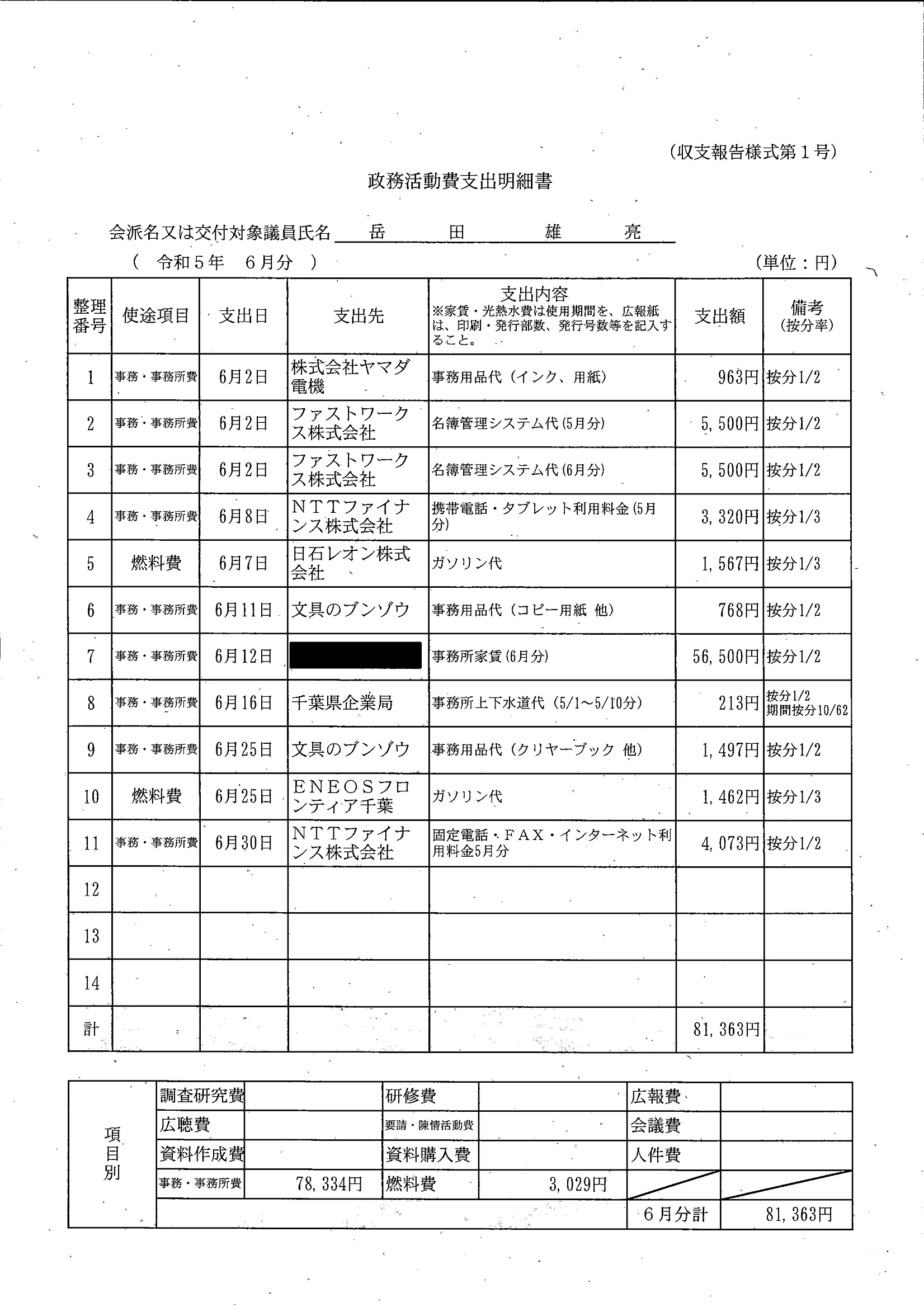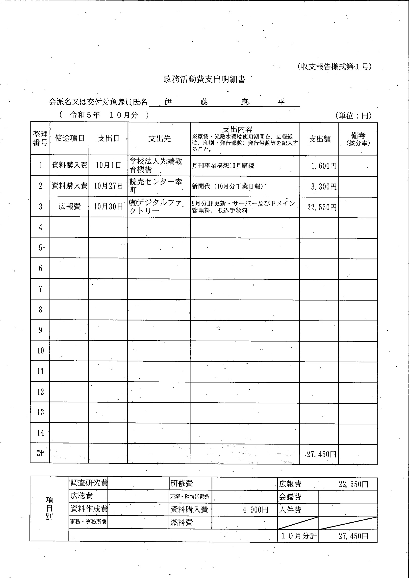 千葉市議会トップページ > 広報・情報公開 > 政務活動費 > 令和5年度交付分(政務活動費収支報告書)