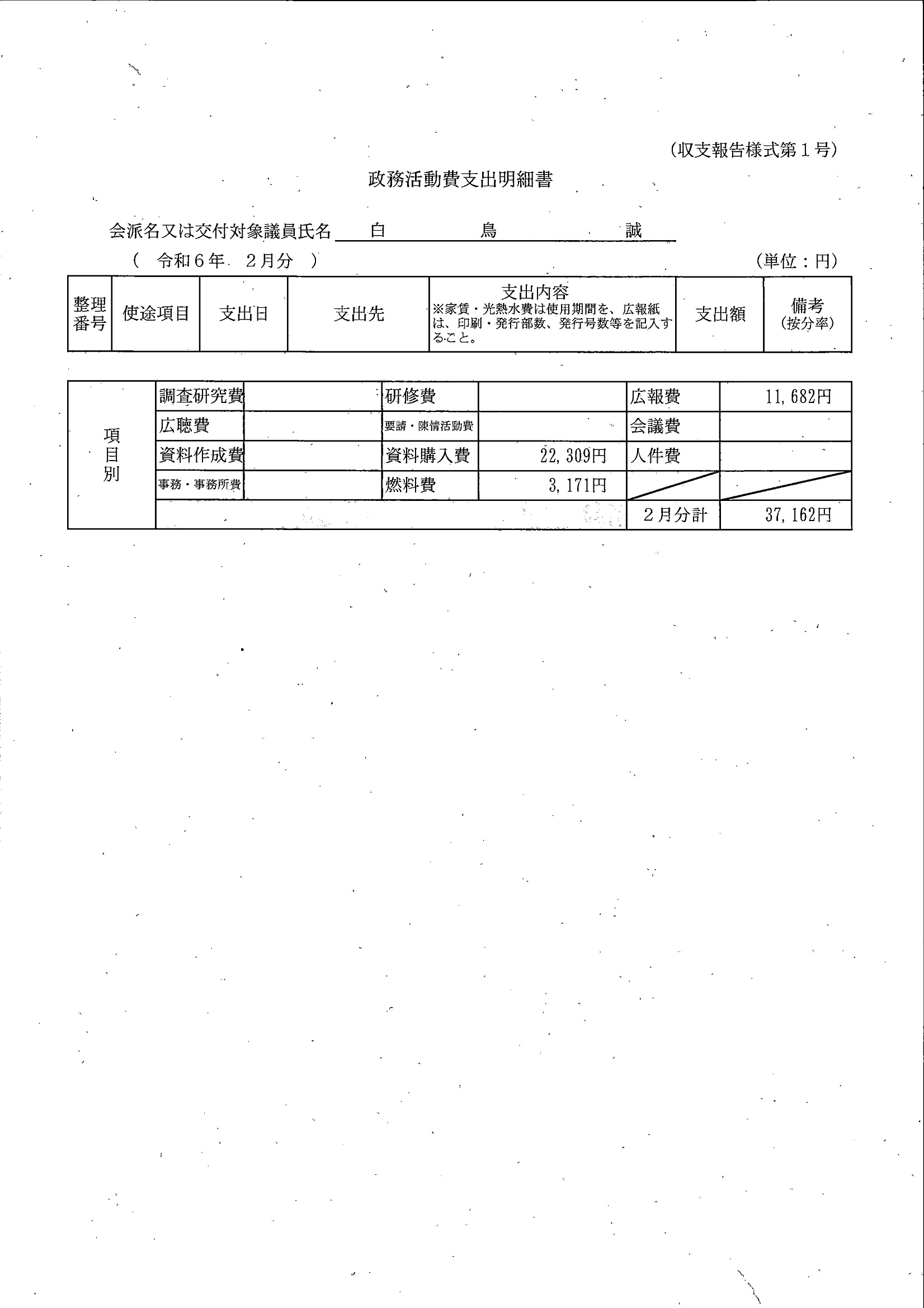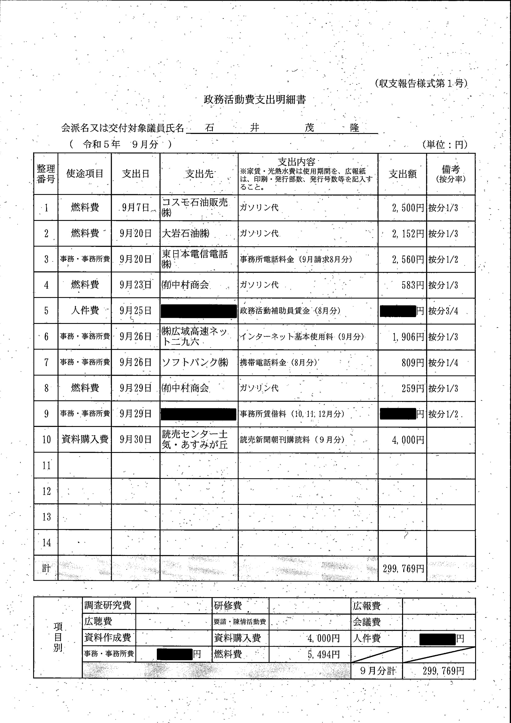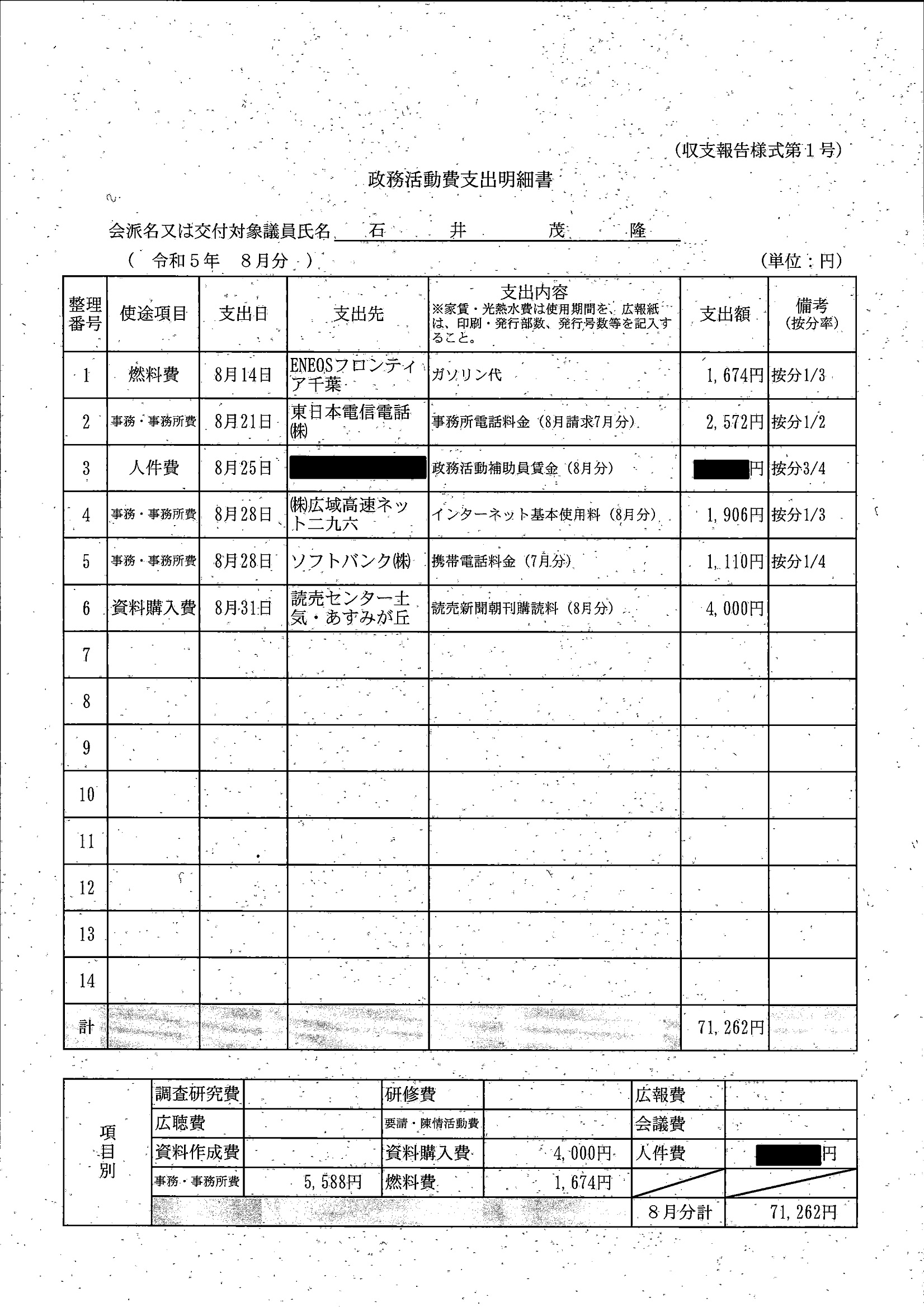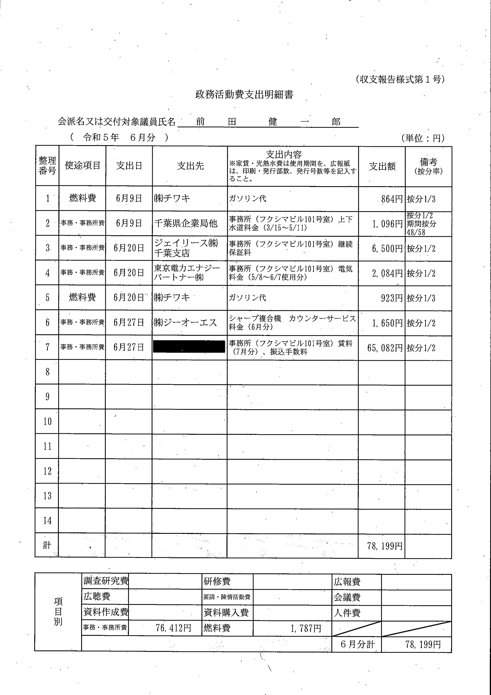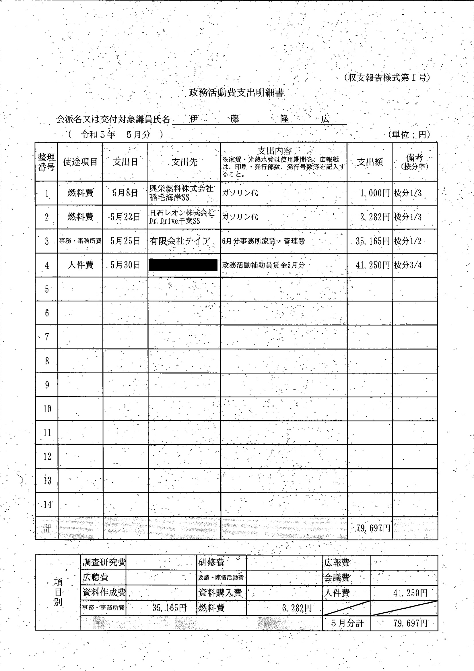 千葉市議会トップページ > 広報・情報公開 > 政務活動費 > 令和5年度交付分(政務活動費収支報告書)