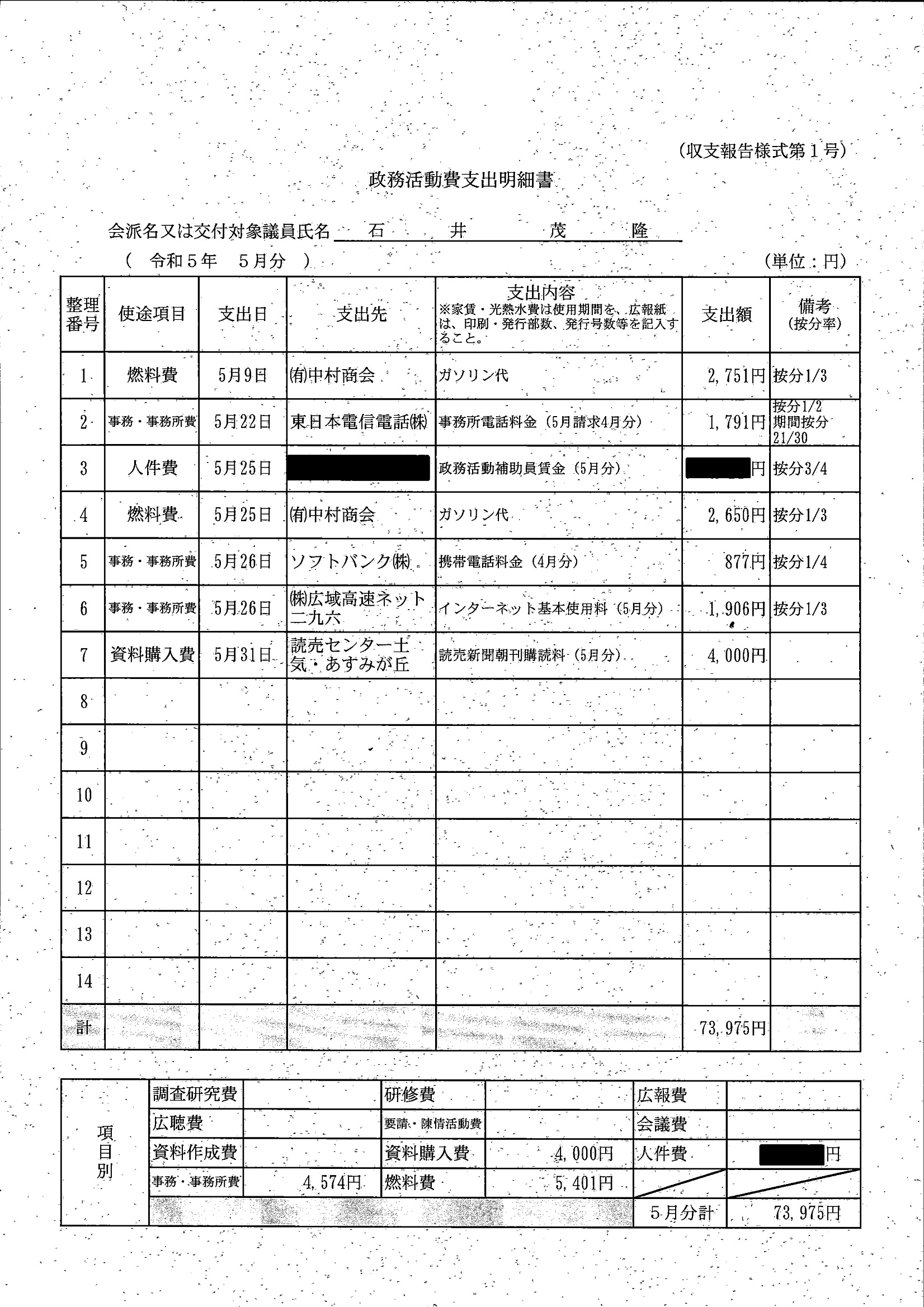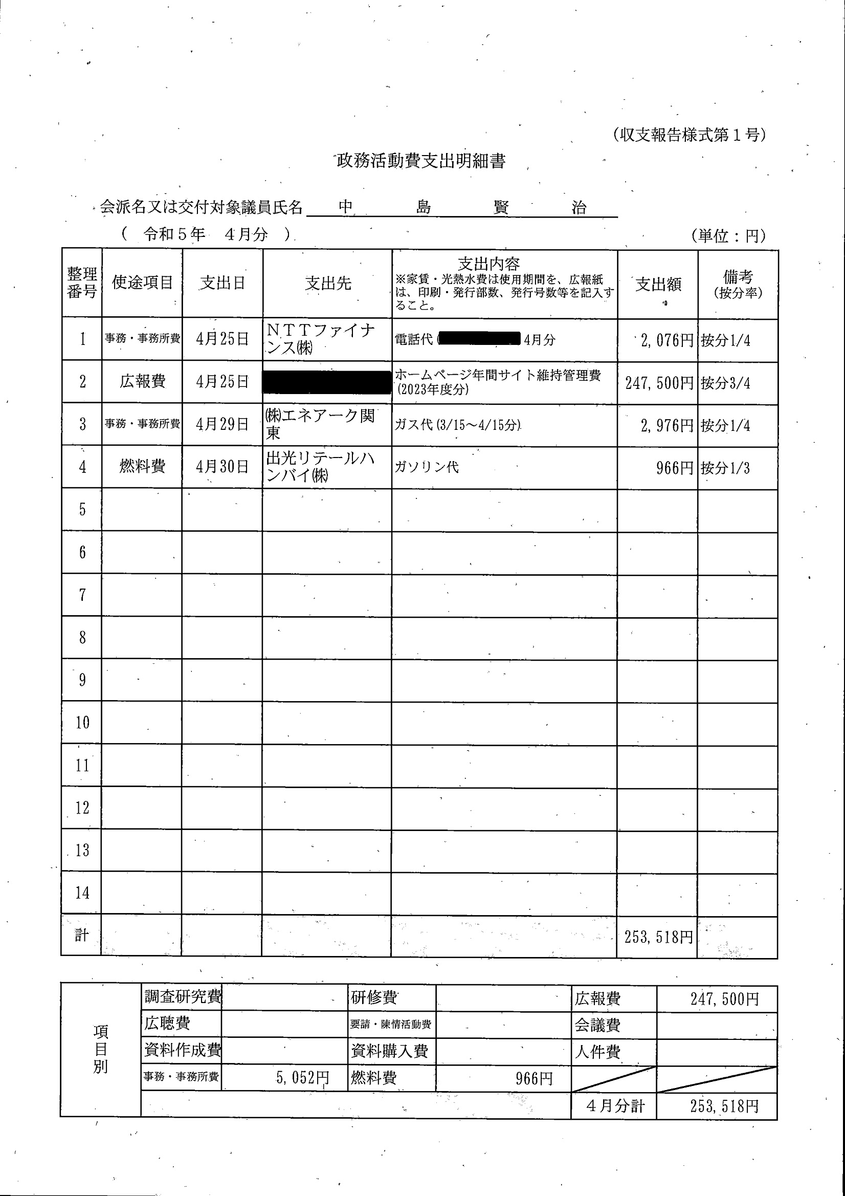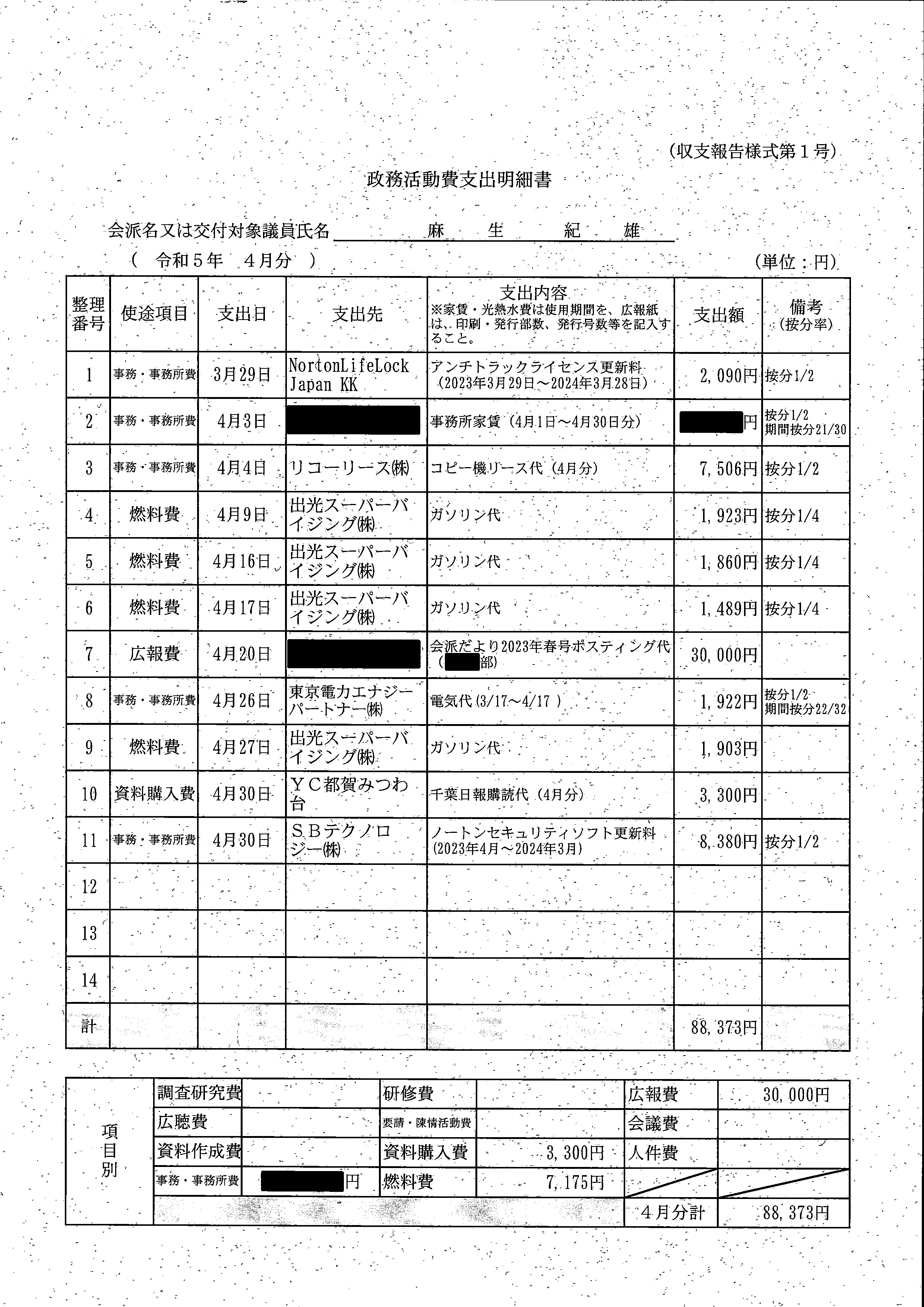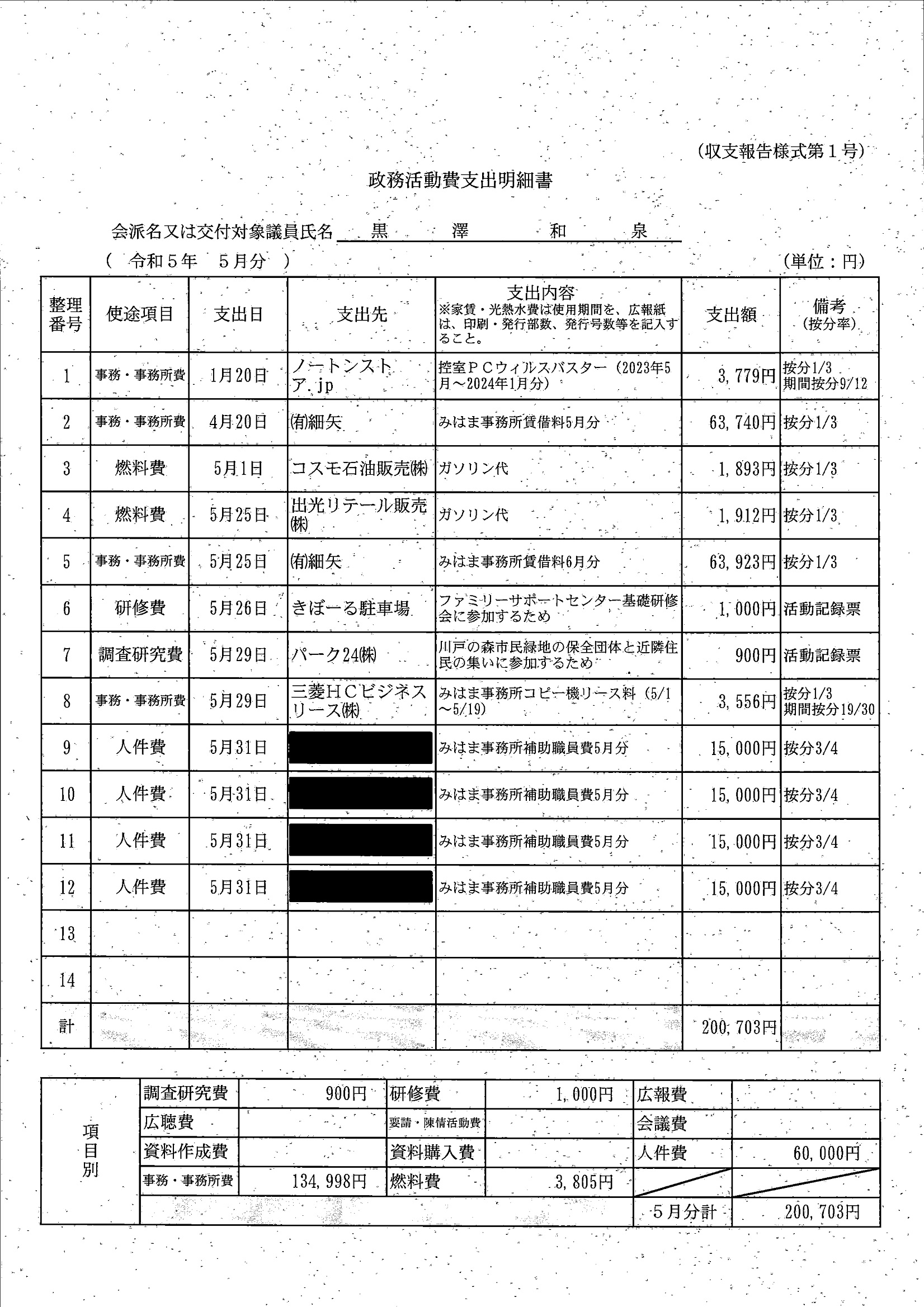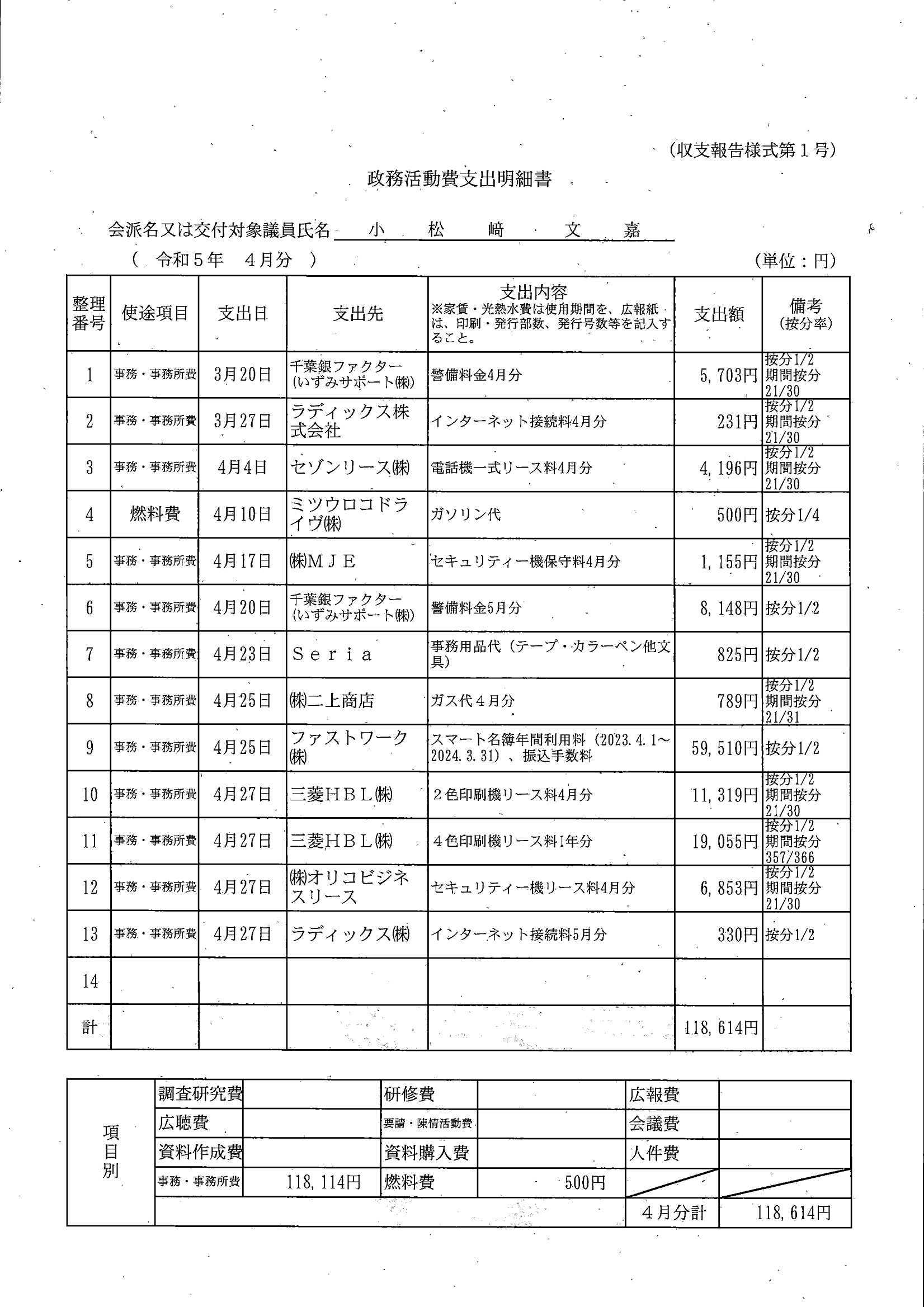 千葉市議会トップページ > 広報・情報公開 > 政務活動費 > 令和5年度交付分(政務活動費収支報告書)