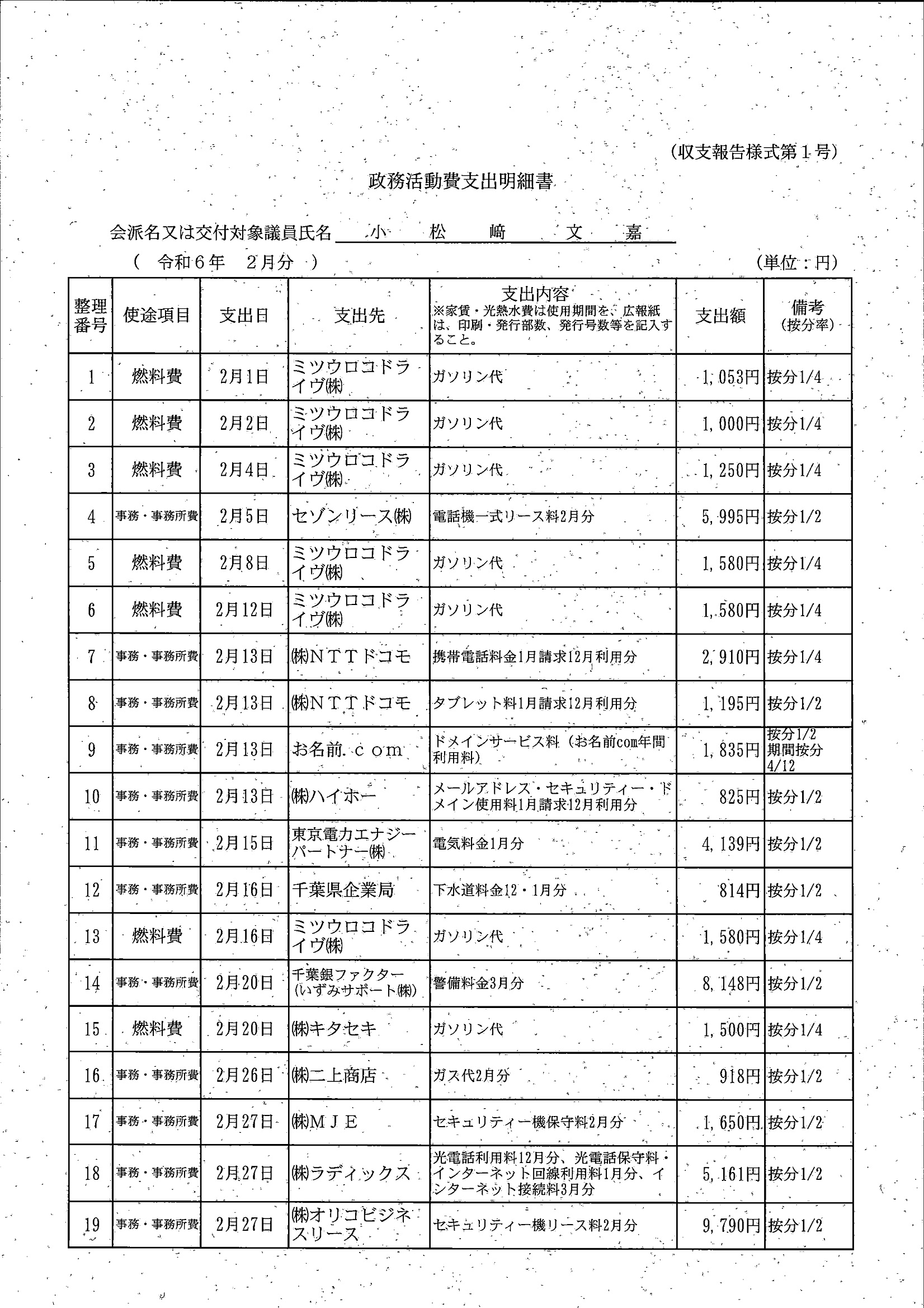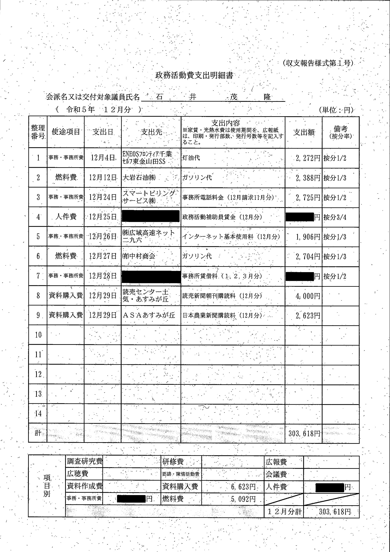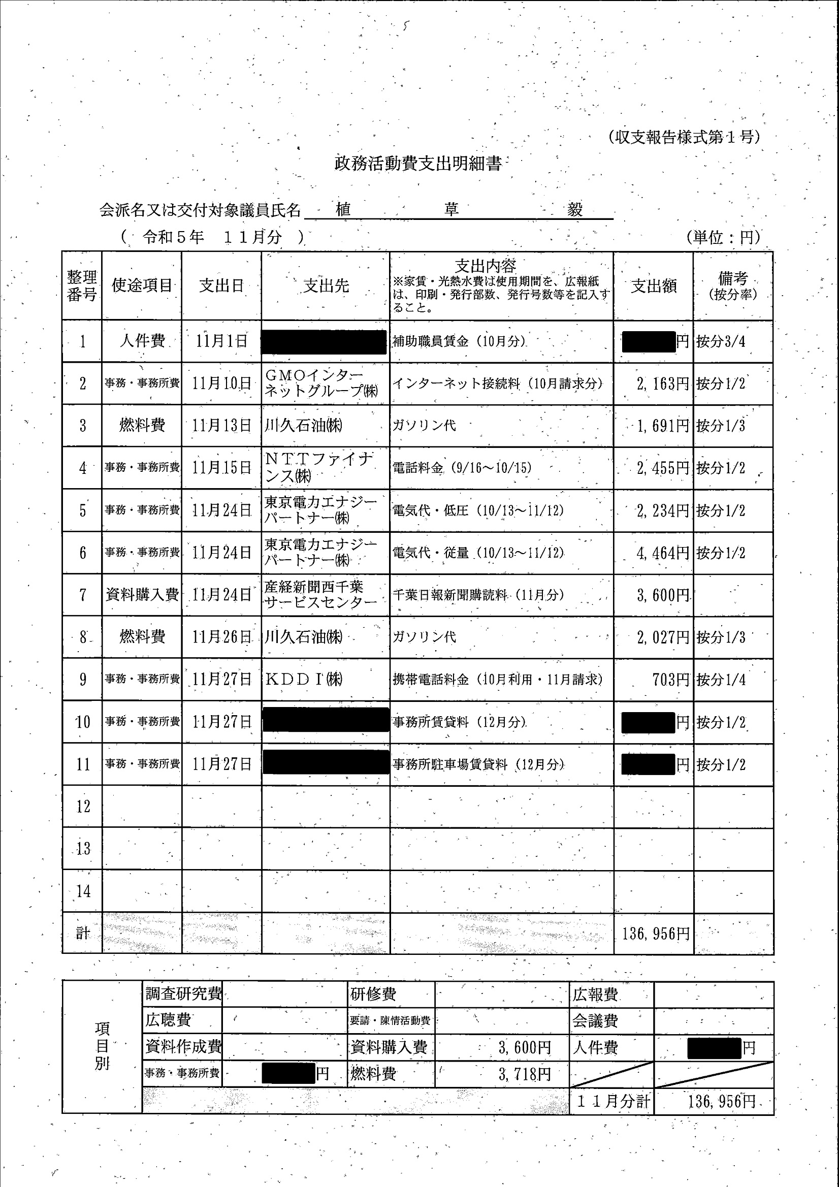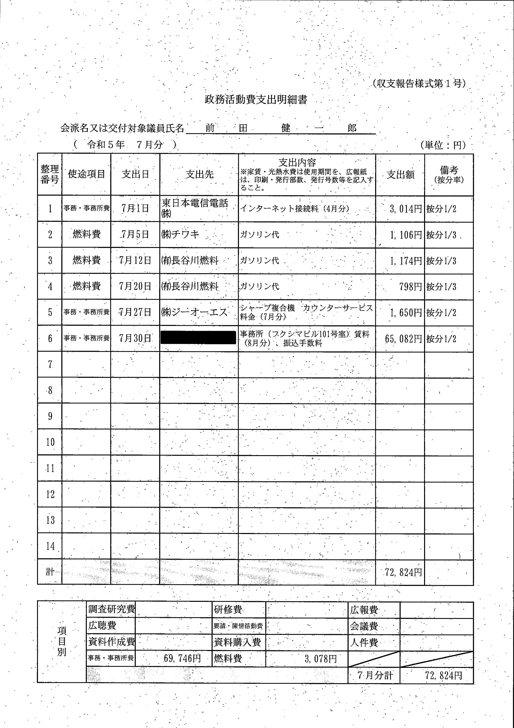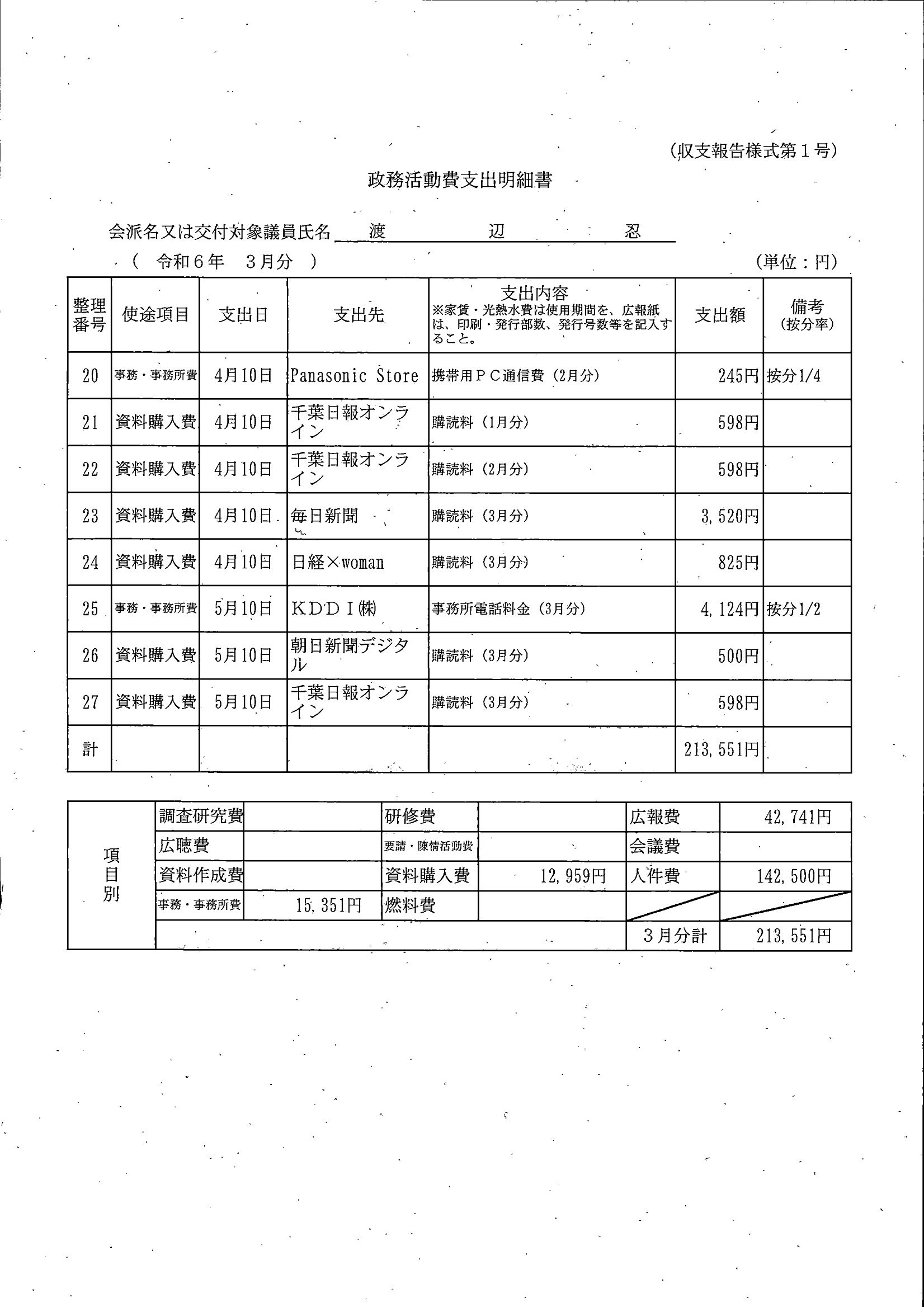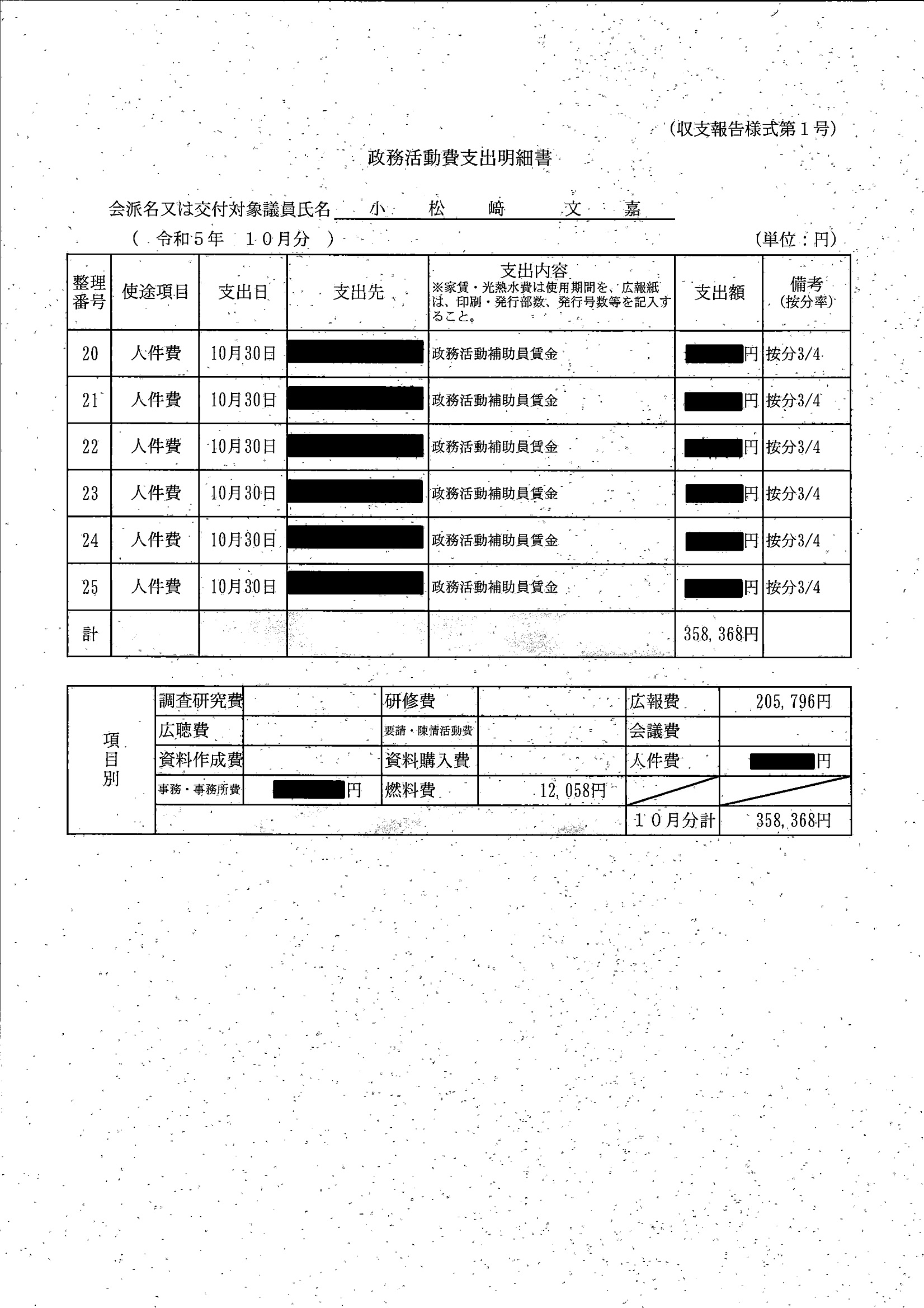 千葉市議会トップページ > 広報・情報公開 > 政務活動費 > 令和5年度交付分(政務活動費収支報告書)