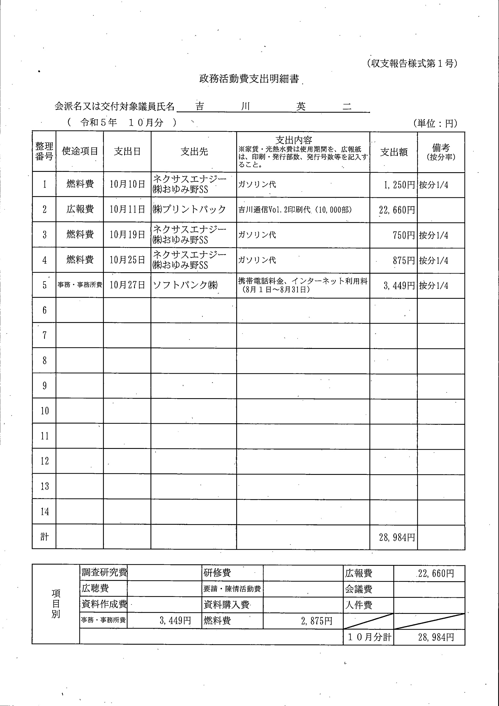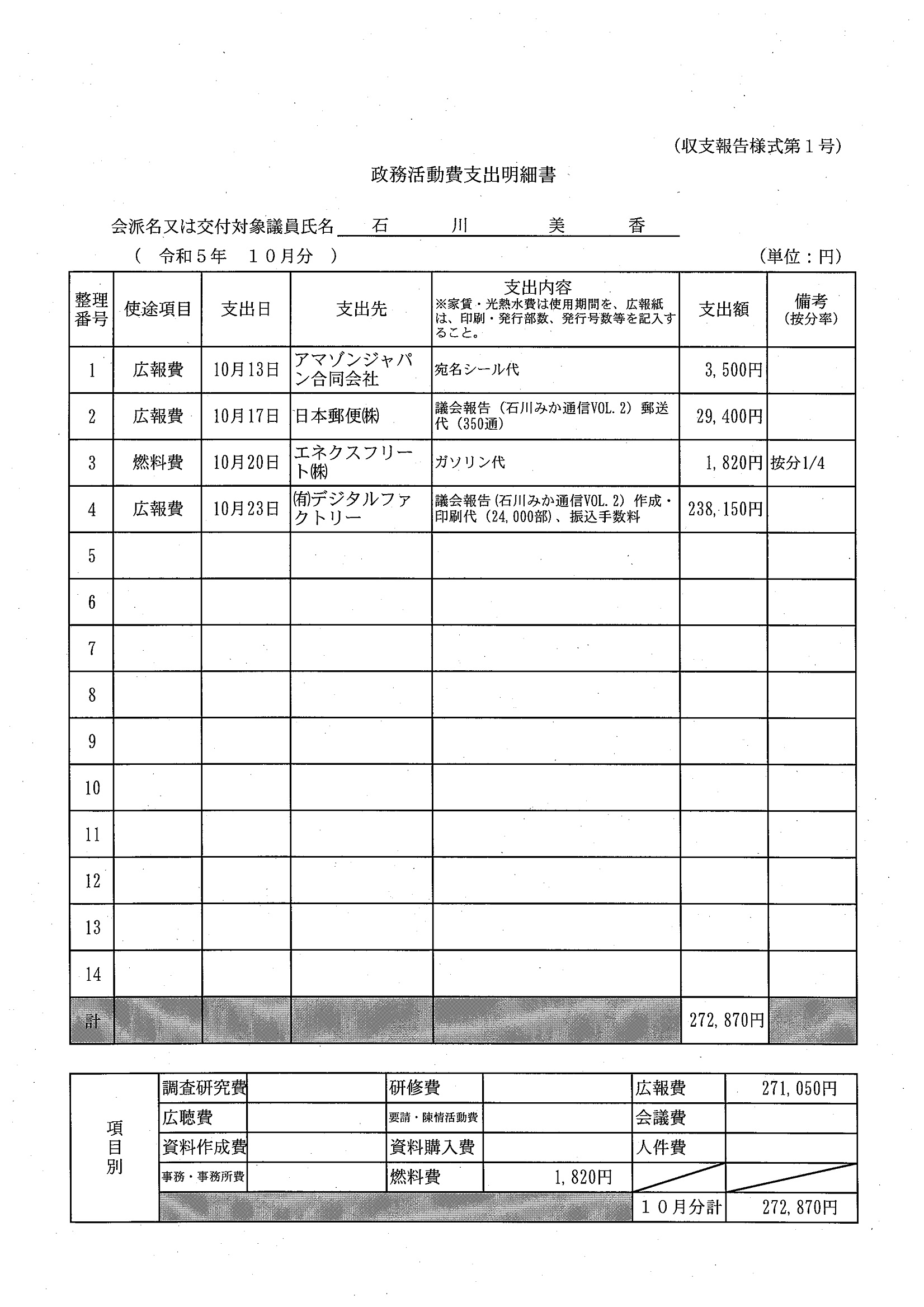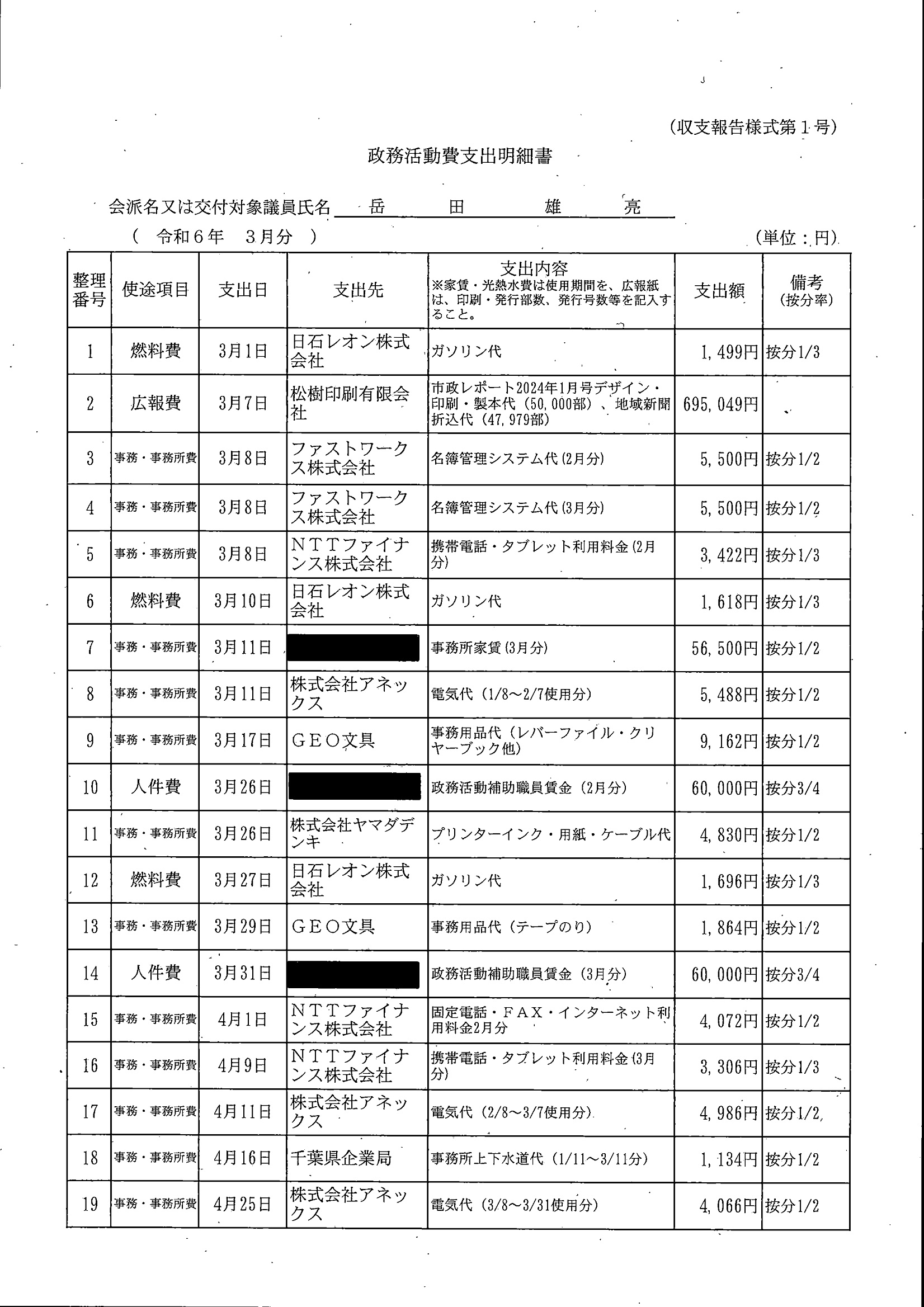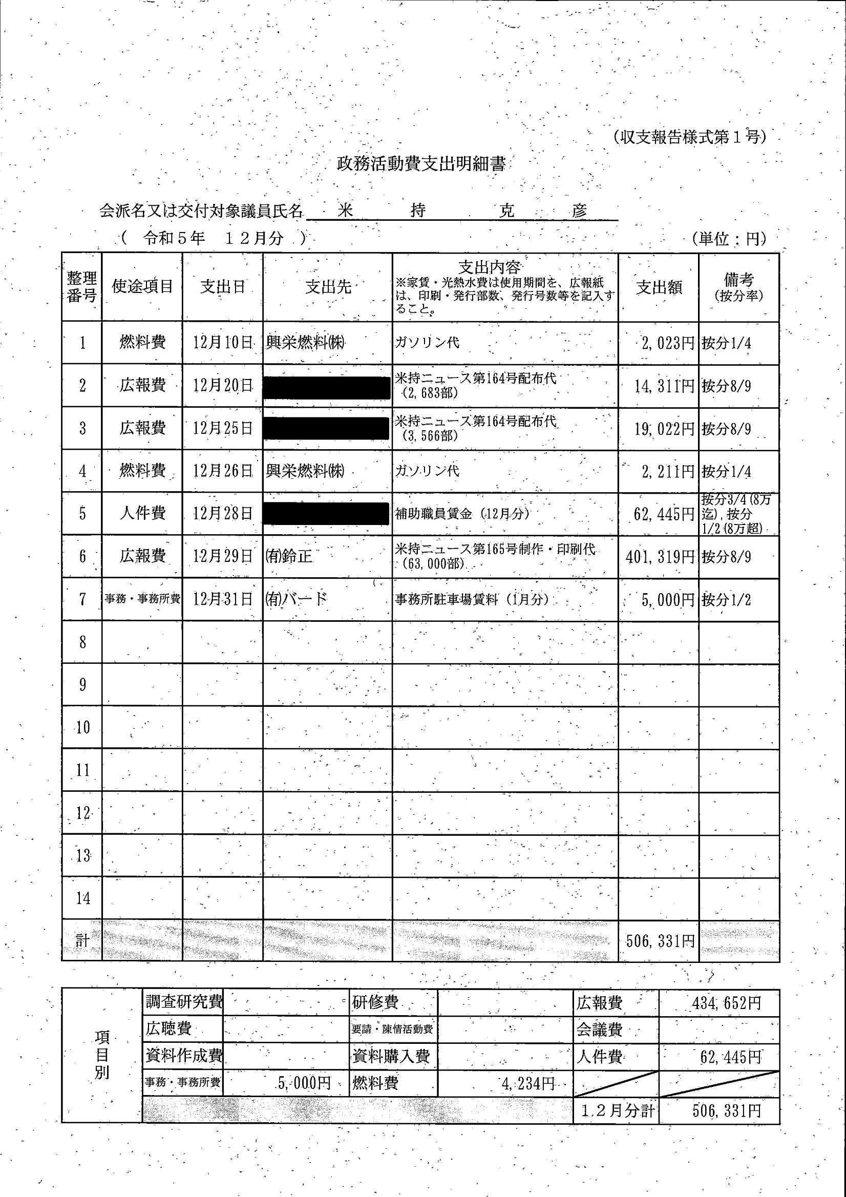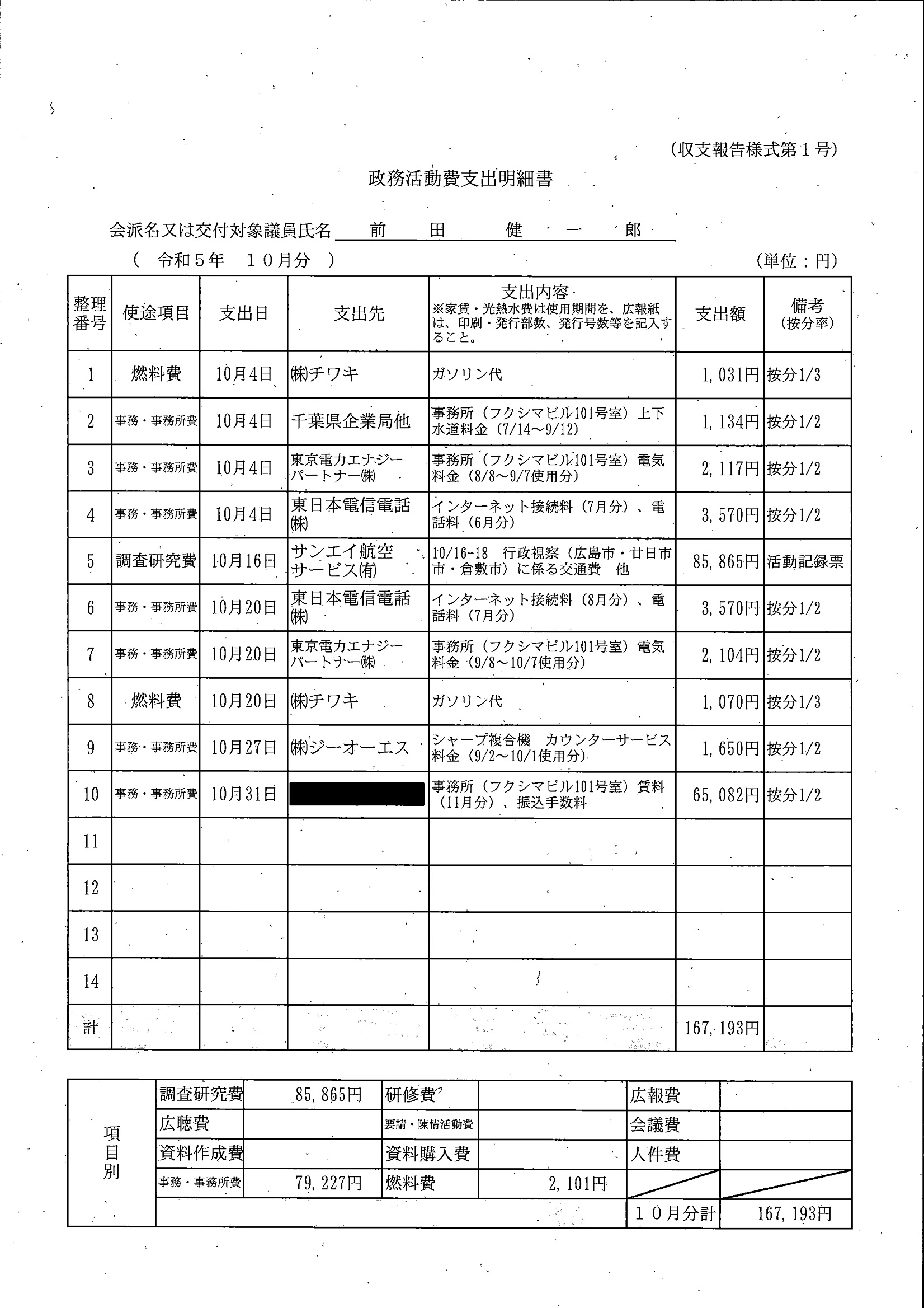 千葉市議会トップページ > 広報・情報公開 > 政務活動費 > 令和5年度交付分(政務活動費収支報告書)