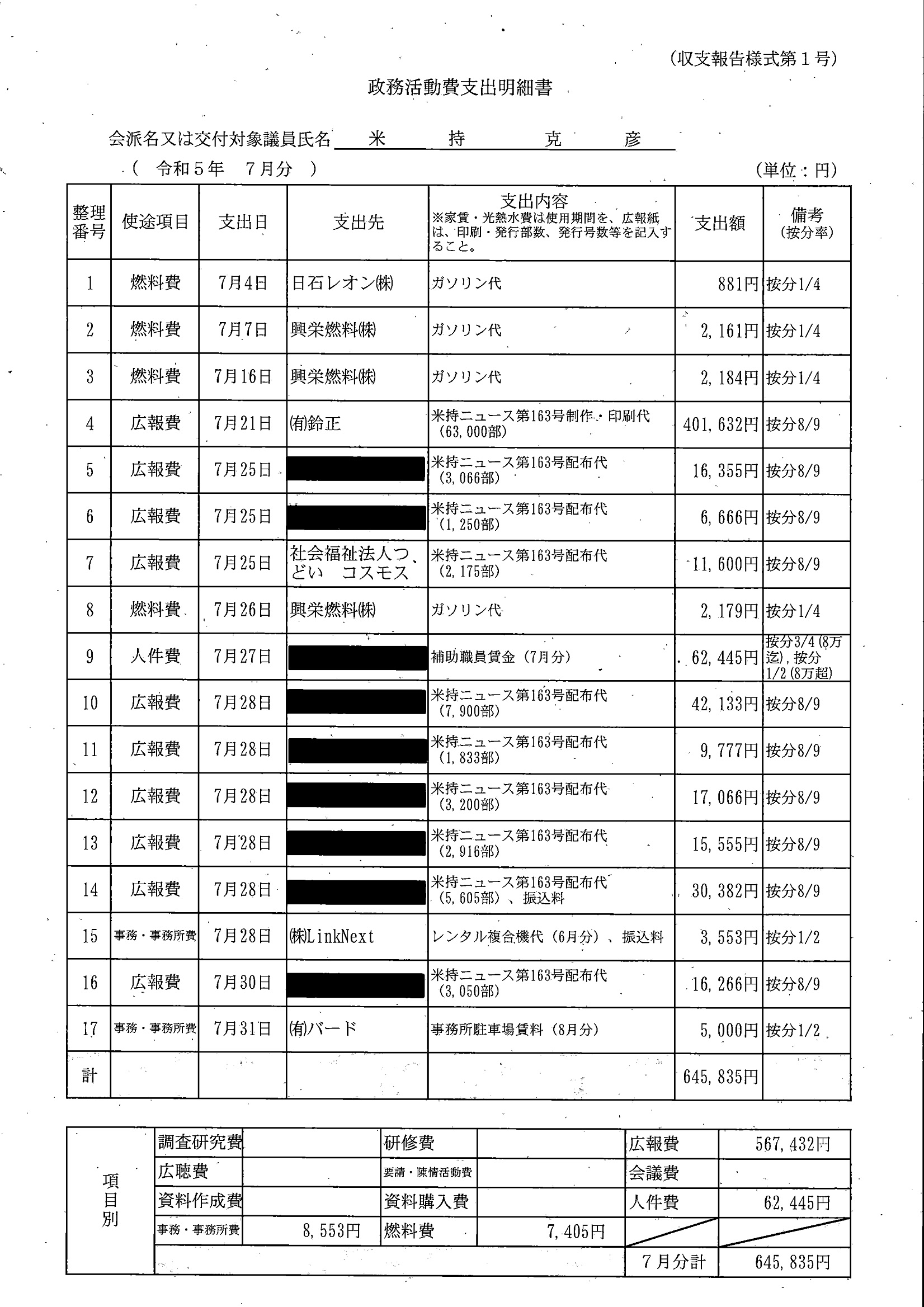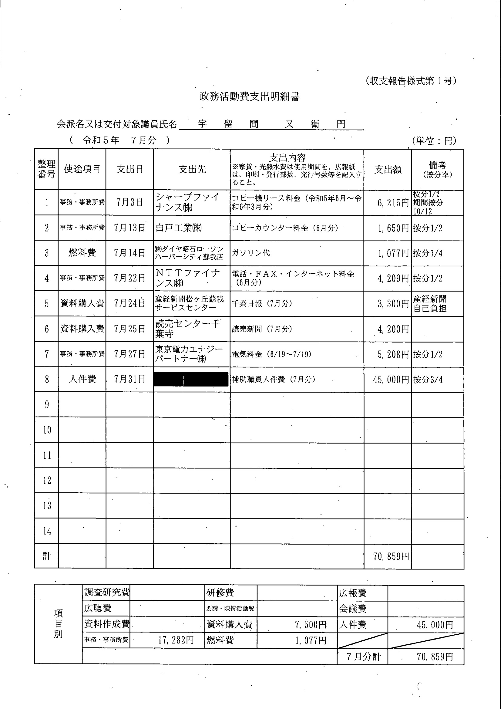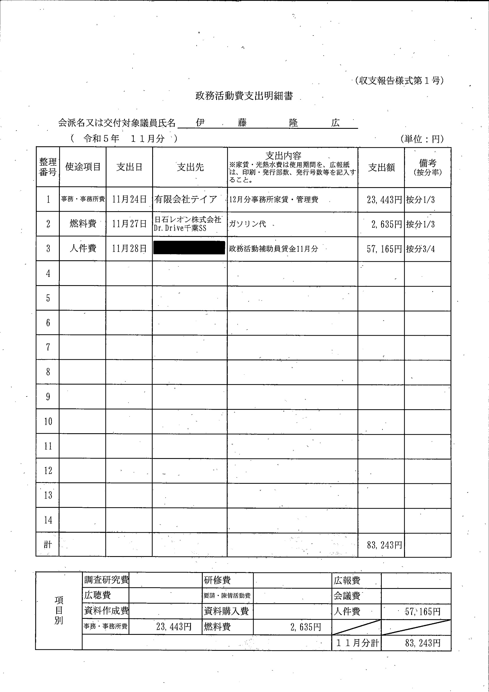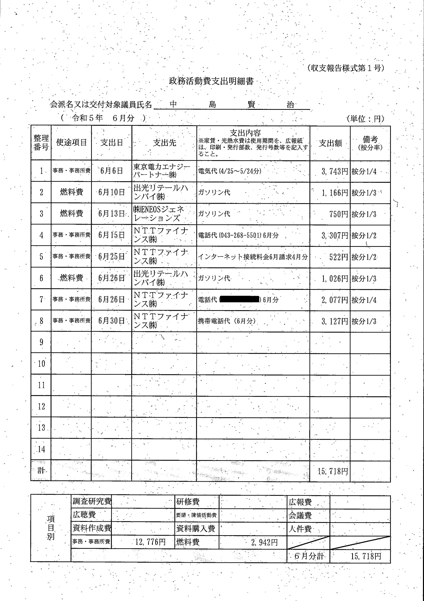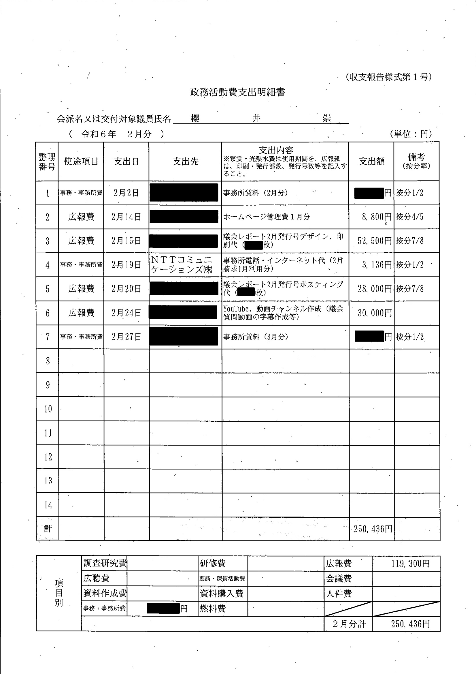千葉市議会トップページ > 広報・情報公開 > 政務活動費 > 令和5年度交付分(政務活動費収支報告書)