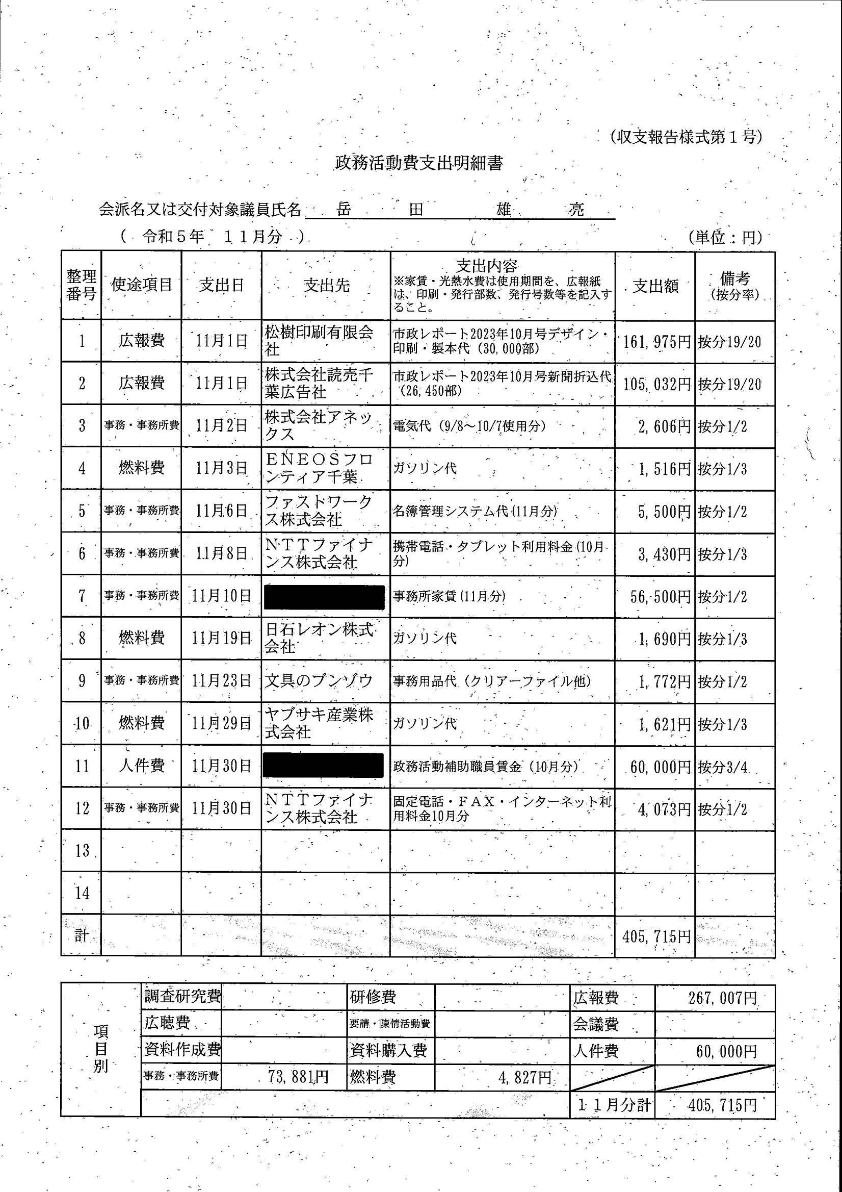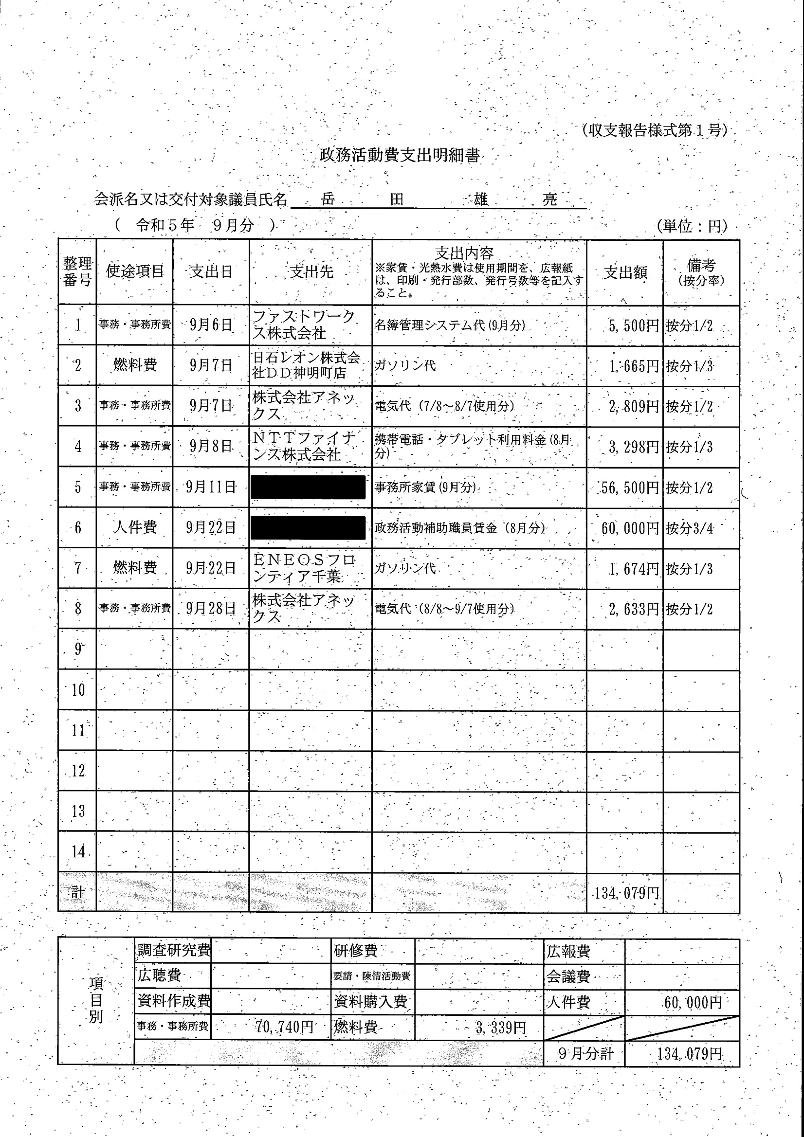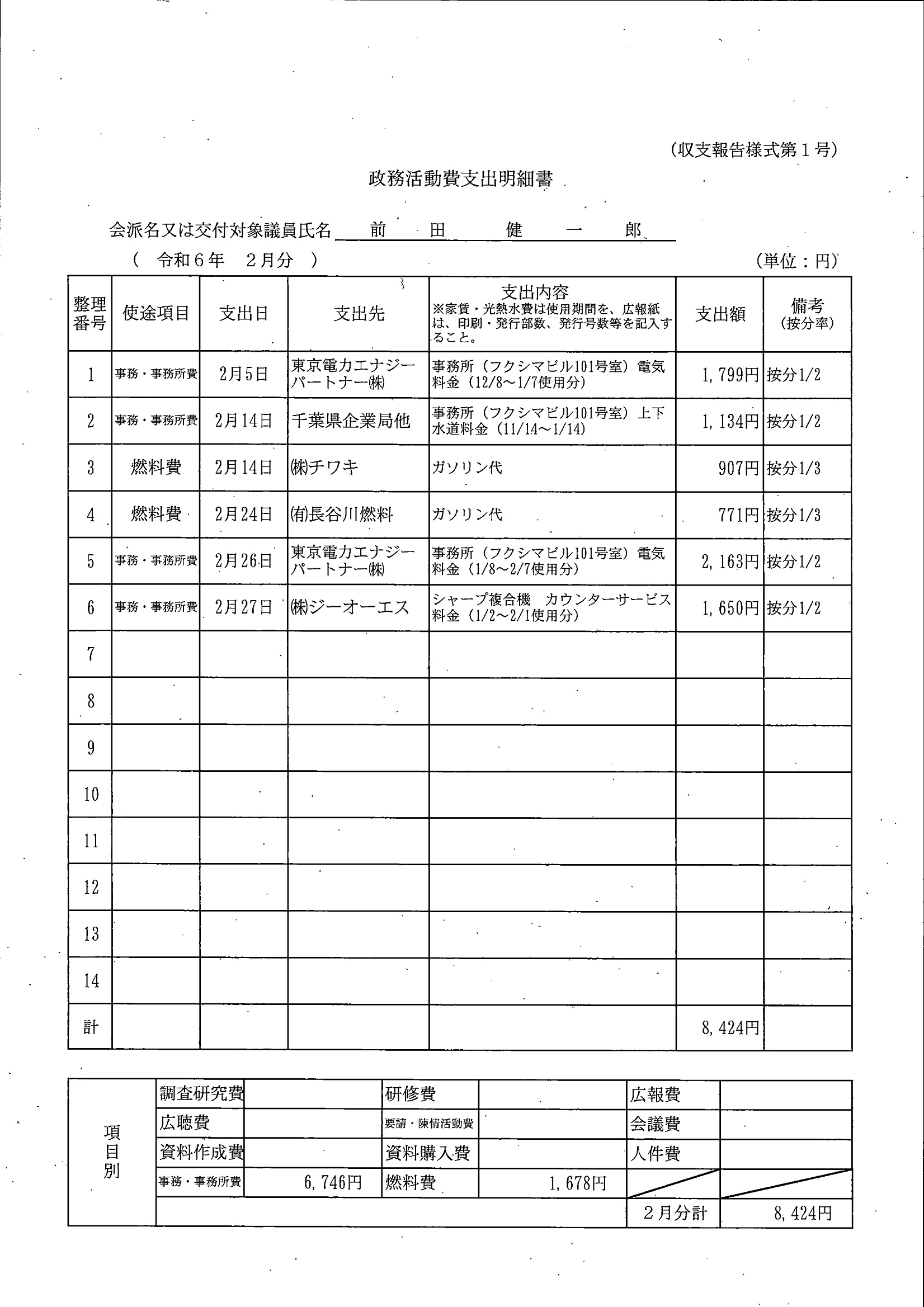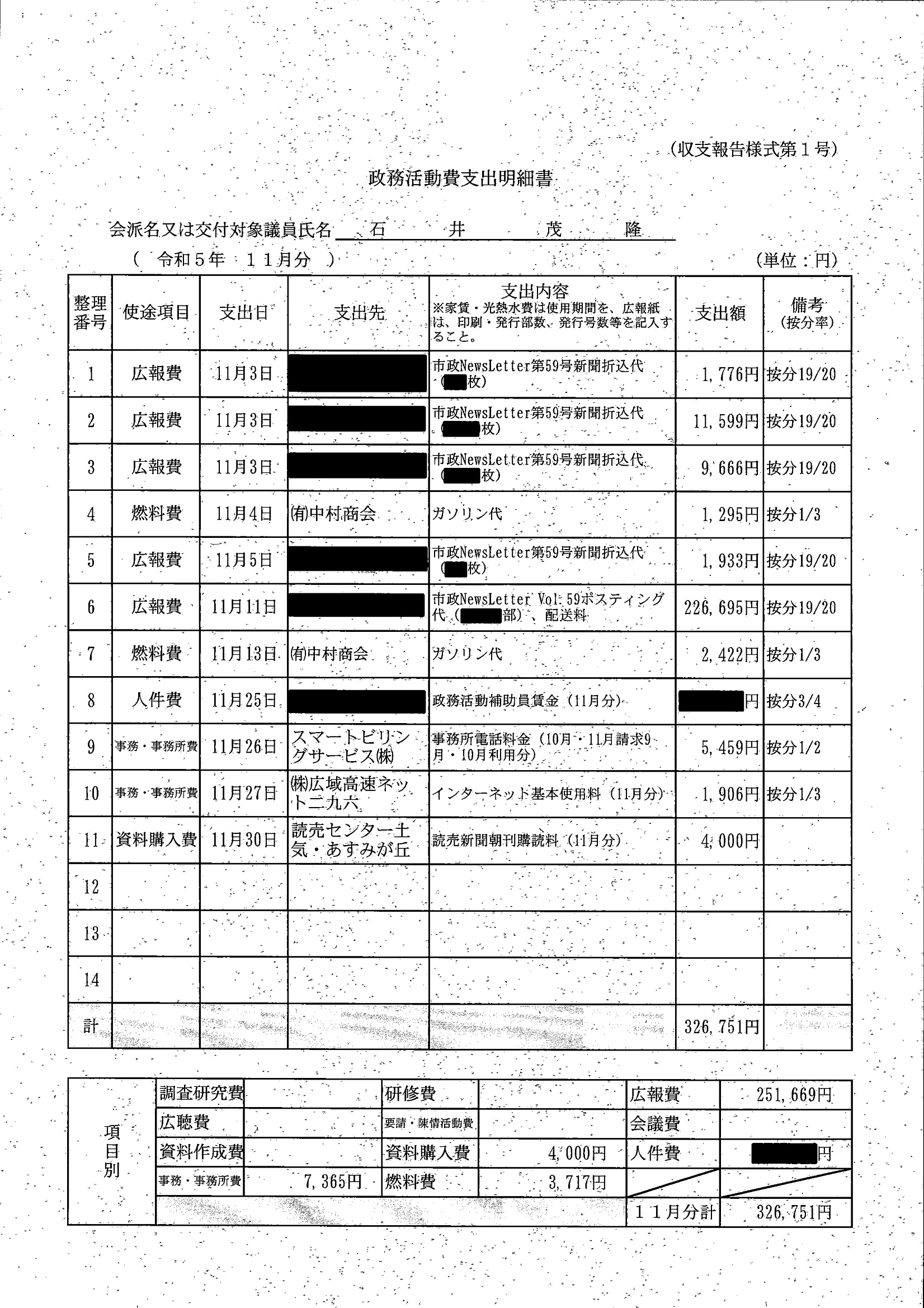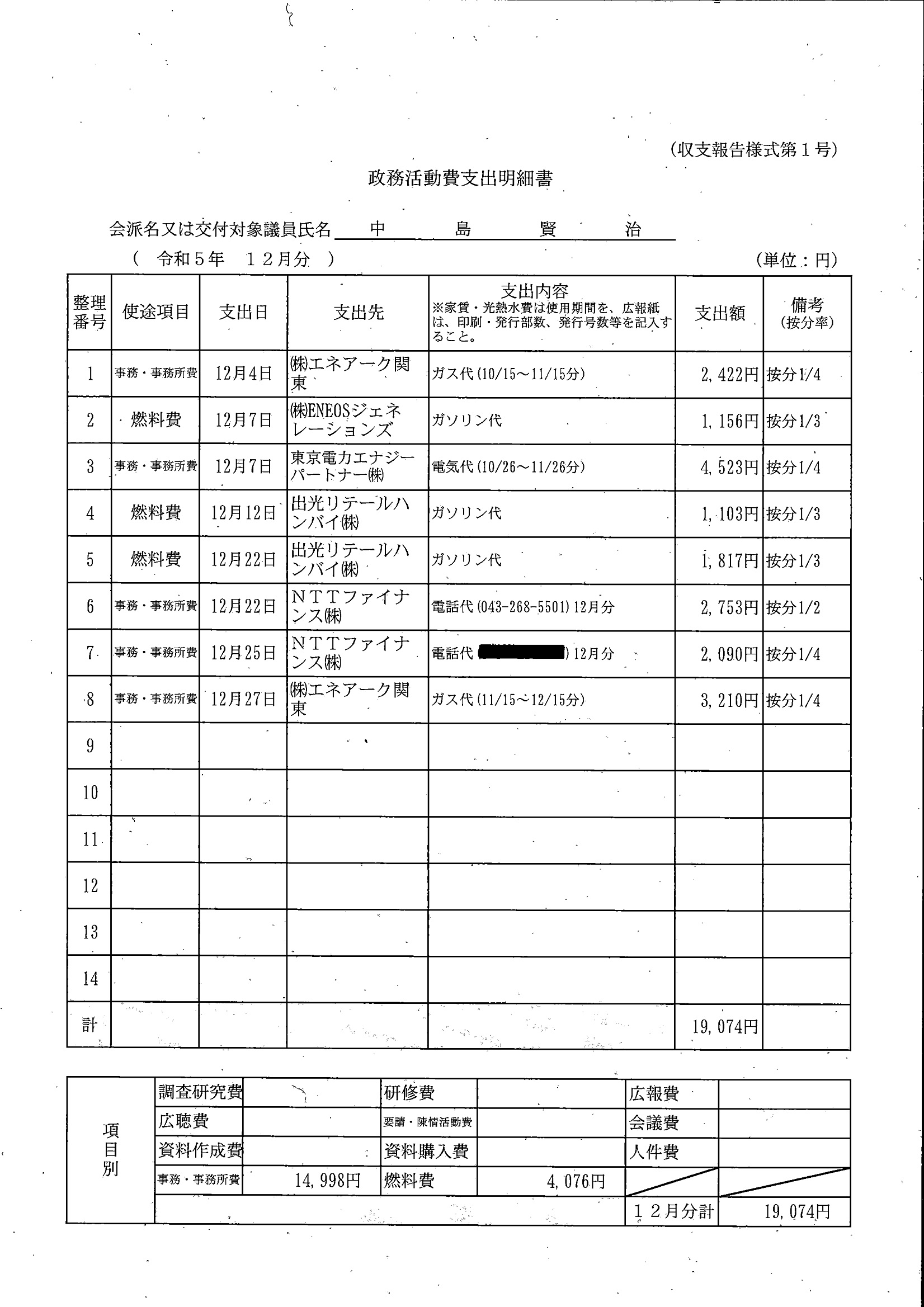 千葉市議会トップページ > 広報・情報公開 > 政務活動費 > 令和5年度交付分(政務活動費収支報告書)