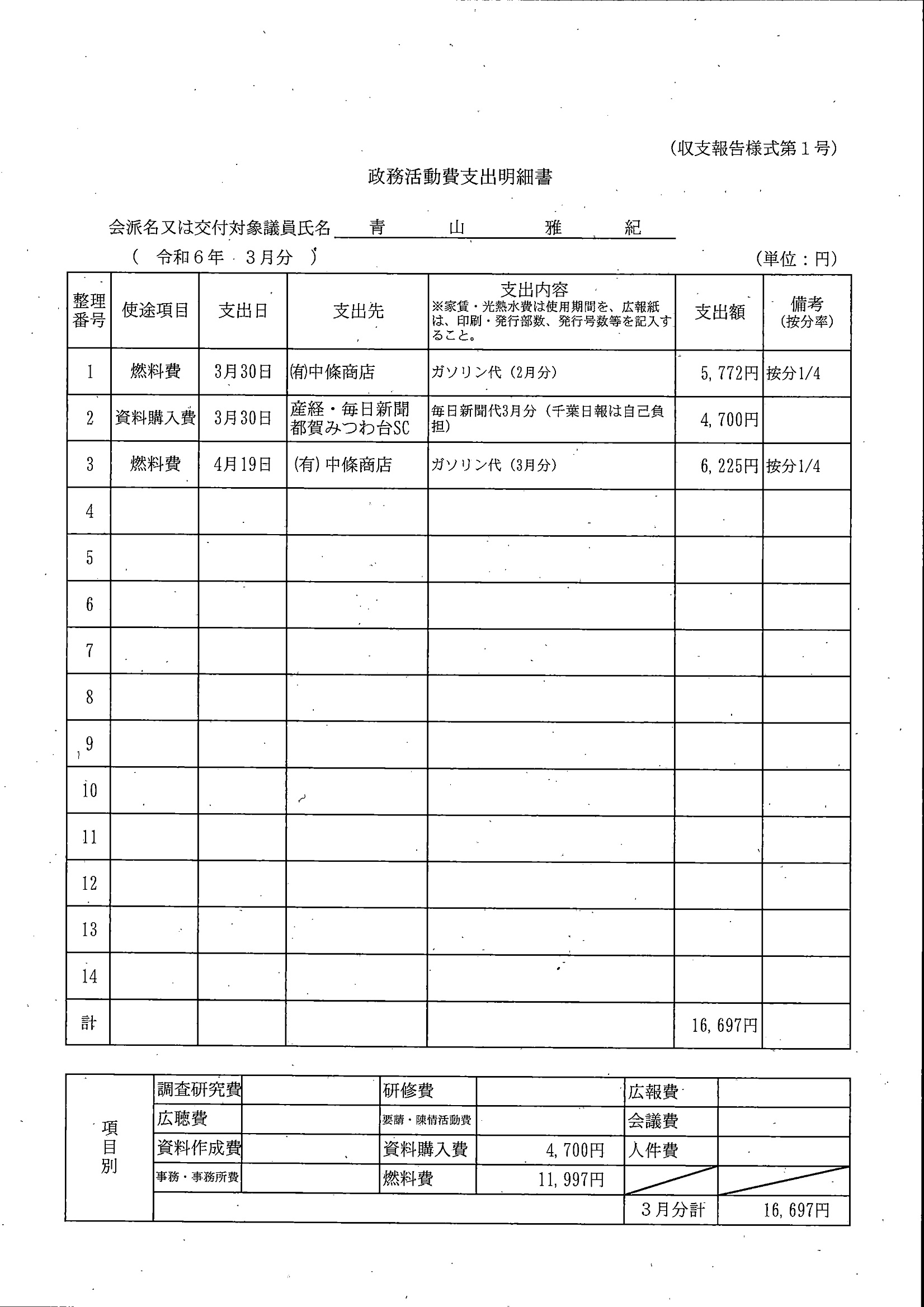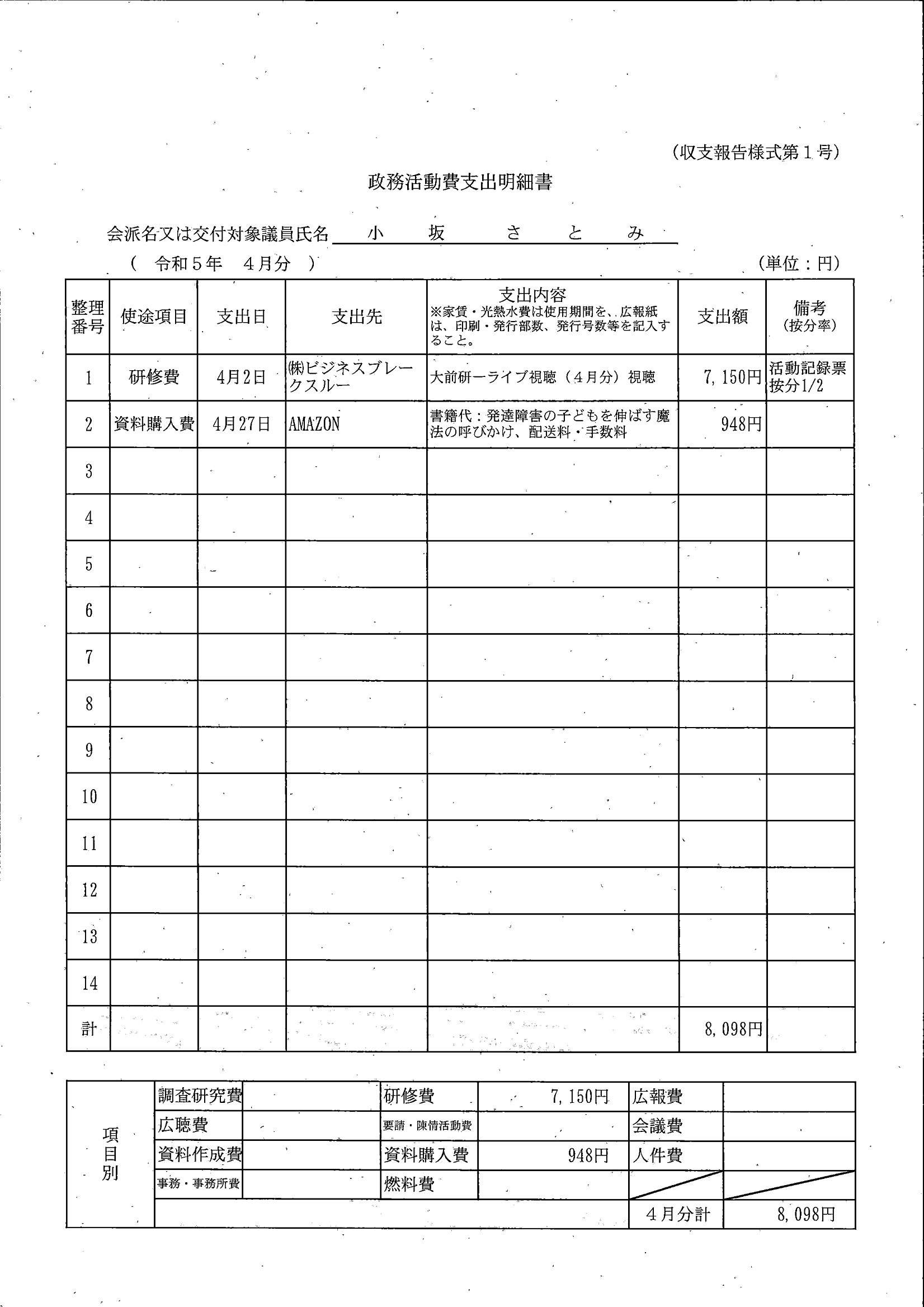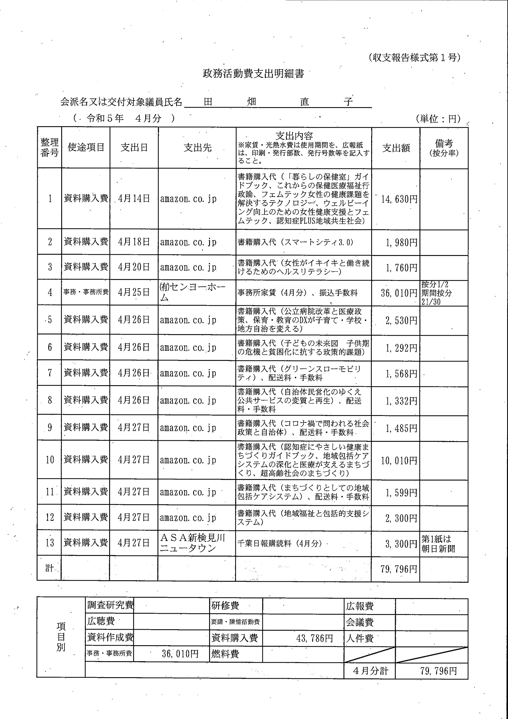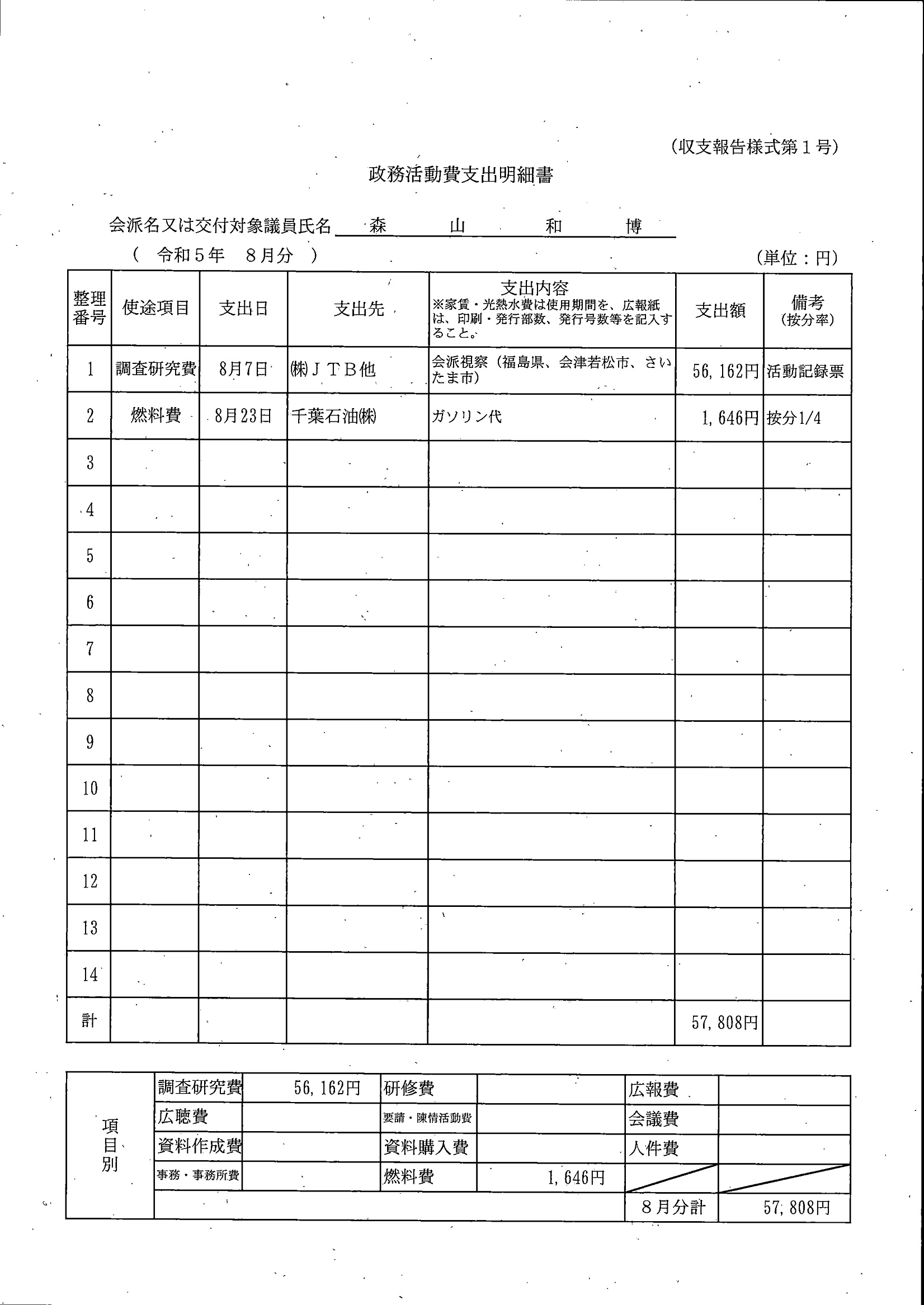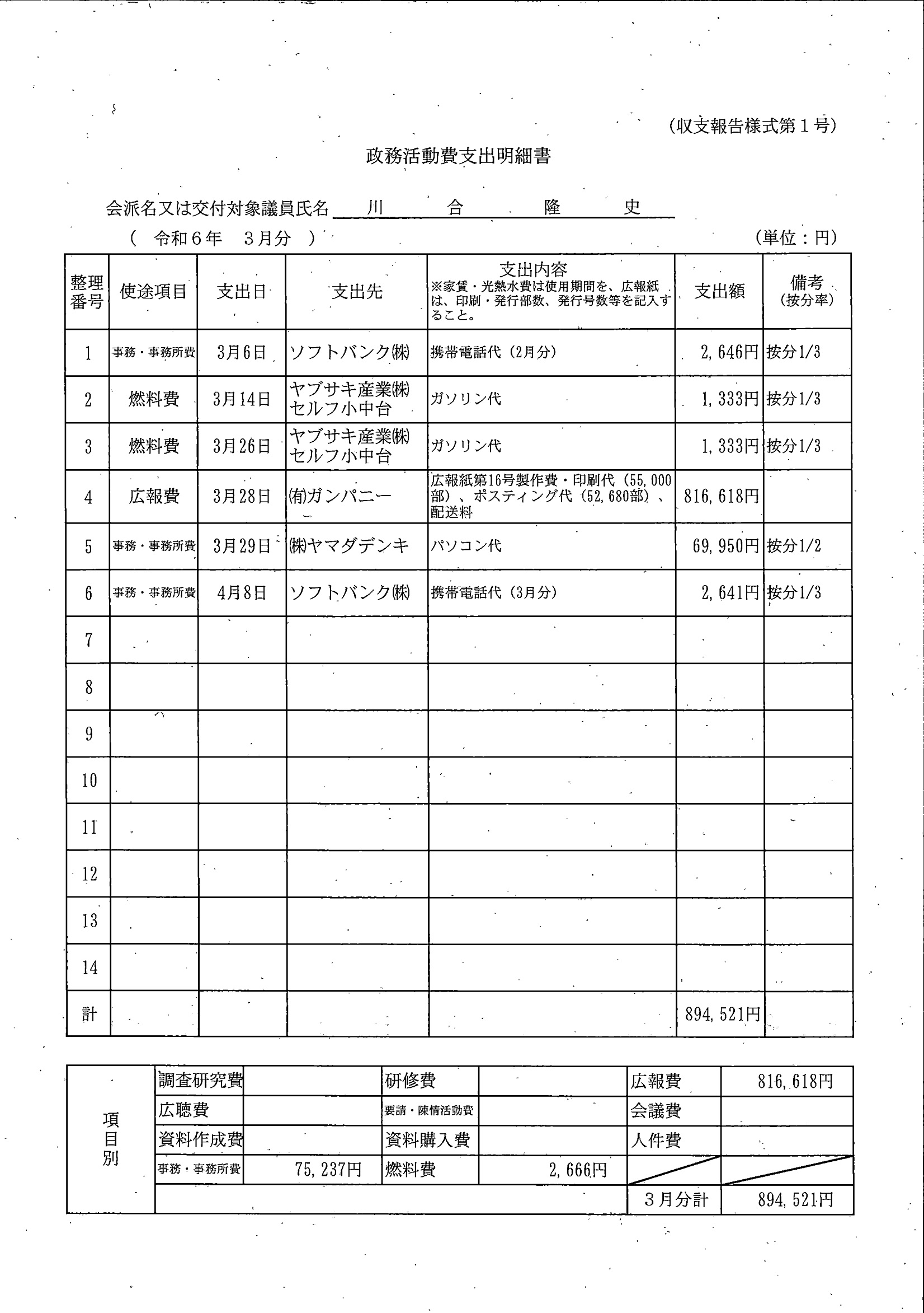 千葉市議会トップページ > 広報・情報公開 > 政務活動費 > 令和5年度交付分(政務活動費収支報告書)