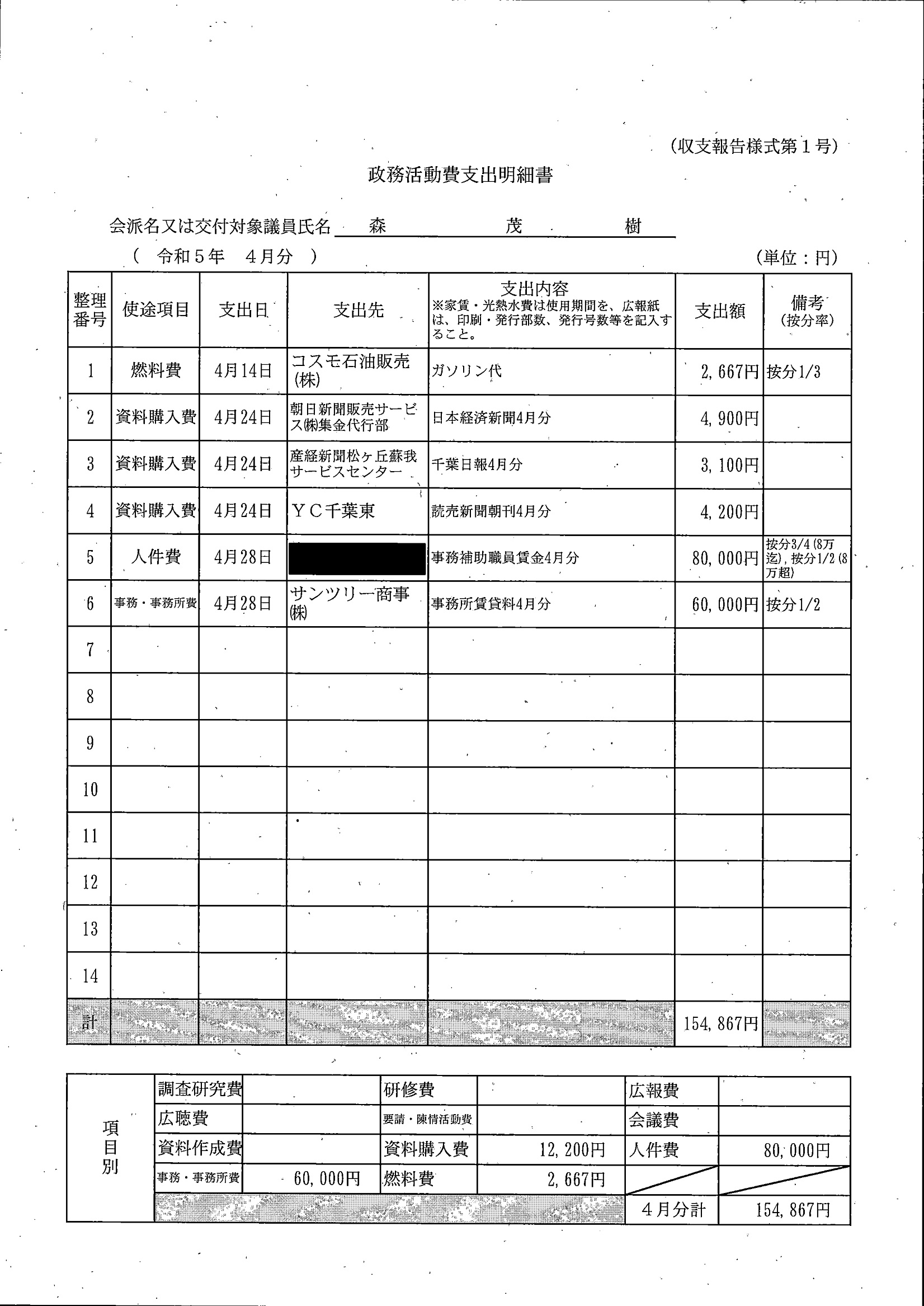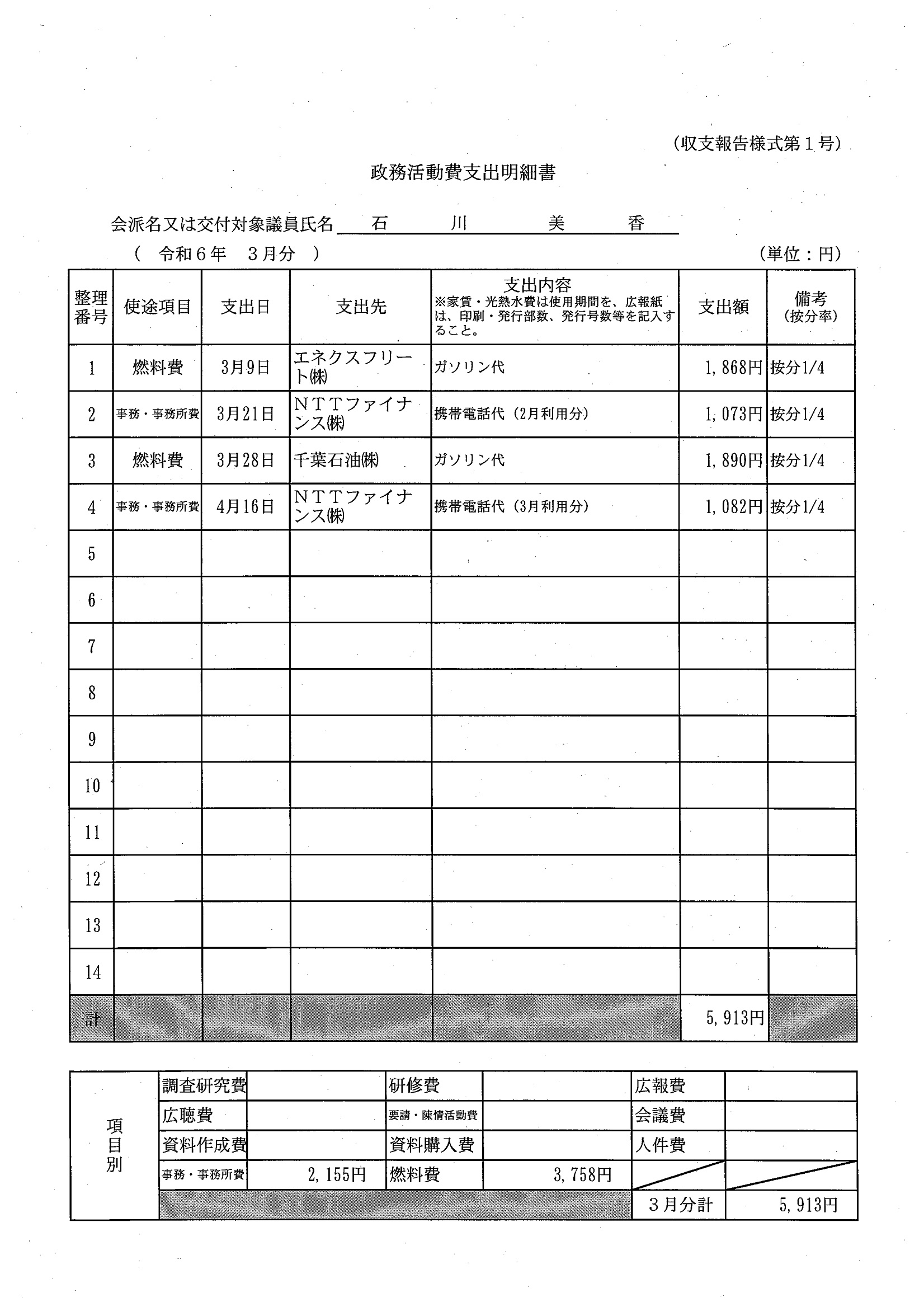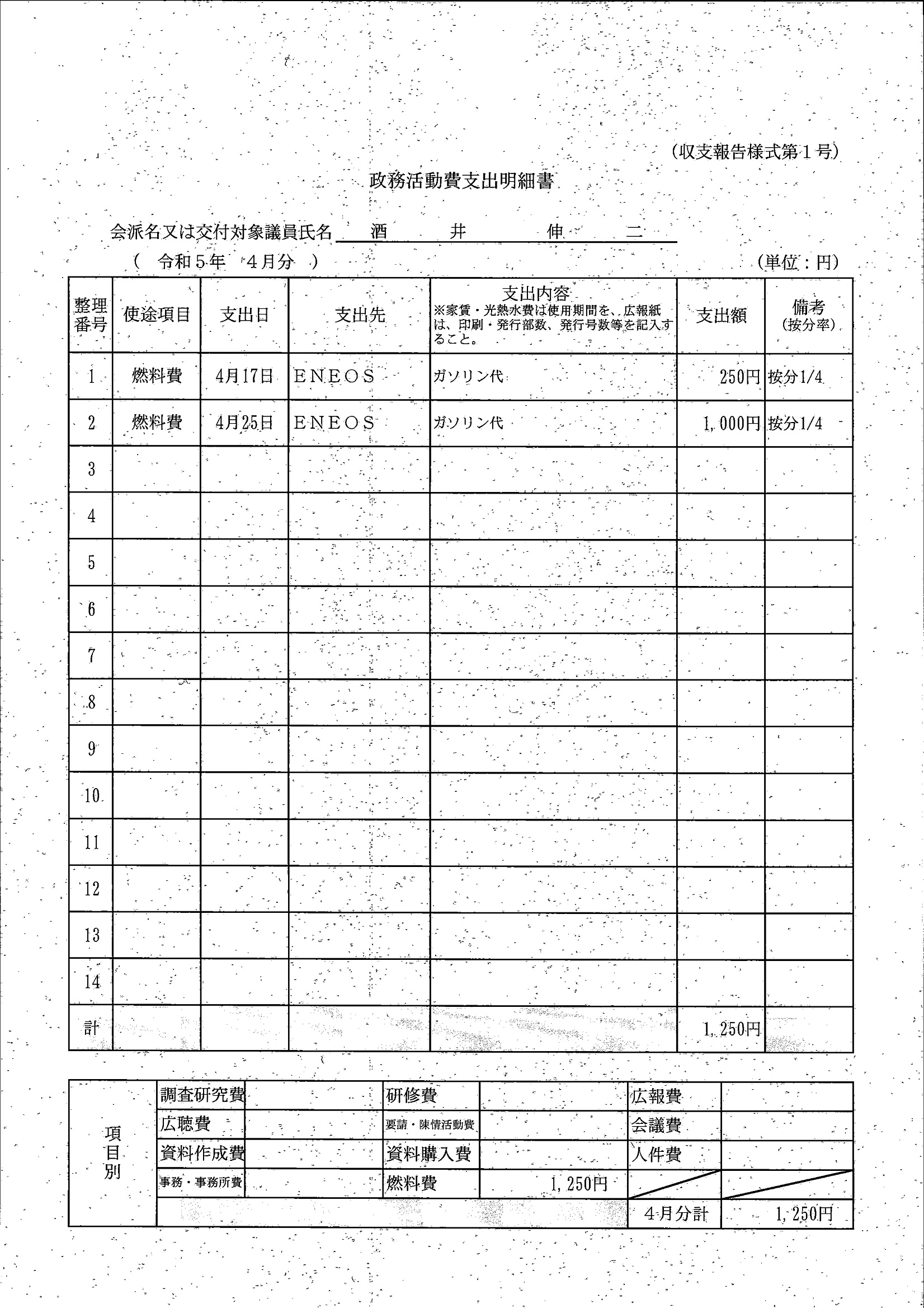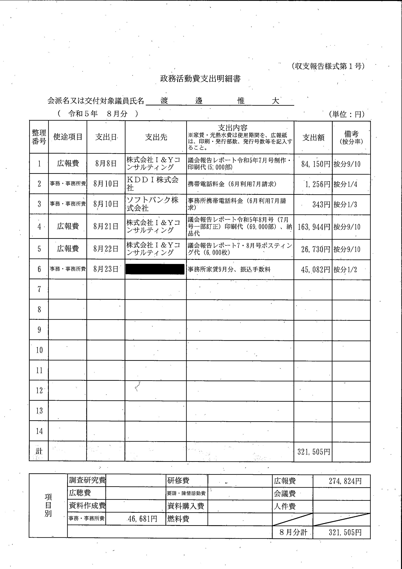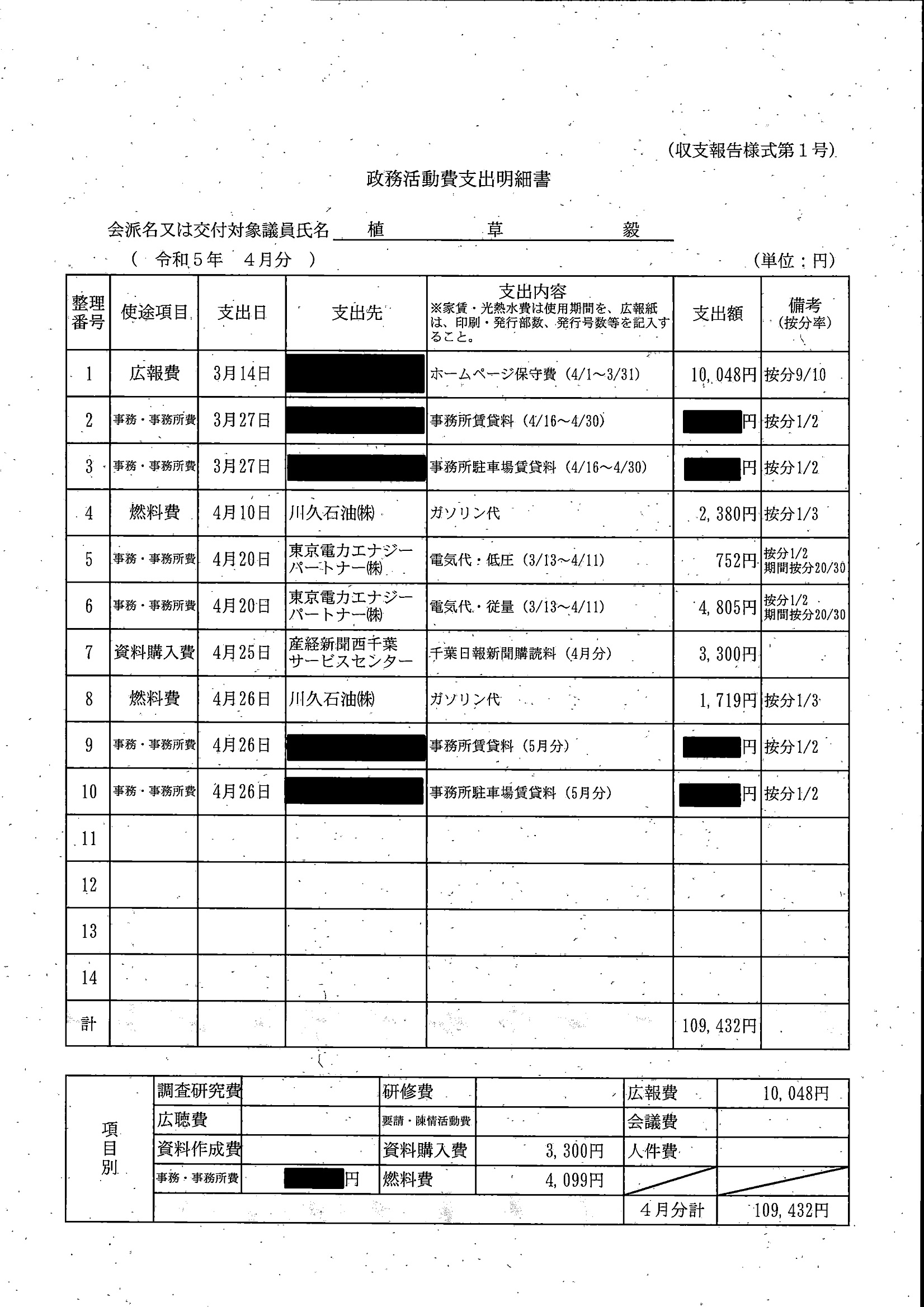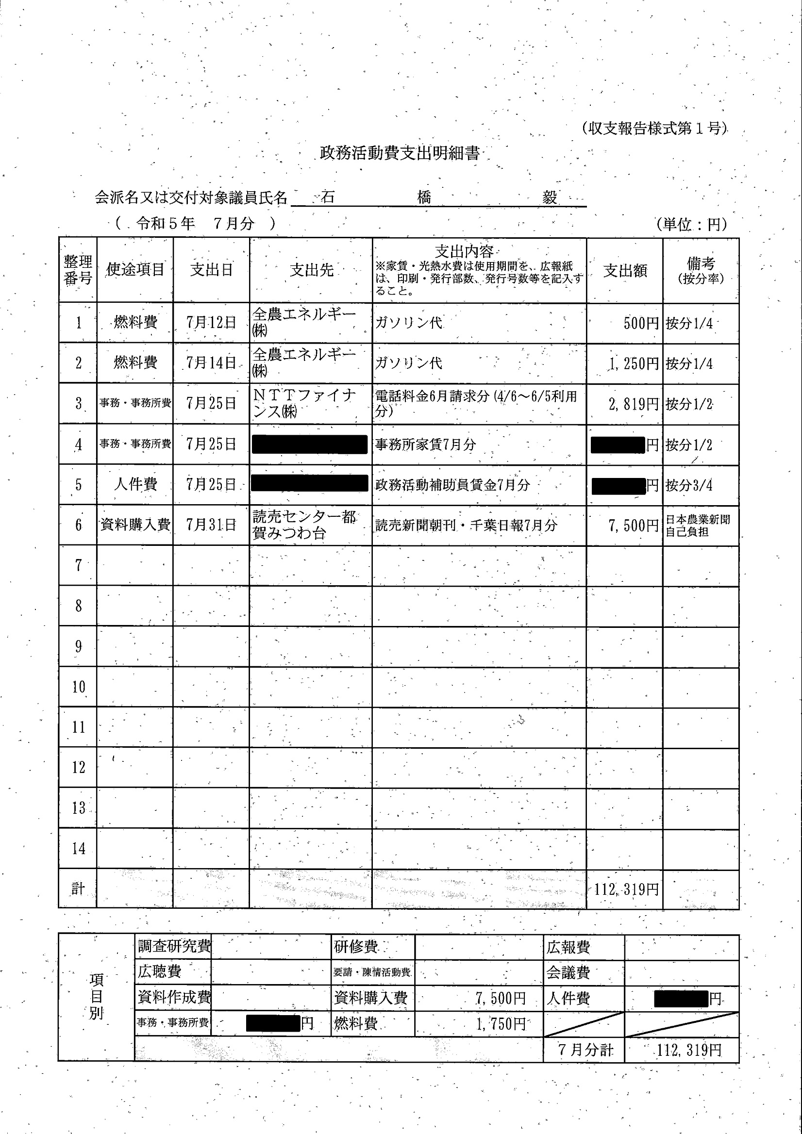 千葉市議会トップページ > 広報・情報公開 > 政務活動費 > 令和5年度交付分(政務活動費収支報告書)