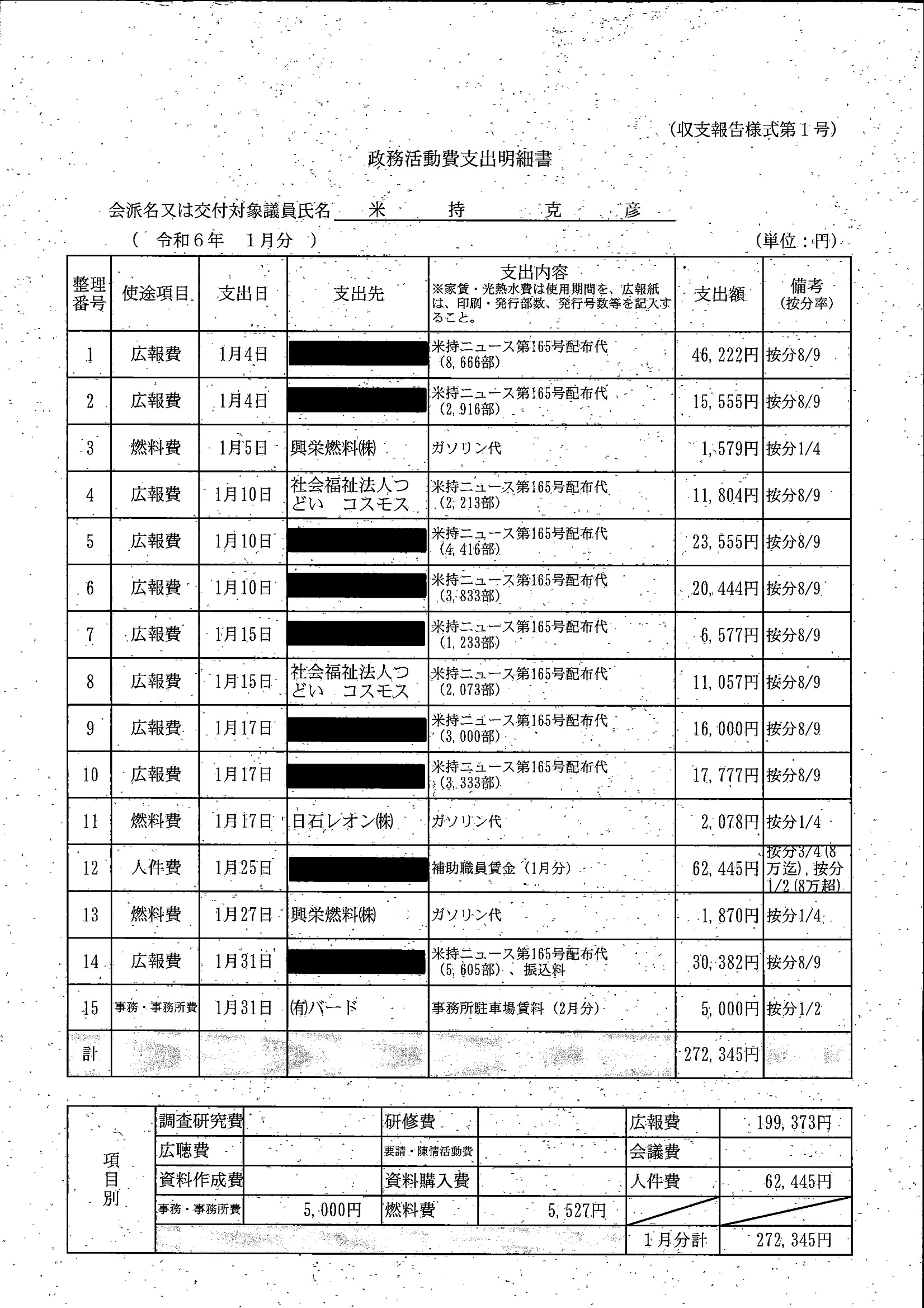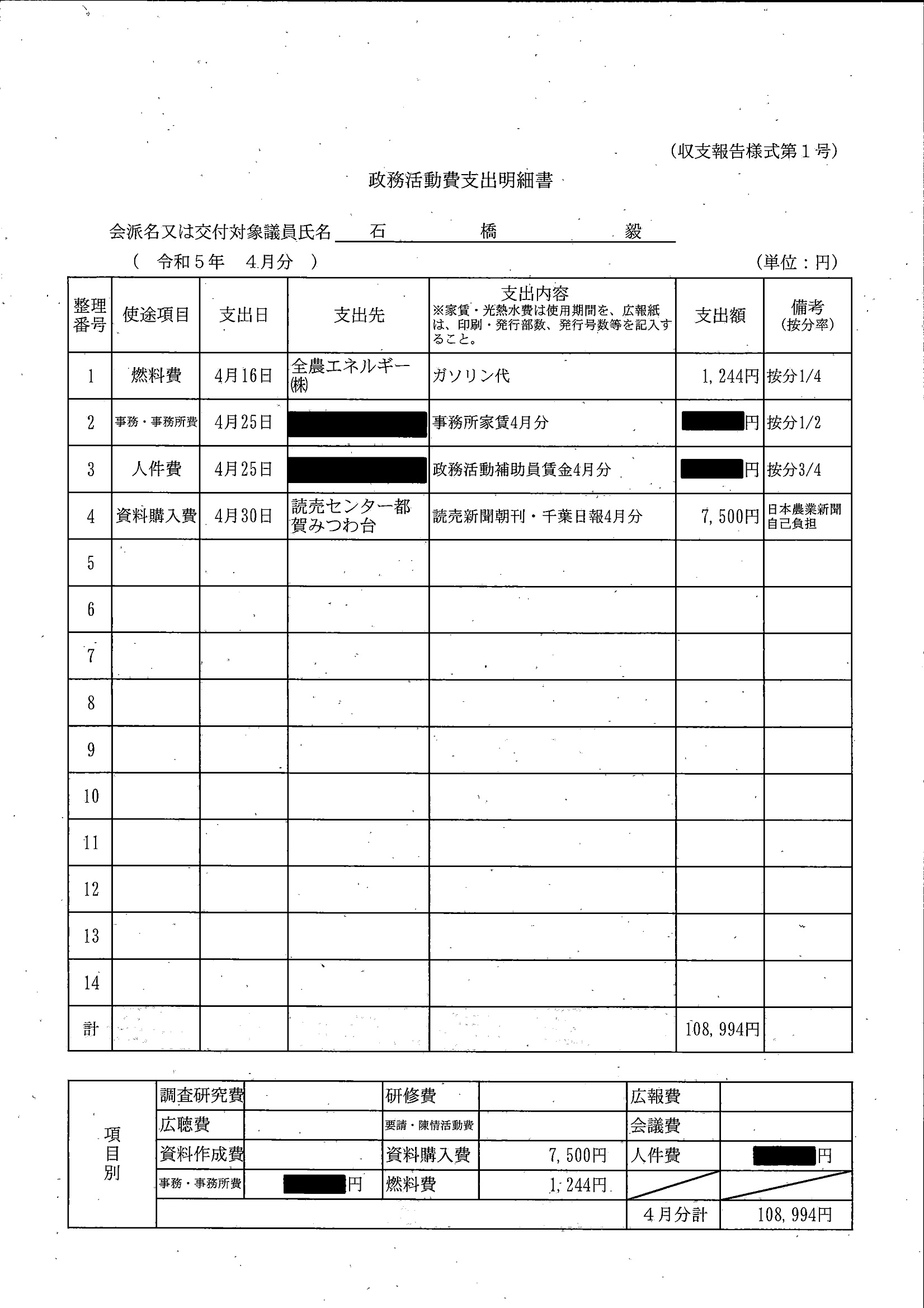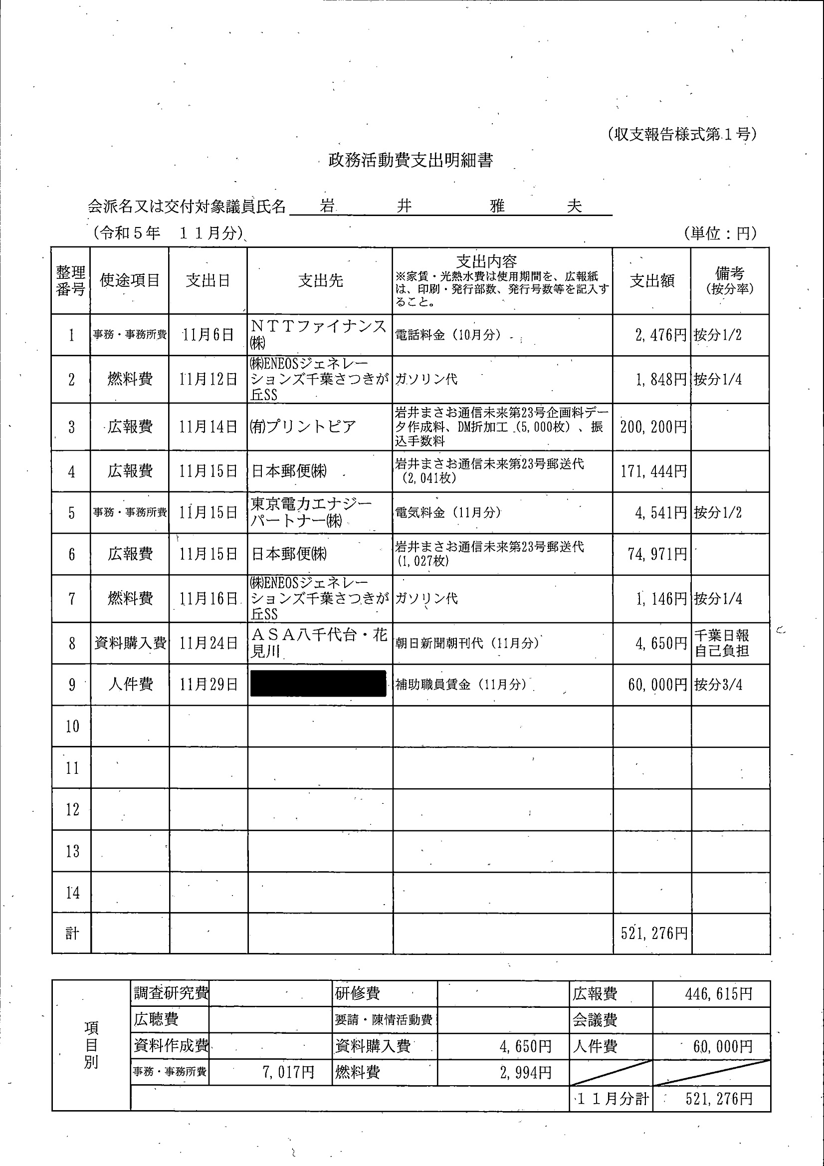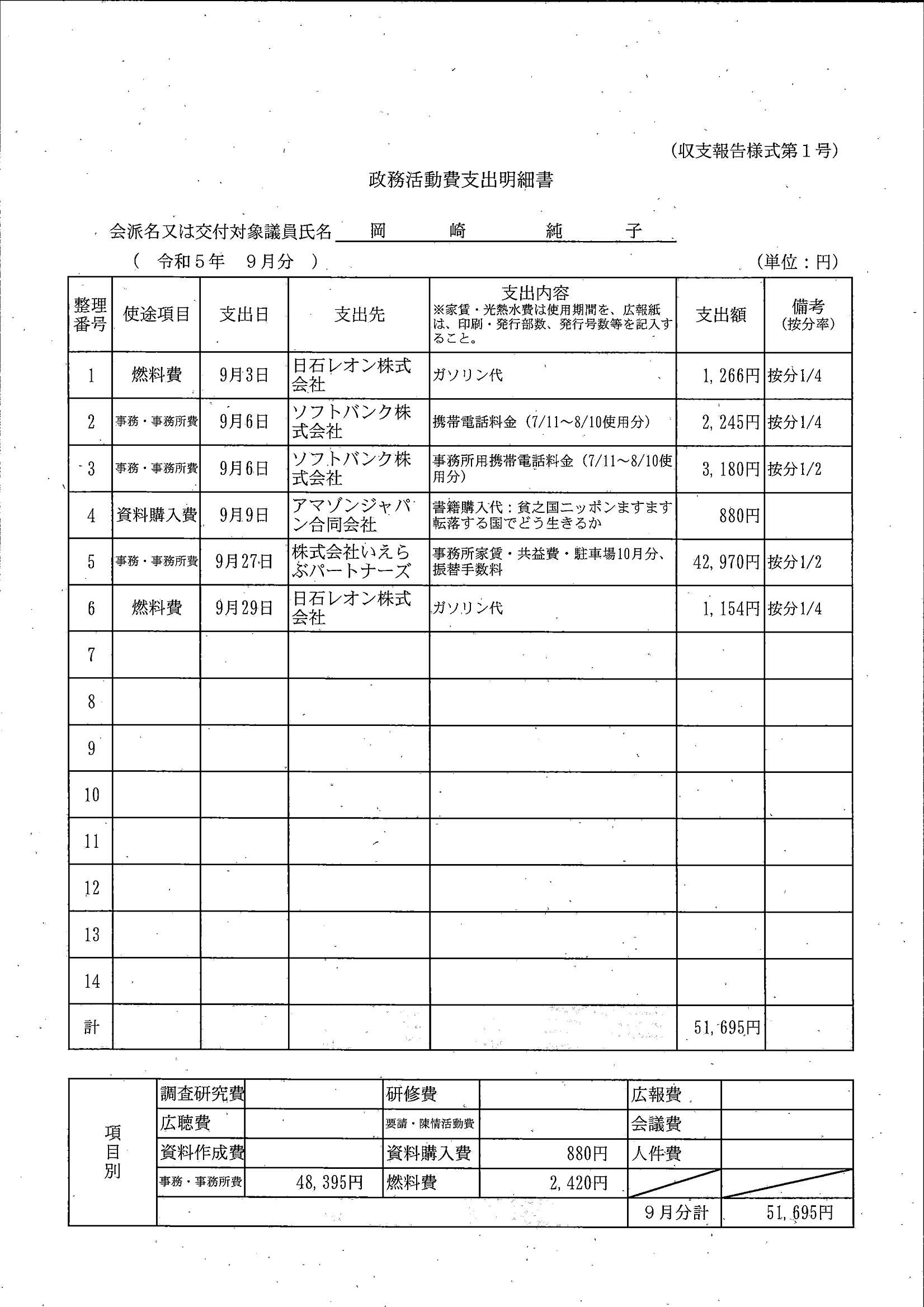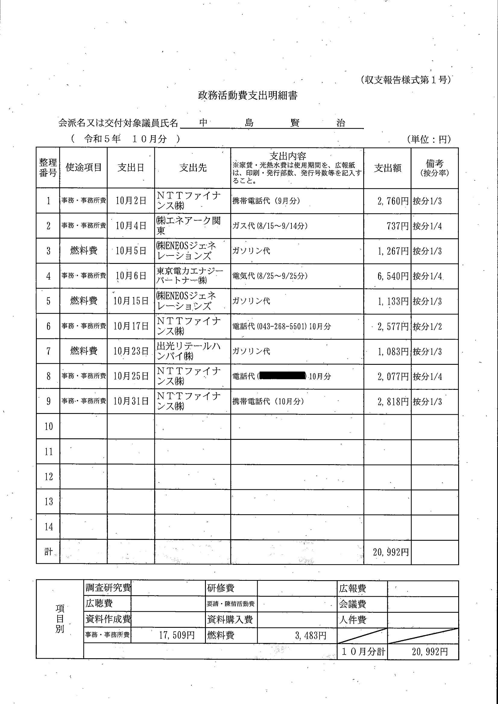 千葉市議会トップページ > 広報・情報公開 > 政務活動費 > 令和5年度交付分(政務活動費収支報告書)