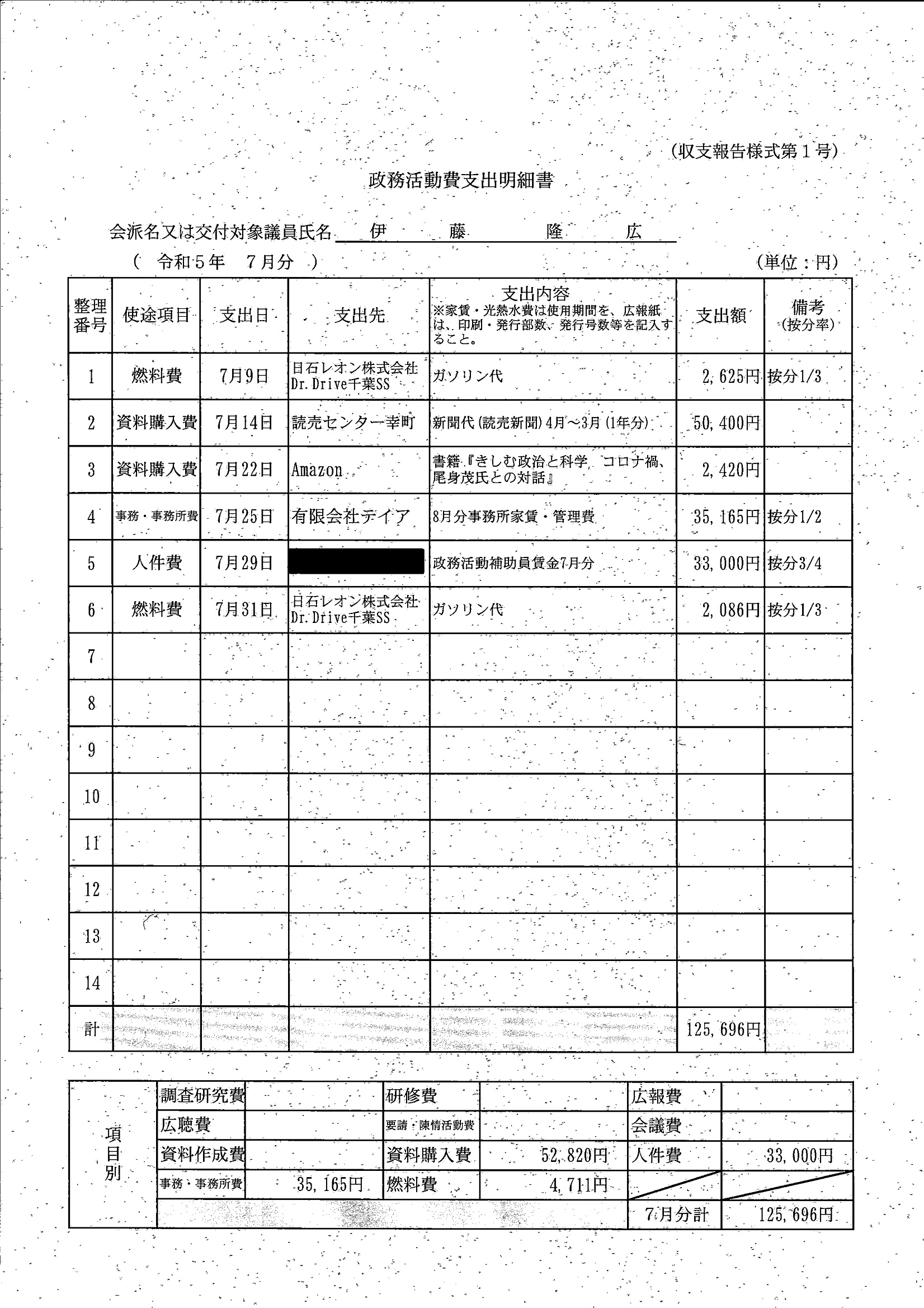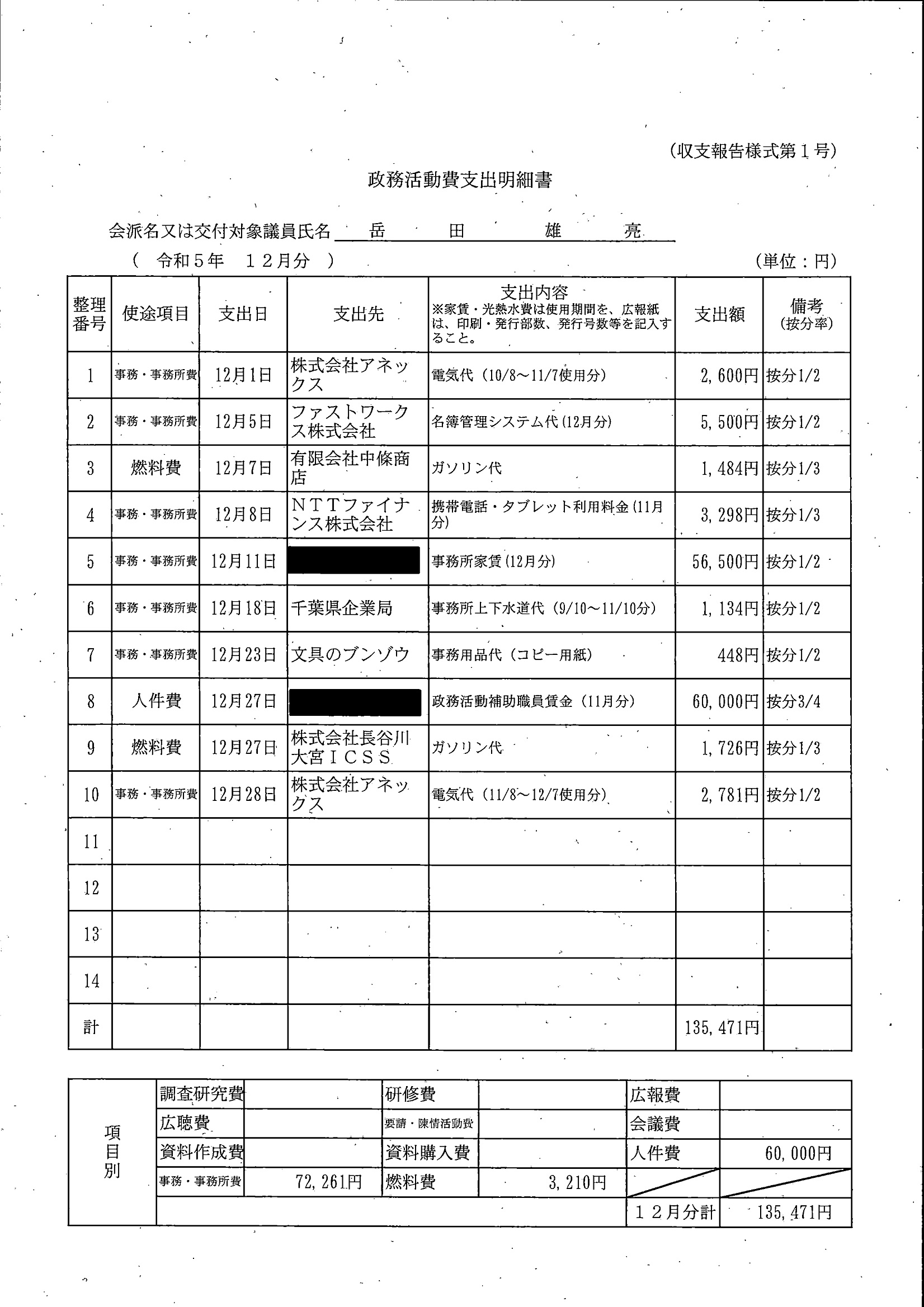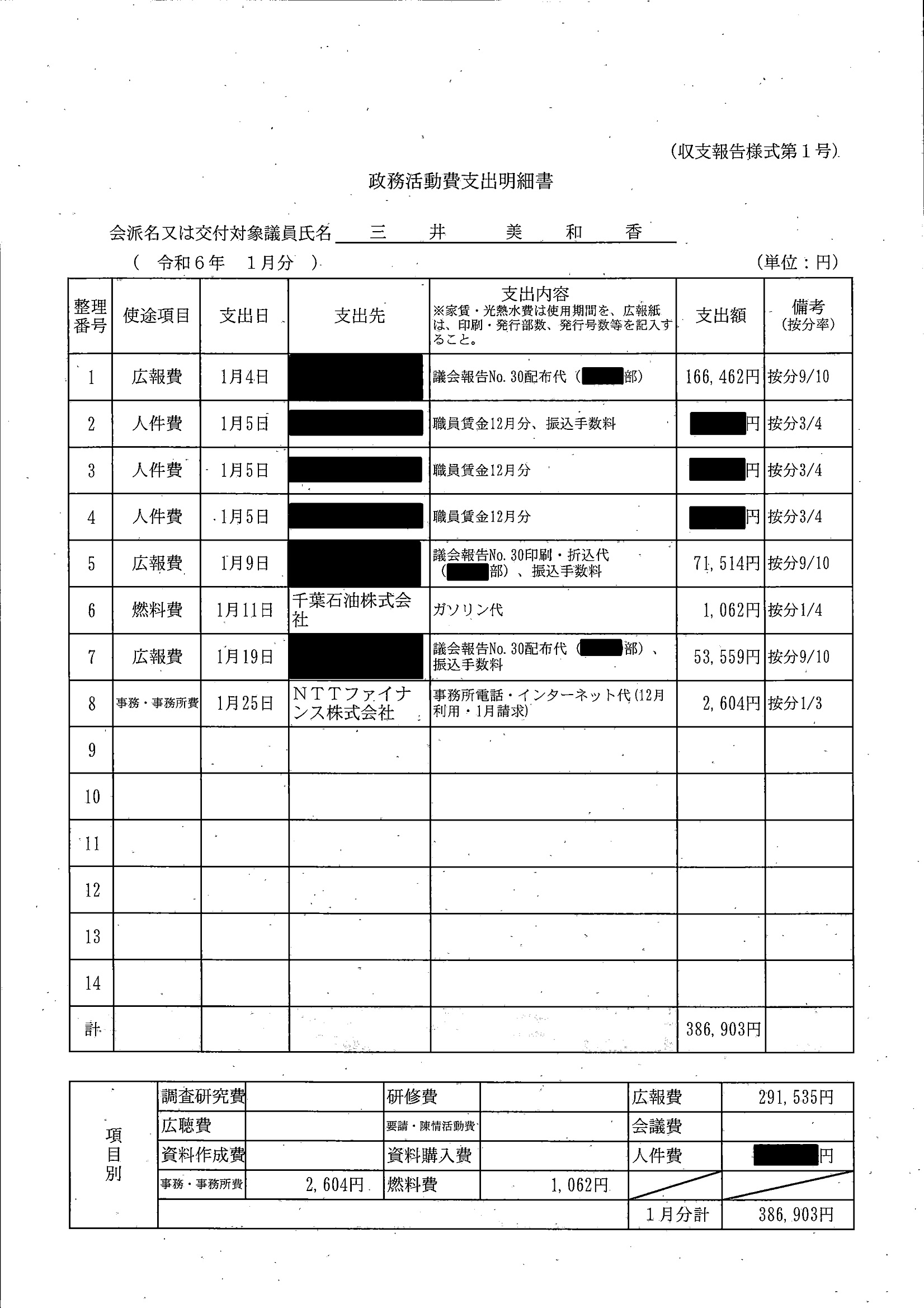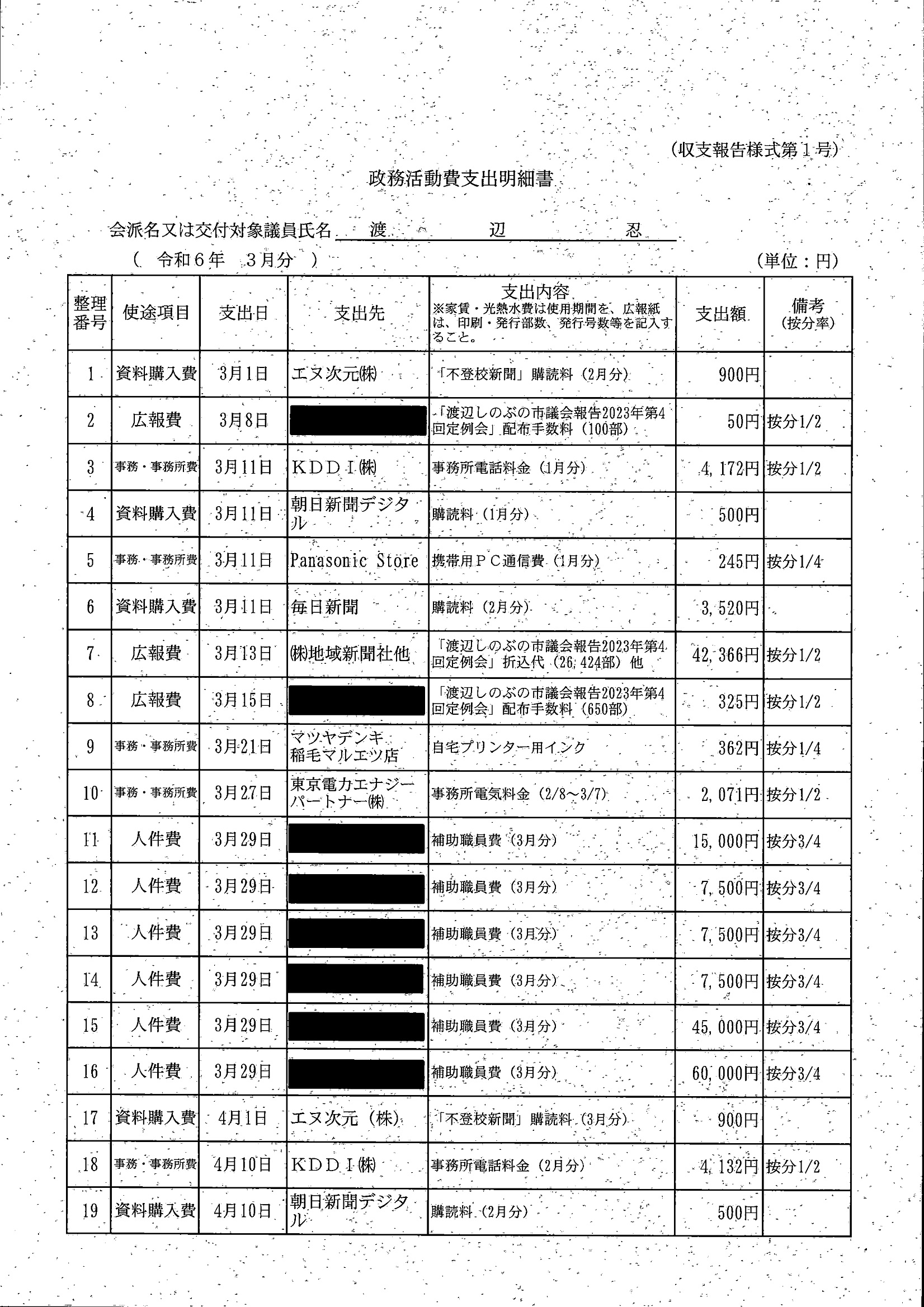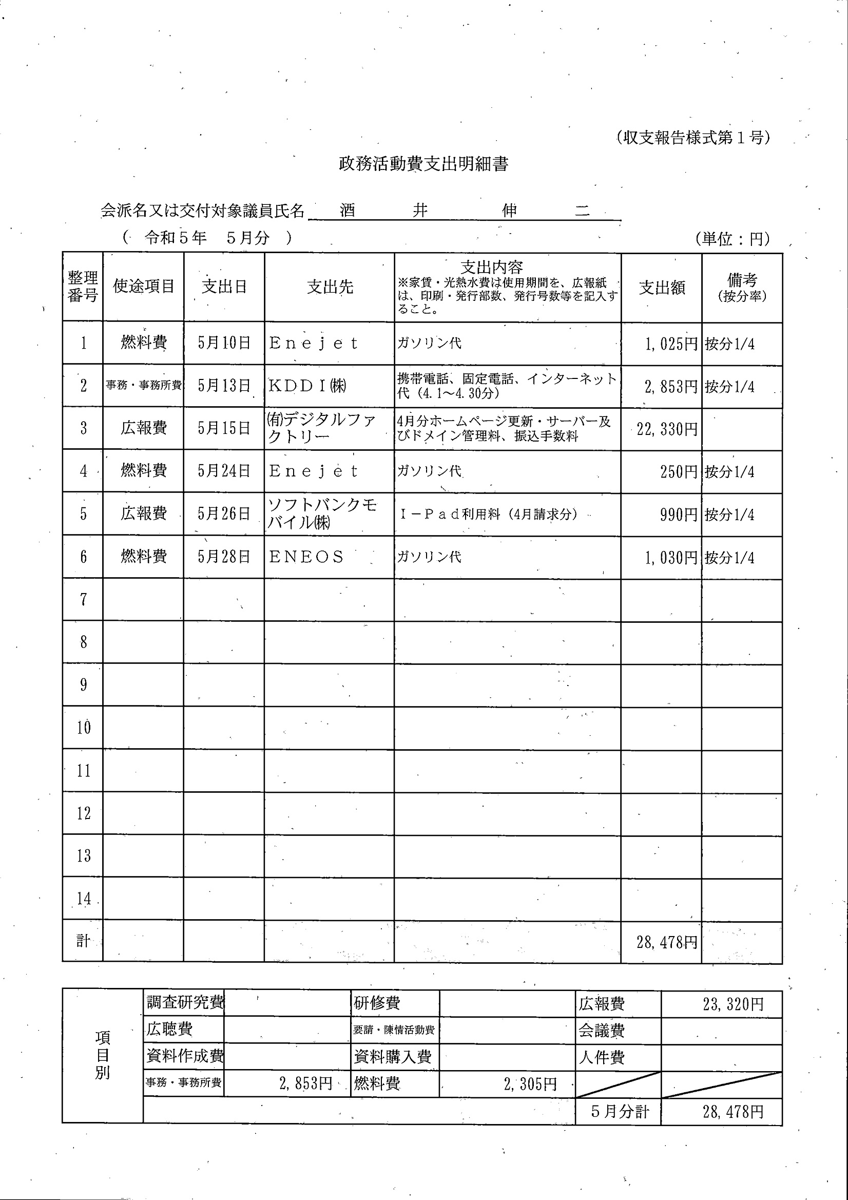 千葉市議会トップページ > 広報・情報公開 > 政務活動費 > 令和5年度交付分(政務活動費収支報告書)