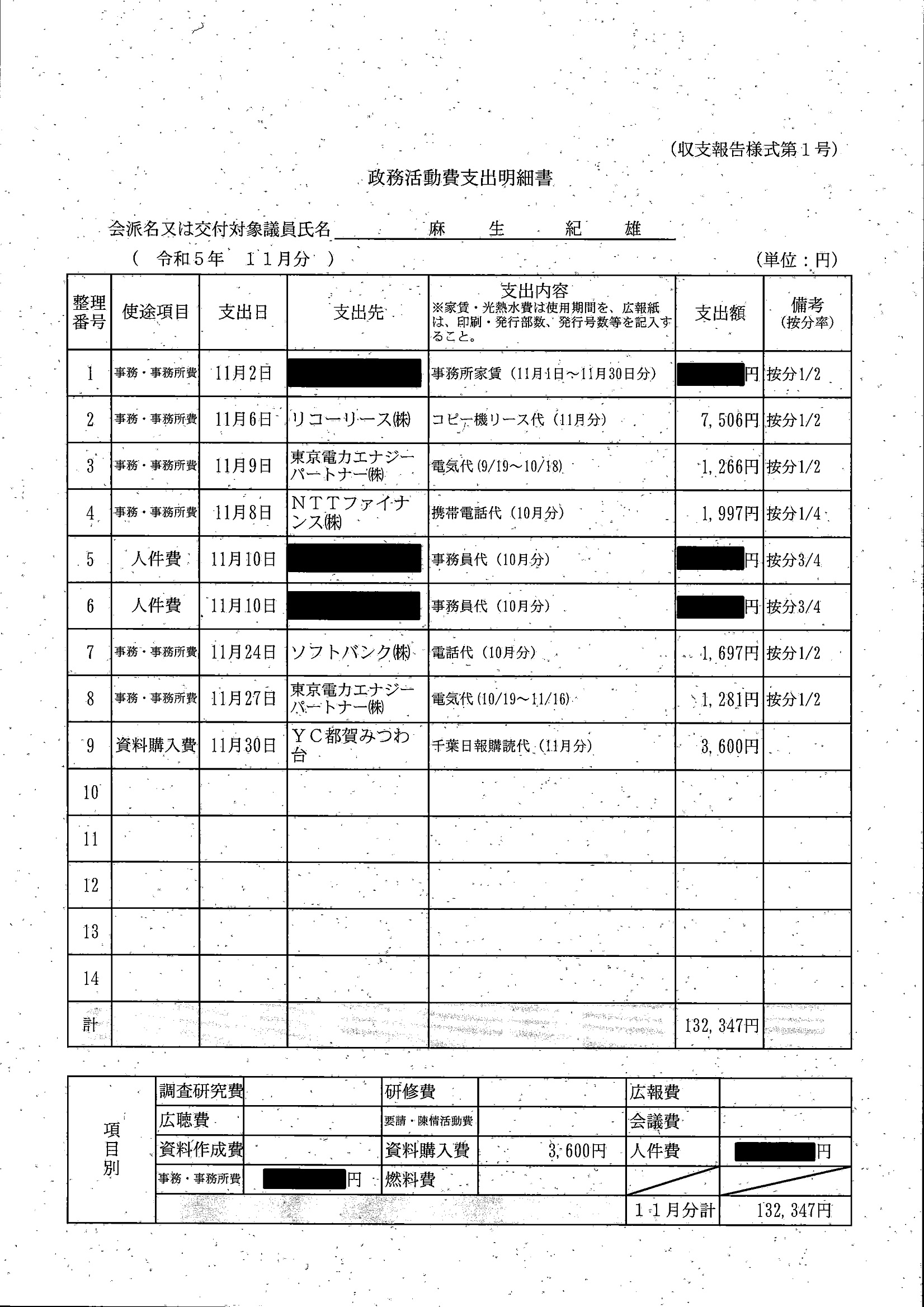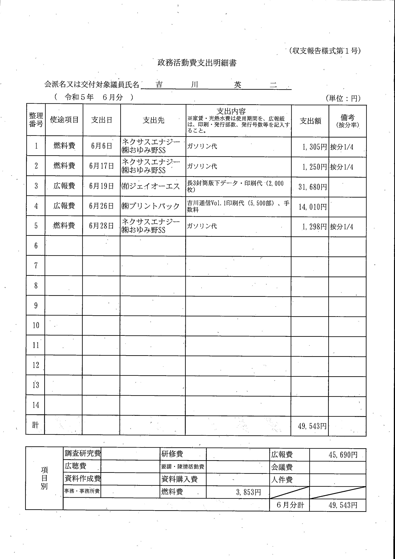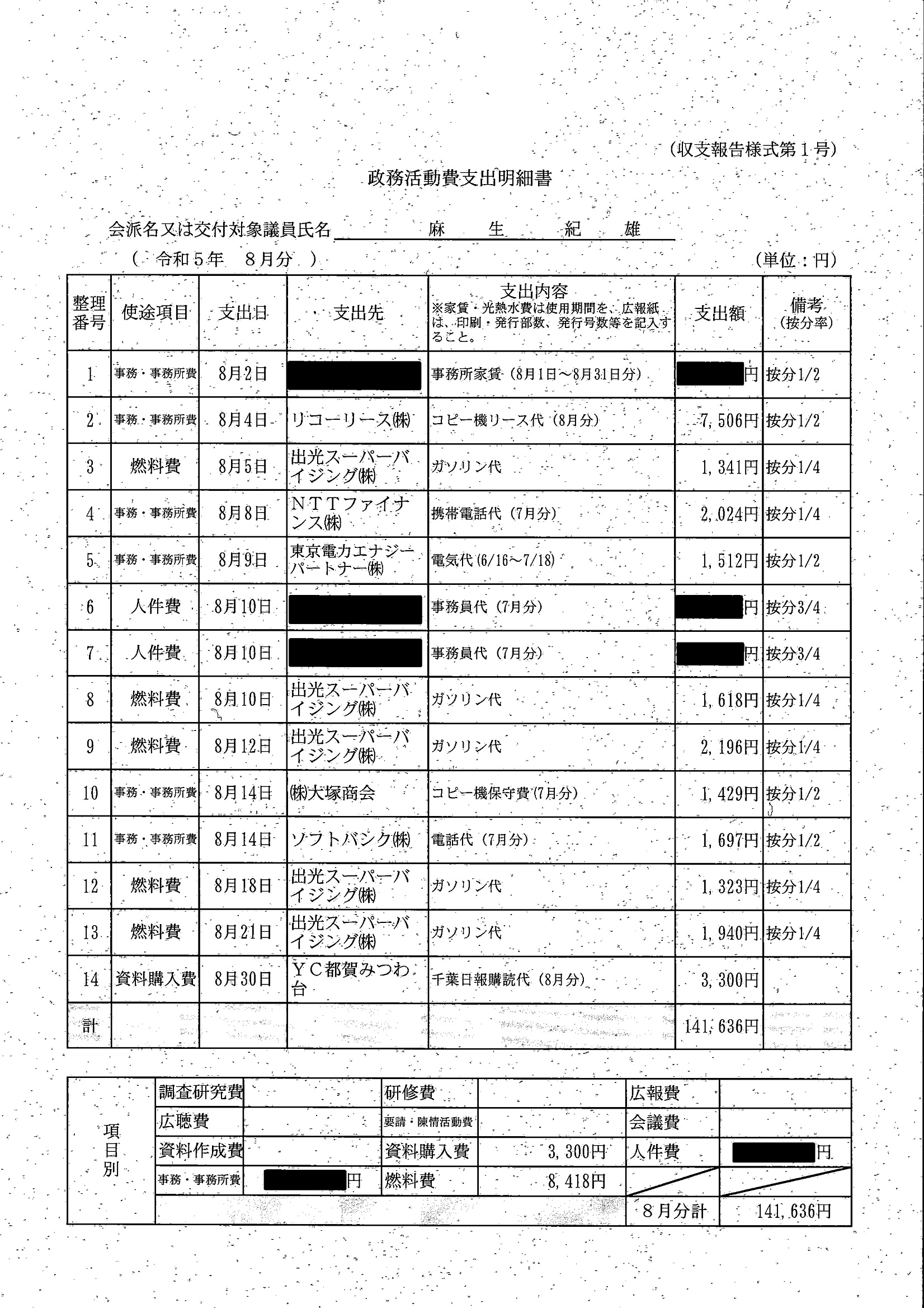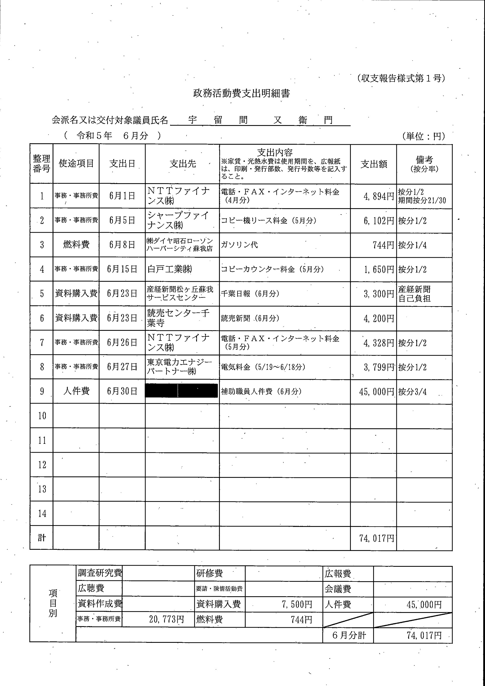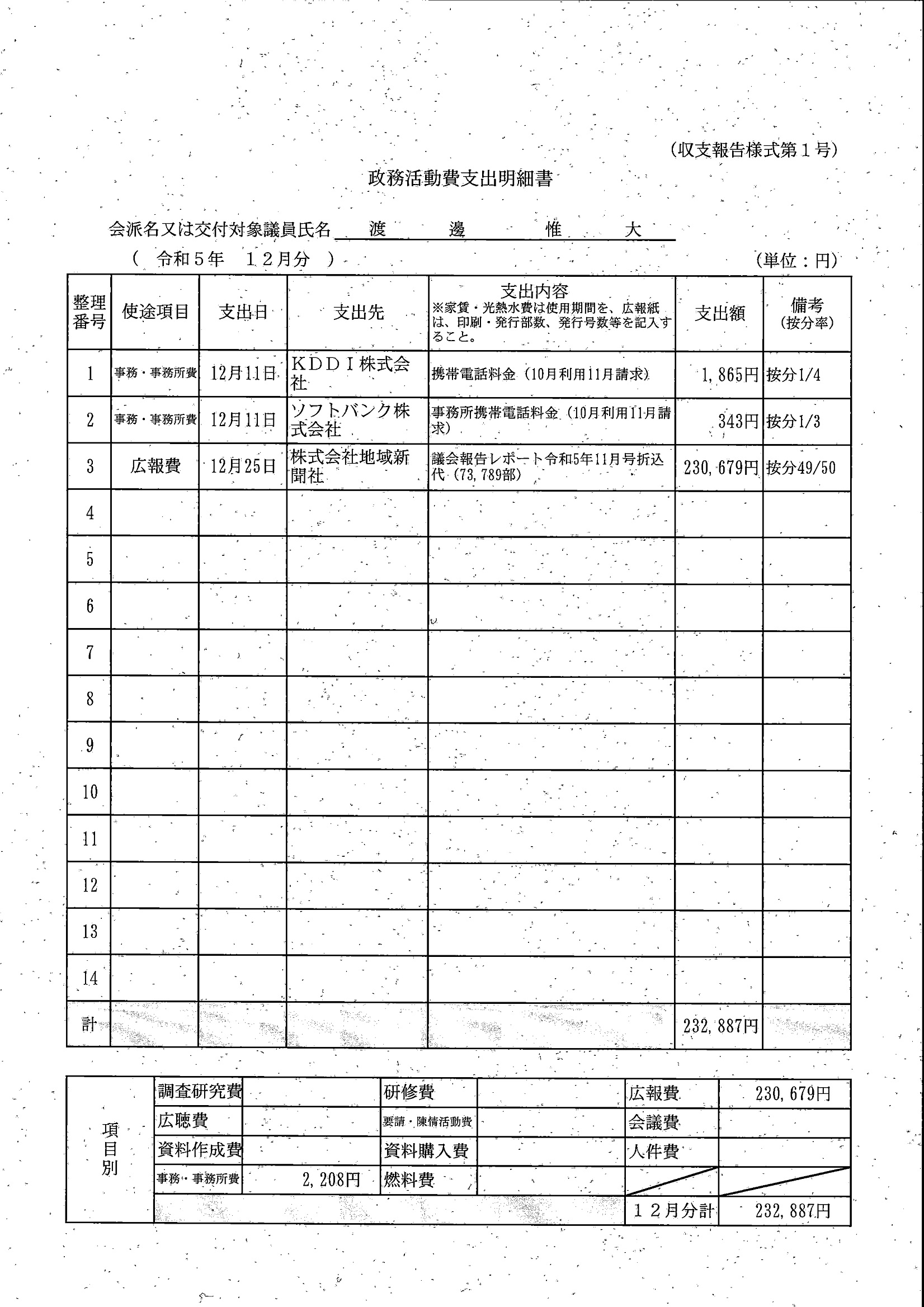 千葉市議会トップページ > 広報・情報公開 > 政務活動費 > 令和5年度交付分(政務活動費収支報告書)