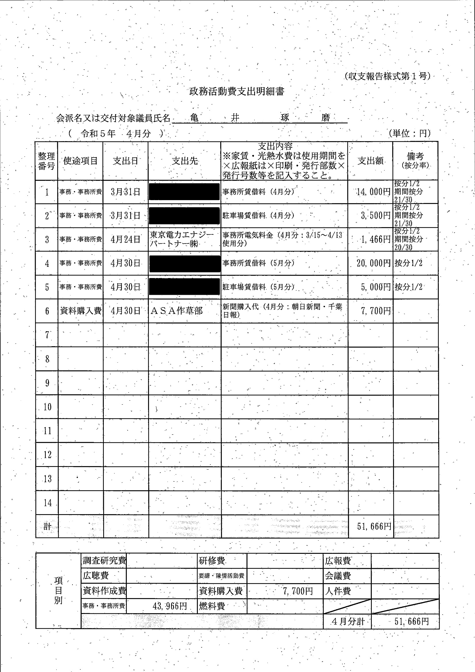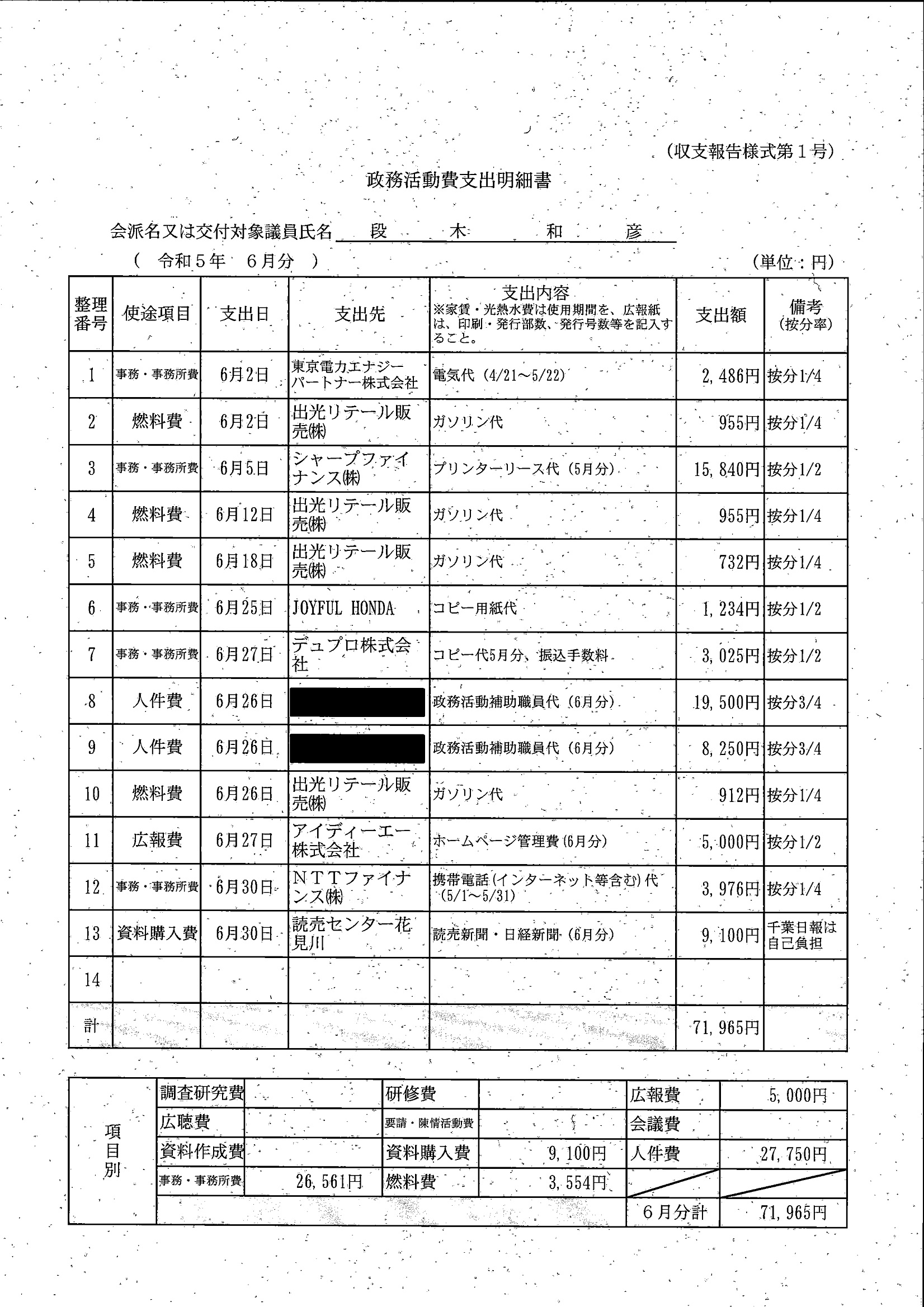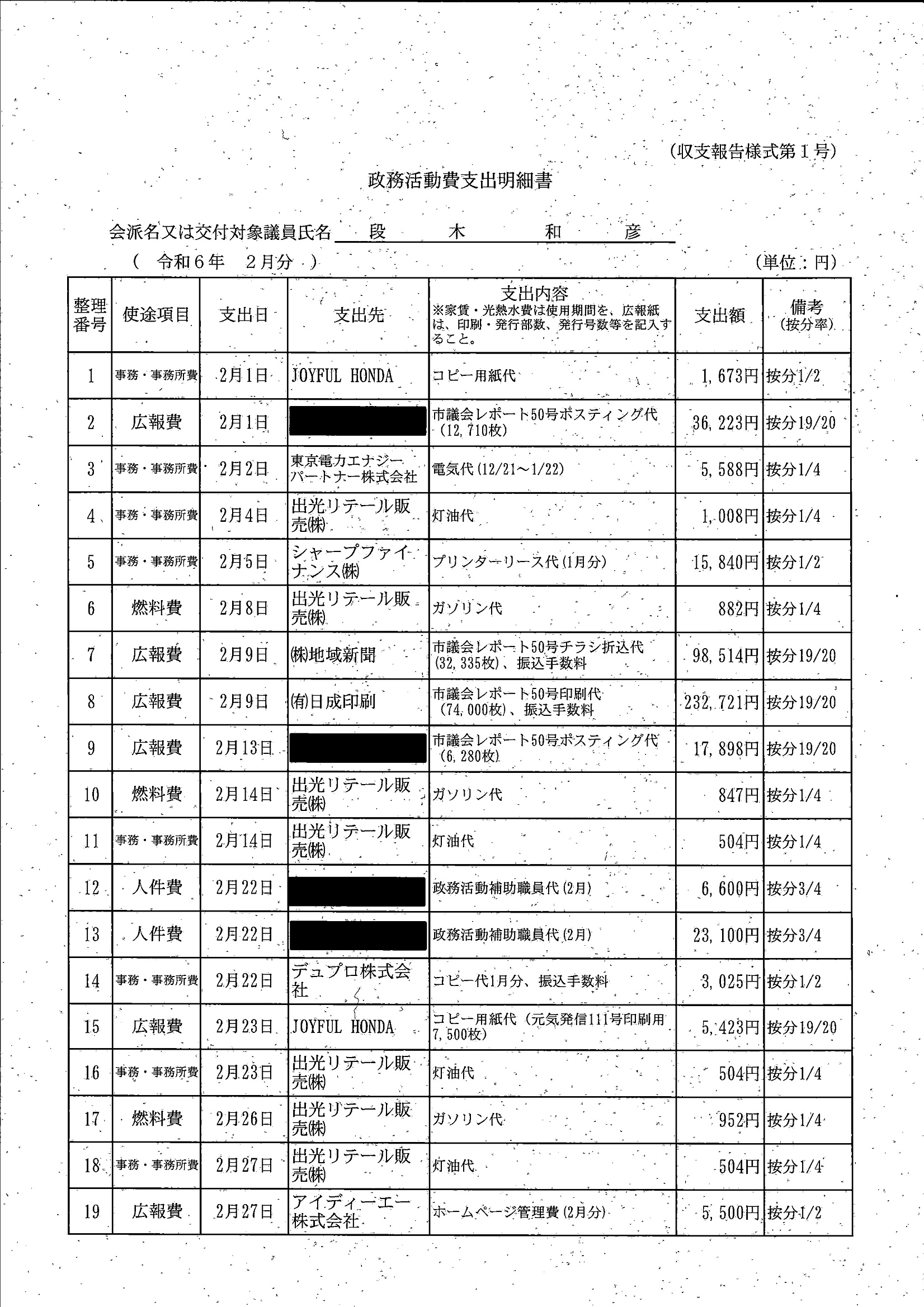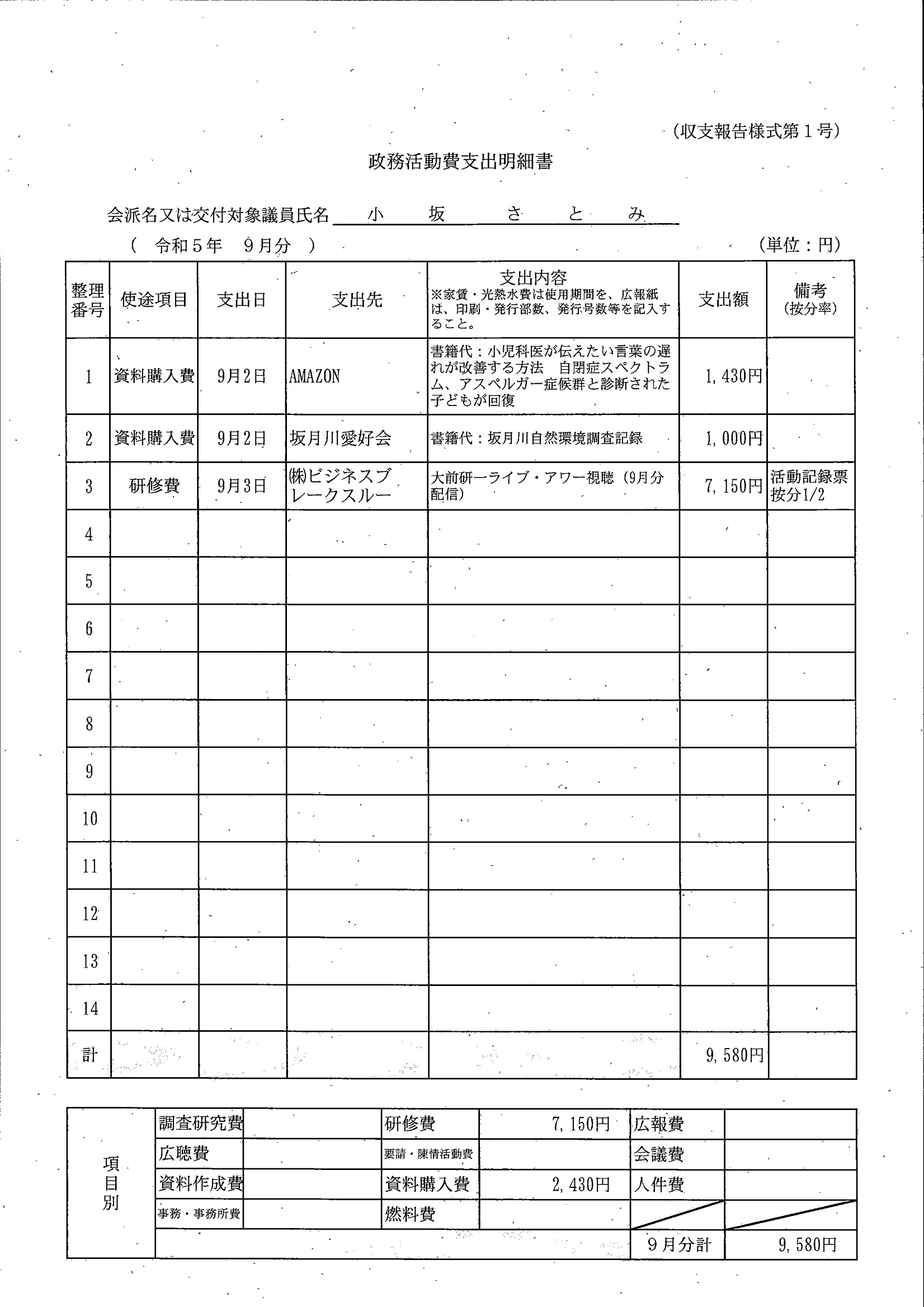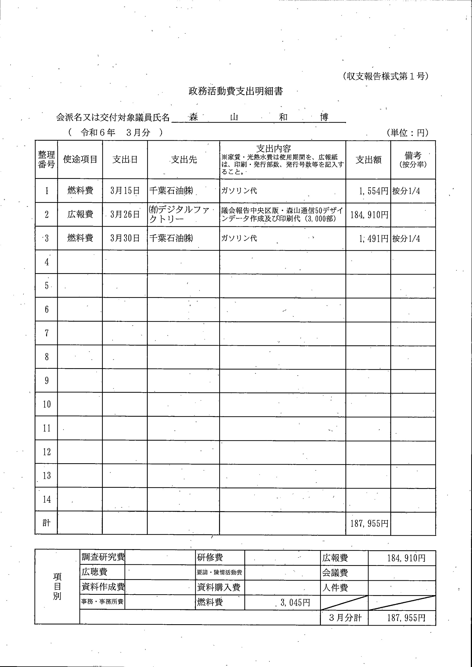 千葉市議会トップページ > 広報・情報公開 > 政務活動費 > 令和5年度交付分(政務活動費収支報告書)