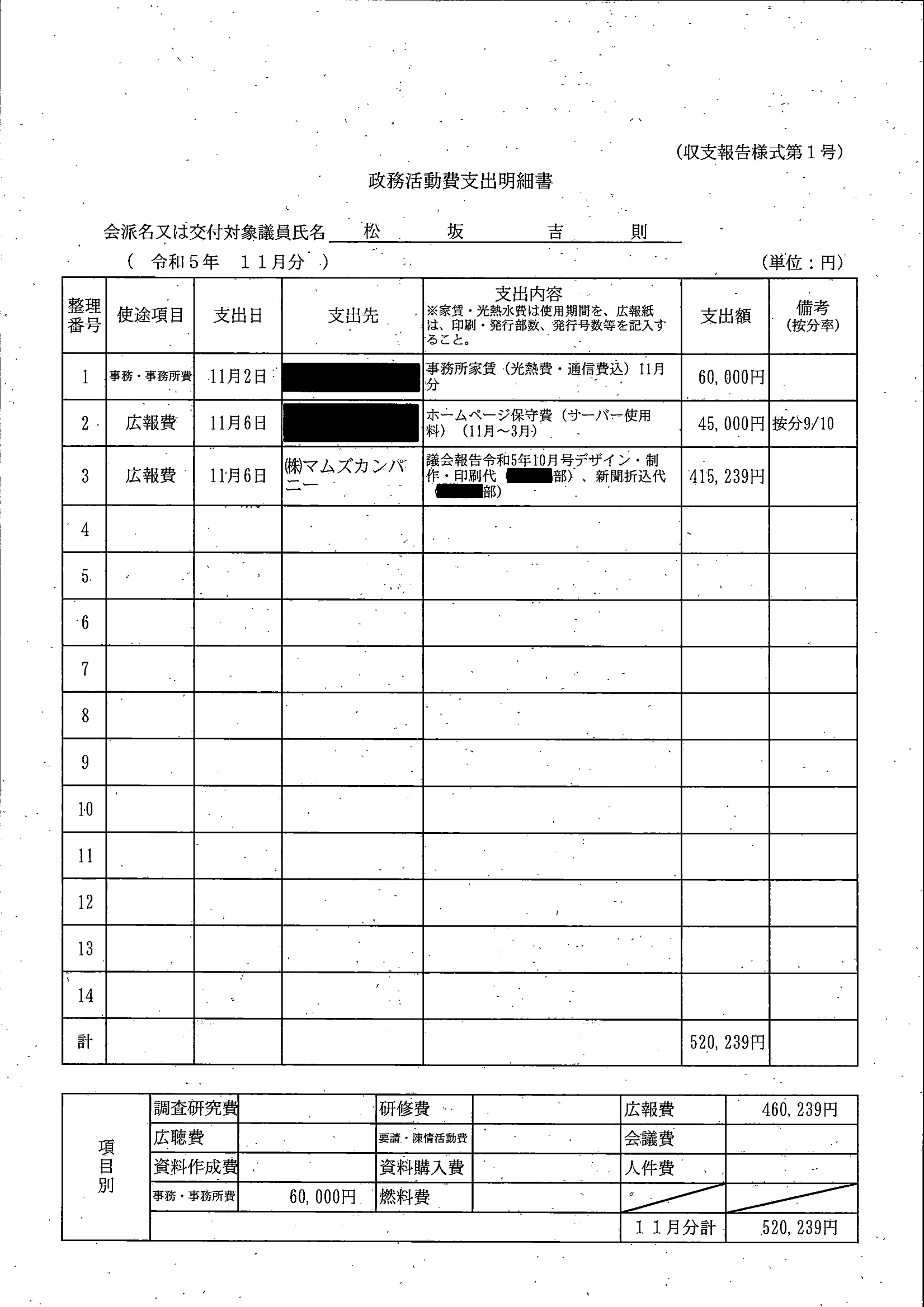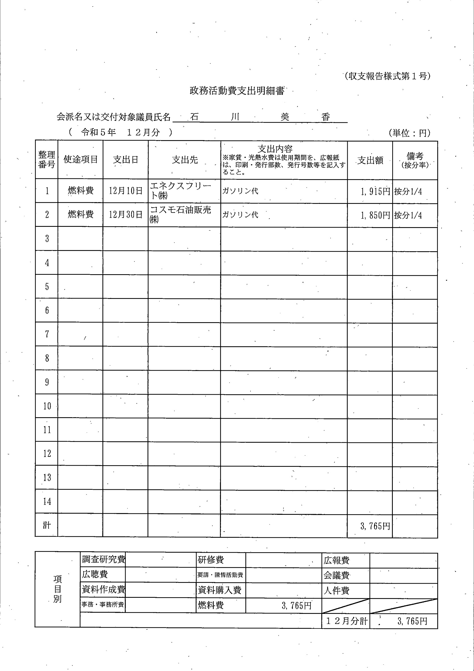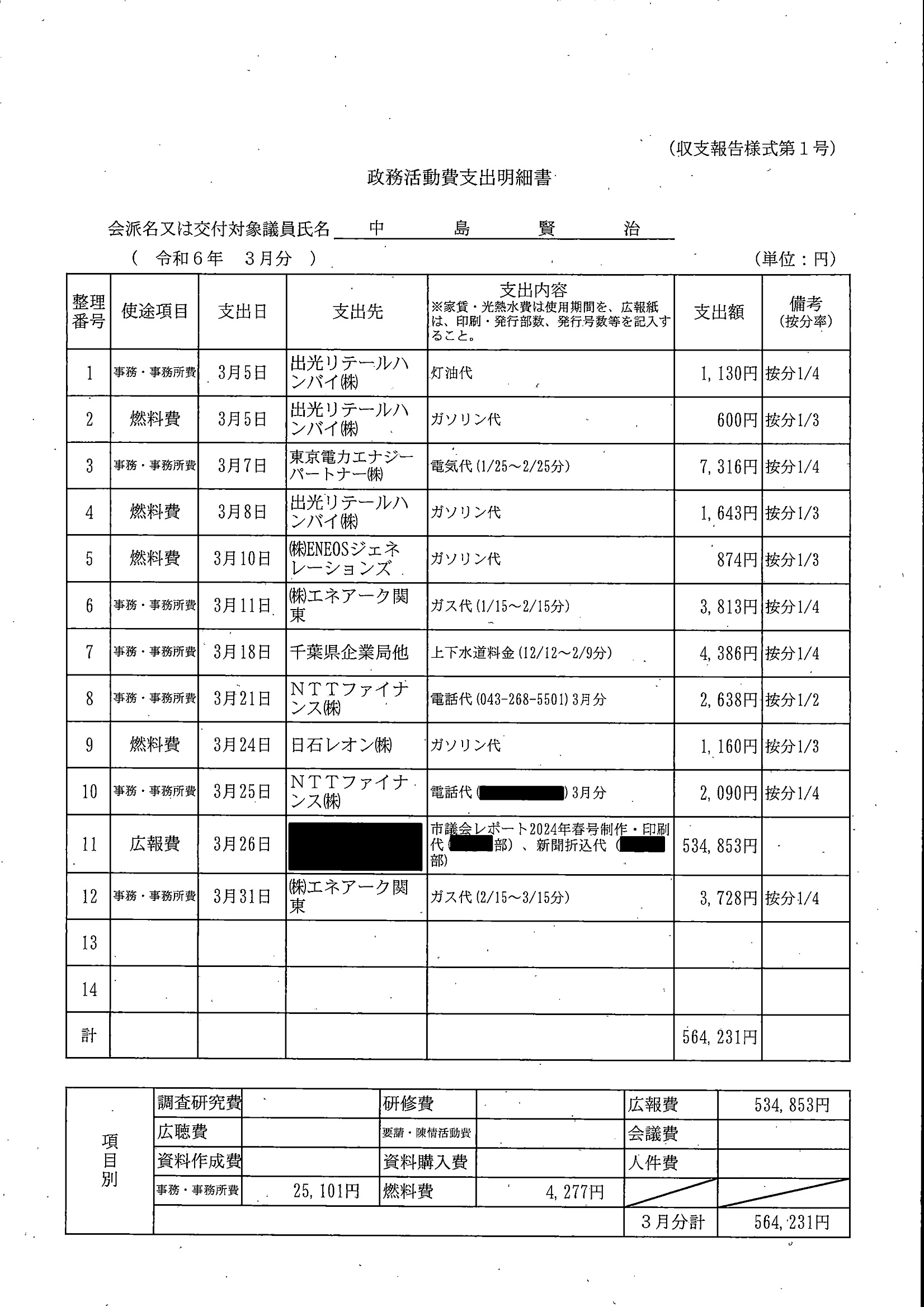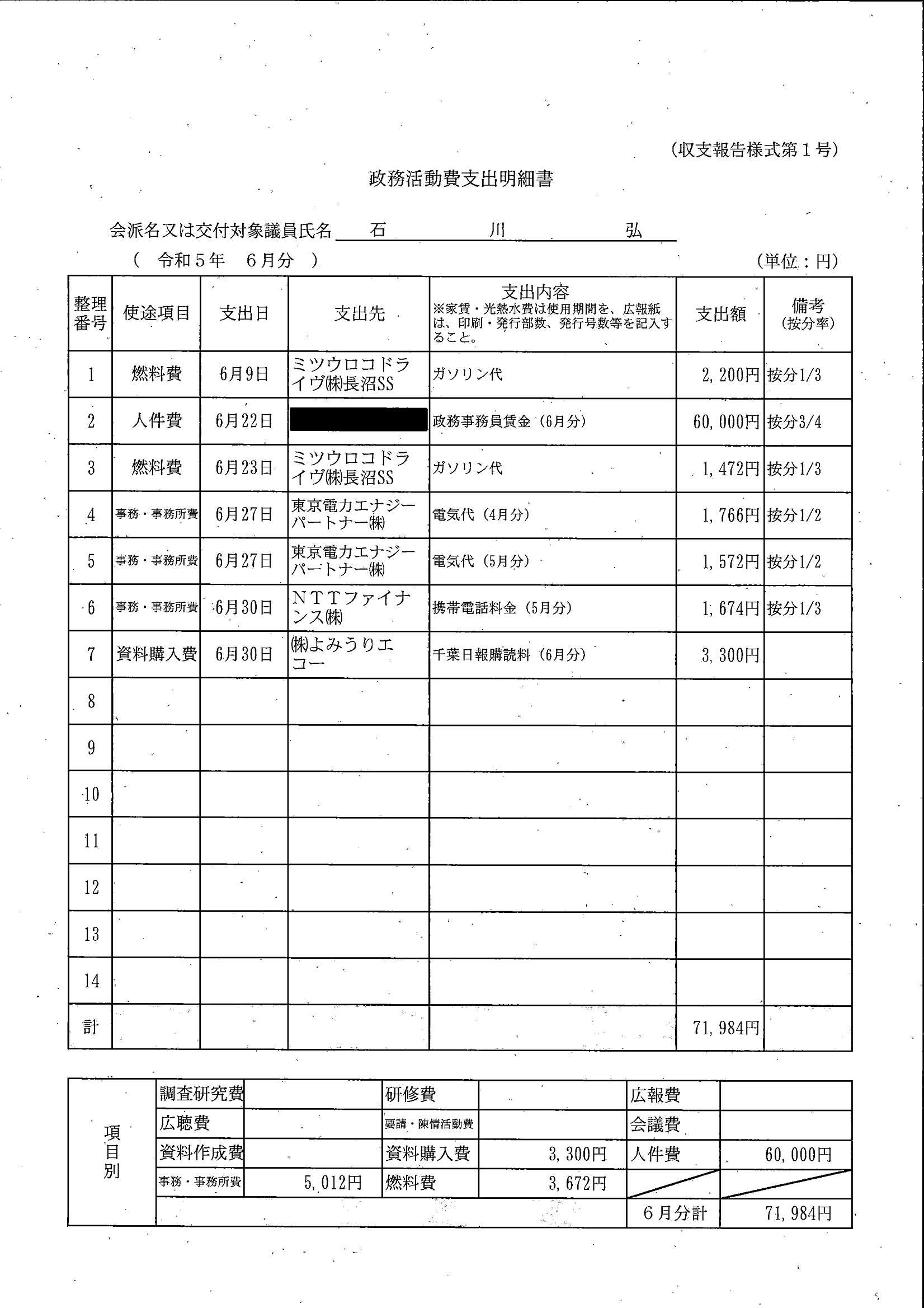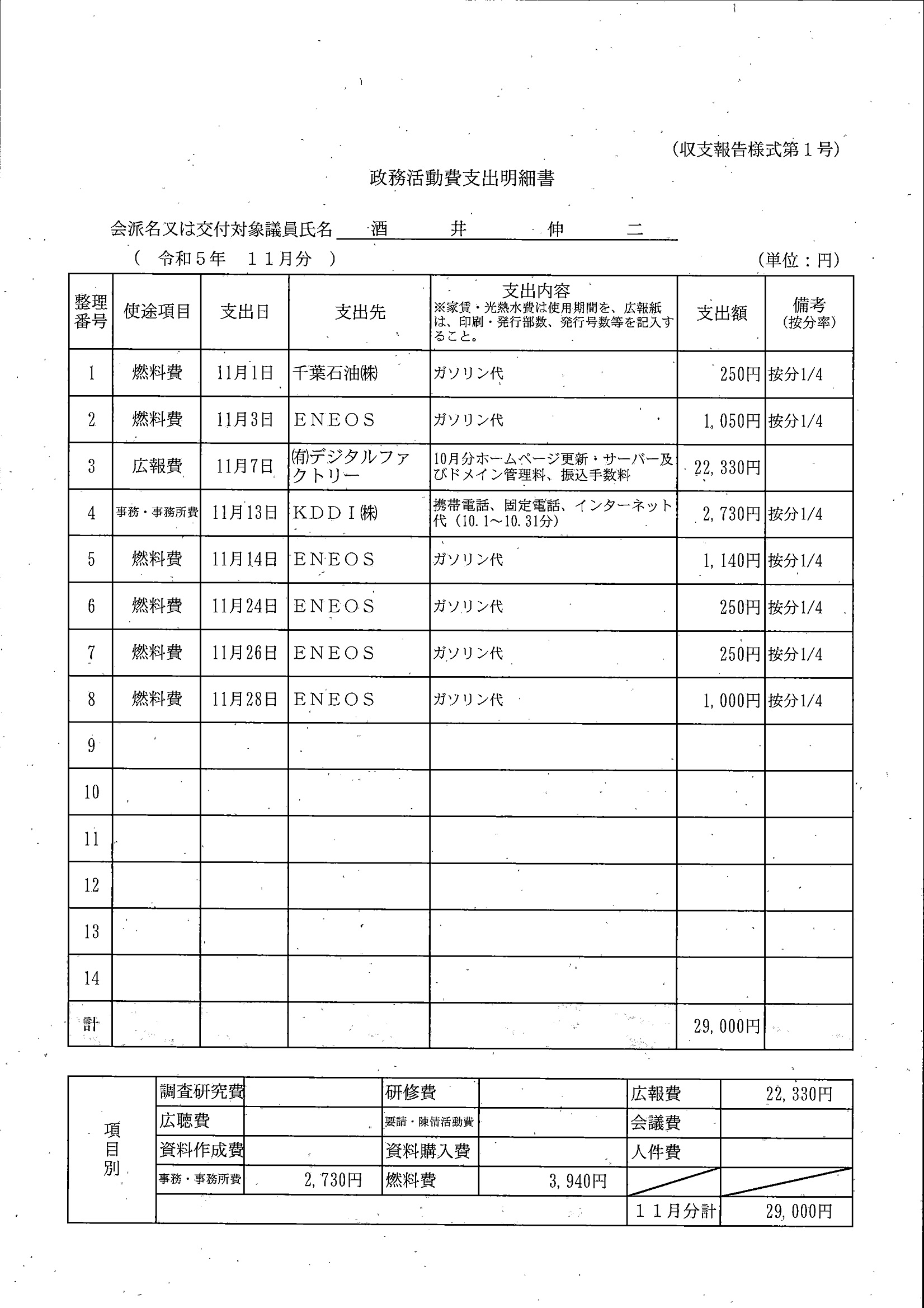 千葉市議会トップページ > 広報・情報公開 > 政務活動費 > 令和5年度交付分(政務活動費収支報告書)