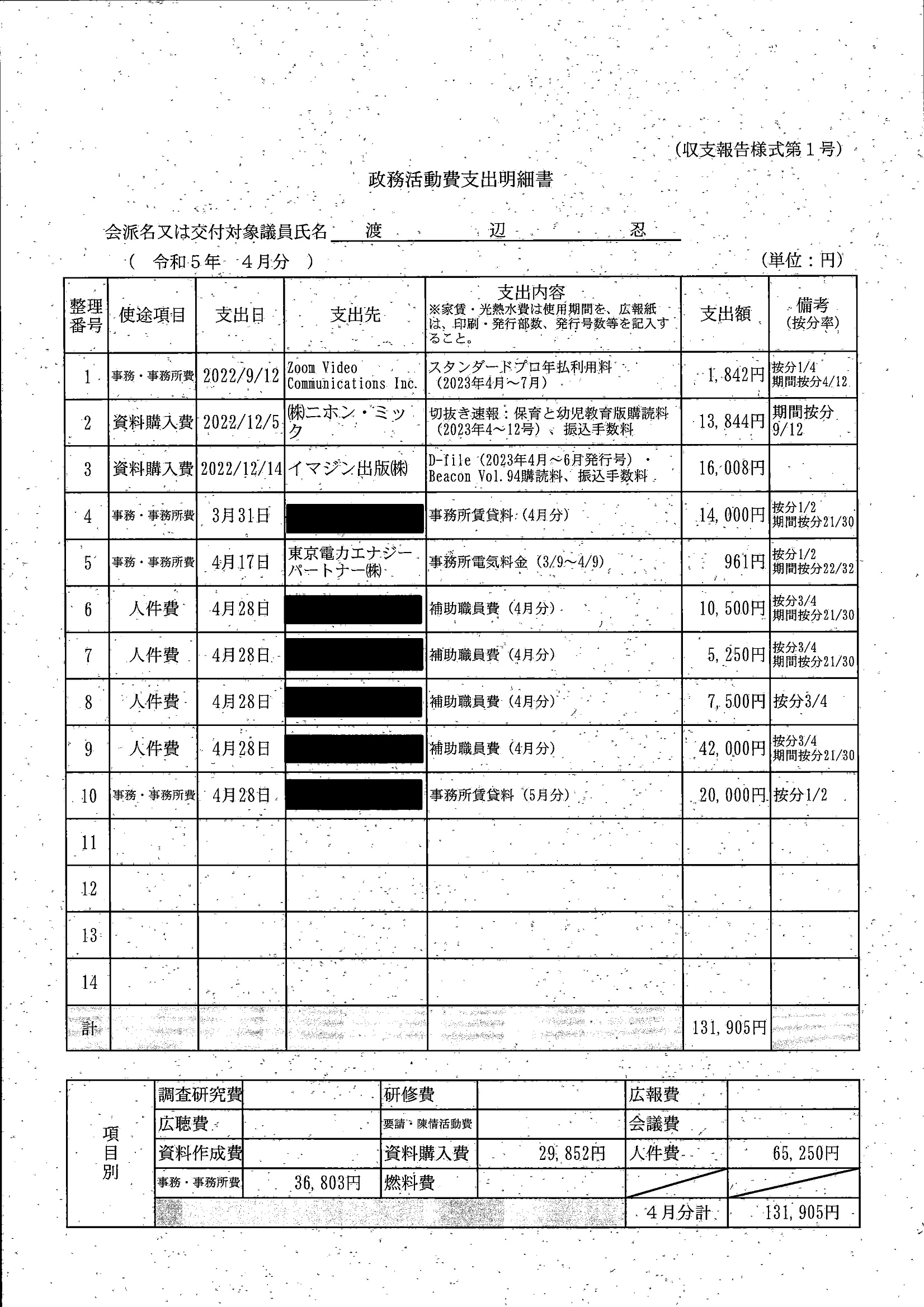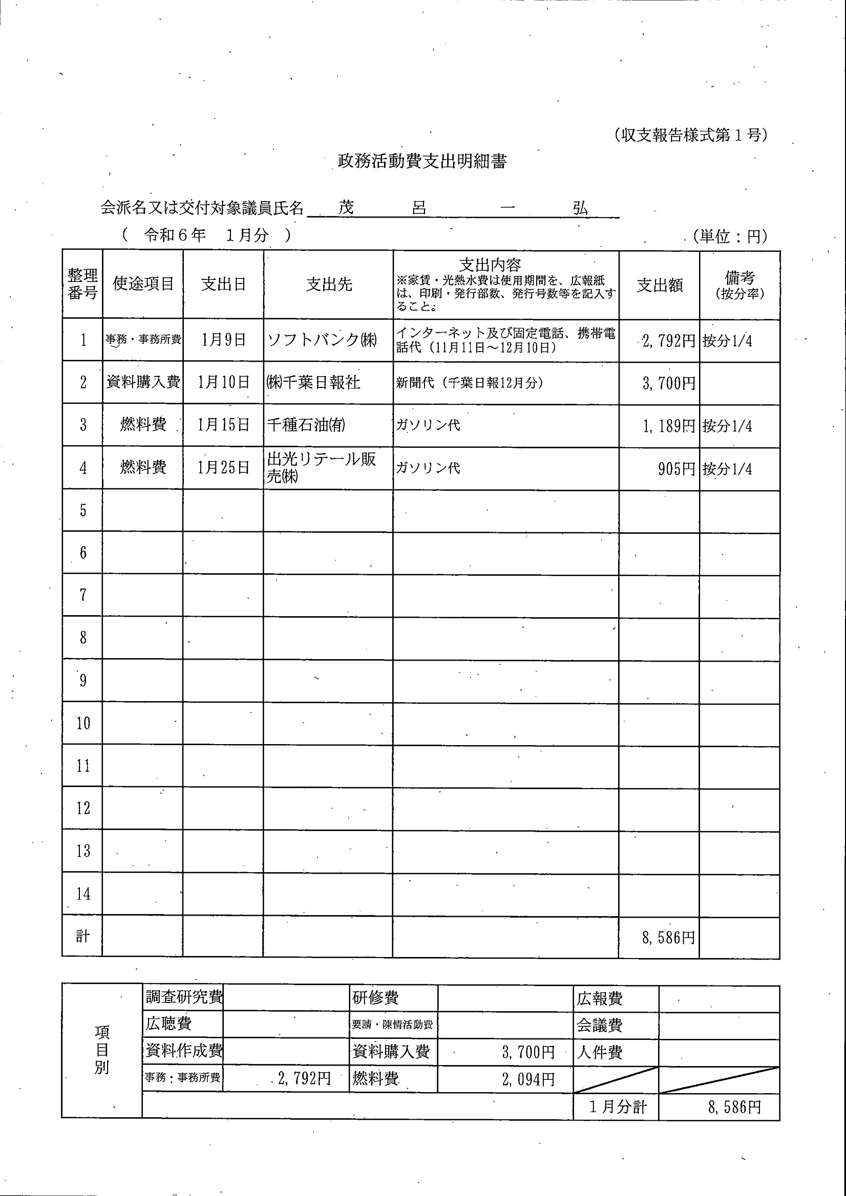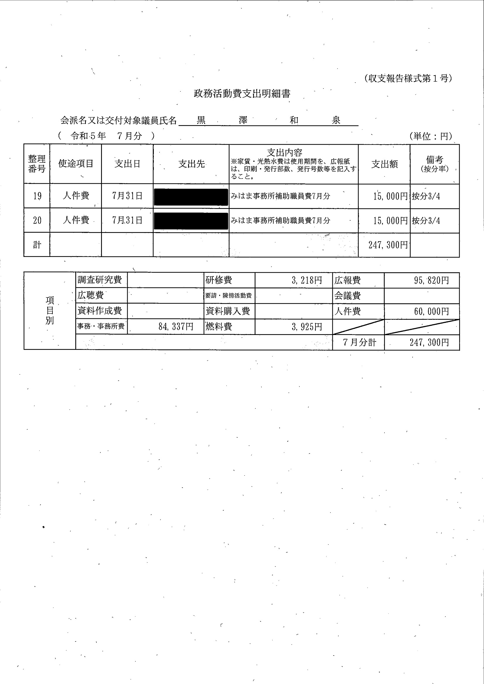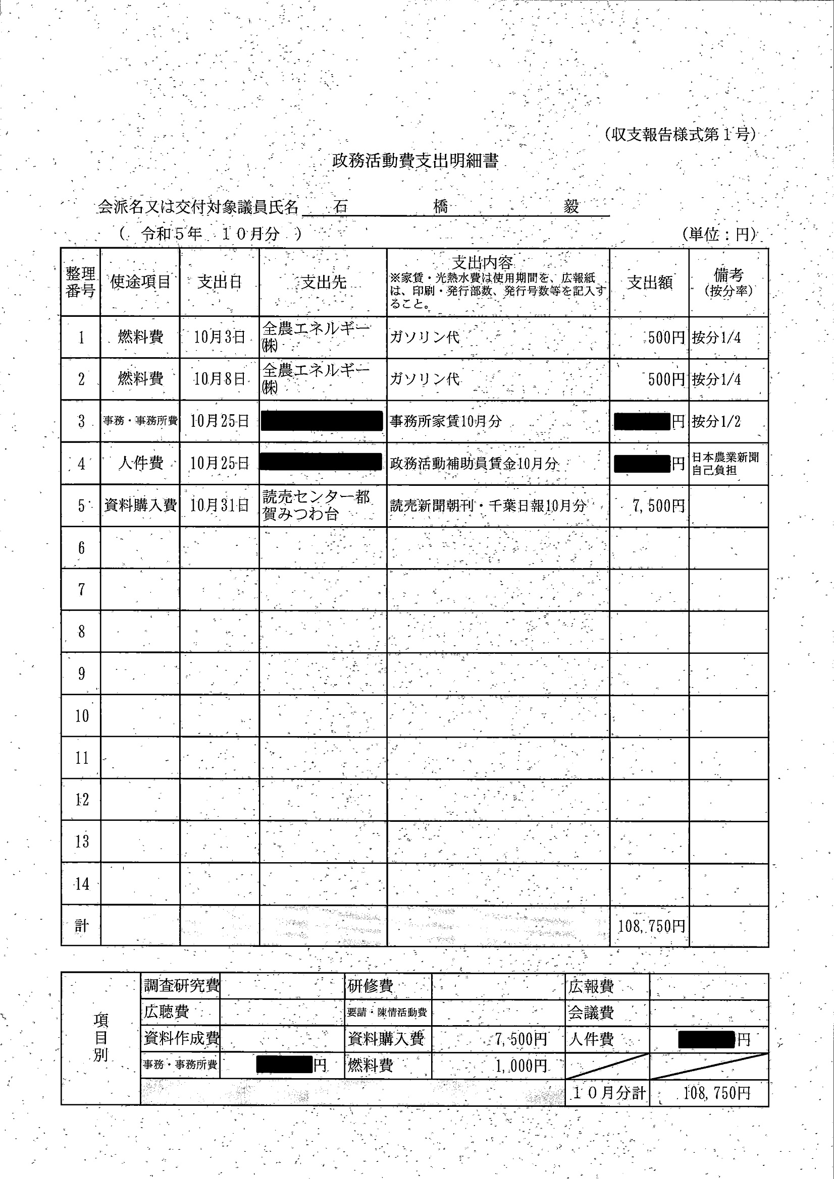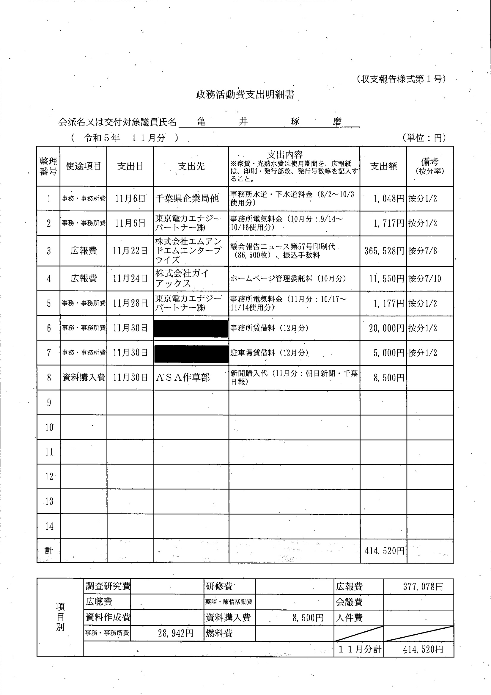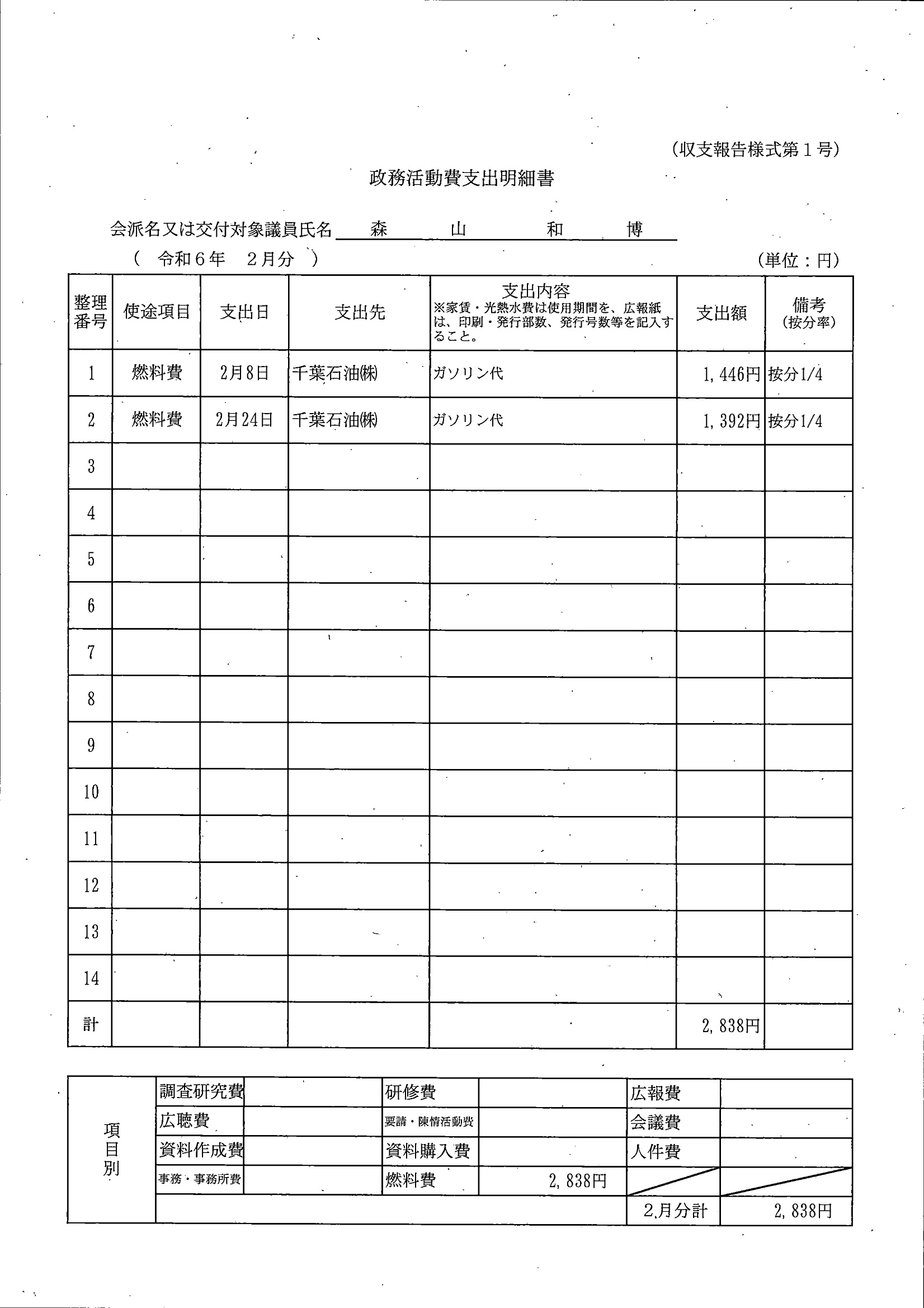 千葉市議会トップページ > 広報・情報公開 > 政務活動費 > 令和5年度交付分(政務活動費収支報告書)