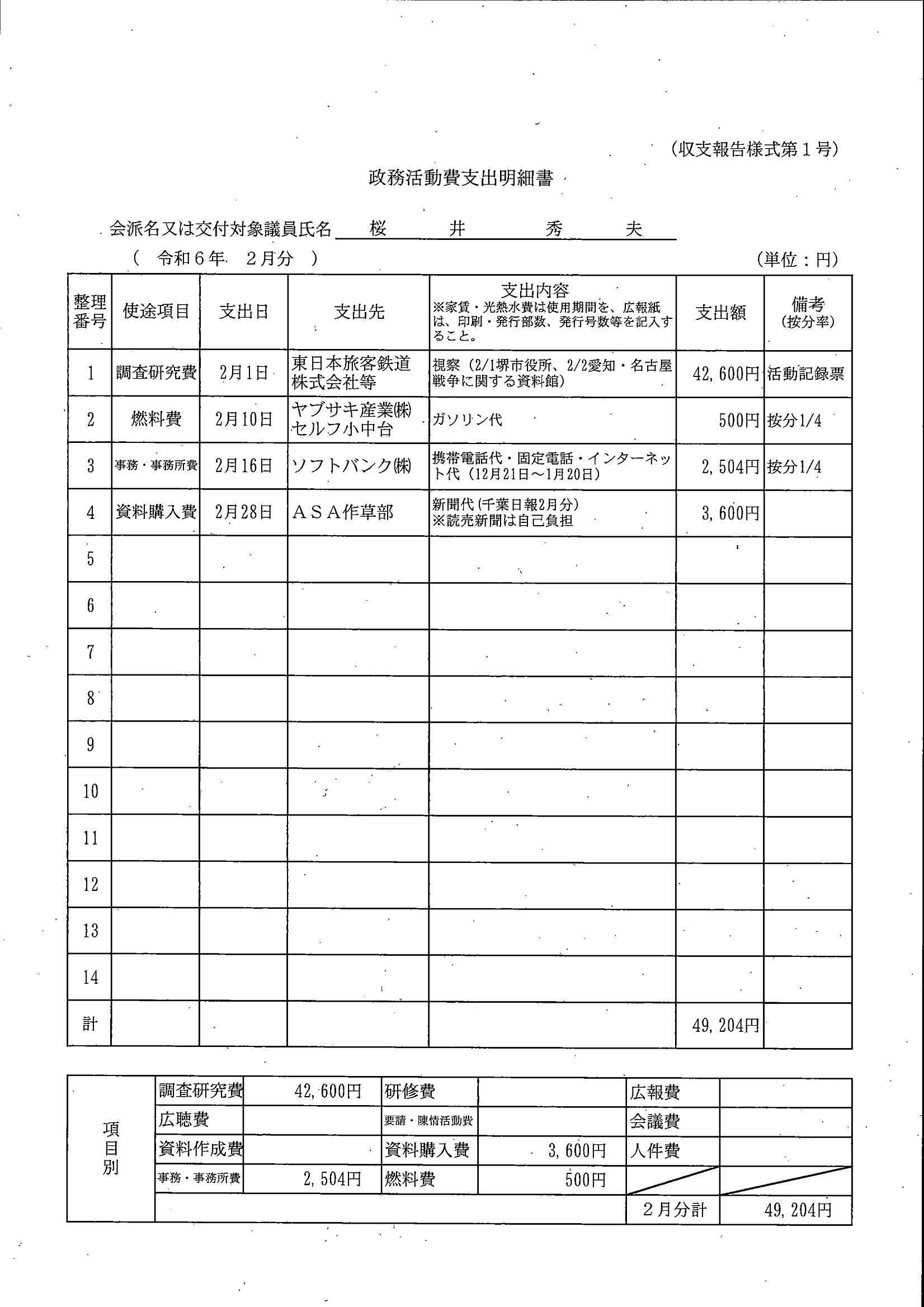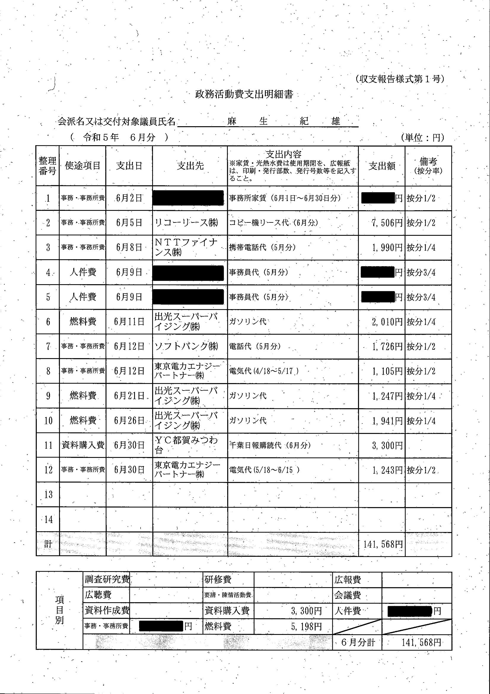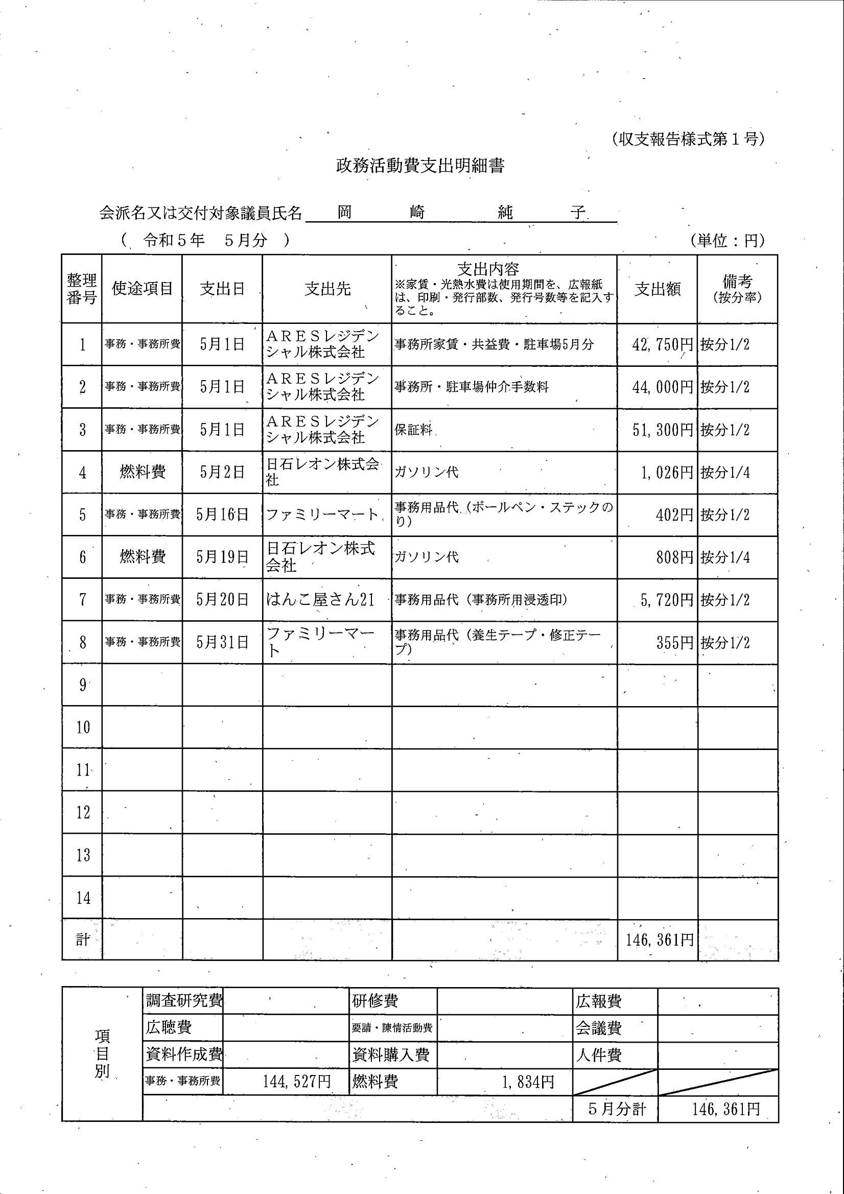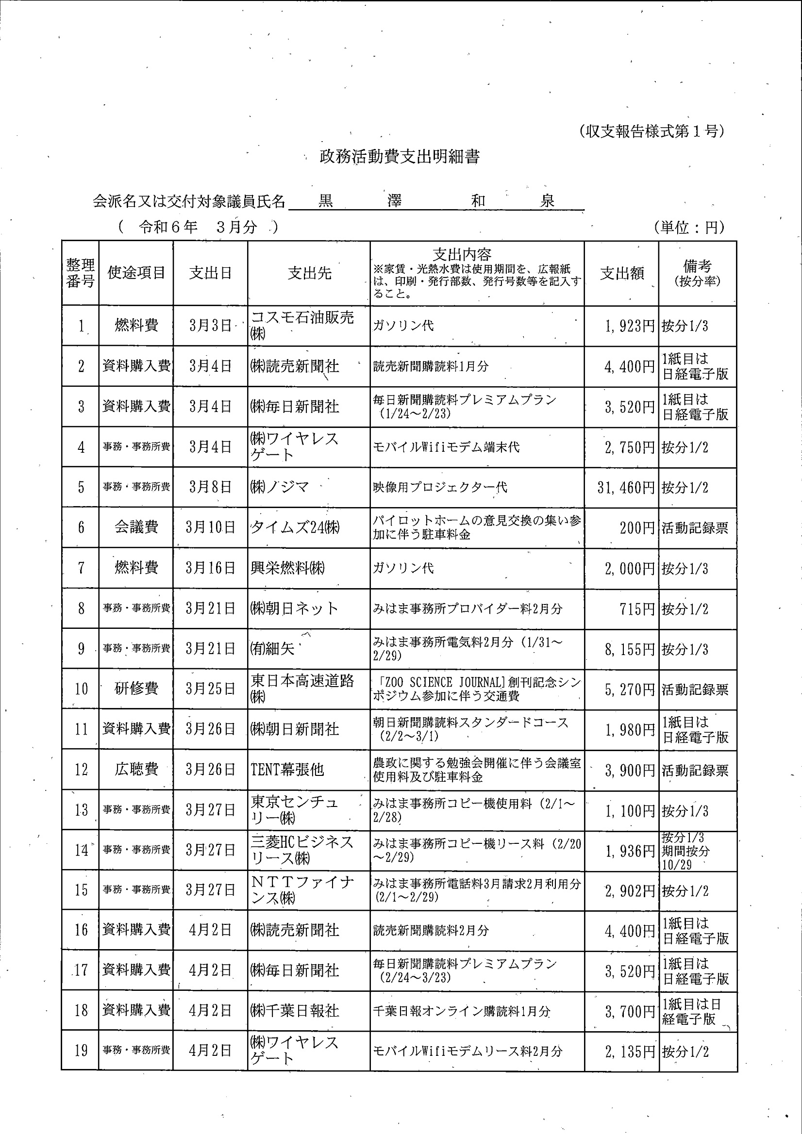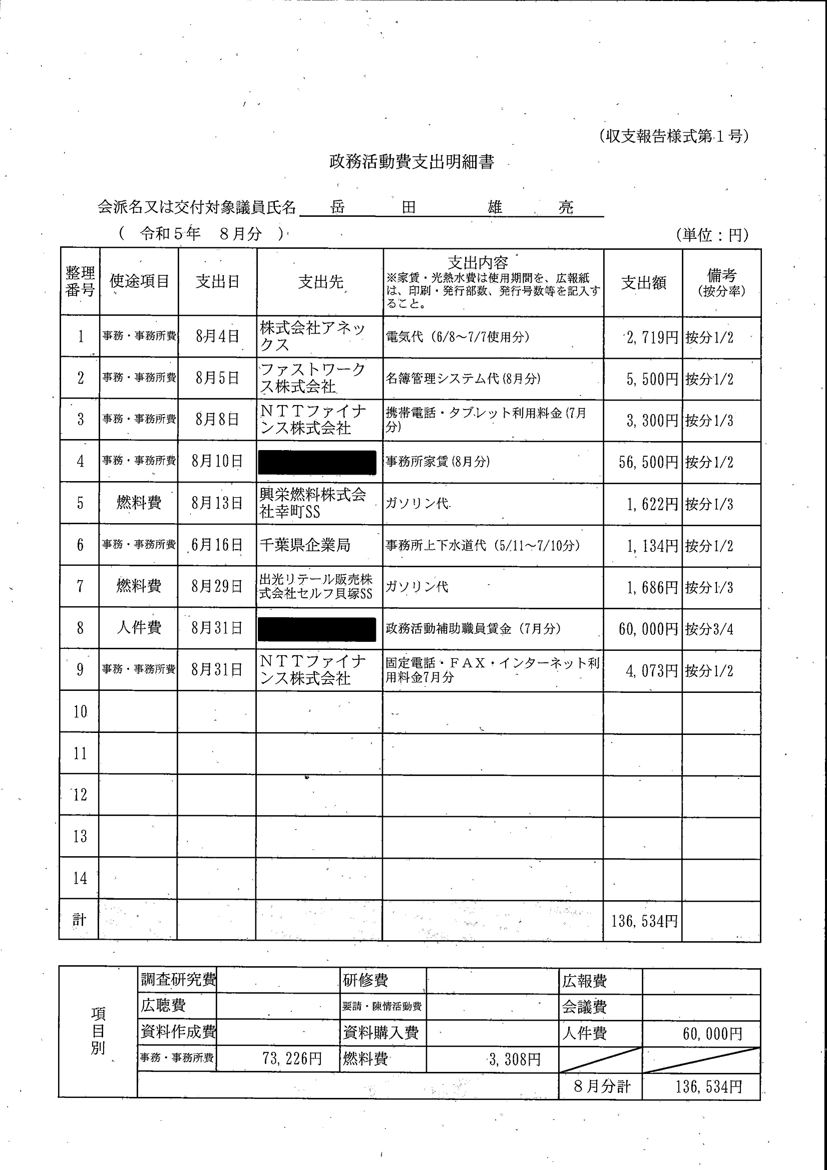 千葉市議会トップページ > 広報・情報公開 > 政務活動費 > 令和5年度交付分(政務活動費収支報告書)