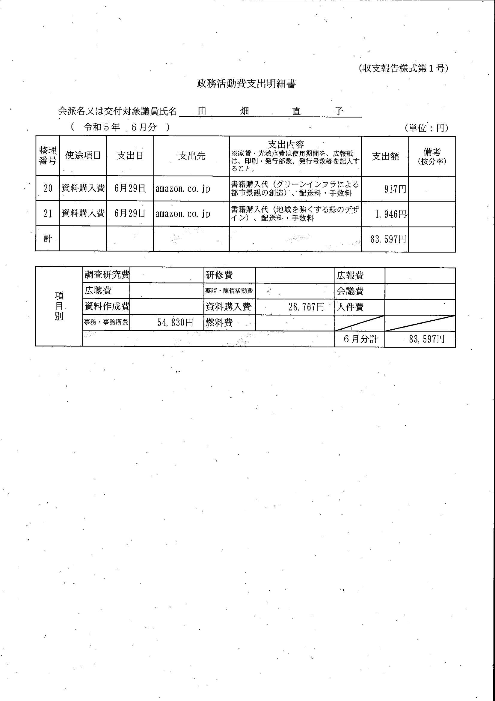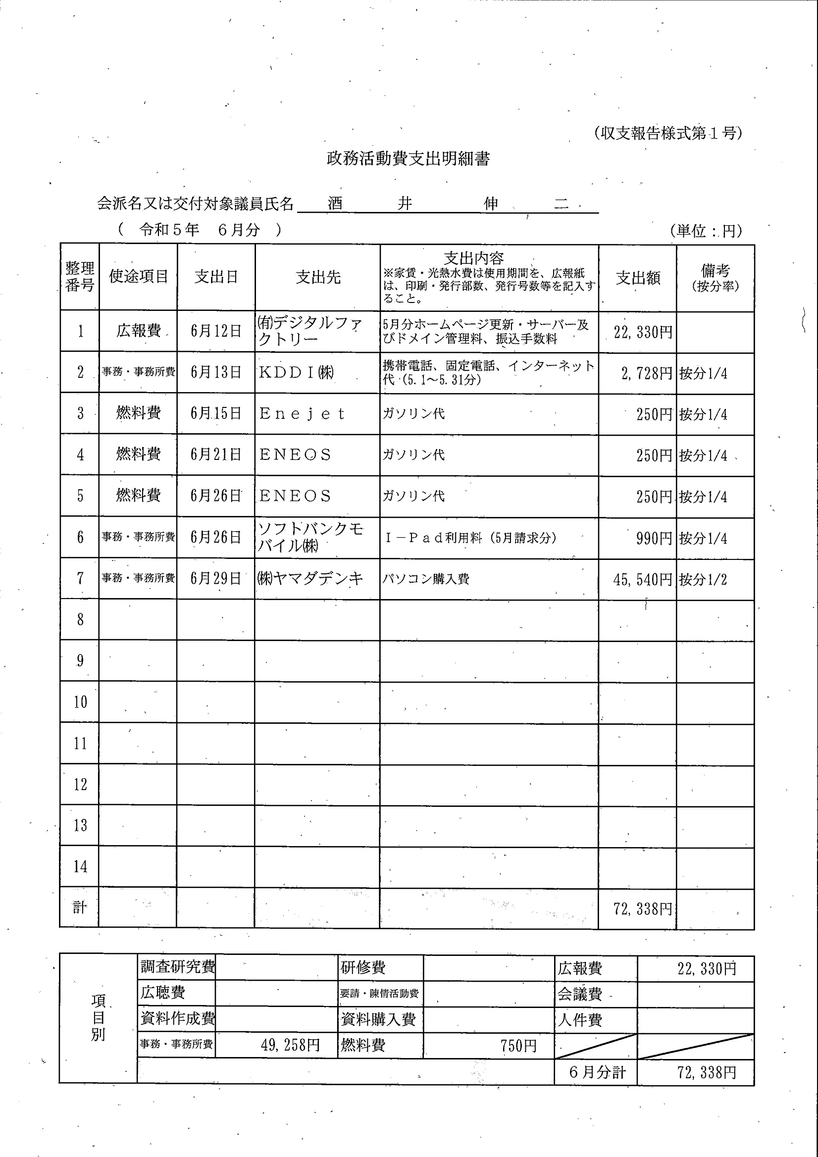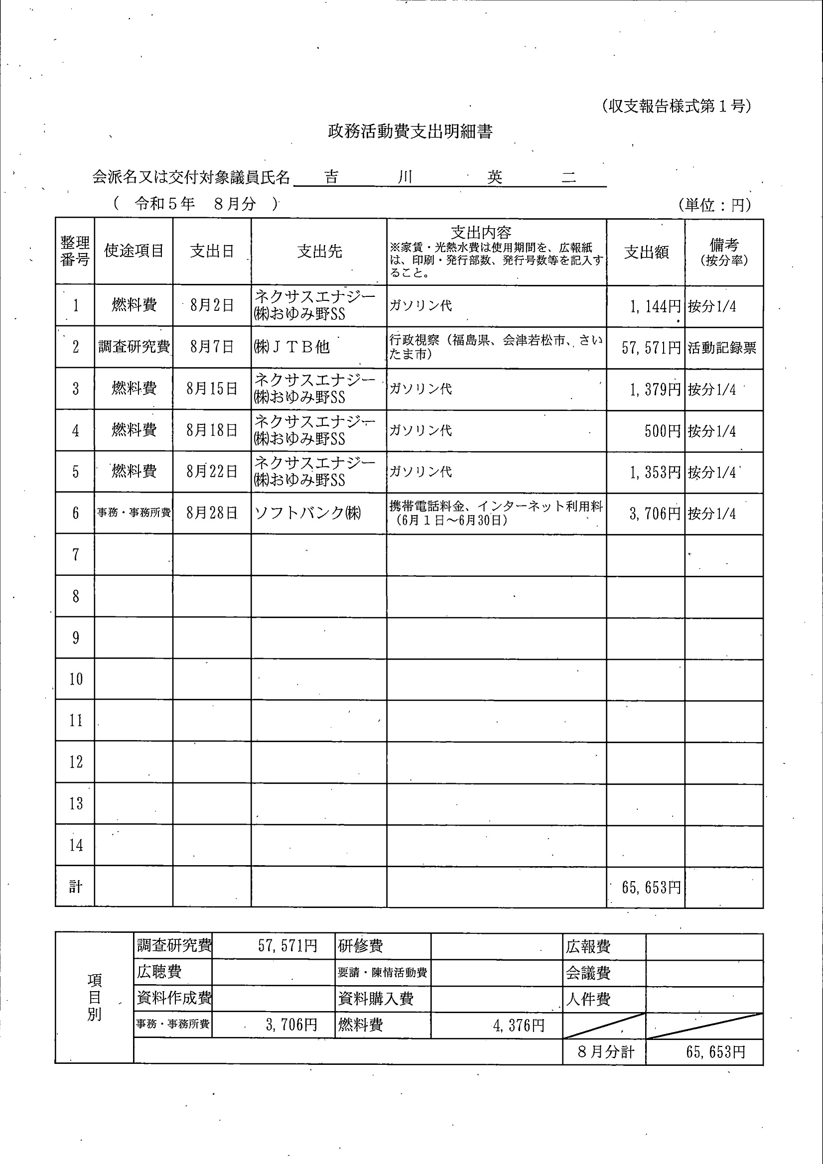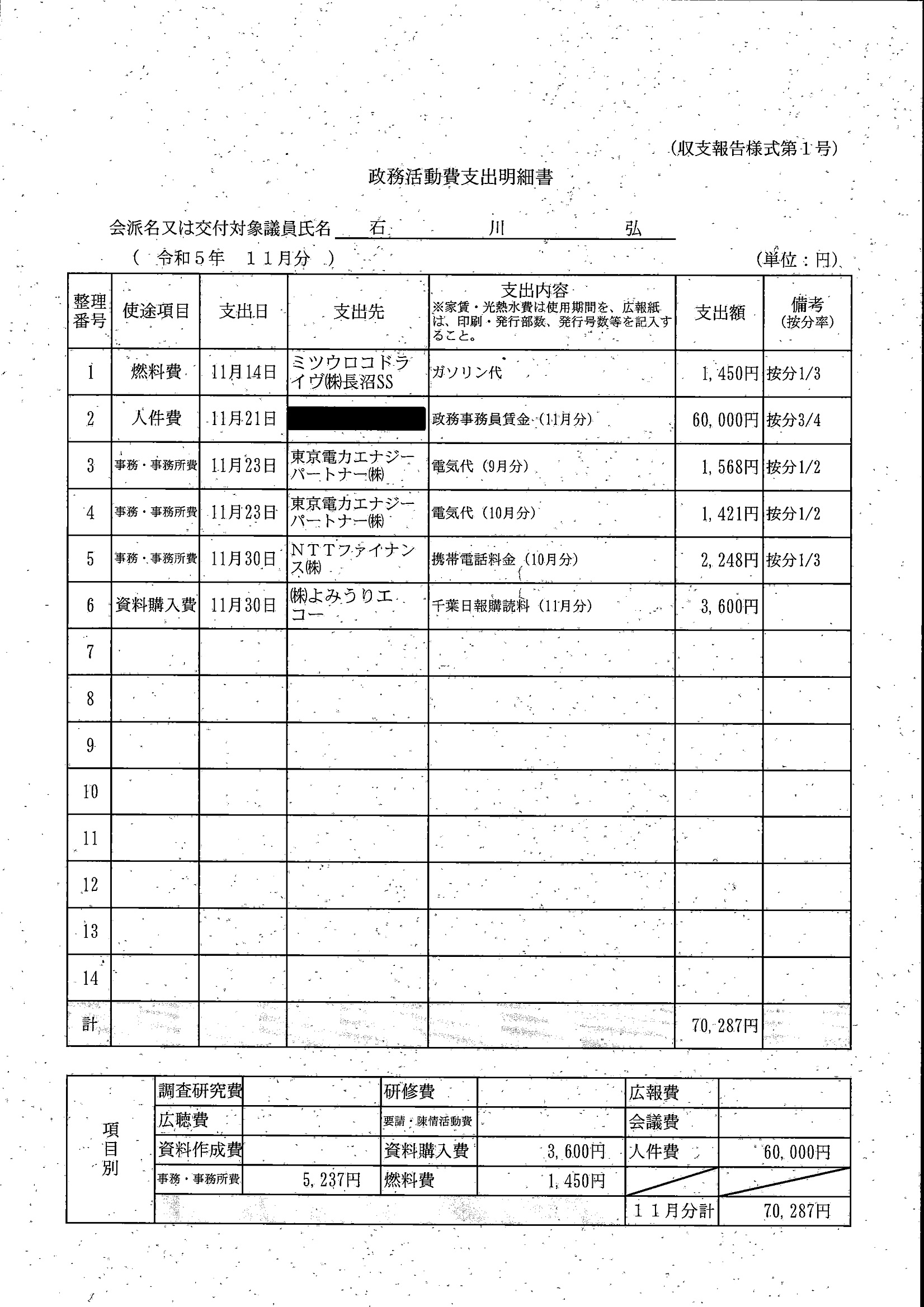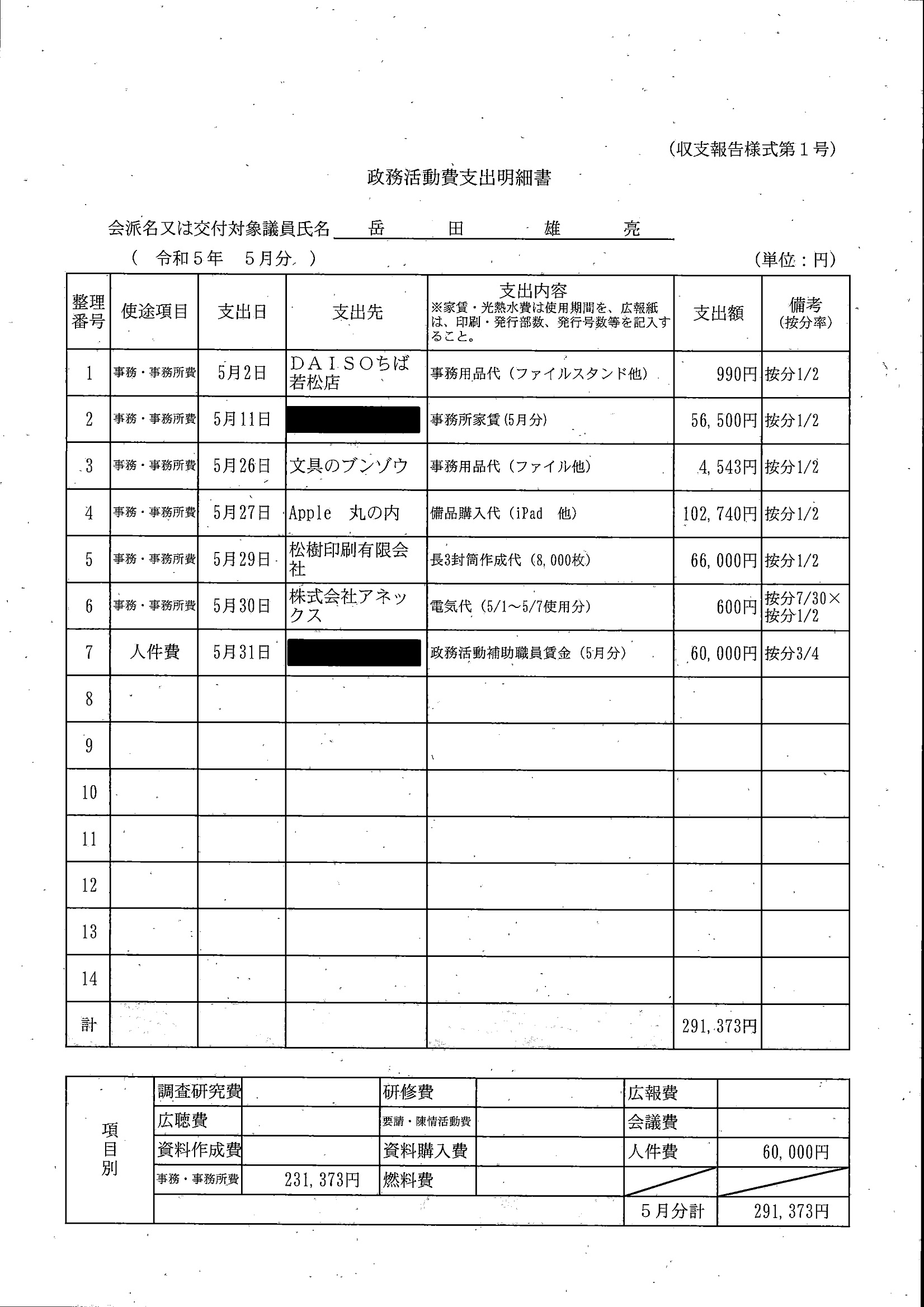 千葉市議会トップページ > 広報・情報公開 > 政務活動費 > 令和5年度交付分(政務活動費収支報告書)