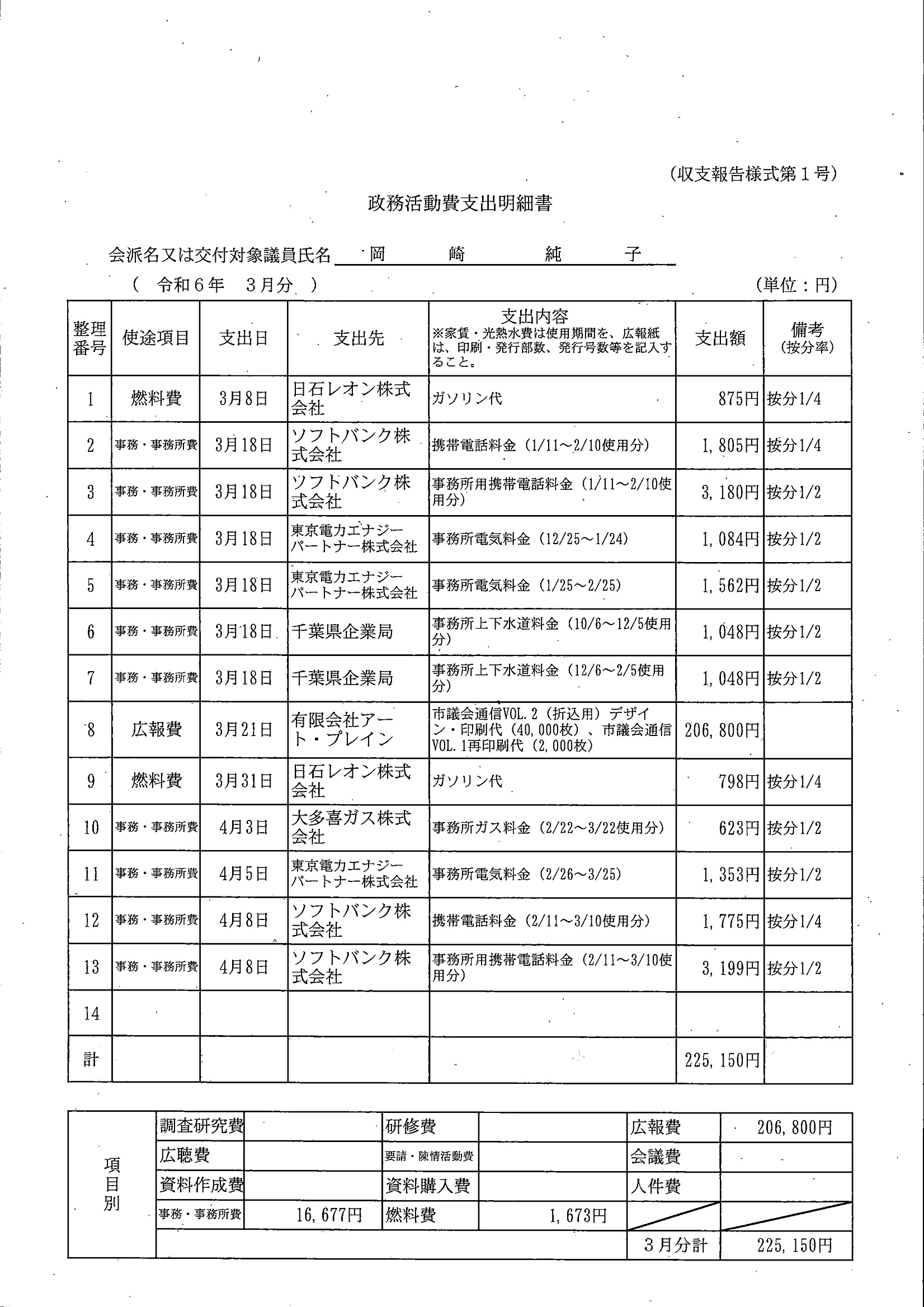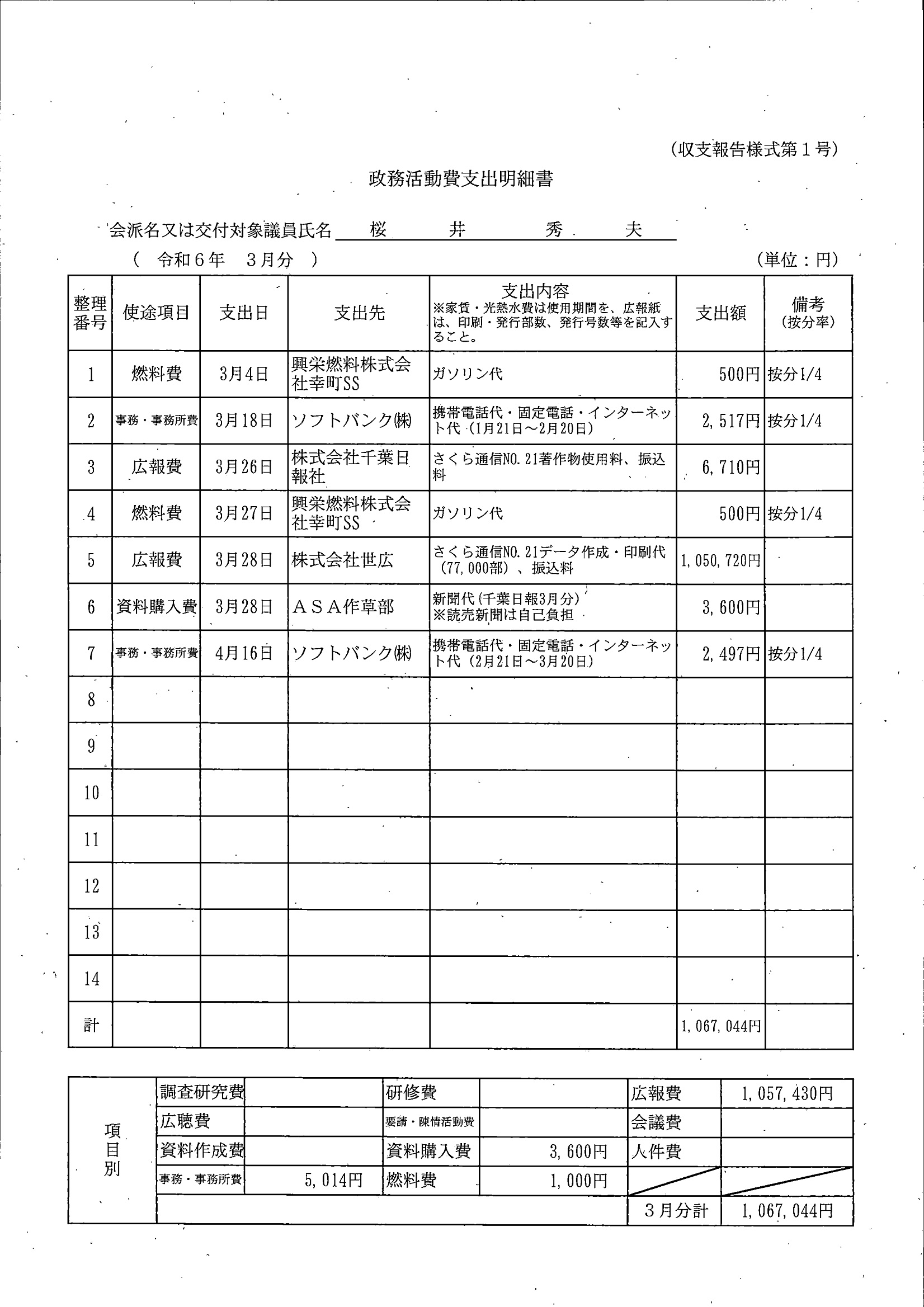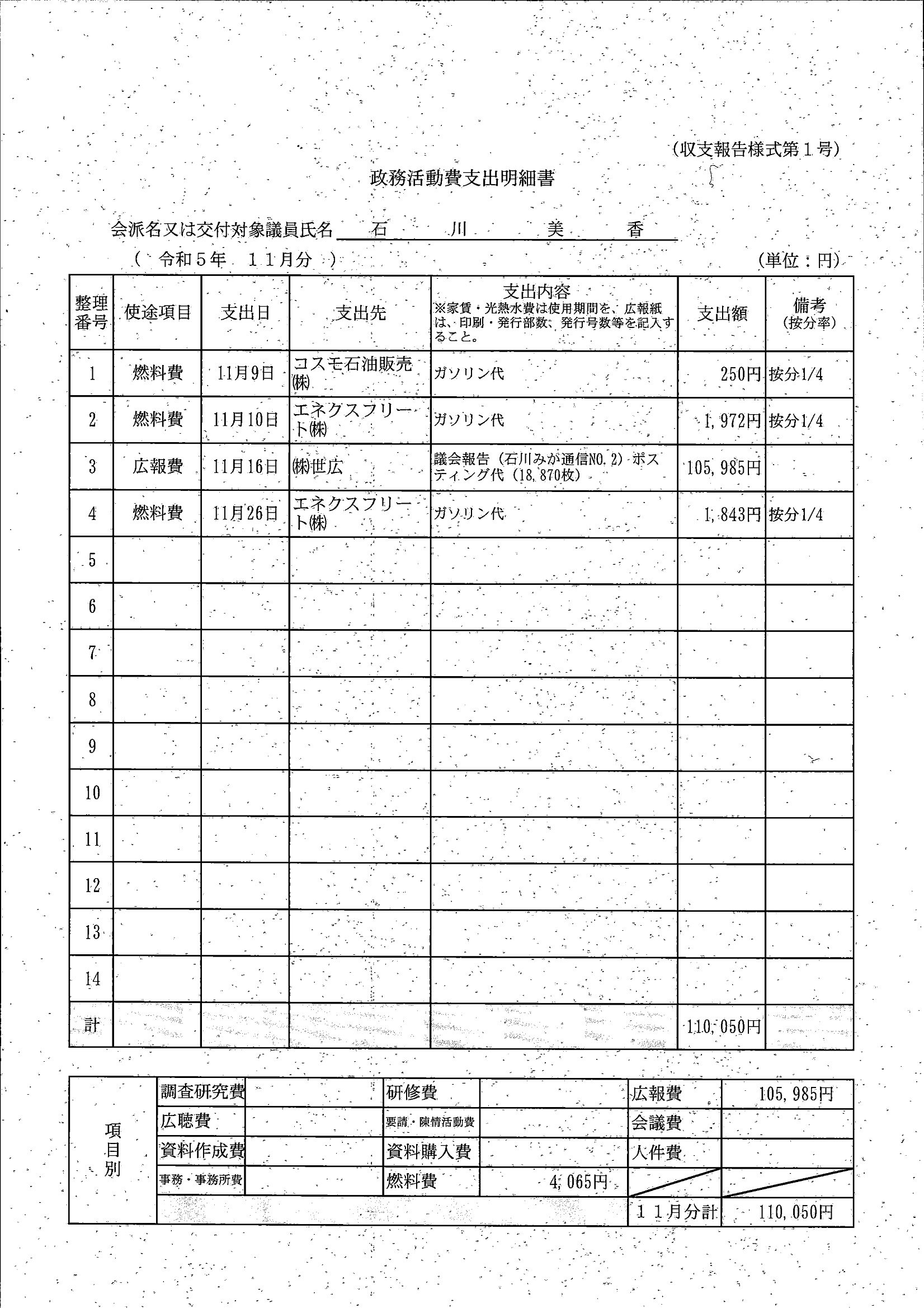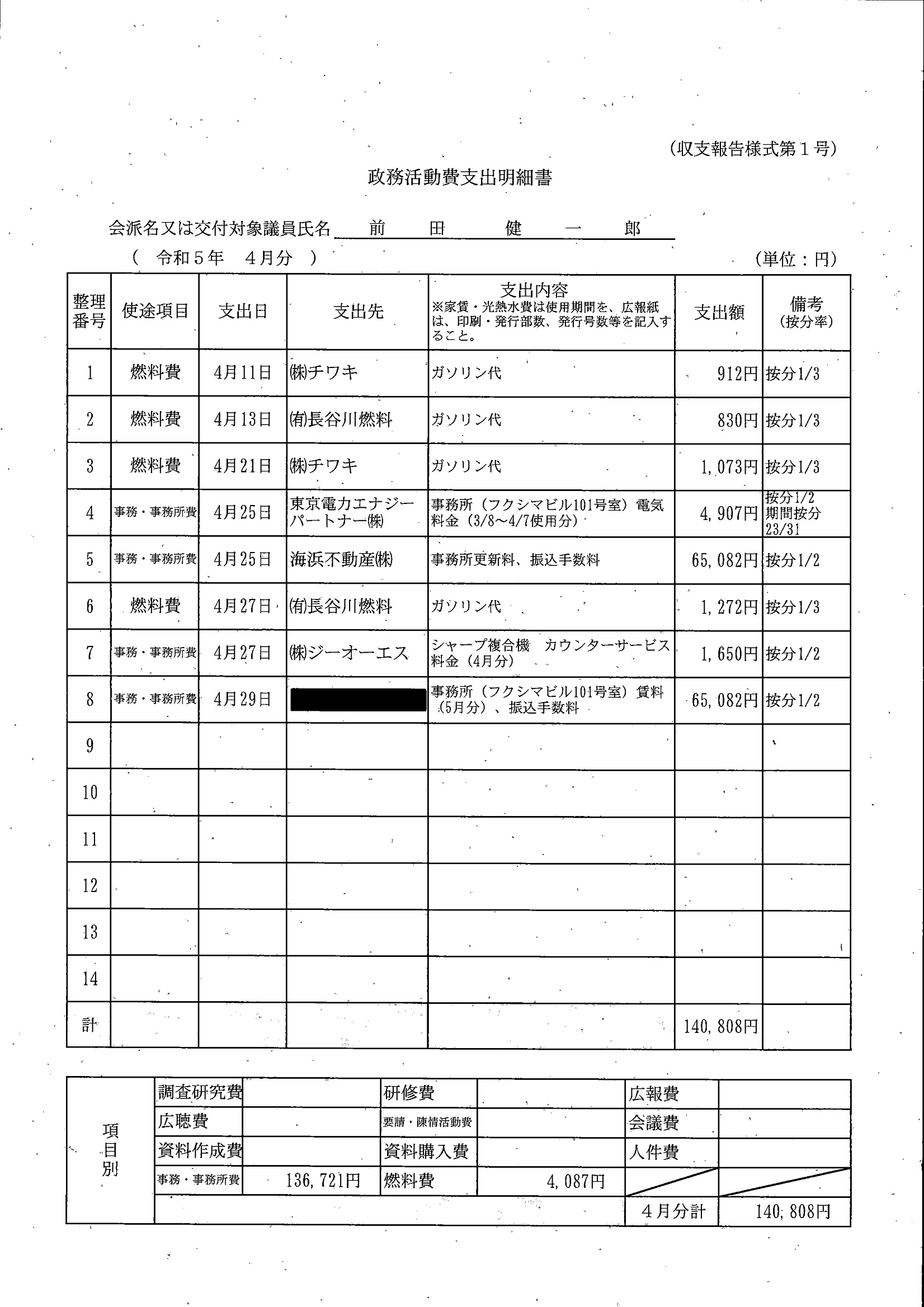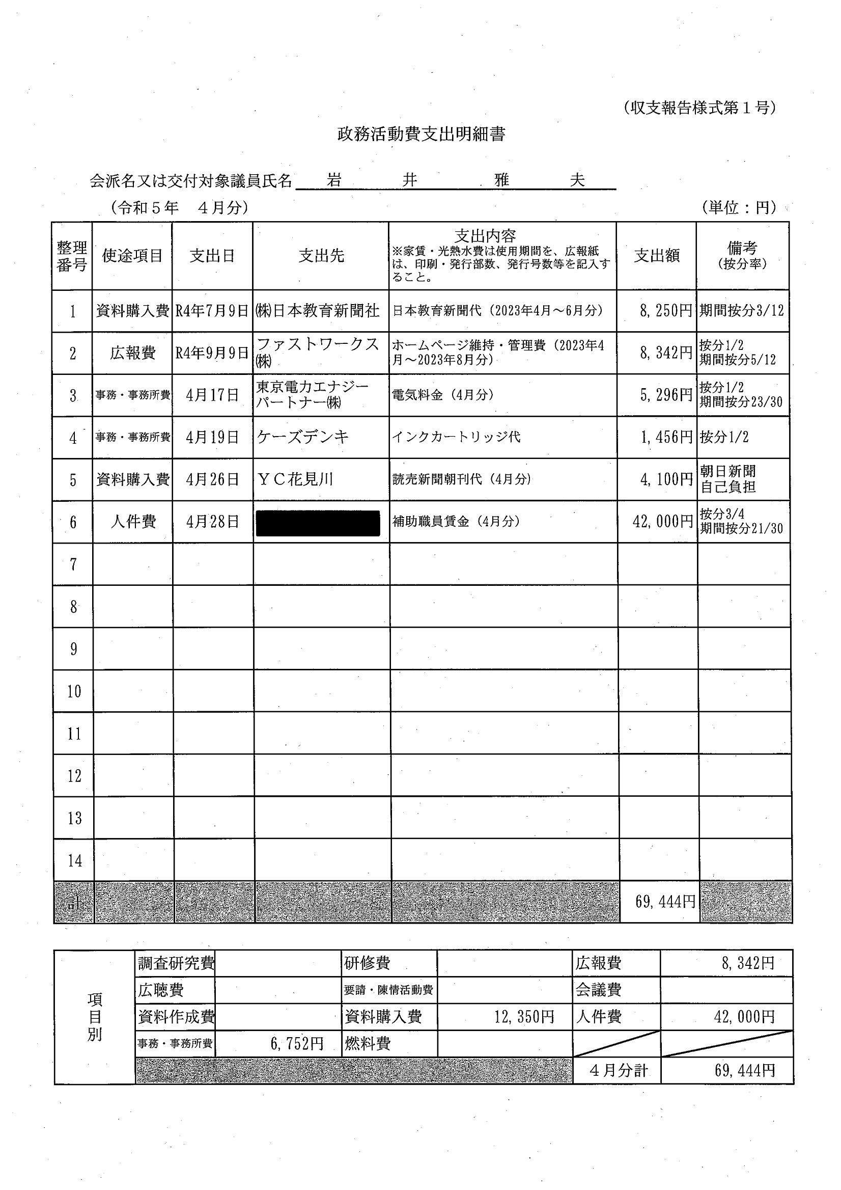 千葉市議会トップページ > 広報・情報公開 > 政務活動費 > 令和5年度交付分(政務活動費収支報告書)