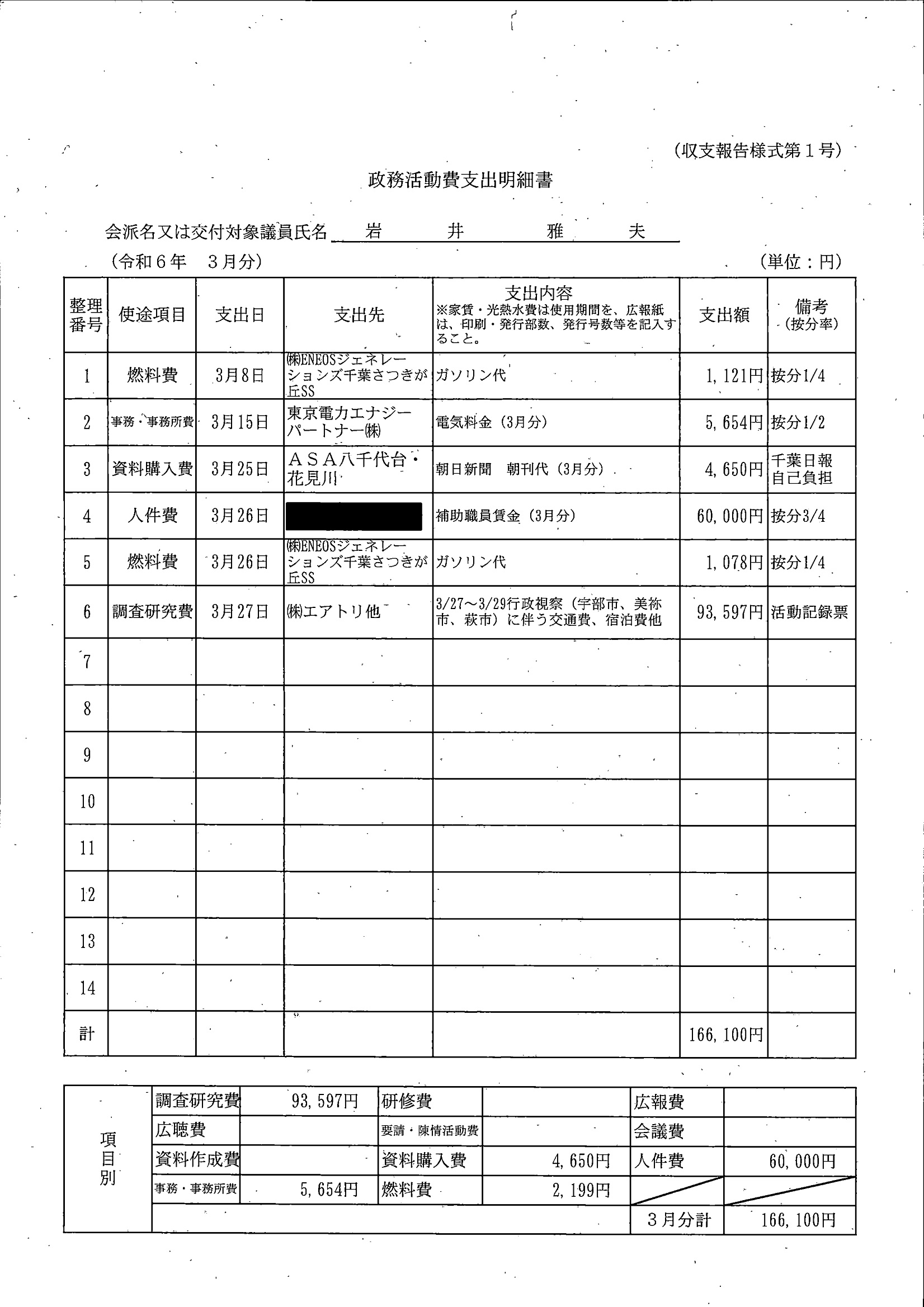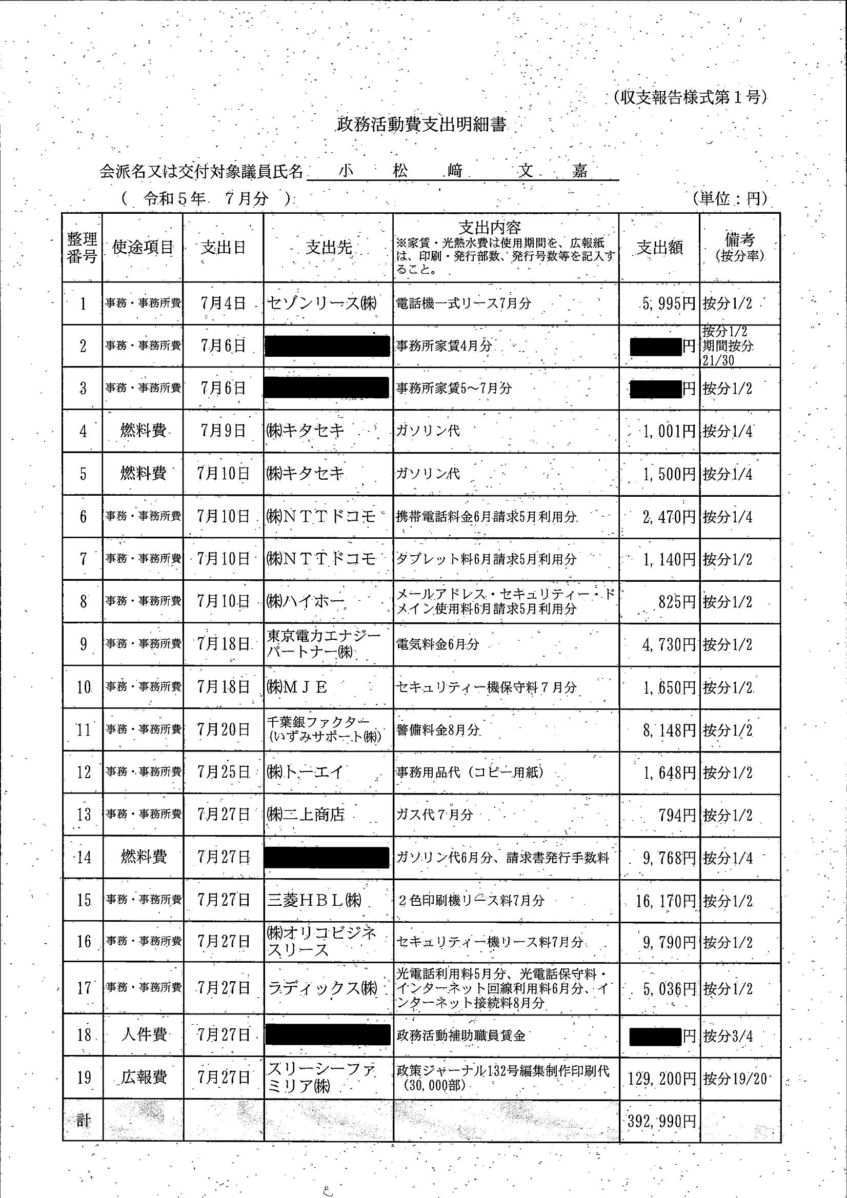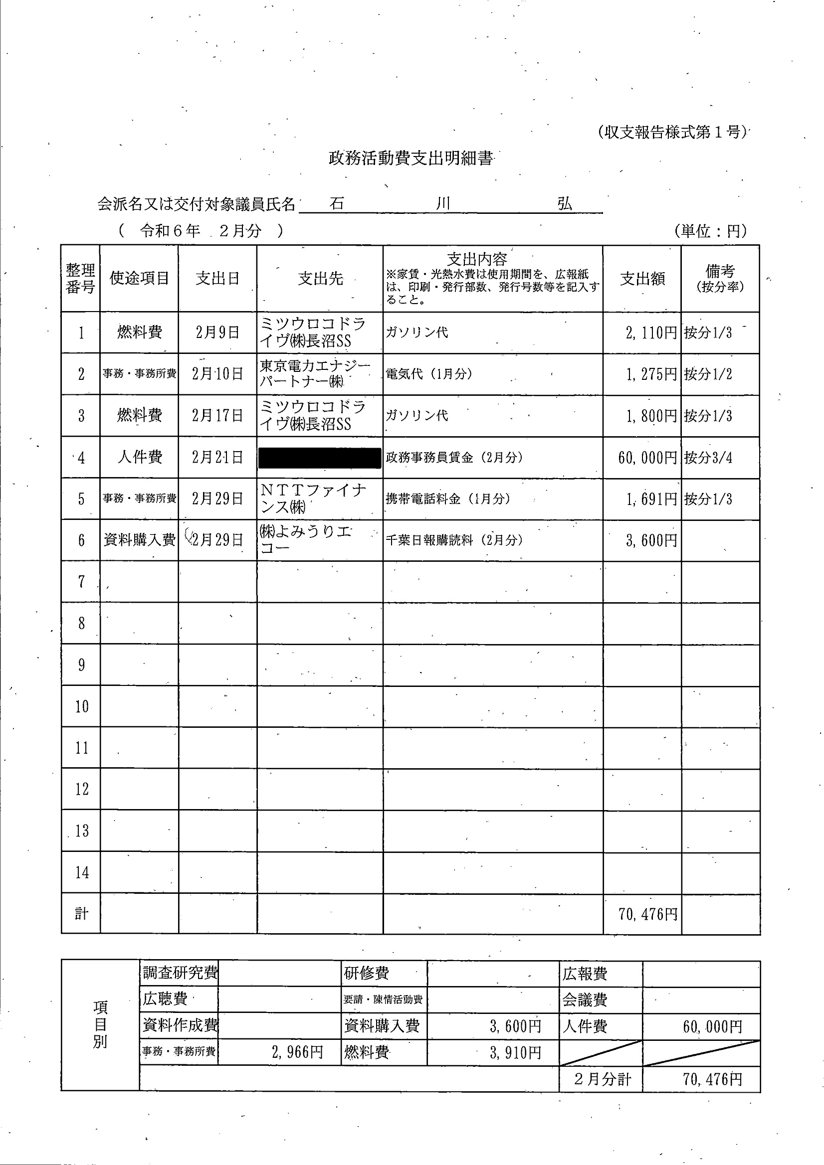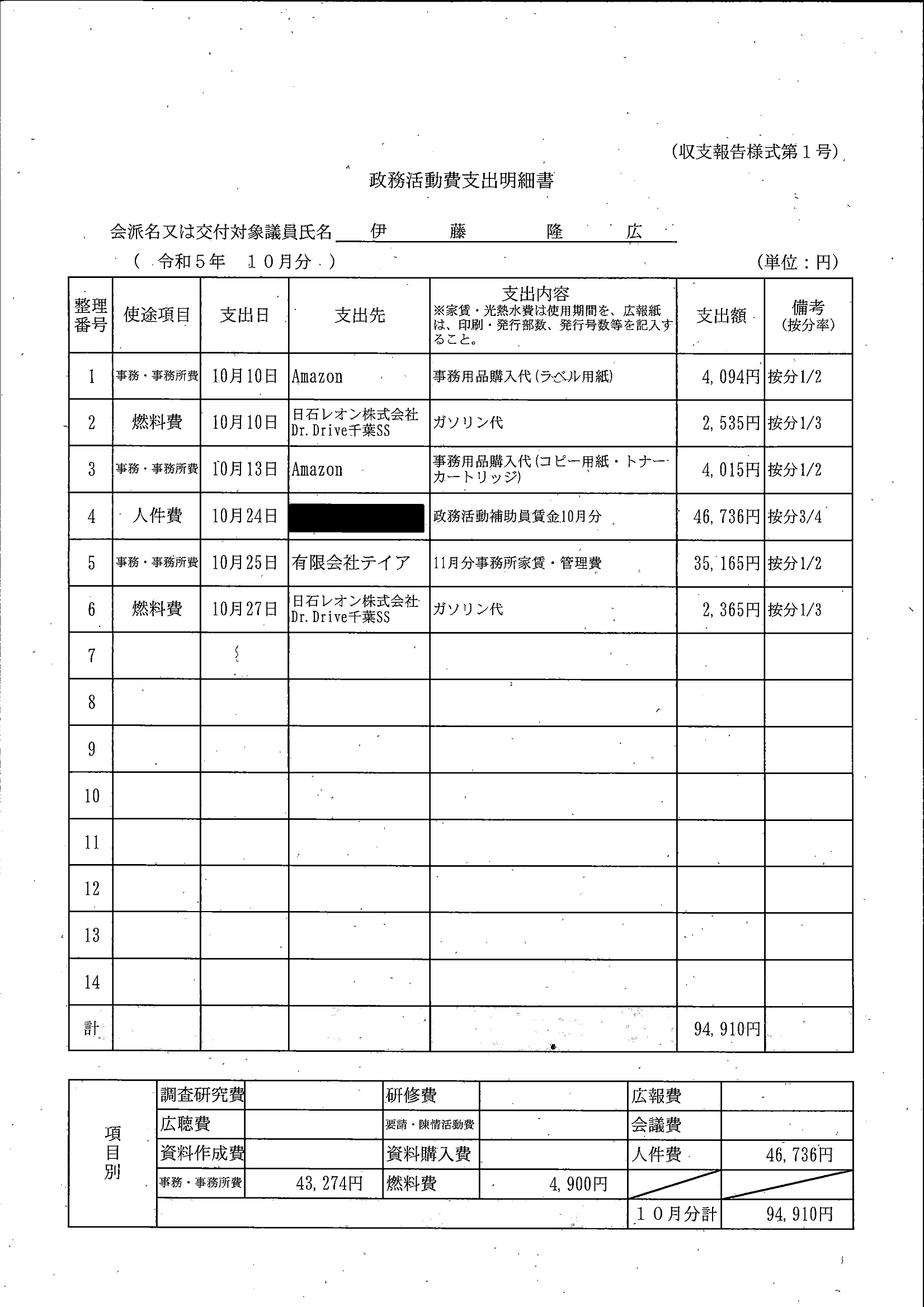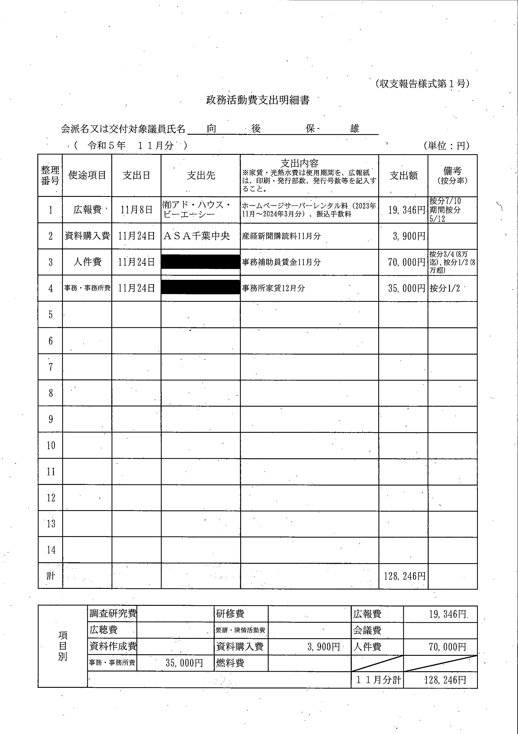 千葉市議会トップページ > 広報・情報公開 > 政務活動費 > 令和5年度交付分(政務活動費収支報告書)