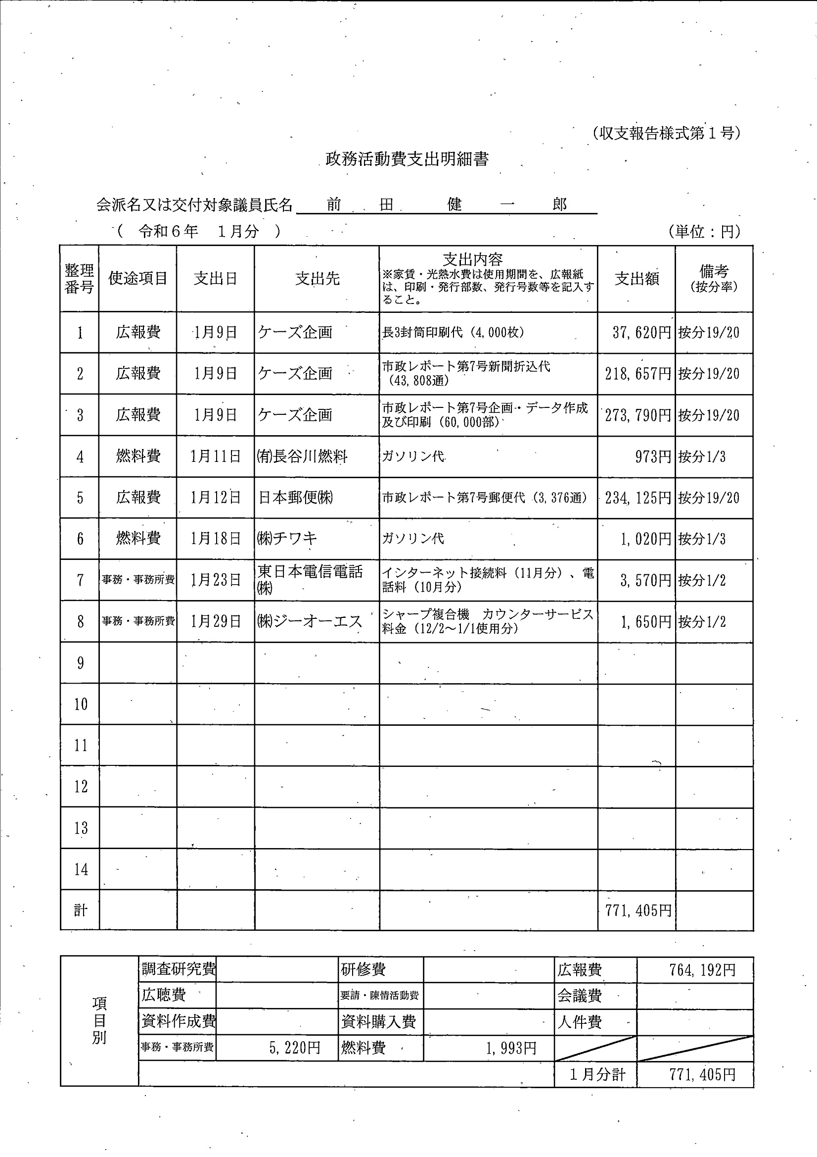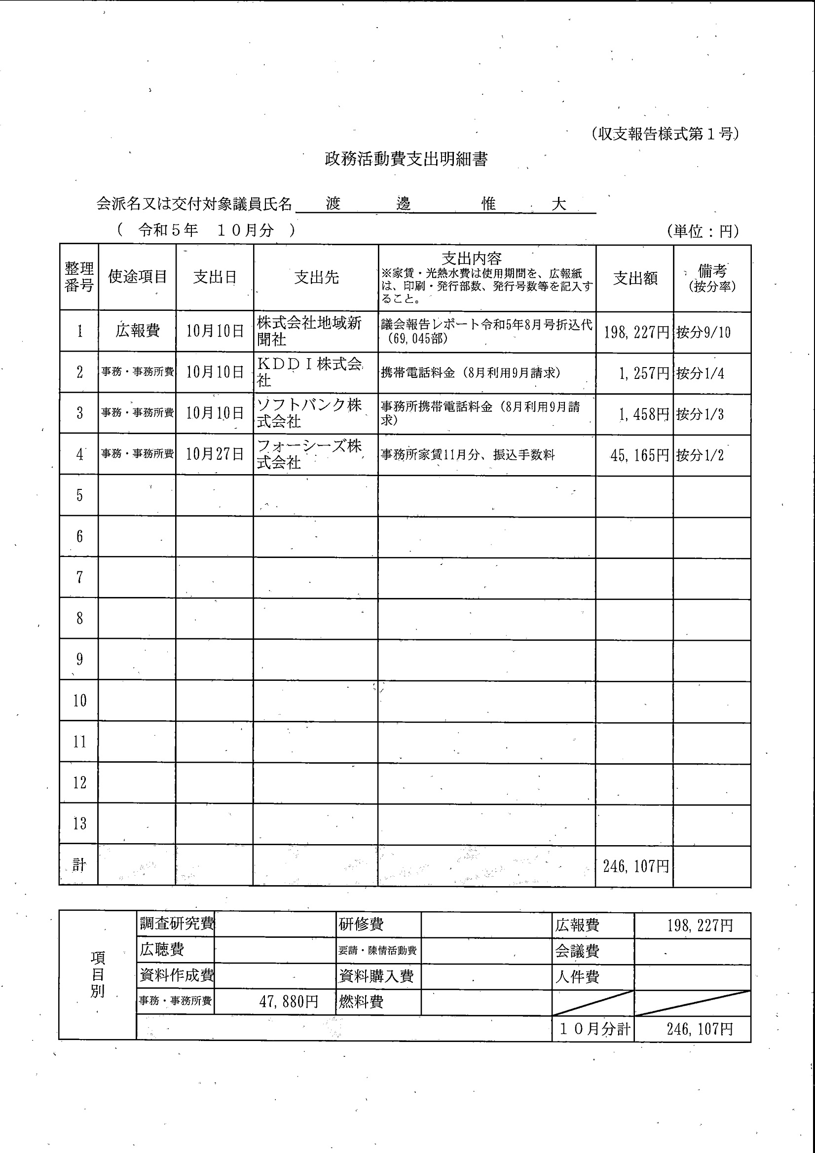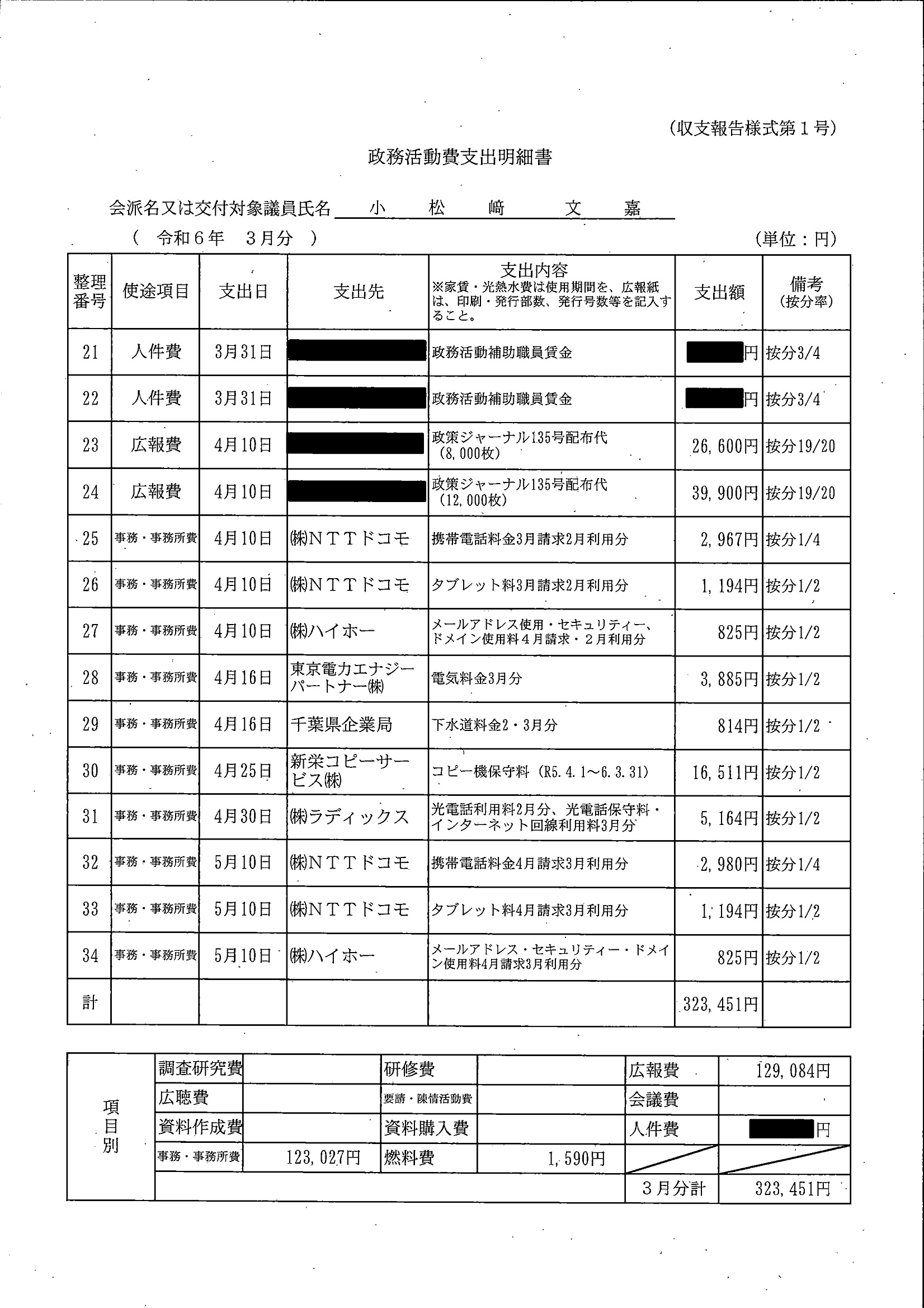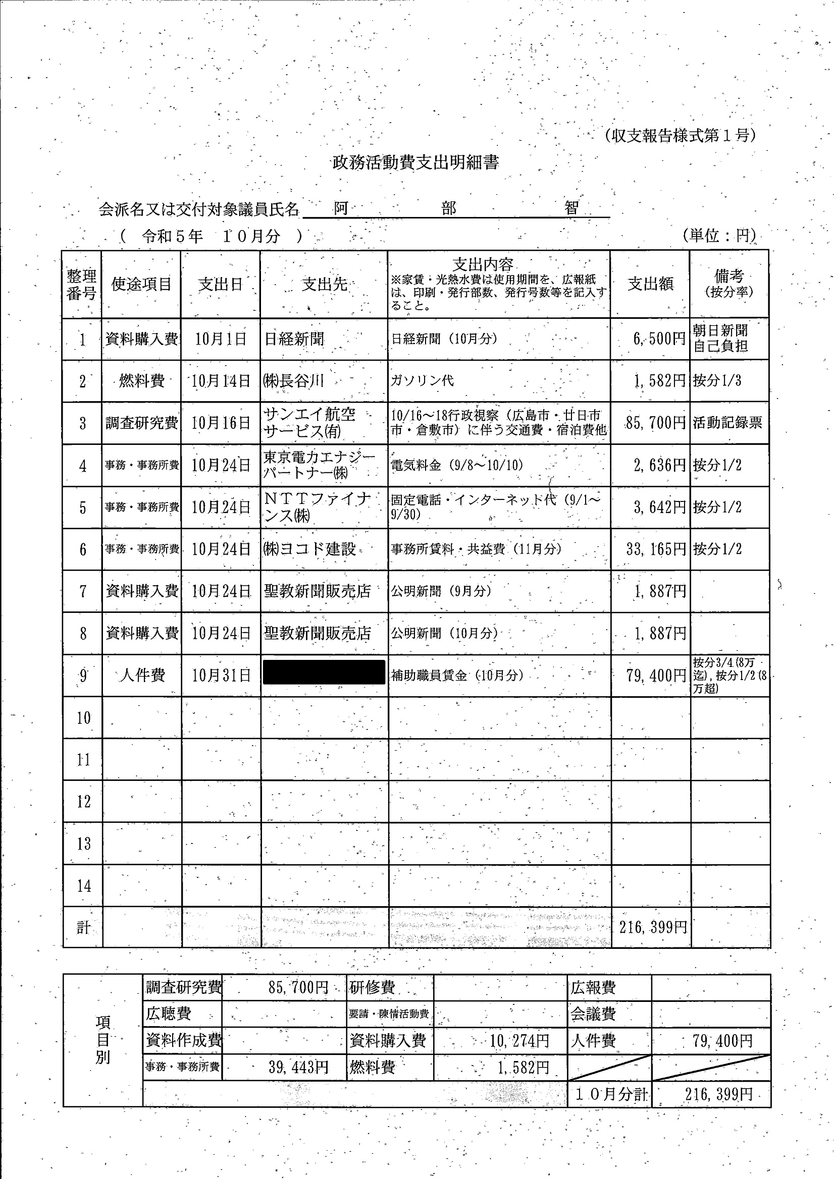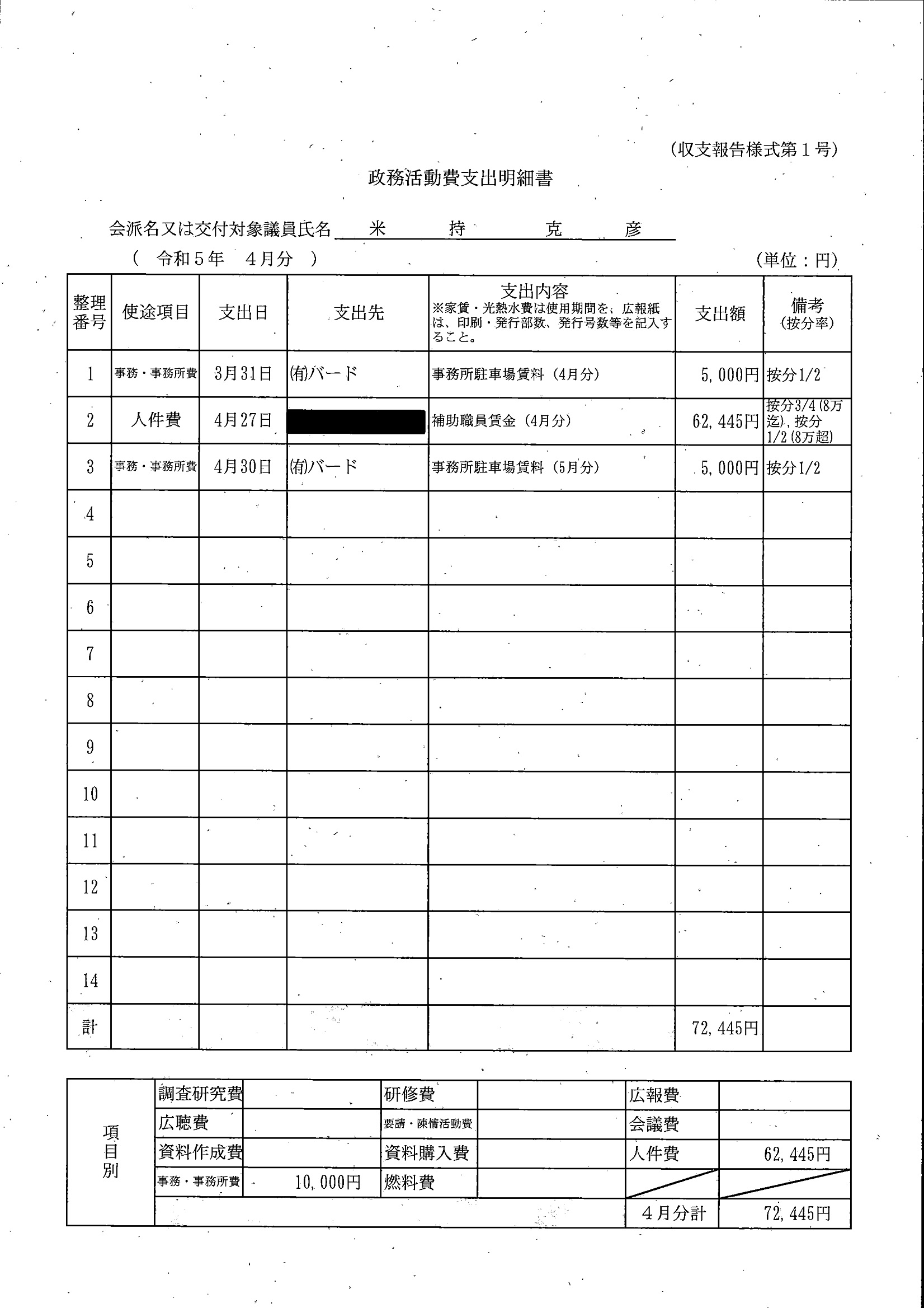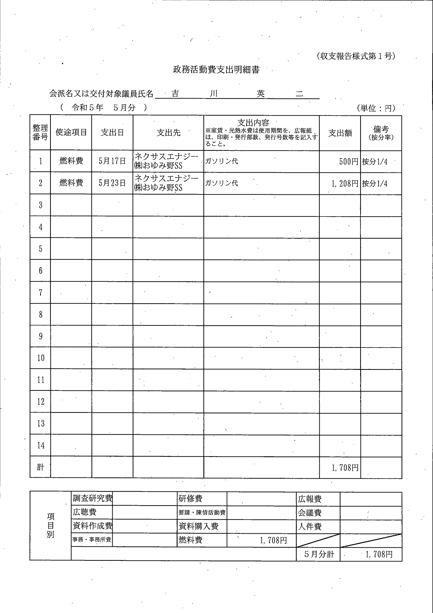 千葉市議会トップページ > 広報・情報公開 > 政務活動費 > 令和5年度交付分(政務活動費収支報告書)