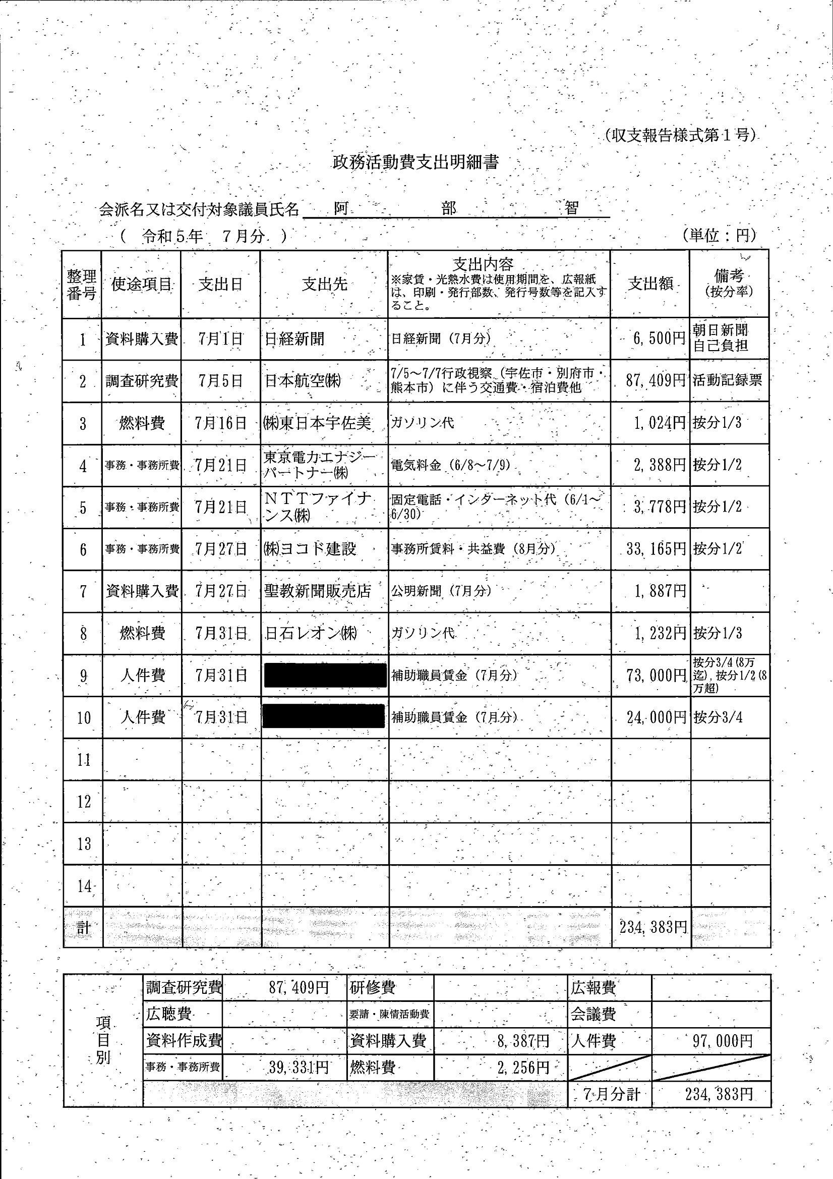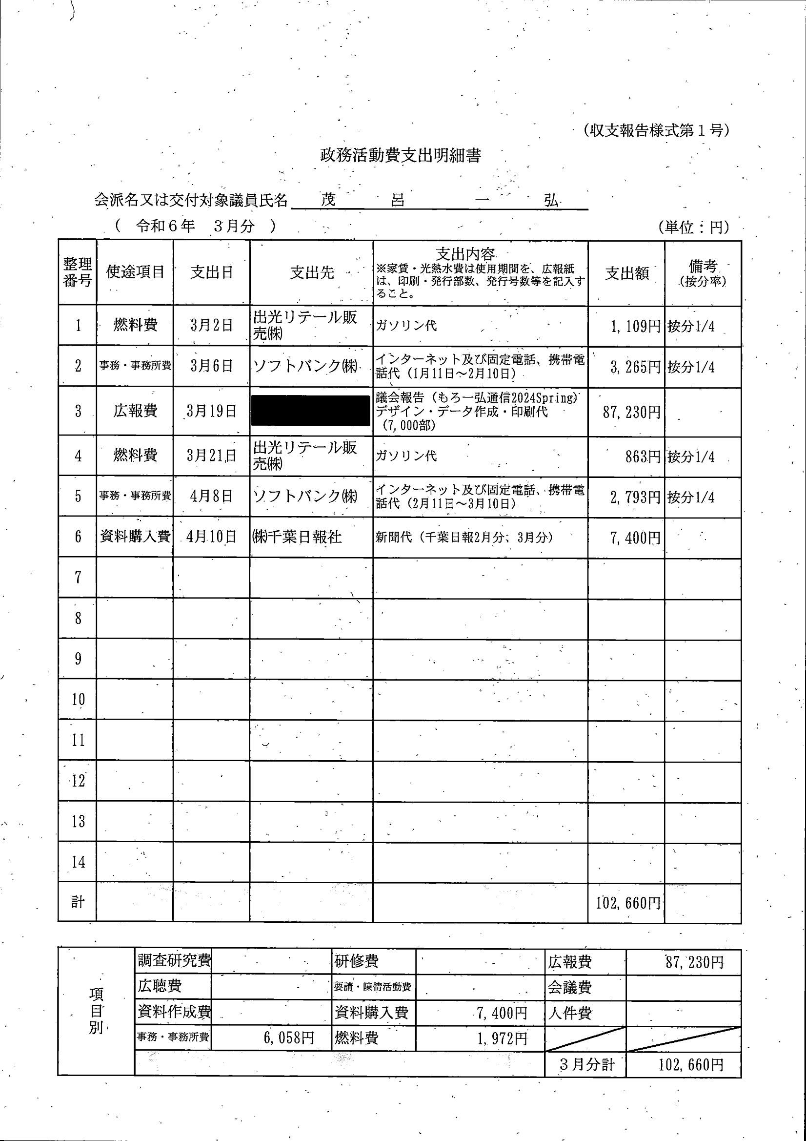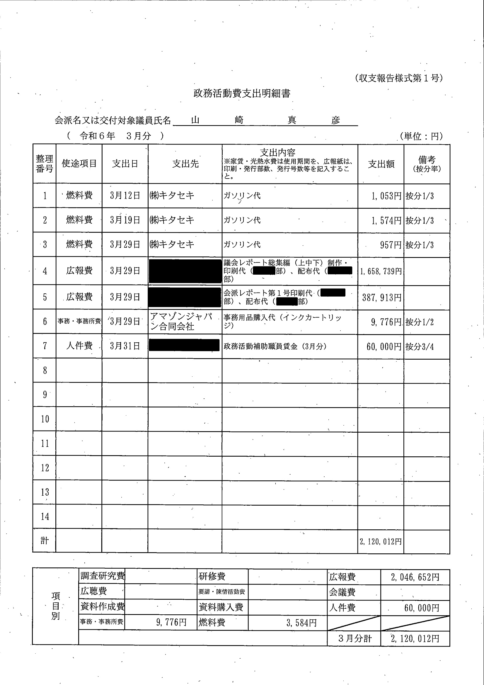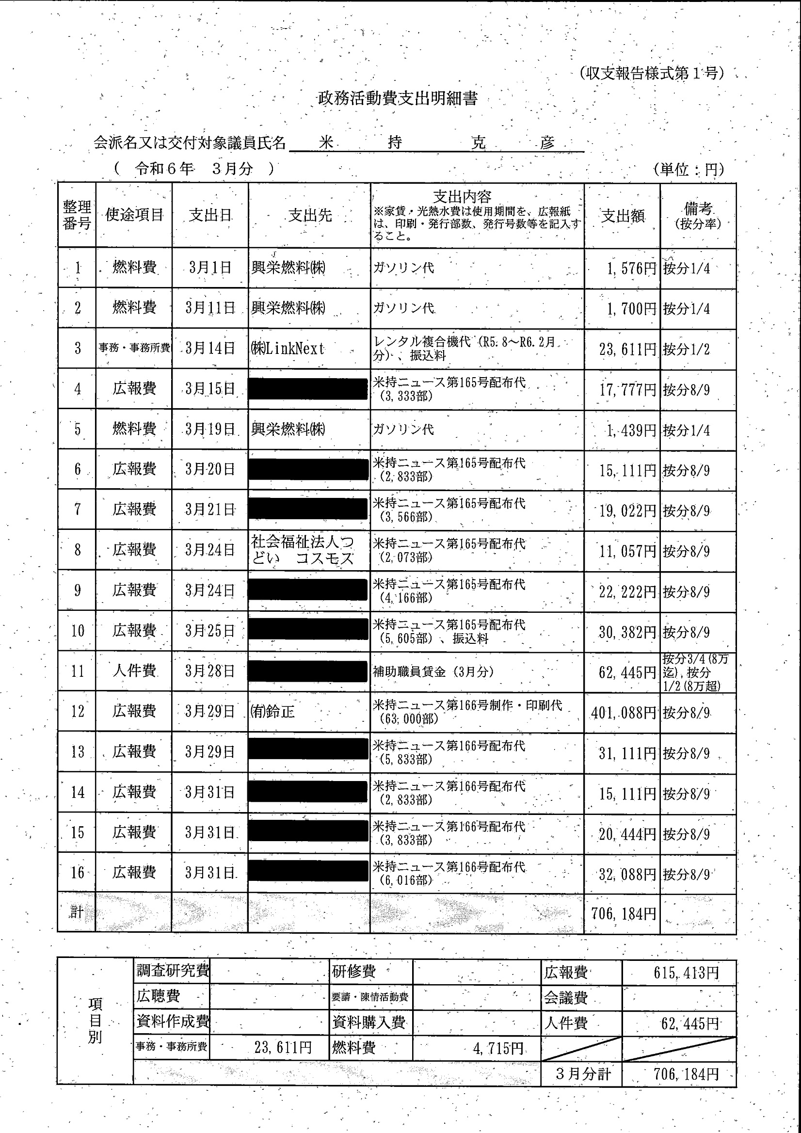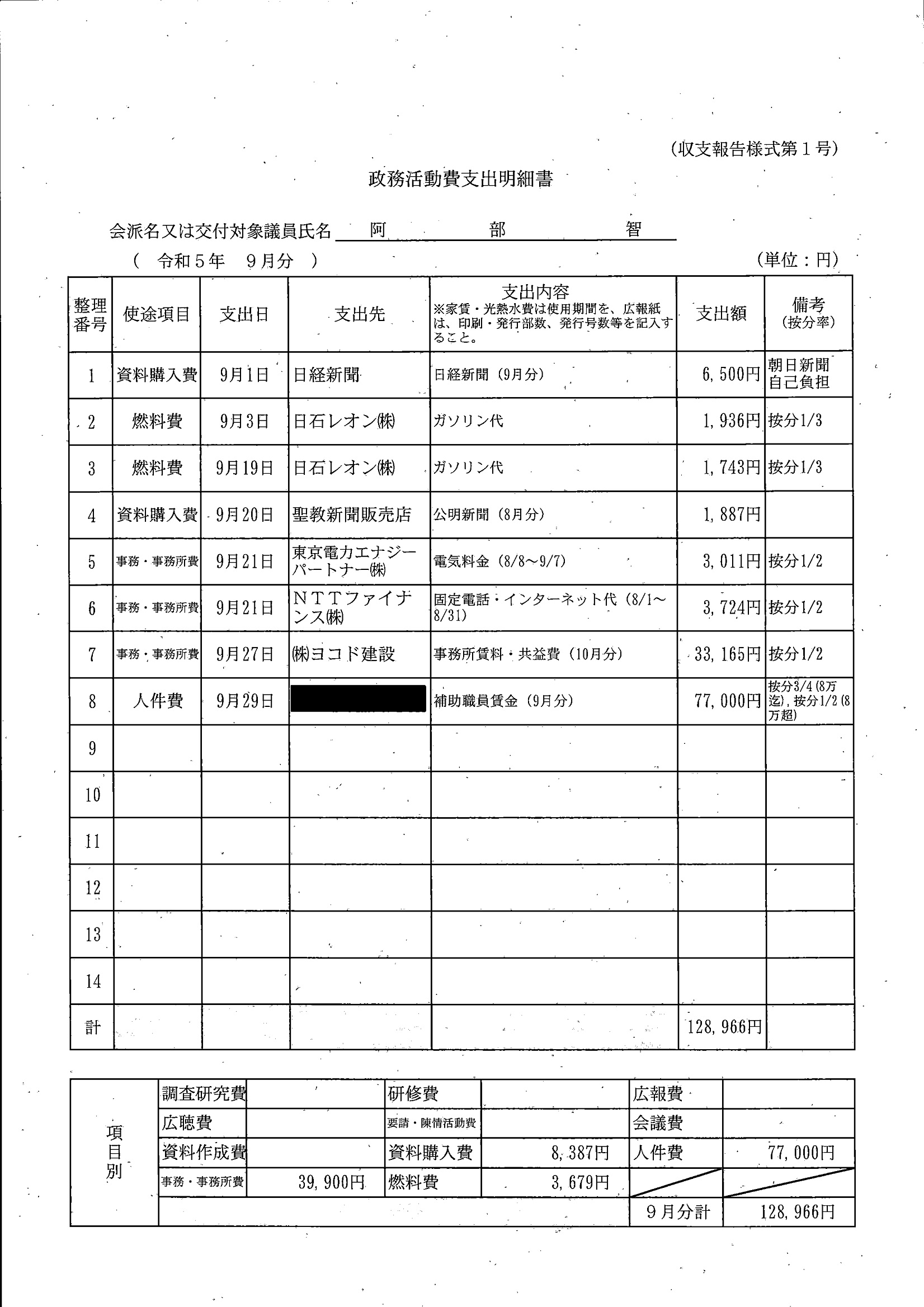 千葉市議会トップページ > 広報・情報公開 > 政務活動費 > 令和5年度交付分(政務活動費収支報告書)