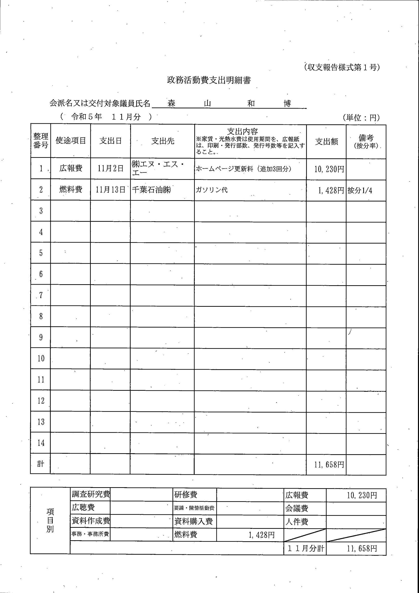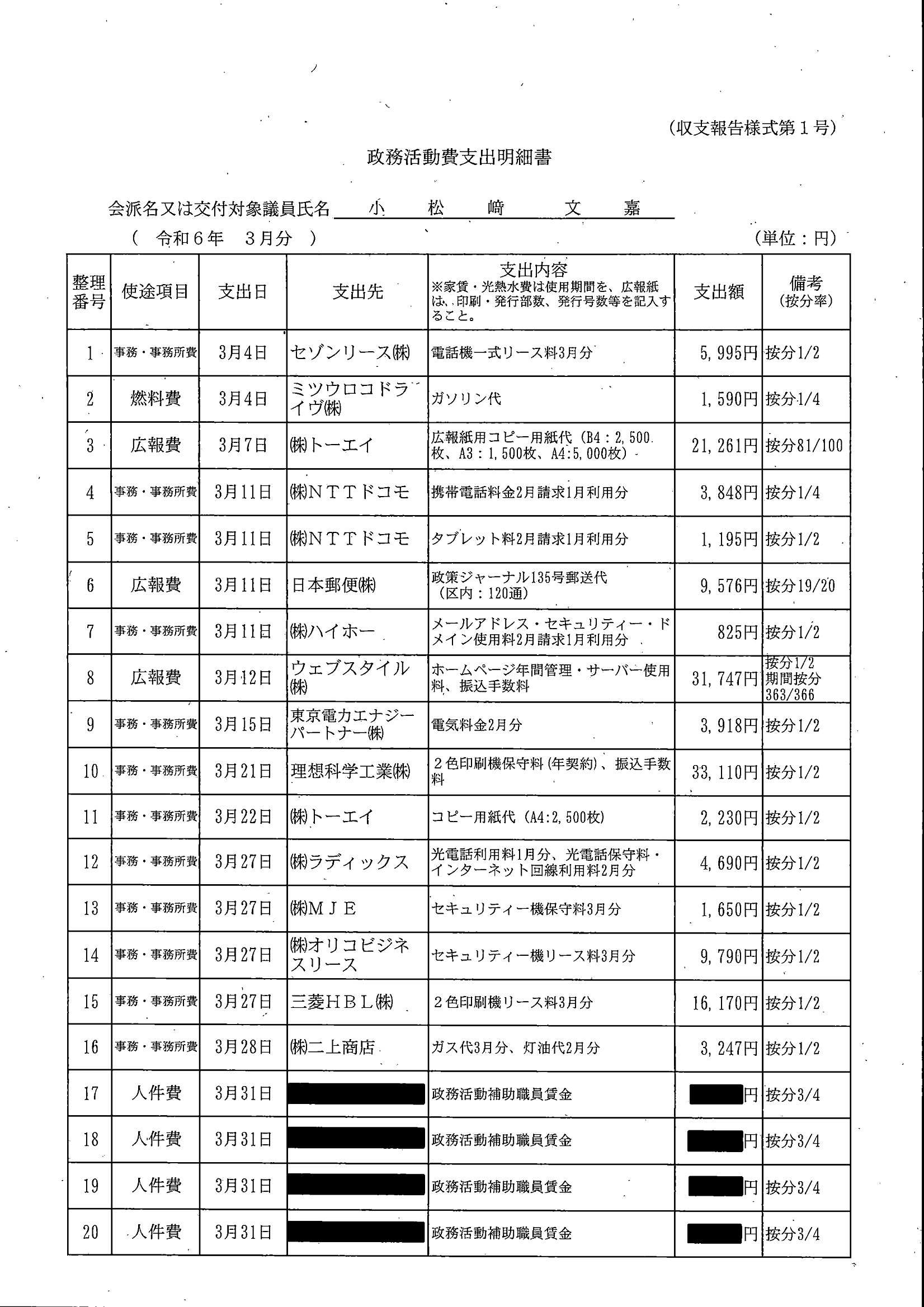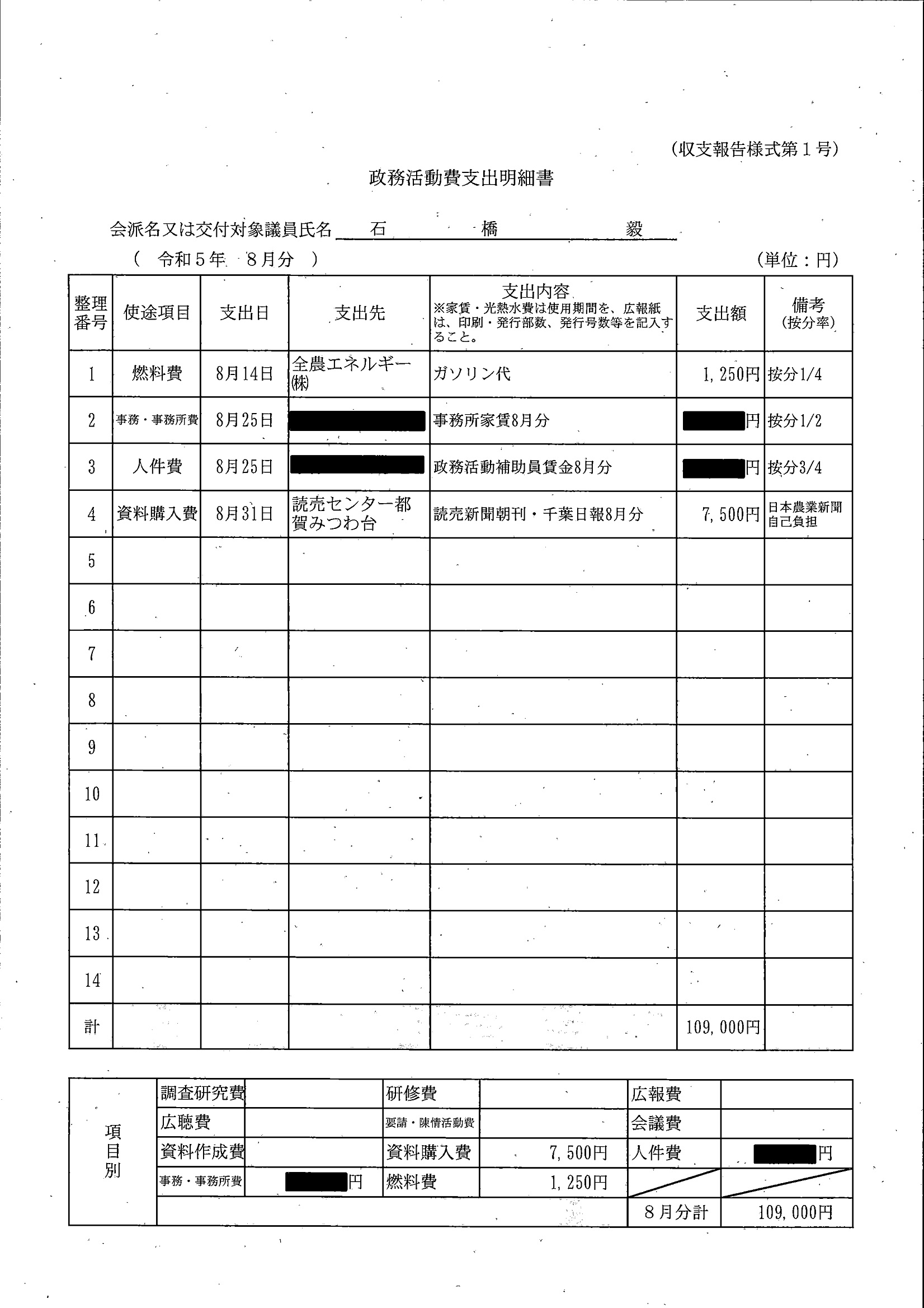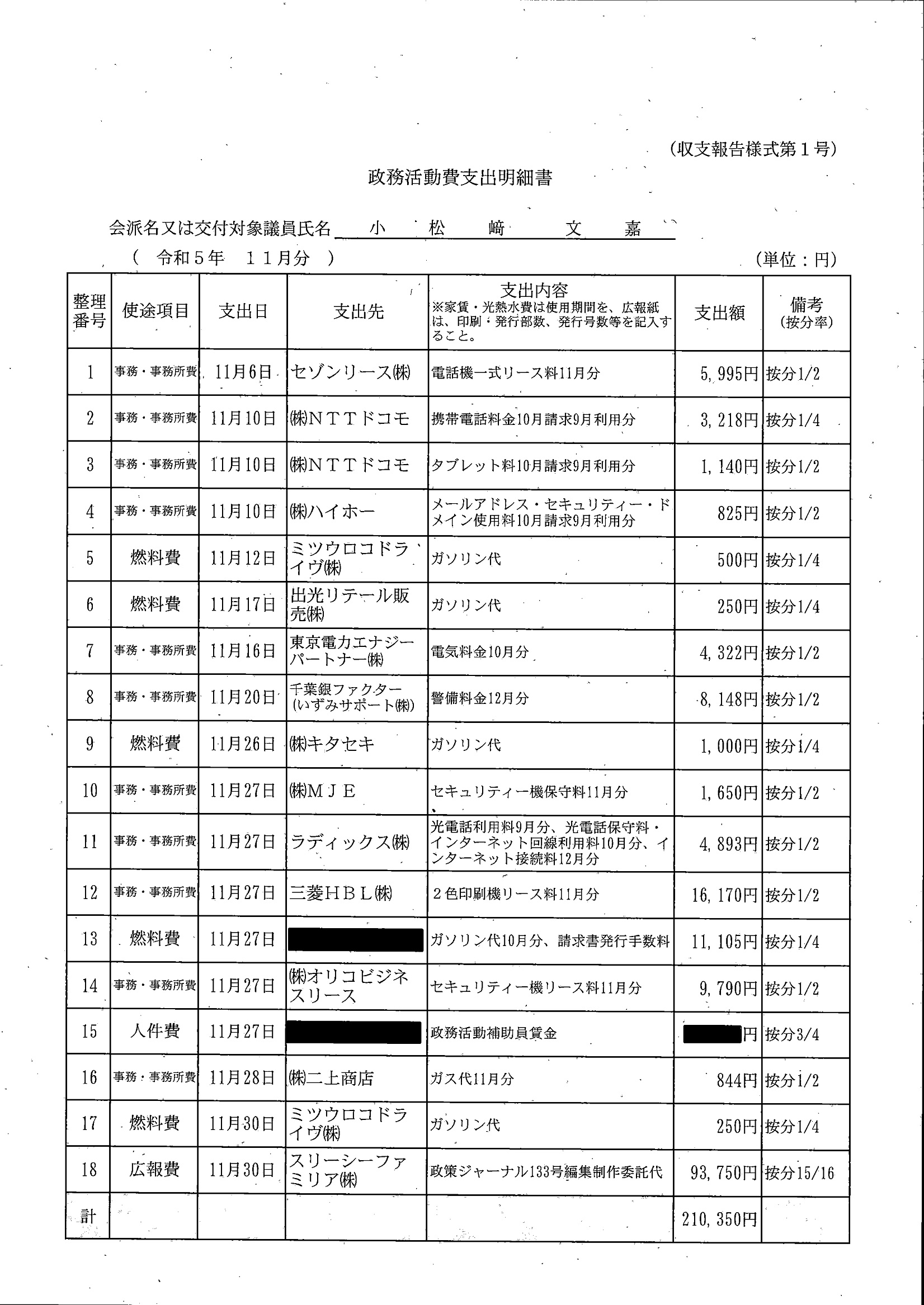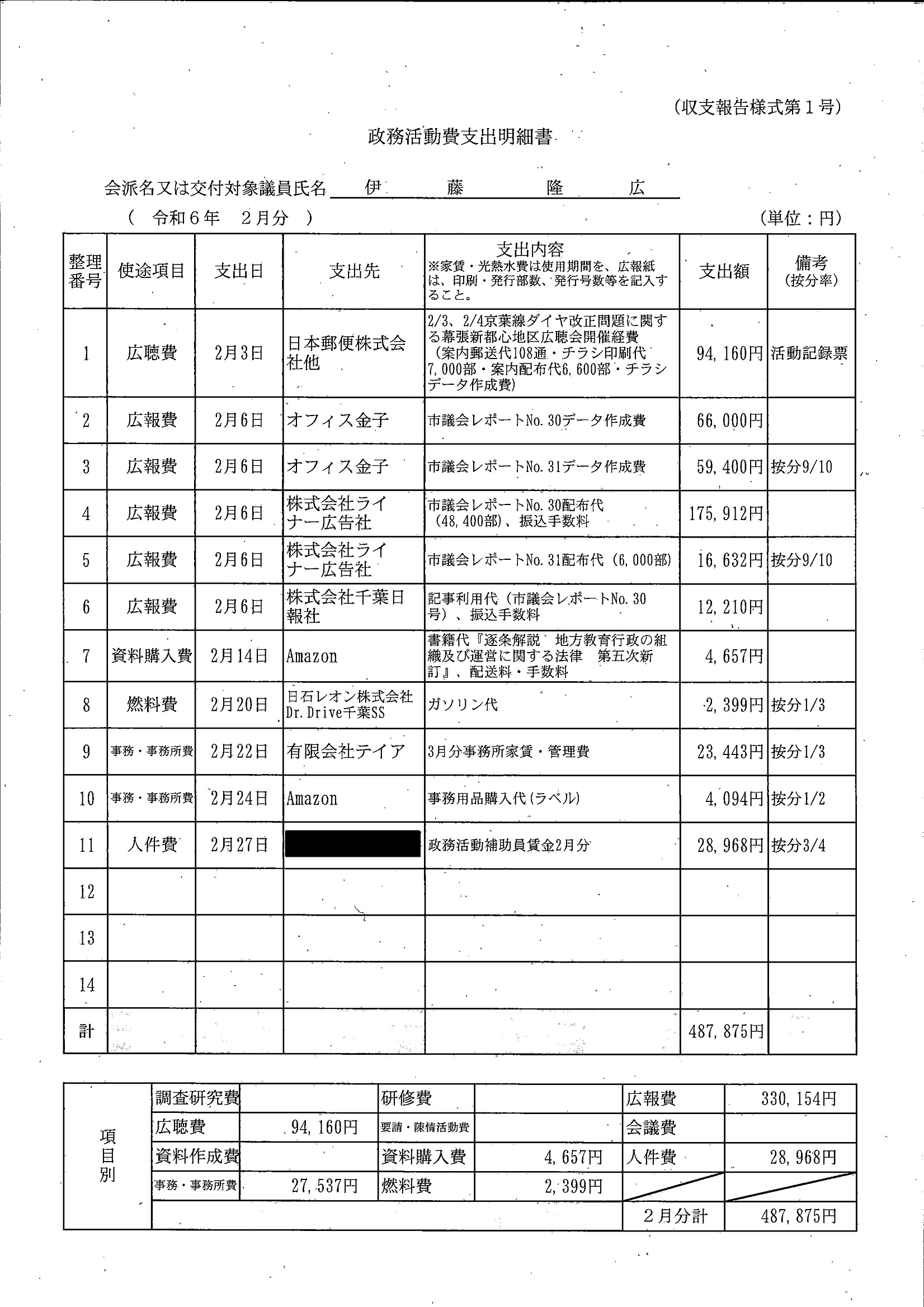 千葉市議会トップページ > 広報・情報公開 > 政務活動費 > 令和5年度交付分(政務活動費収支報告書)