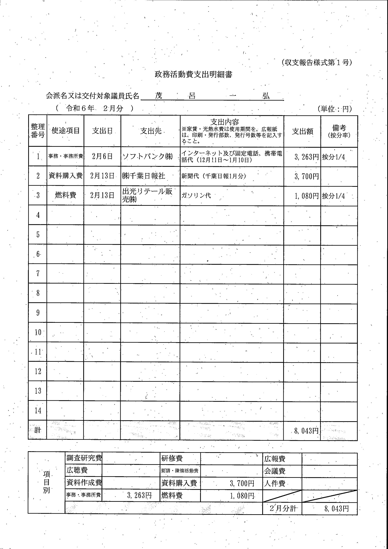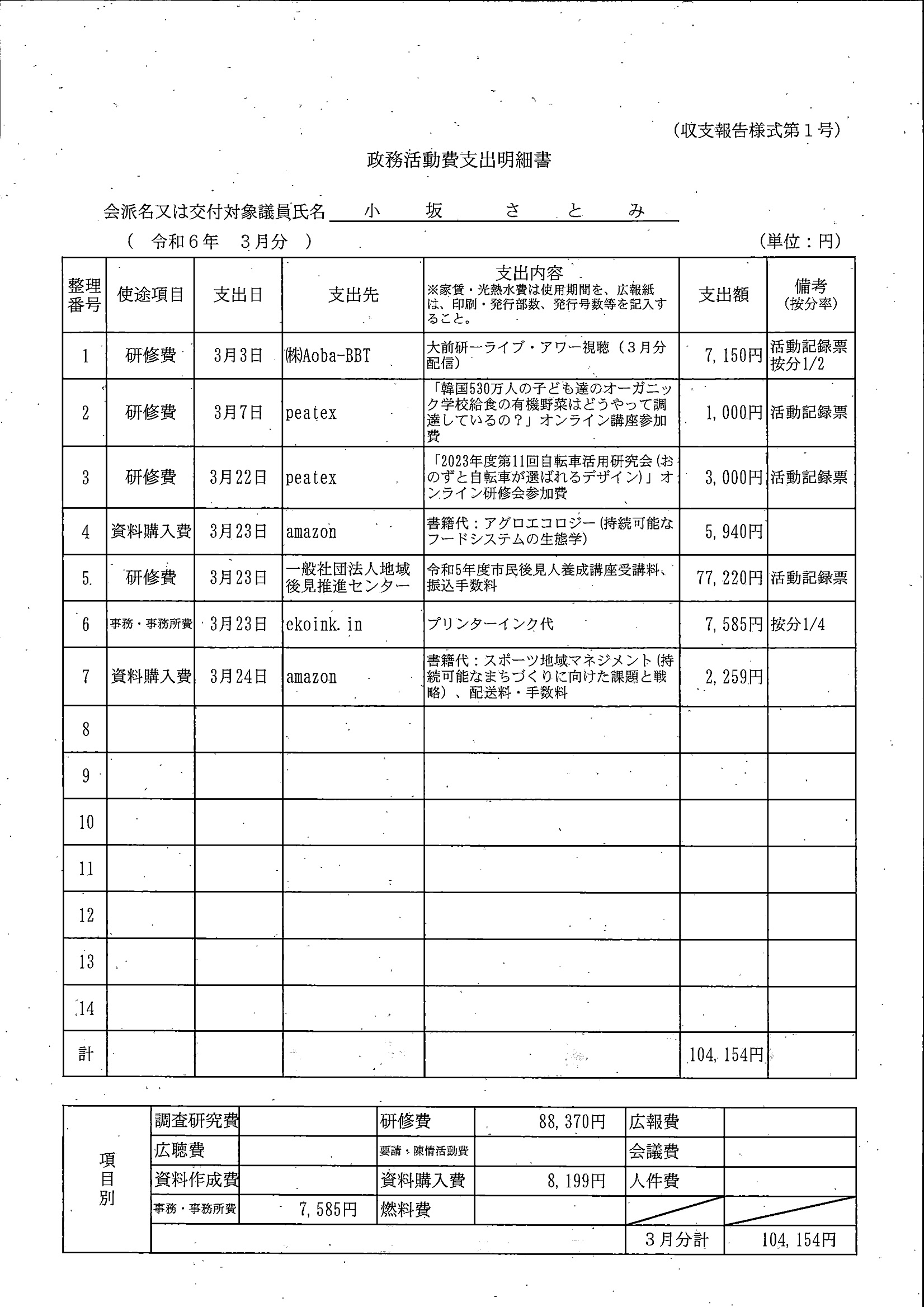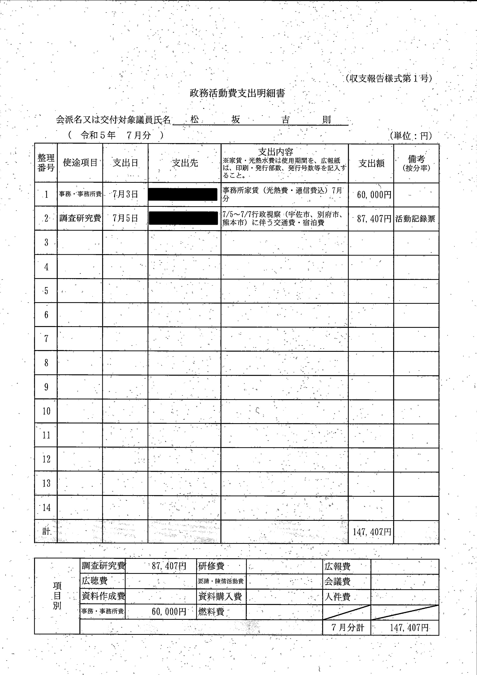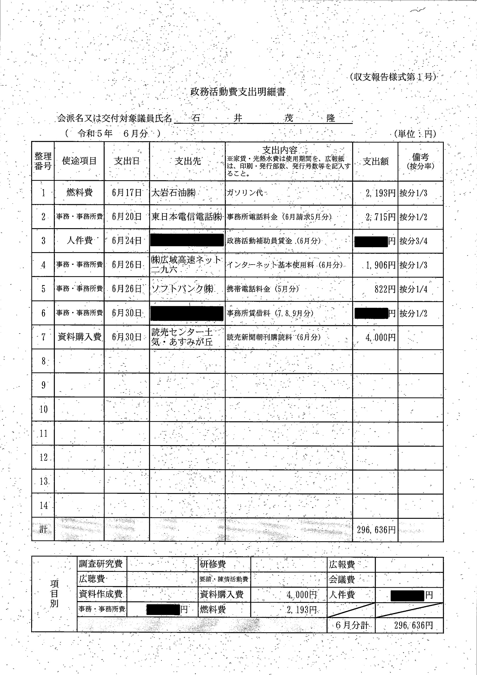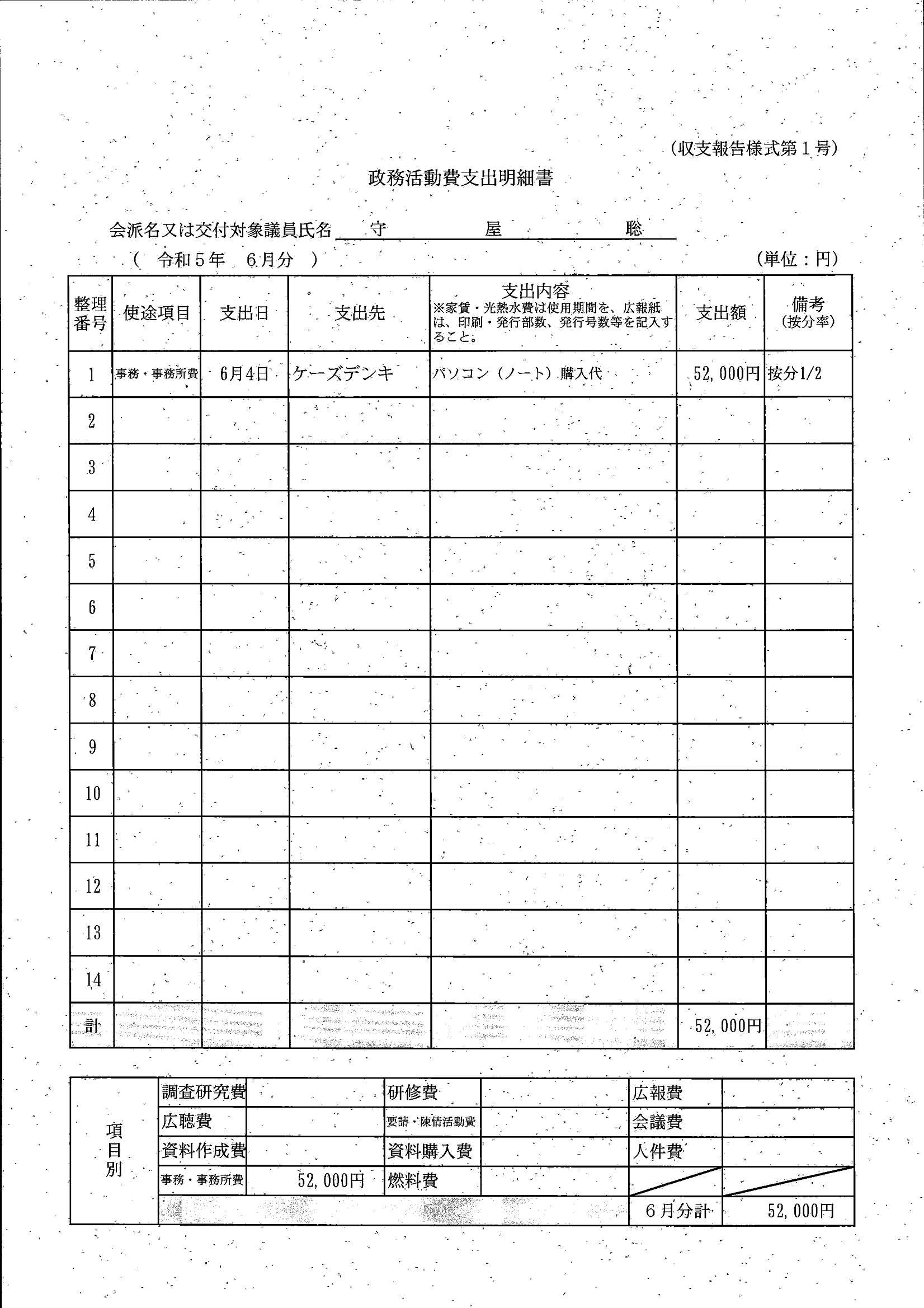 千葉市議会トップページ > 広報・情報公開 > 政務活動費 > 令和5年度交付分(政務活動費収支報告書)