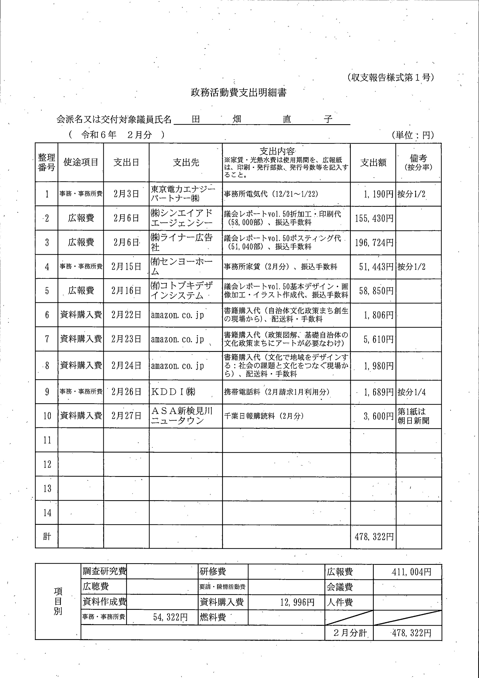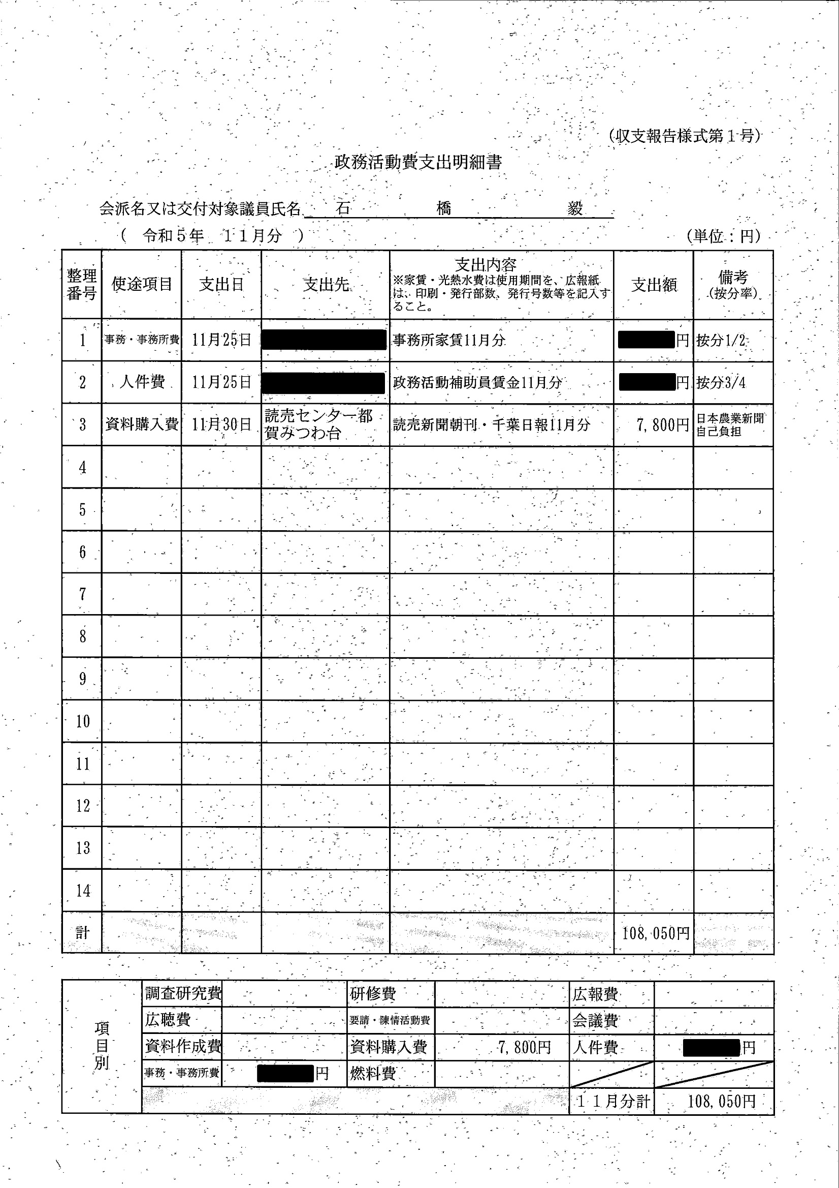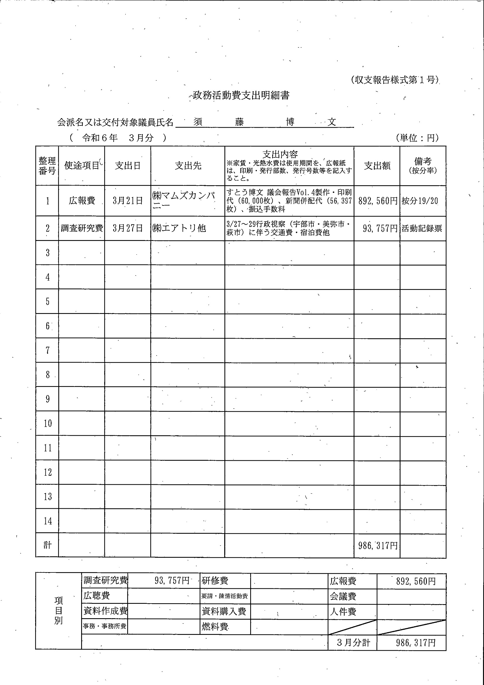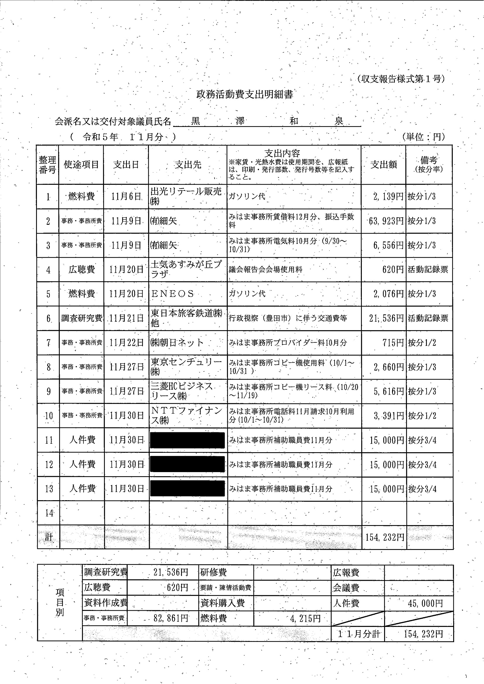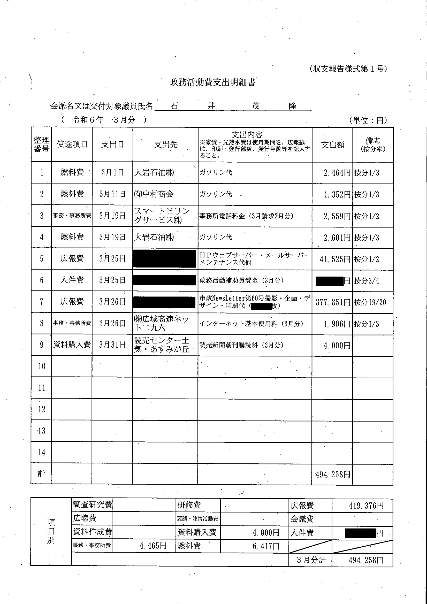 千葉市議会トップページ > 広報・情報公開 > 政務活動費 > 令和5年度交付分(政務活動費収支報告書)