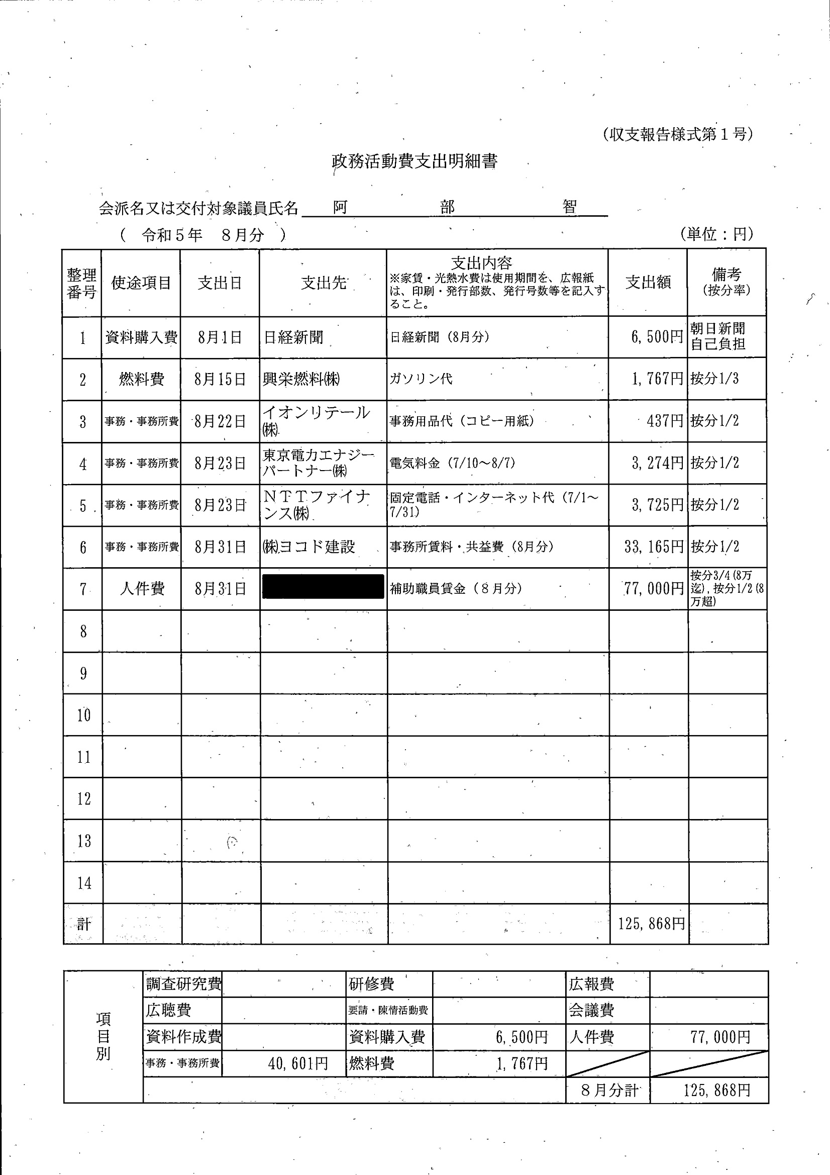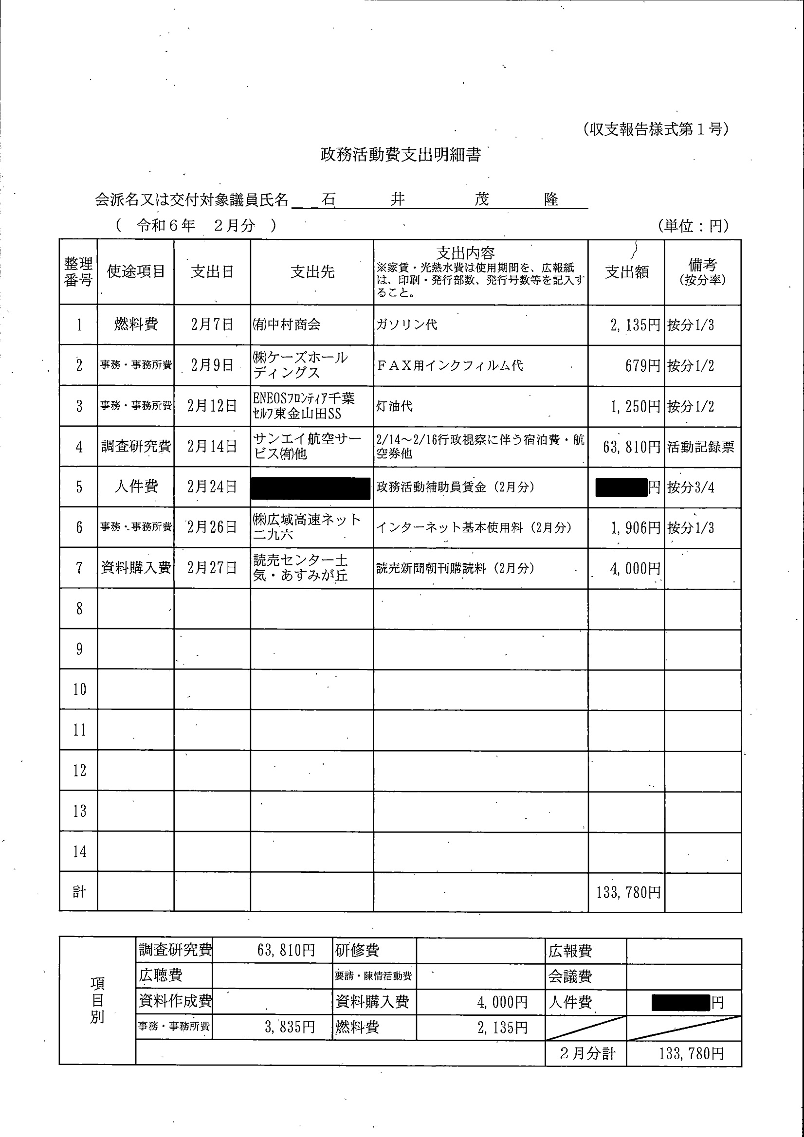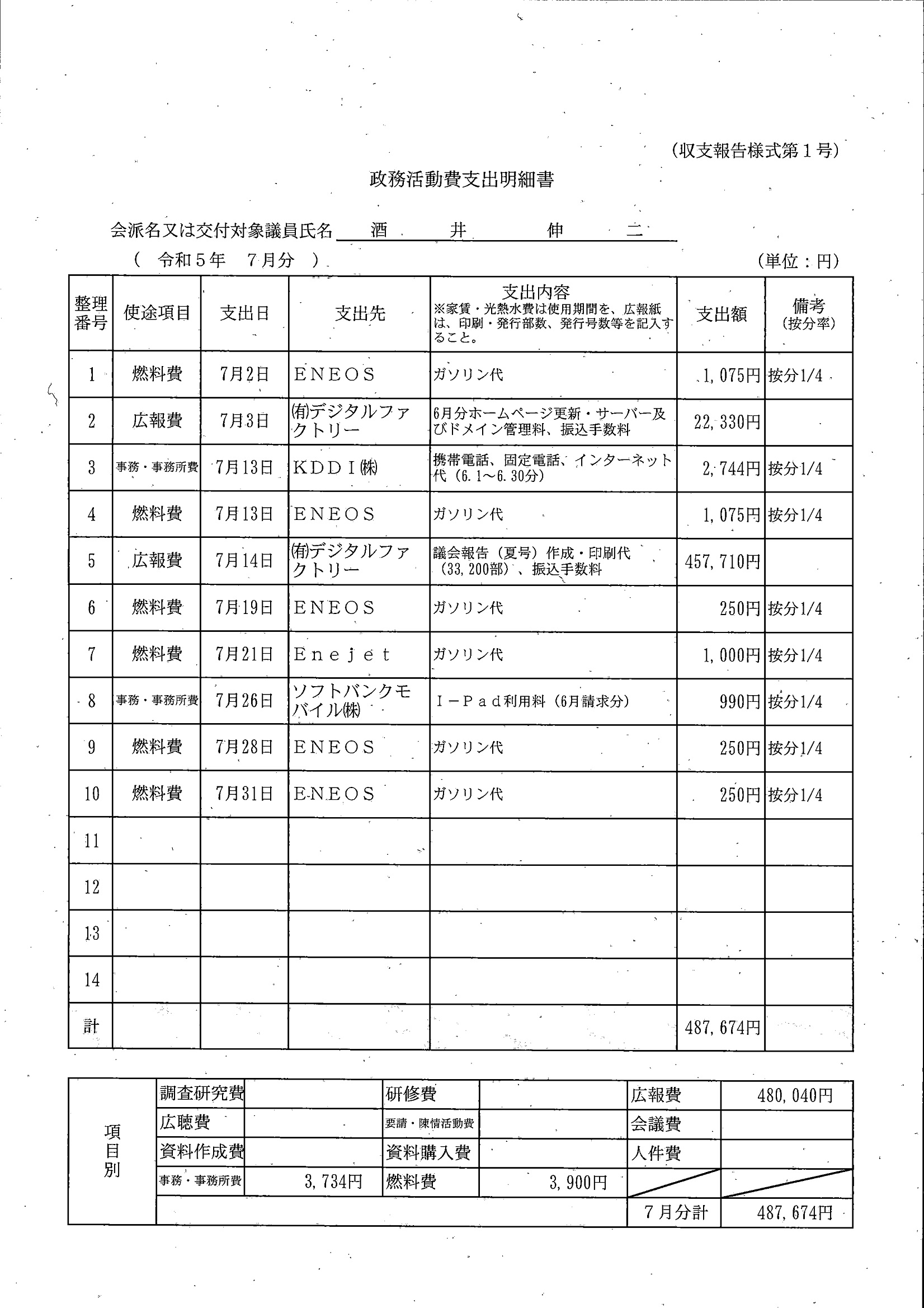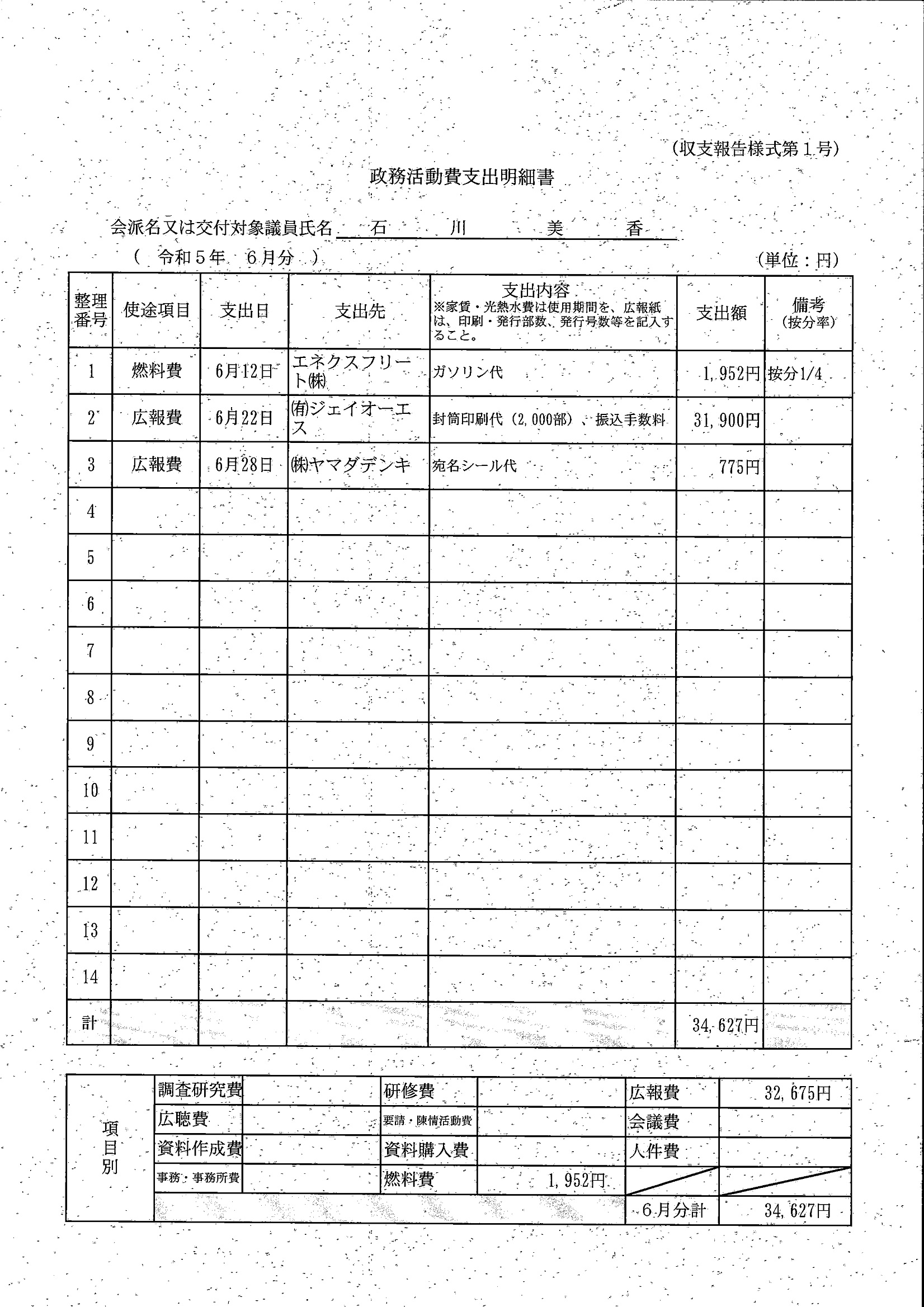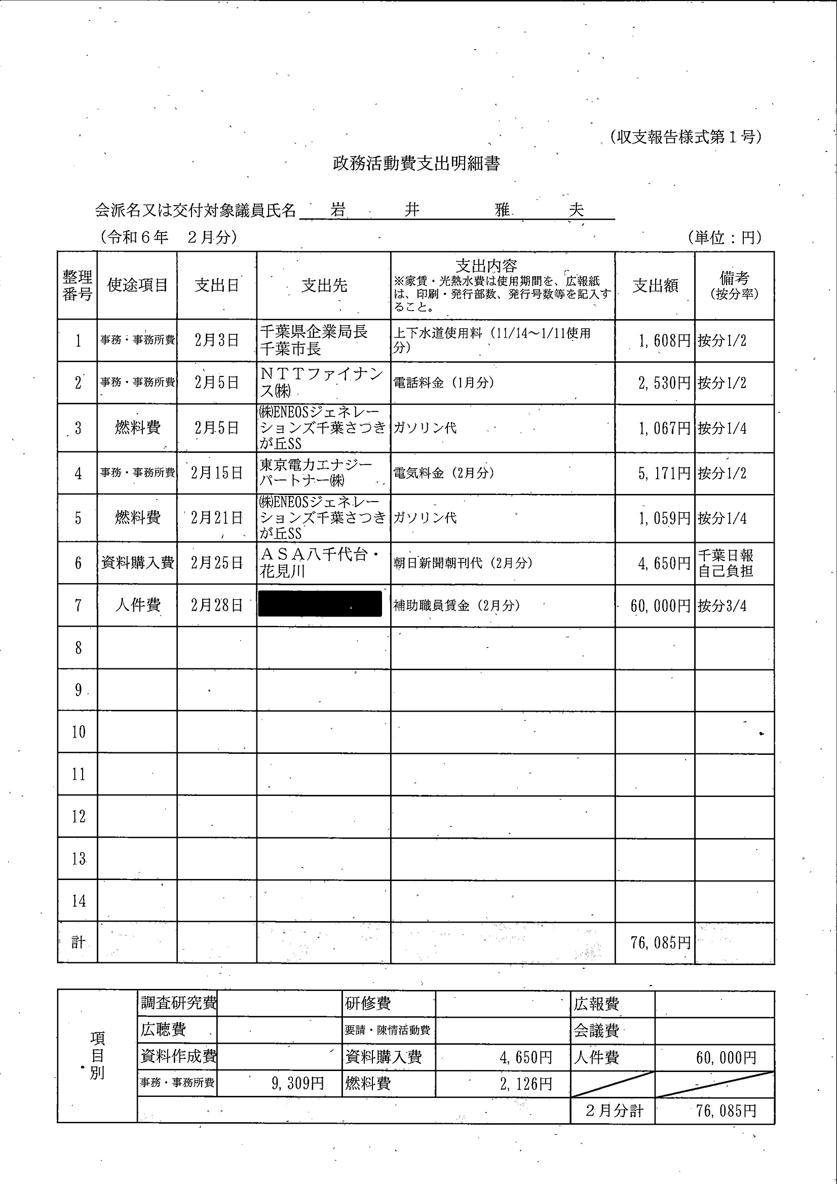 千葉市議会トップページ > 広報・情報公開 > 政務活動費 > 令和5年度交付分(政務活動費収支報告書)