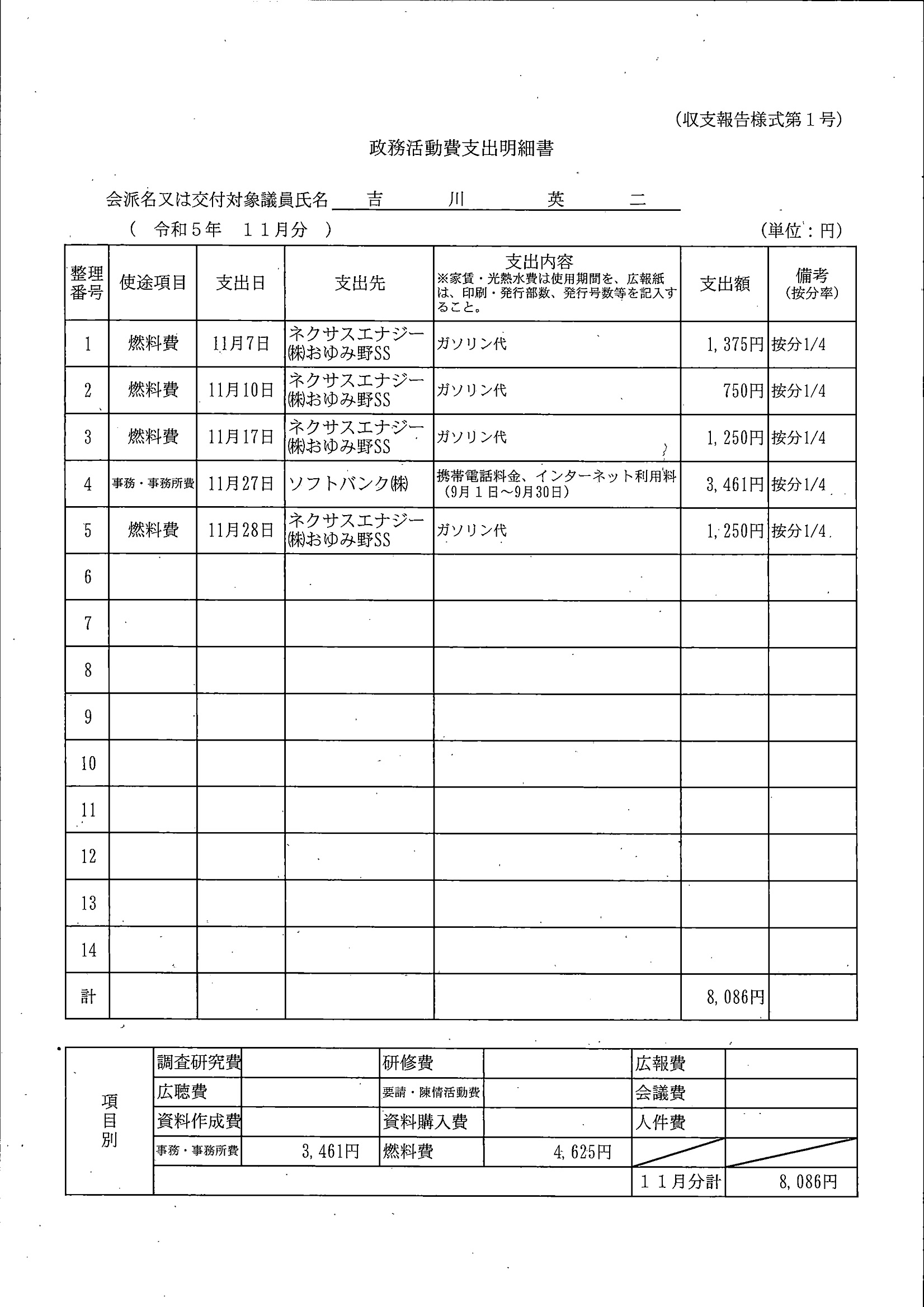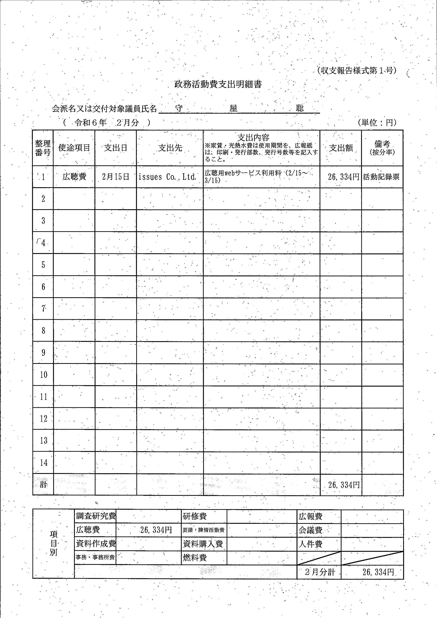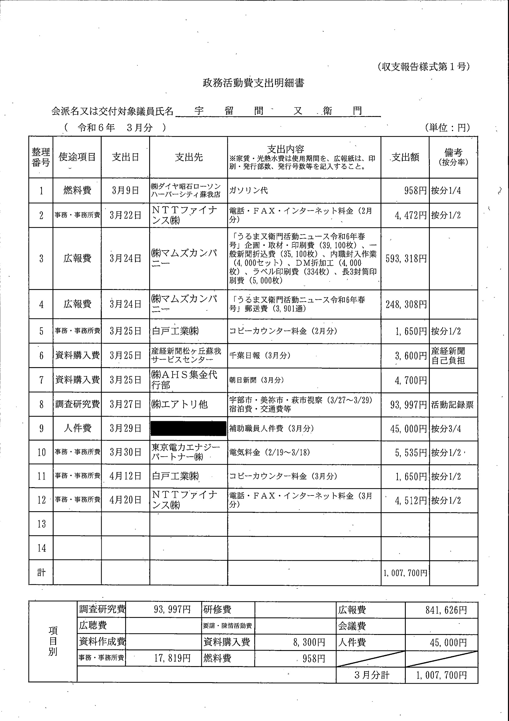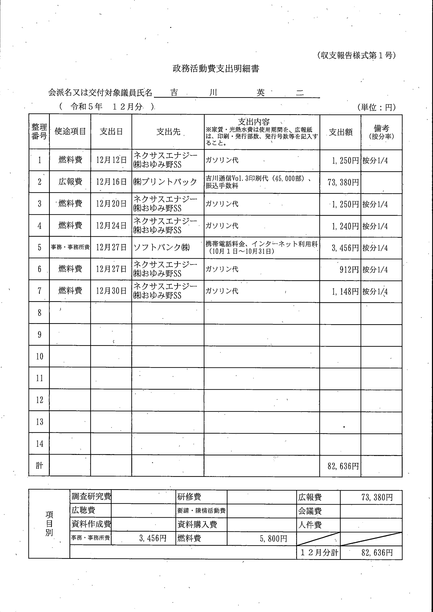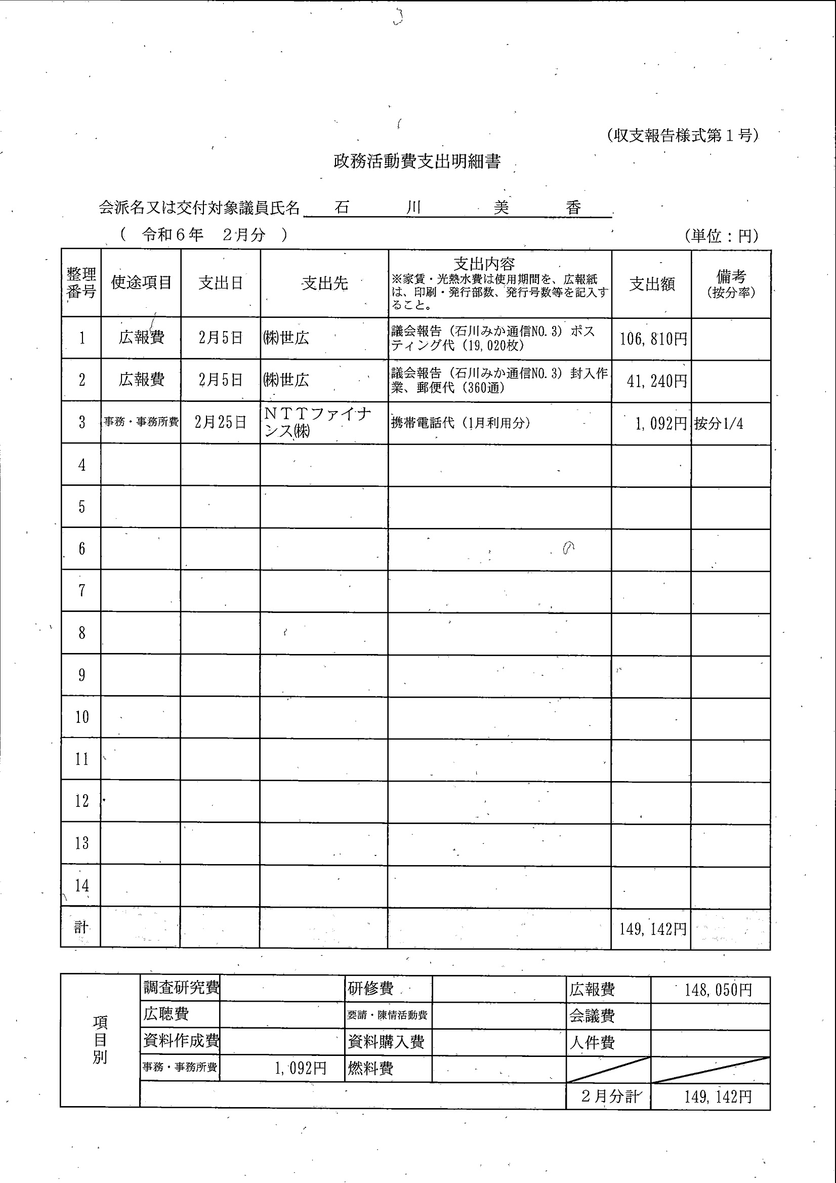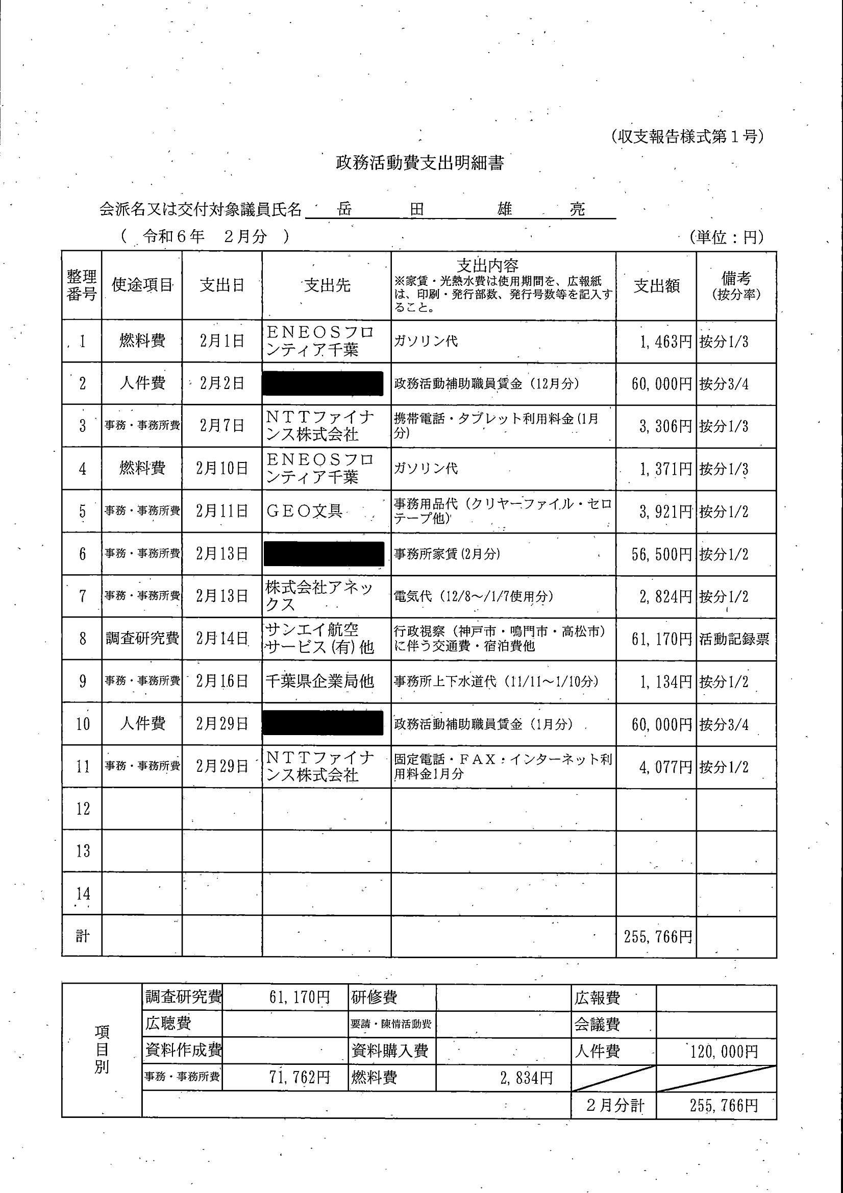 千葉市議会トップページ > 広報・情報公開 > 政務活動費 > 令和5年度交付分(政務活動費収支報告書)