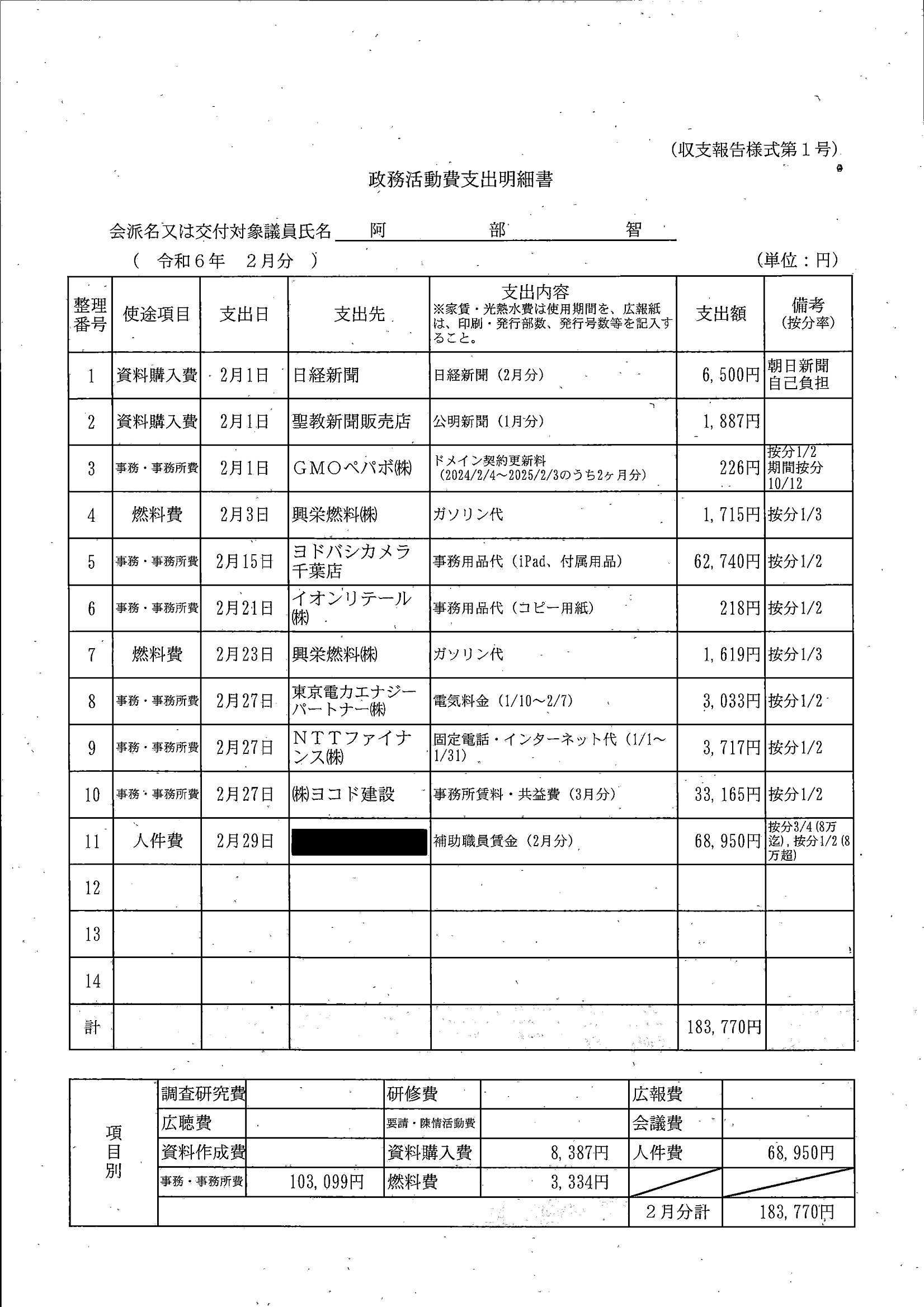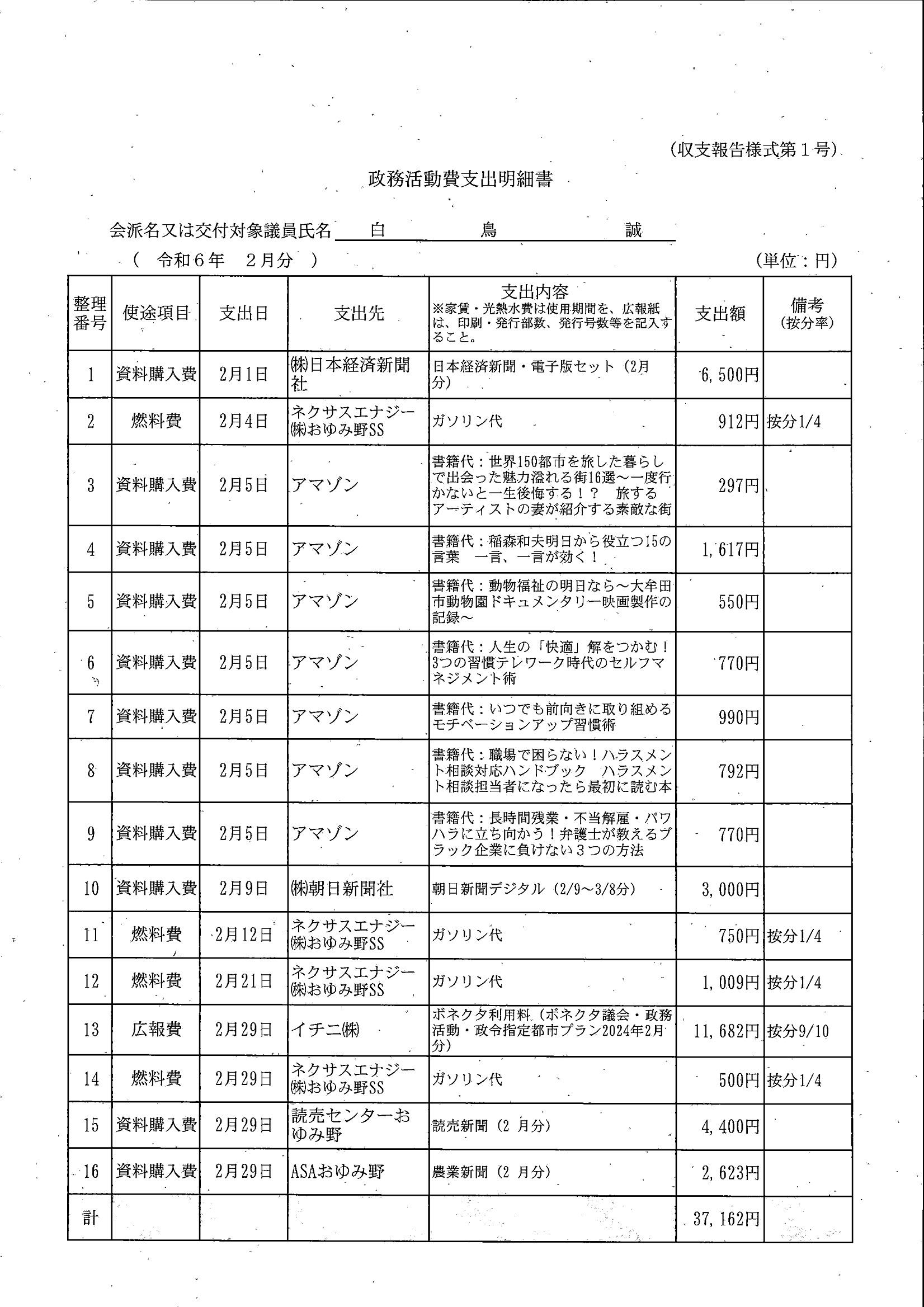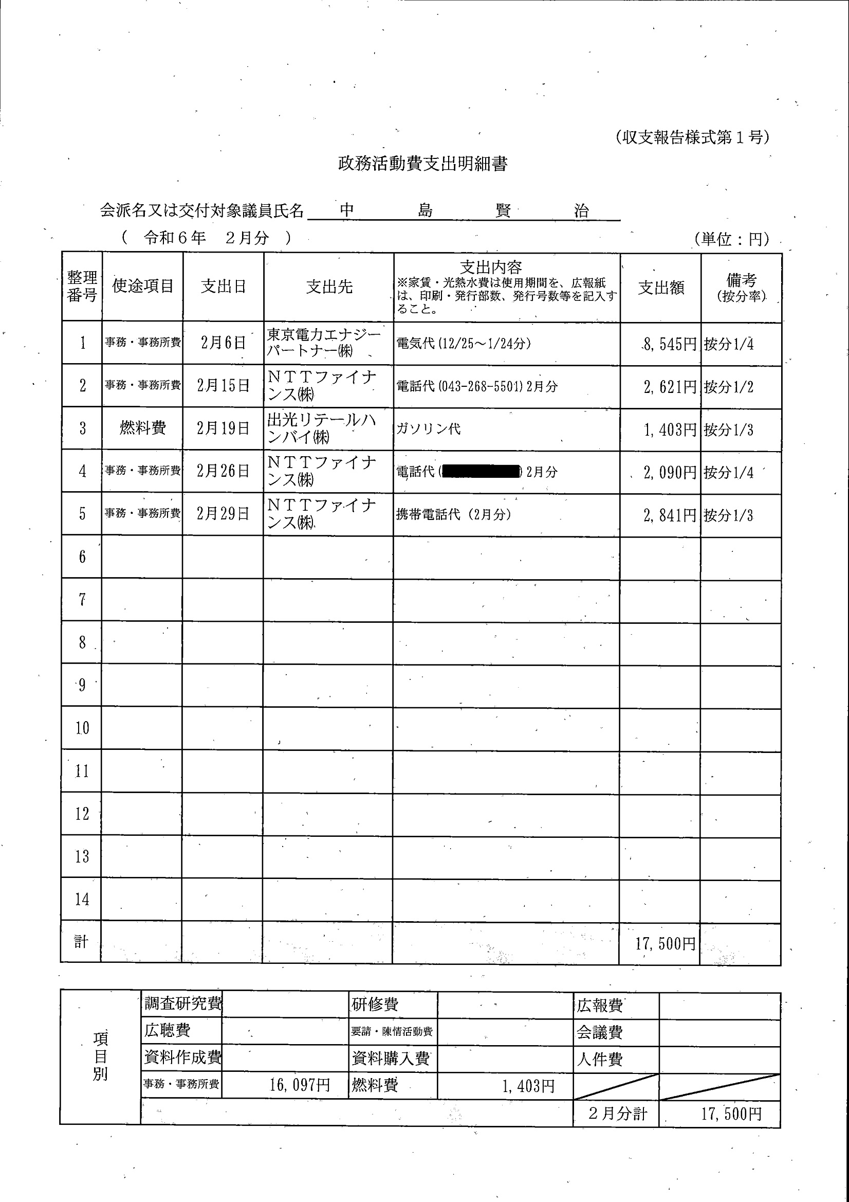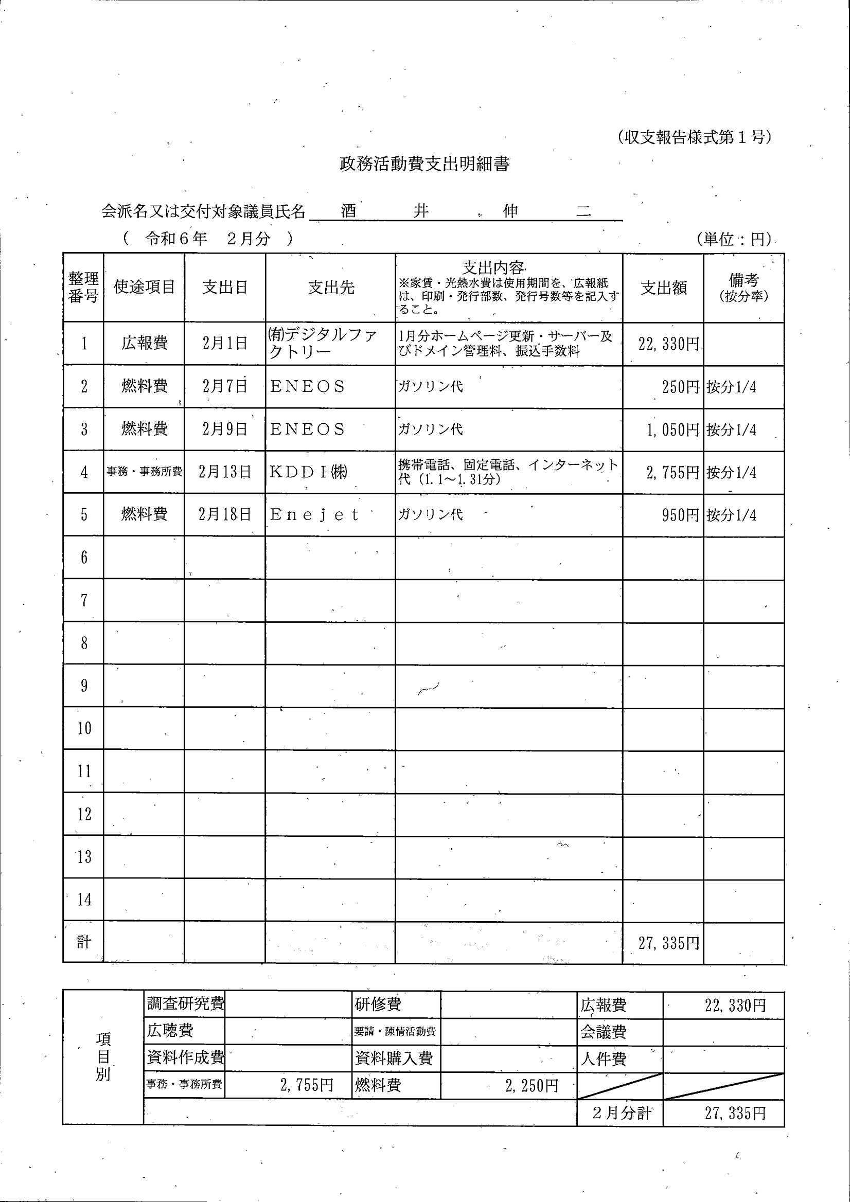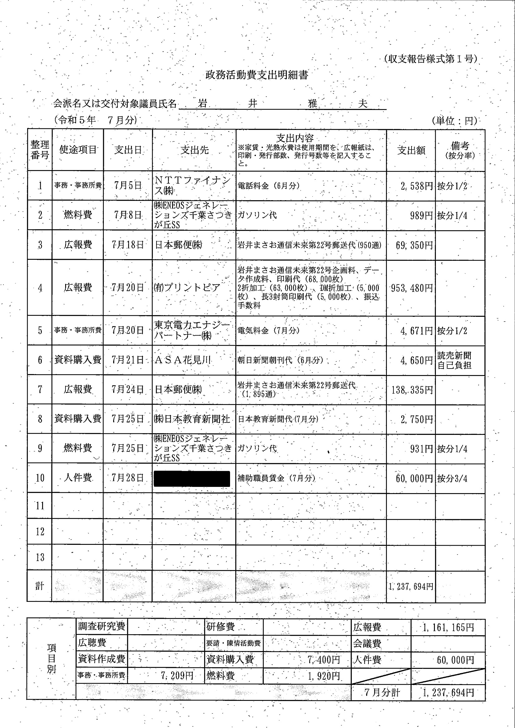 千葉市議会トップページ > 広報・情報公開 > 政務活動費 > 令和5年度交付分(政務活動費収支報告書)