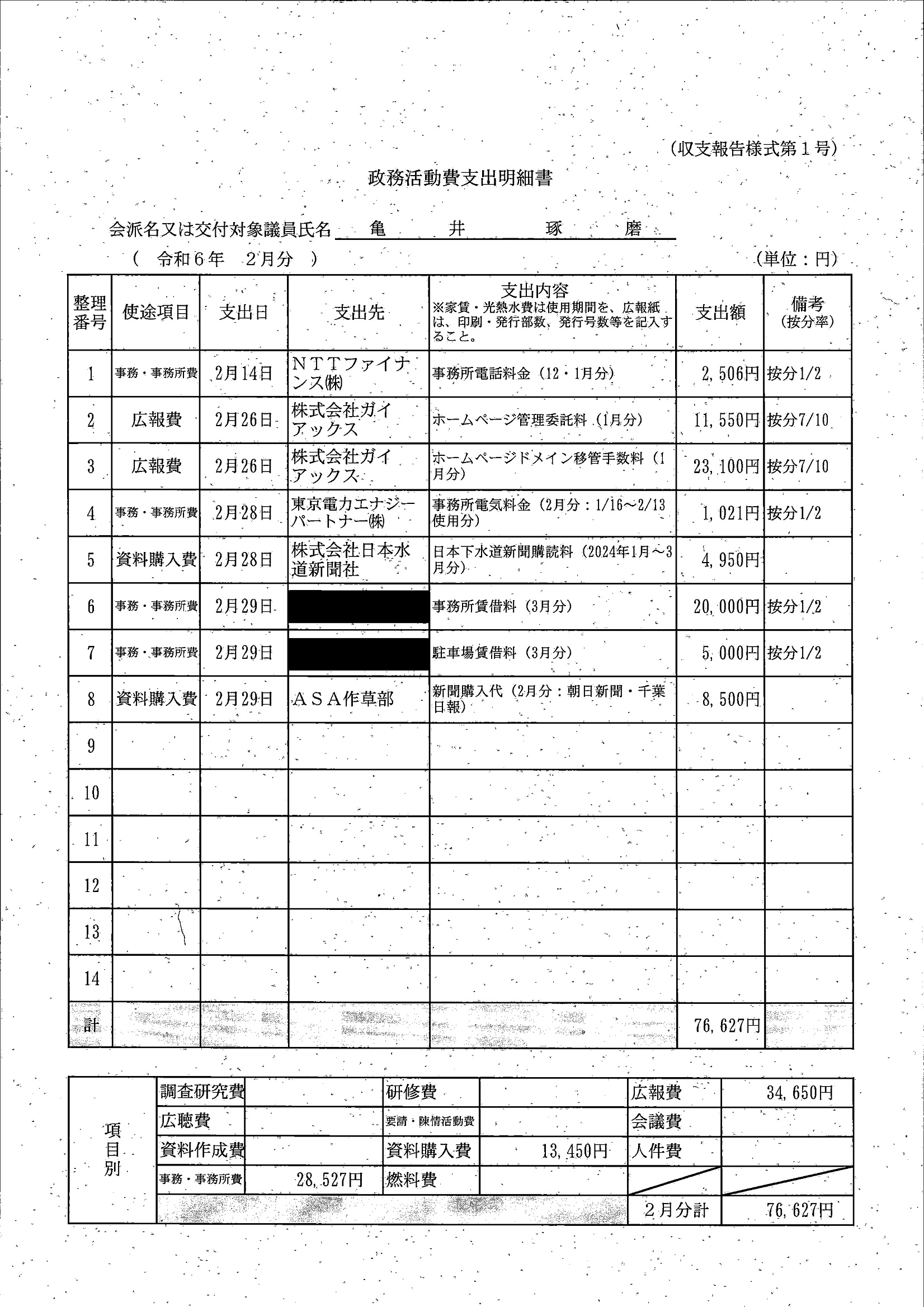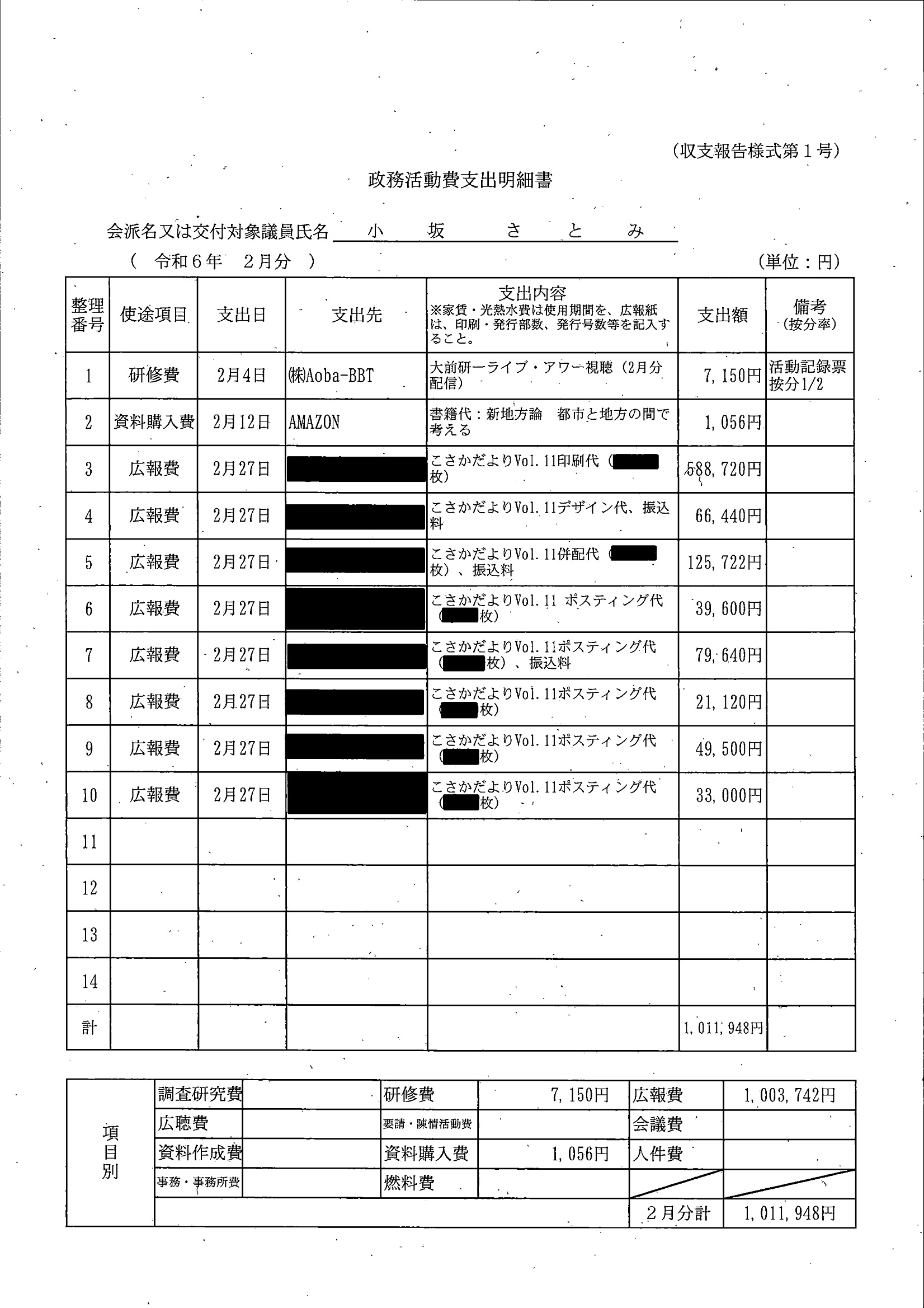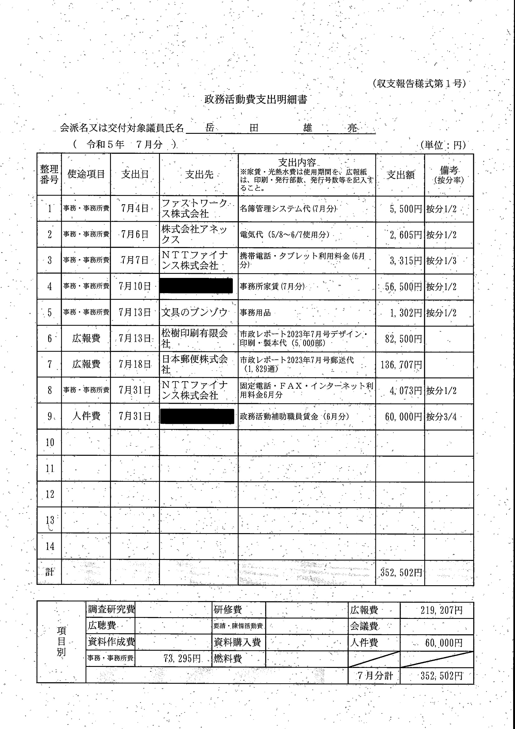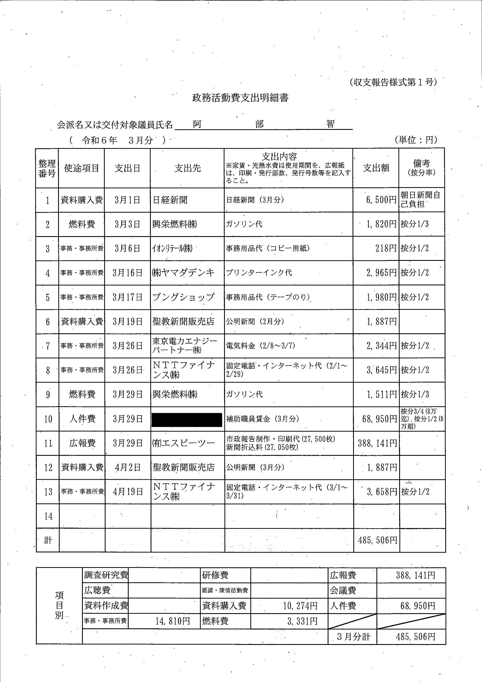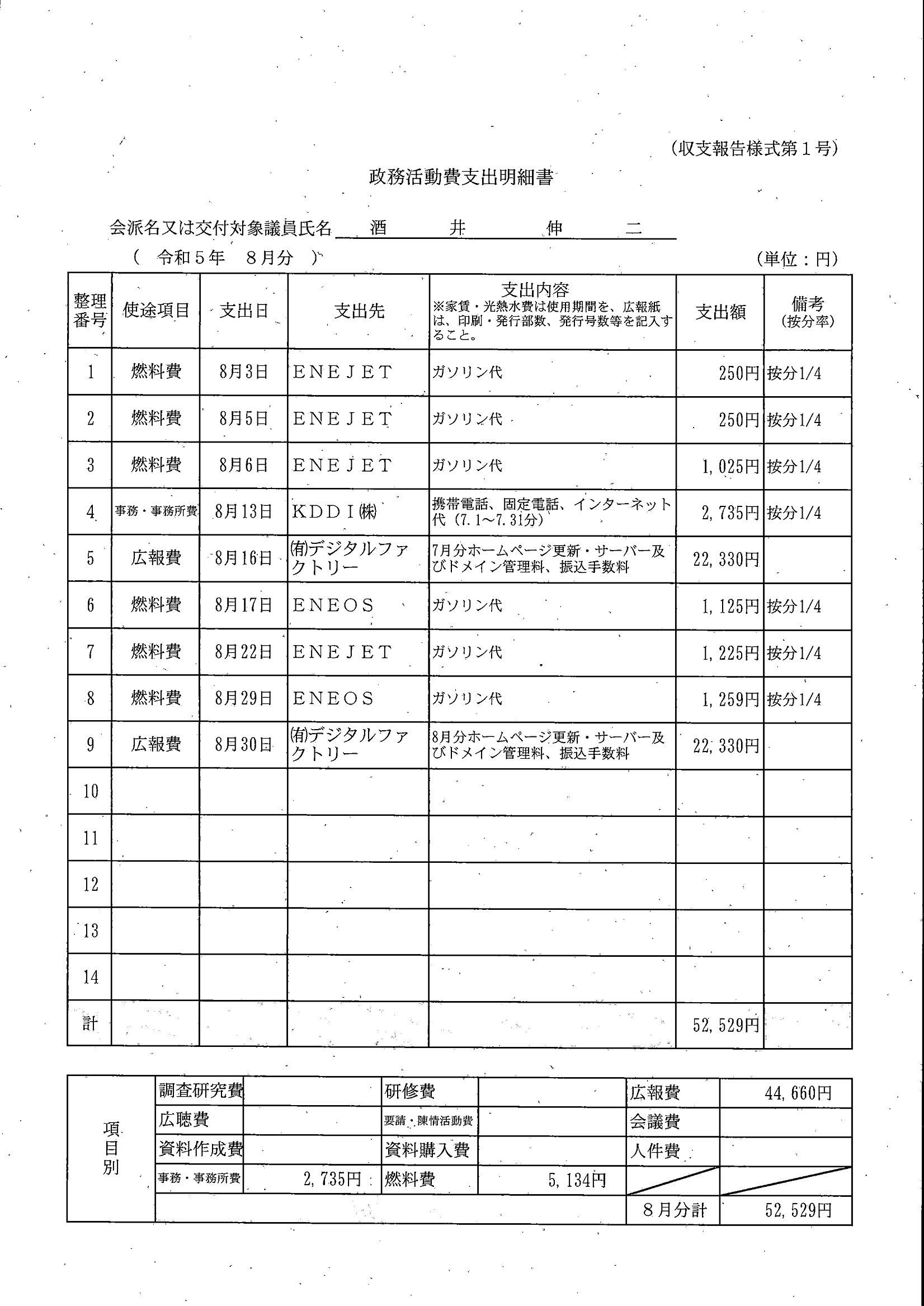 千葉市議会トップページ > 広報・情報公開 > 政務活動費 > 令和5年度交付分(政務活動費収支報告書)