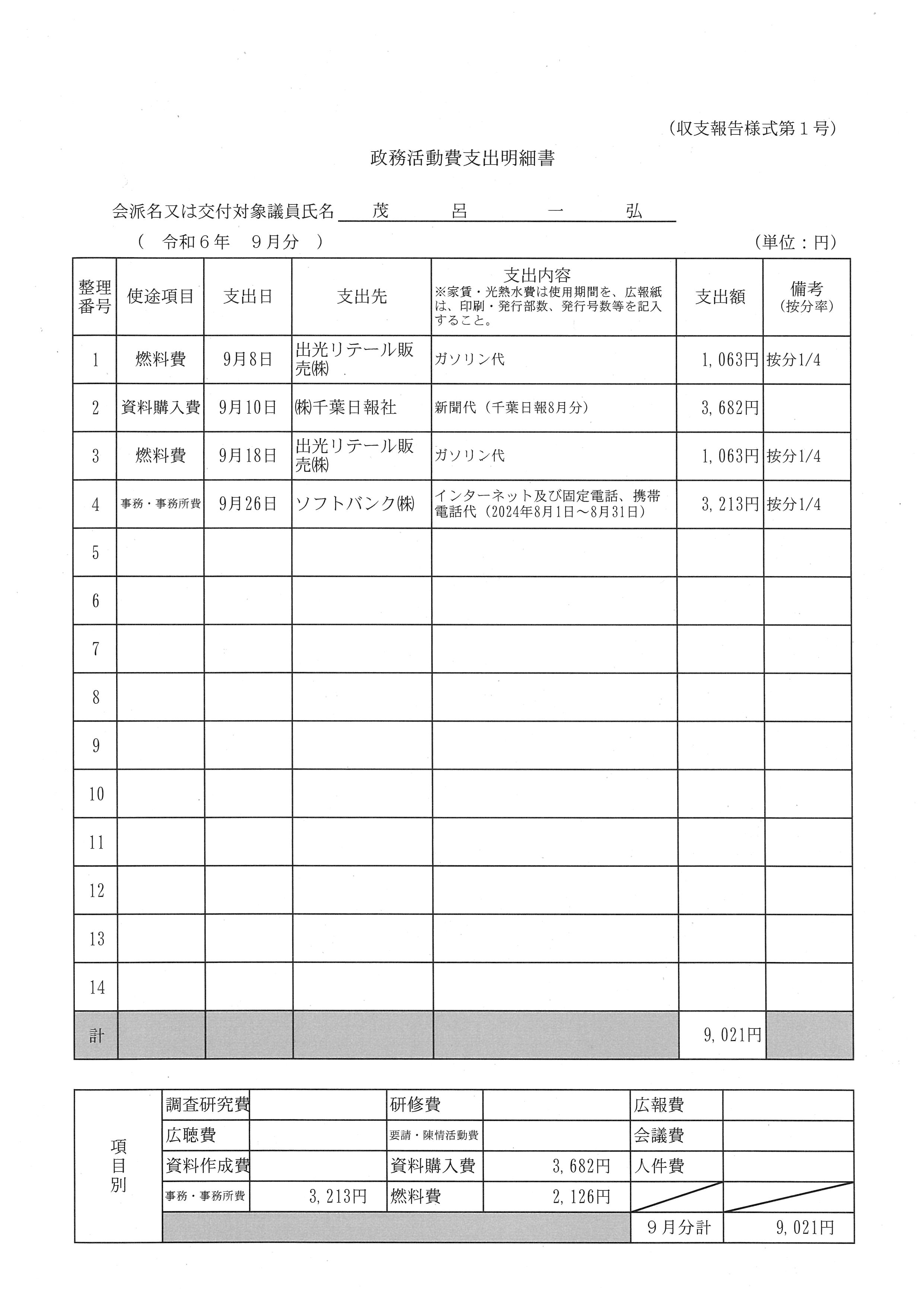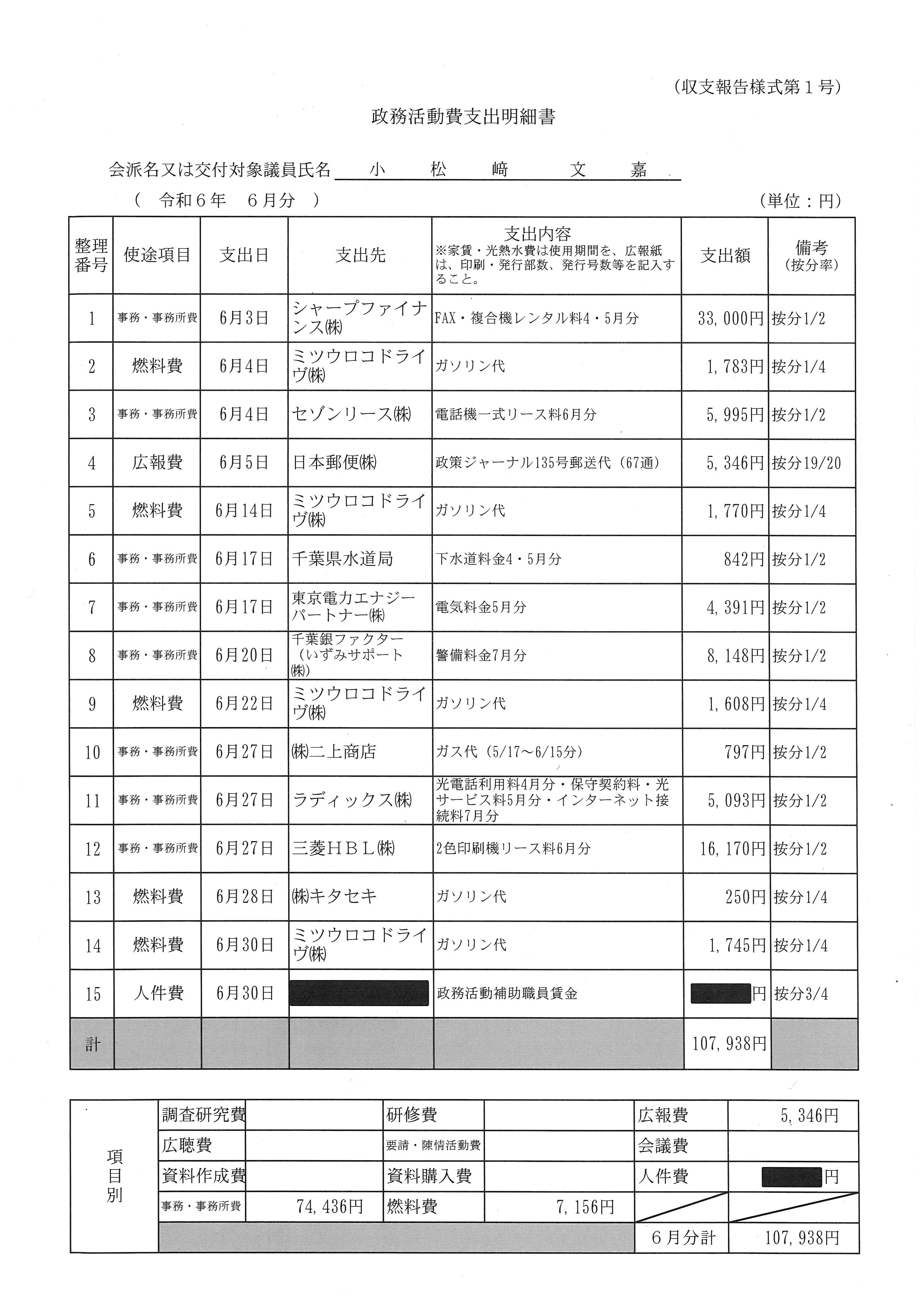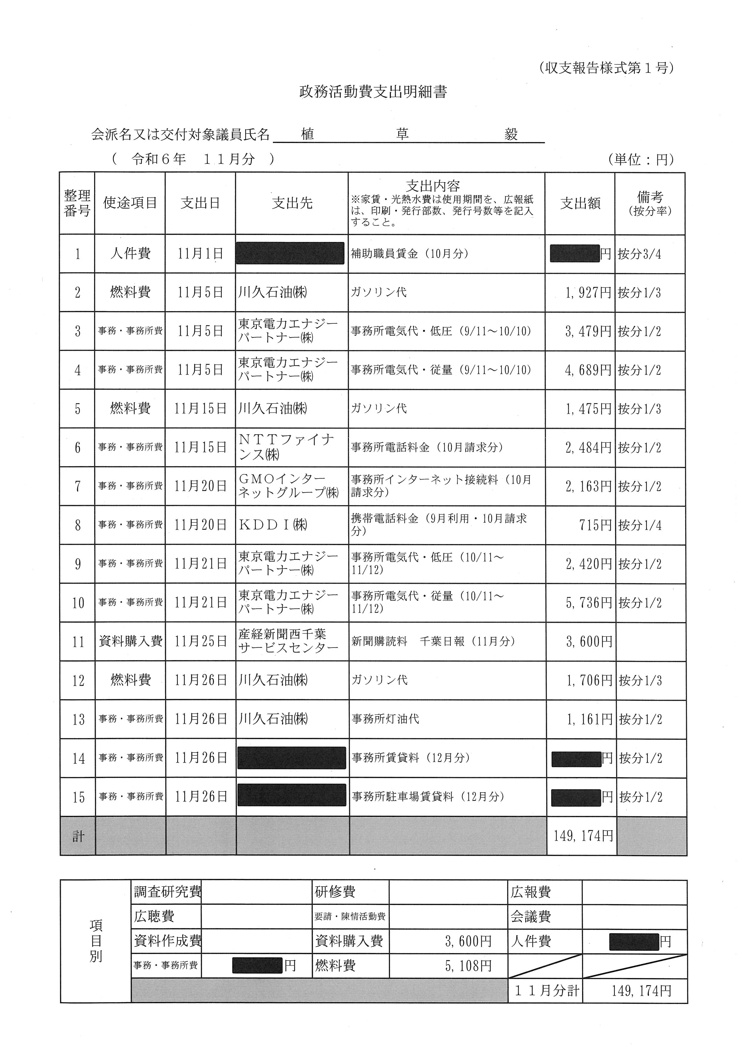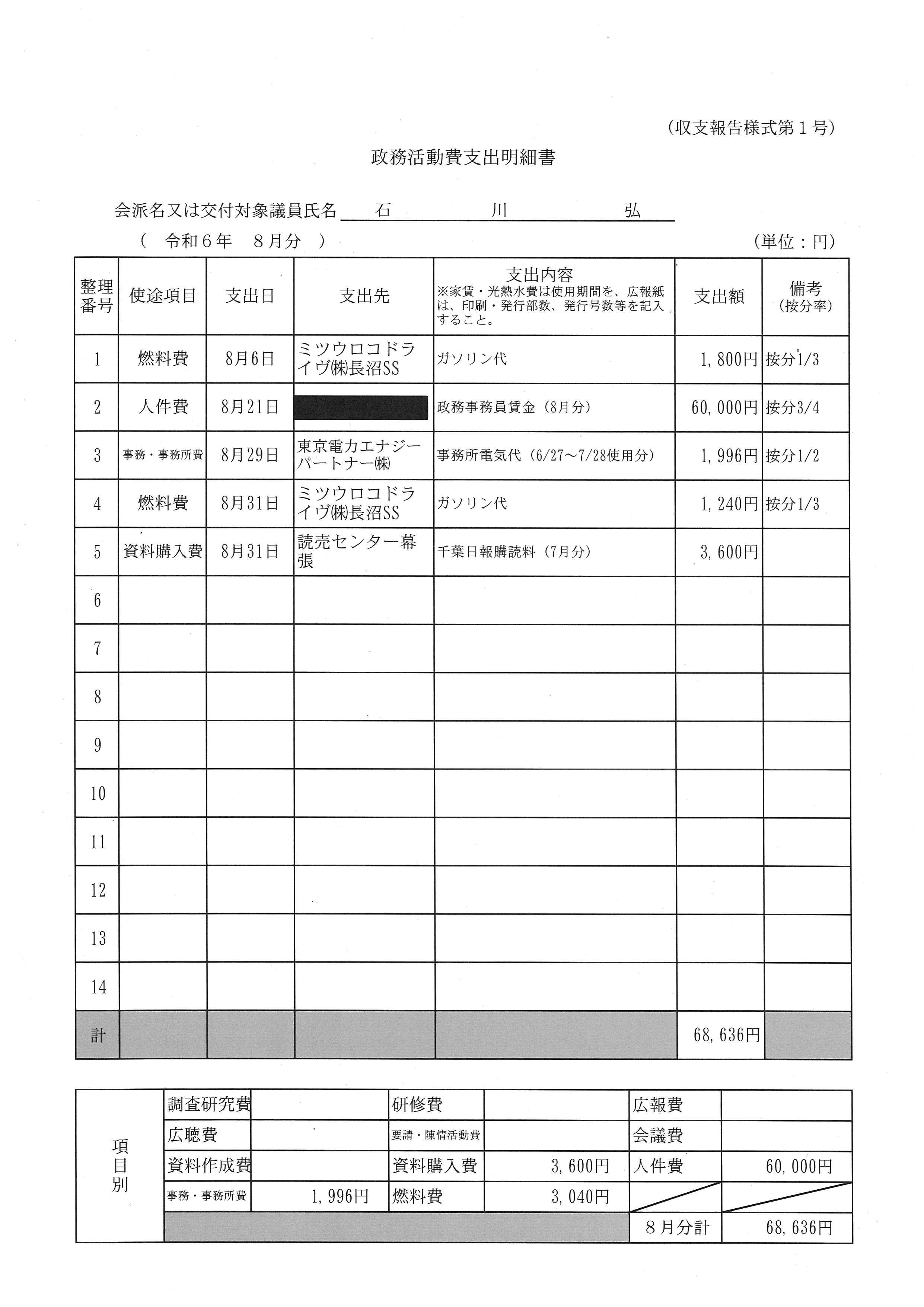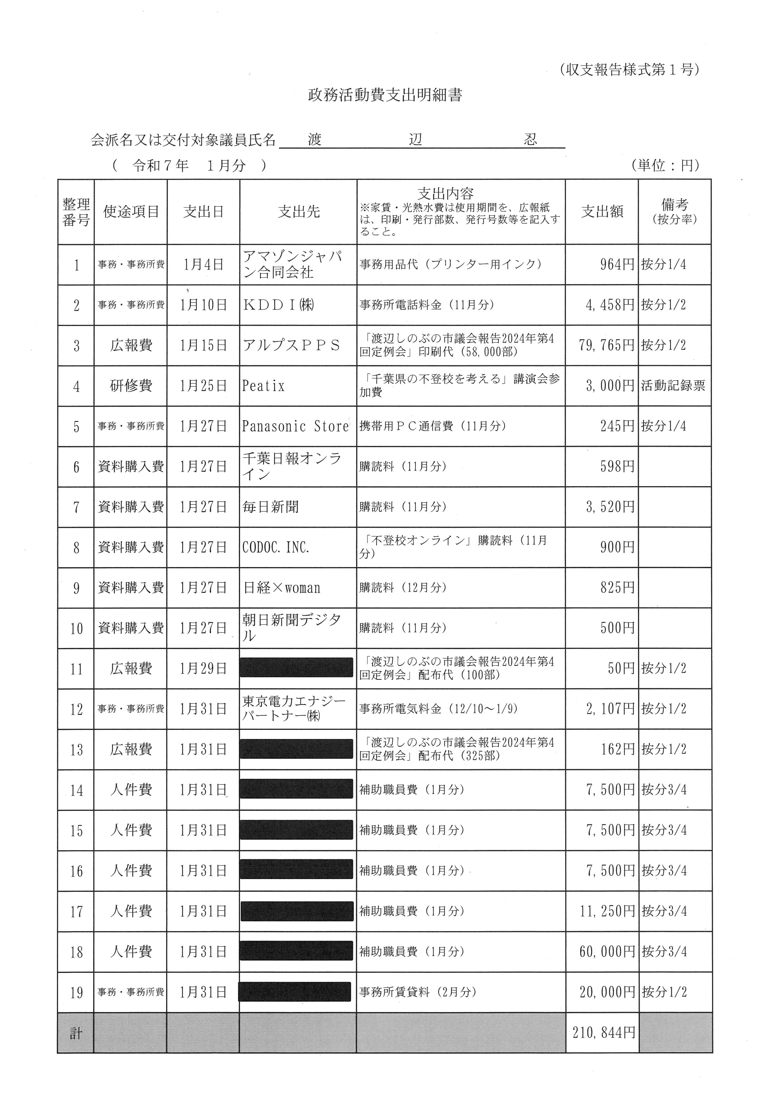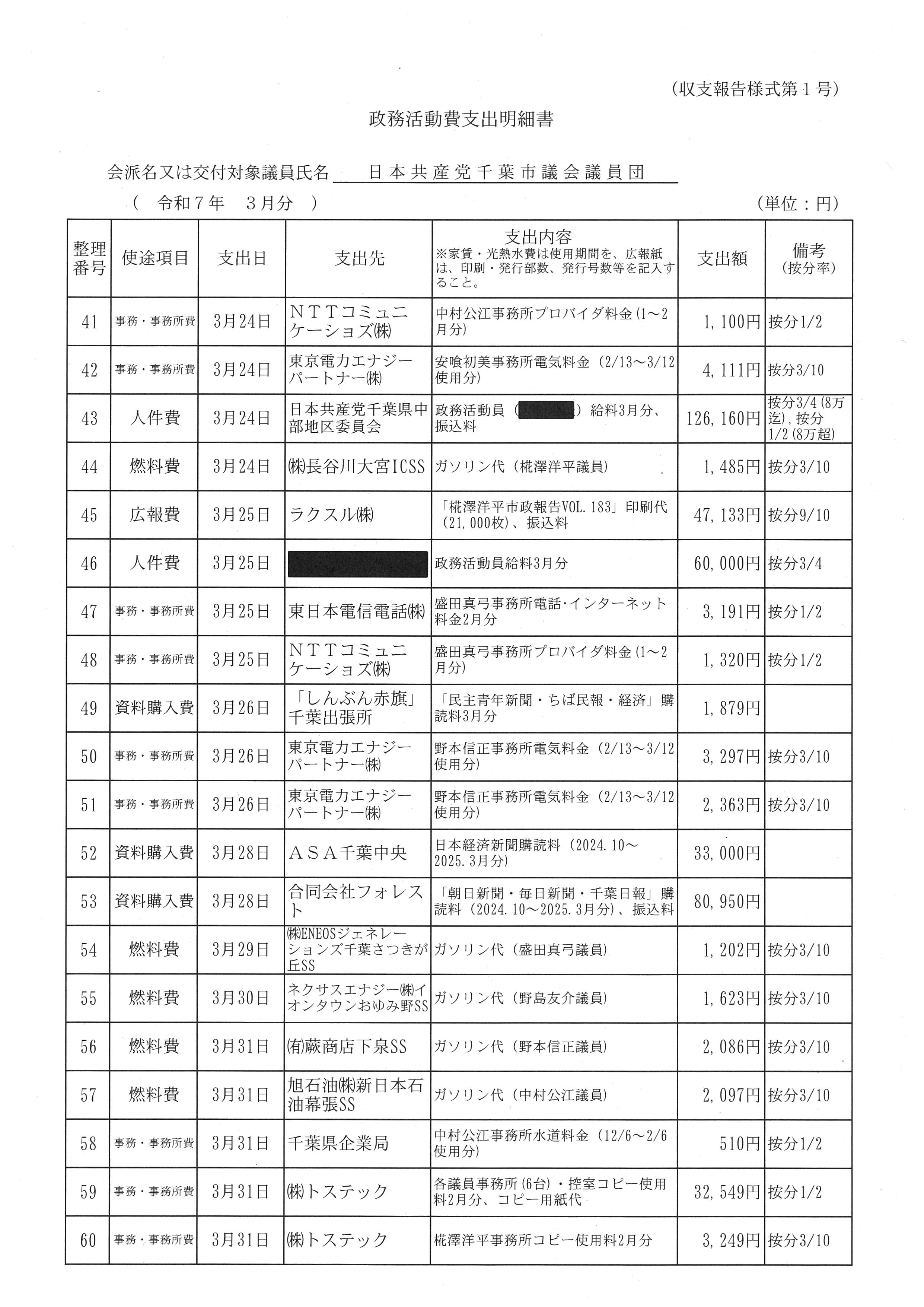千葉市議会トップページ > 広報・情報公開 > 政務活動費 > 令和6年度交付分(政務活動費収支報告書)