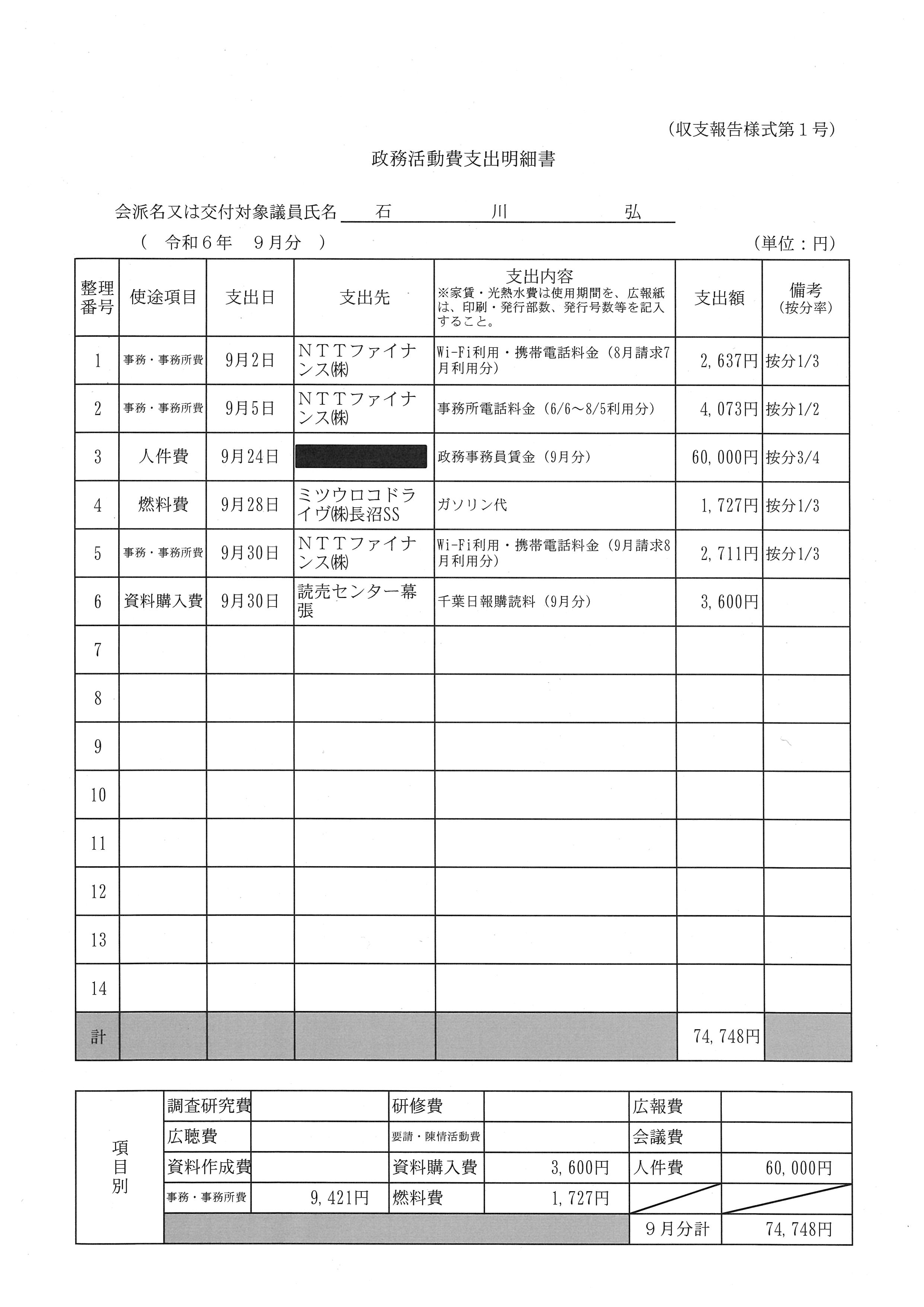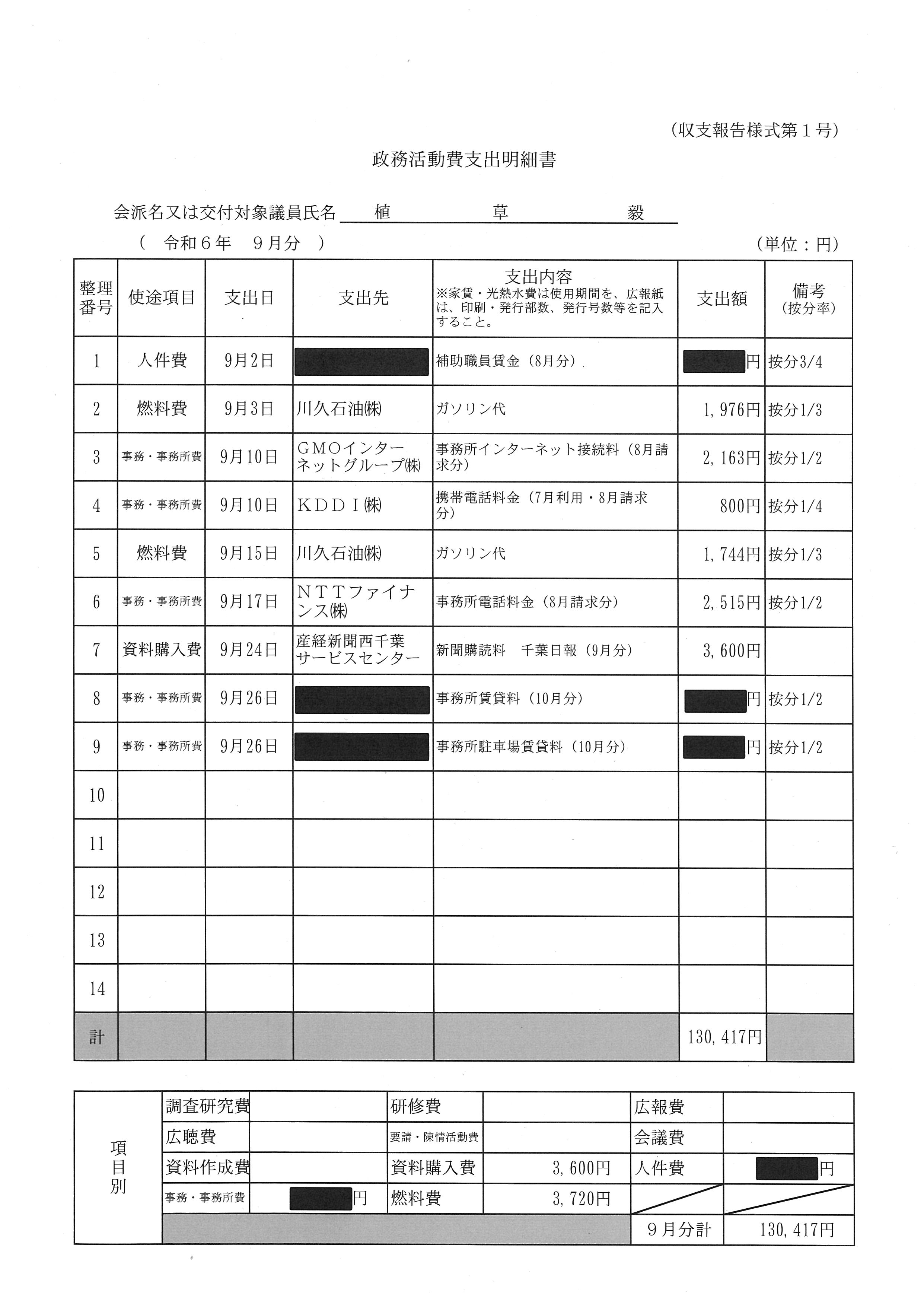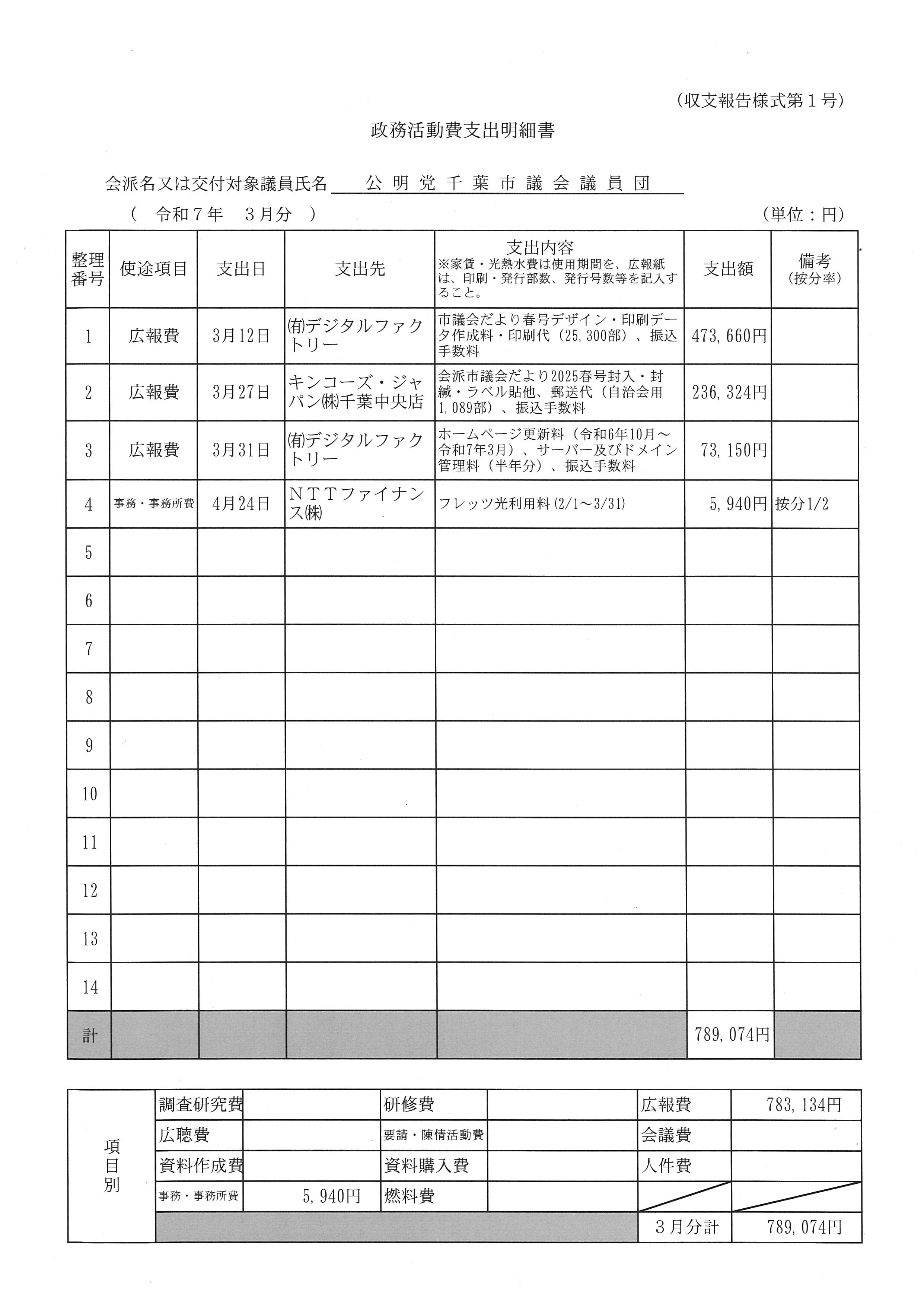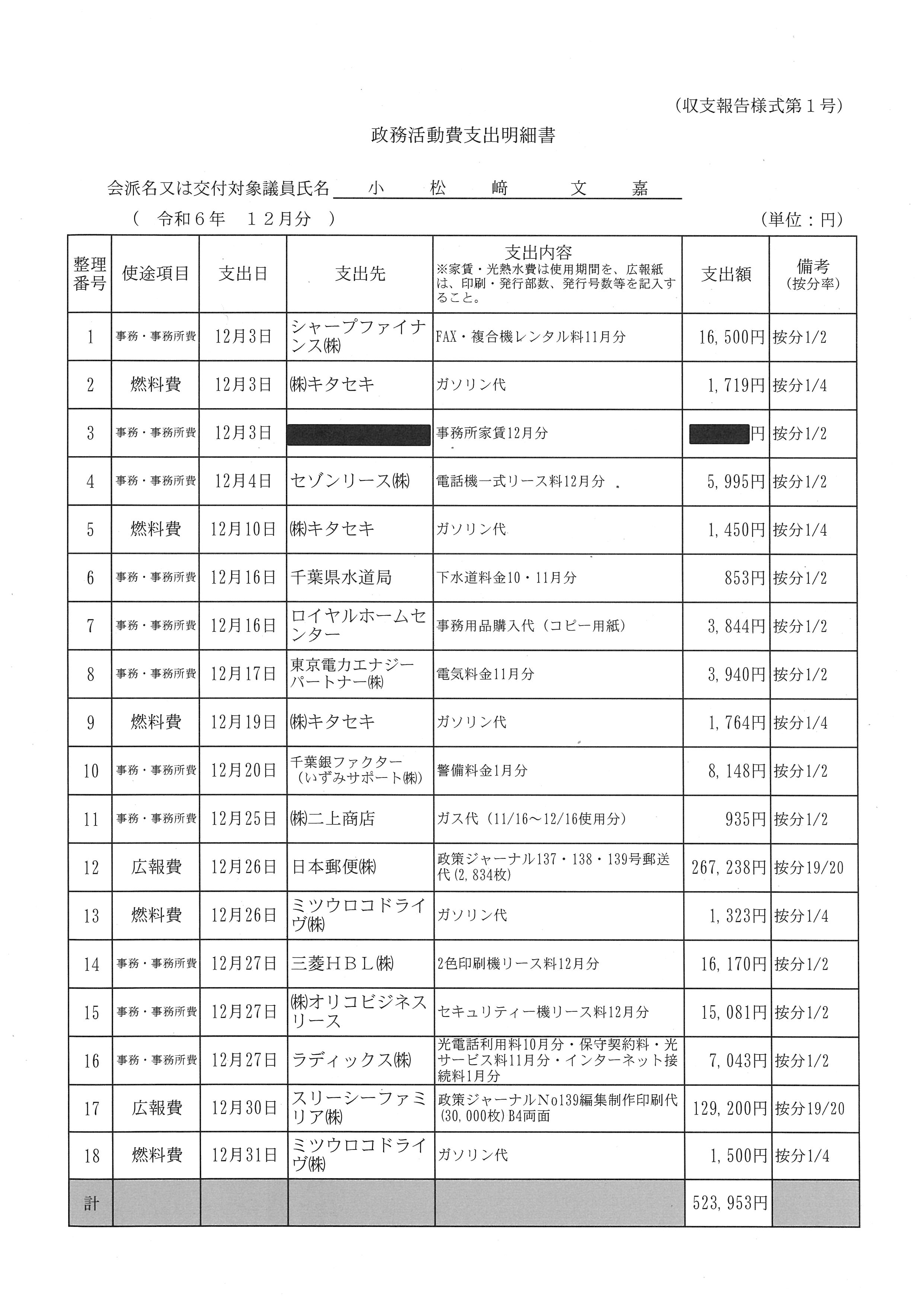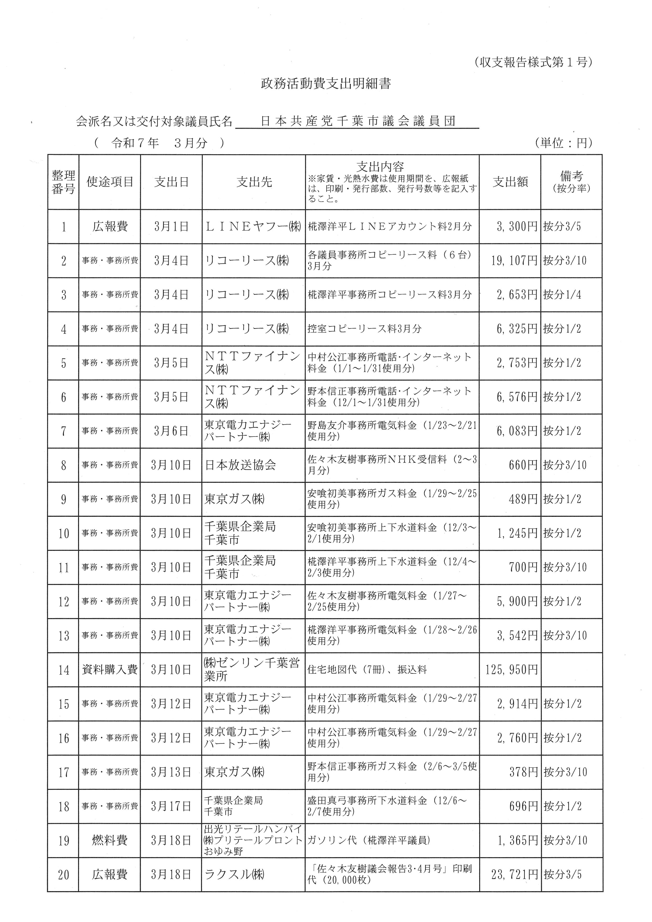 千葉市議会トップページ > 広報・情報公開 > 政務活動費 > 令和6年度交付分(政務活動費収支報告書)